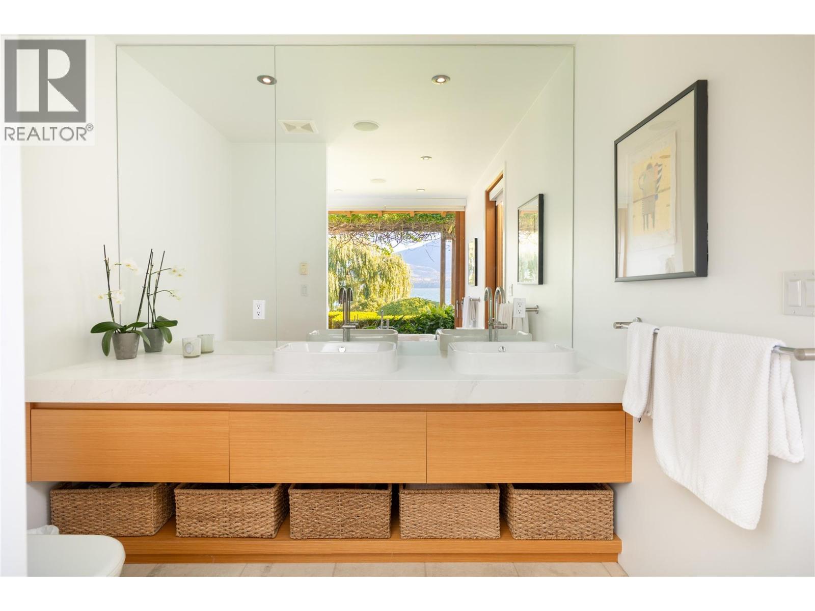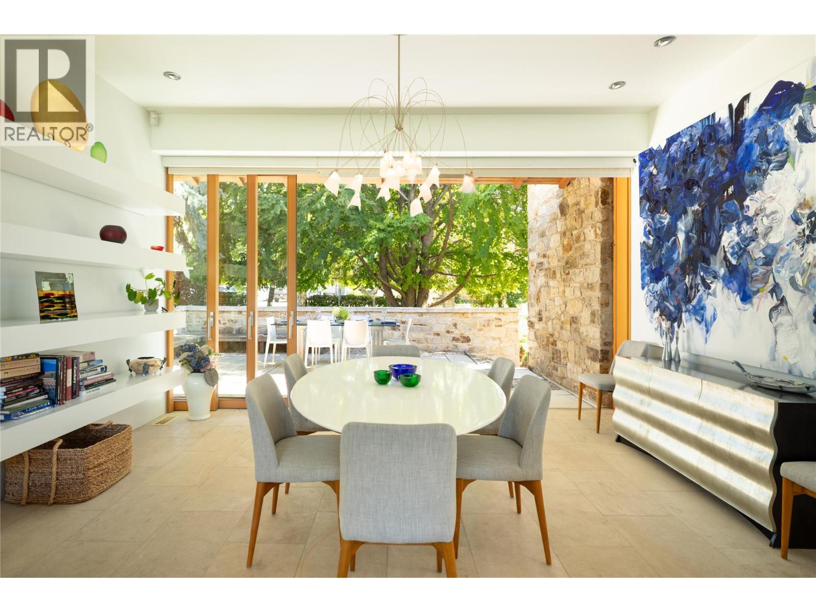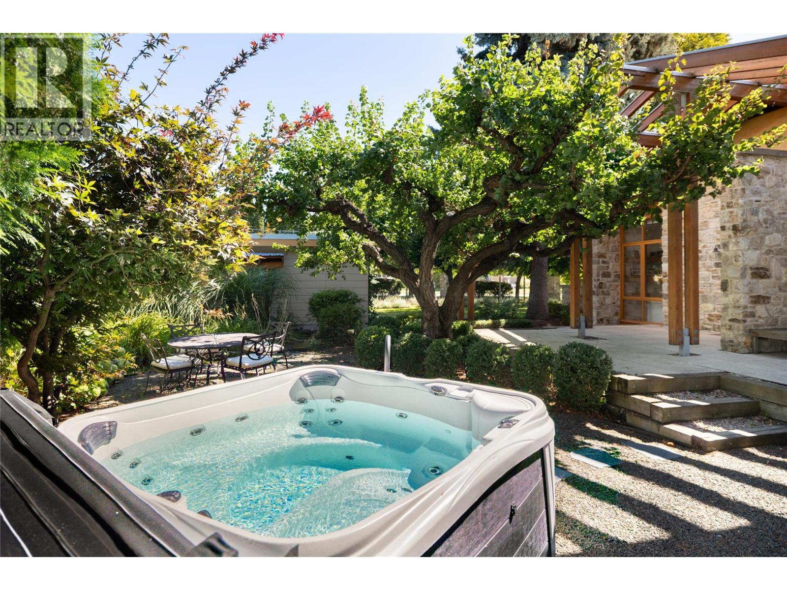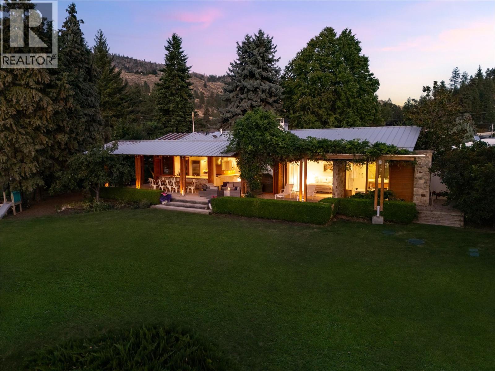 Beautiful unique waterfront home on the shores of Skaha Lake, offering 0.56 acres with a sandy beach and private dock. This contemporary residence captures timeless elegance in a premier lakefront setting. Award winning architect Cedric Burgers has designed a stunning residence which perfectly complements its surroundings, with extensive use of natural wood and stone. Architecturally designed with gorgeous and innovative features, the main level boasts fully pocketing doors which create a sensational blend of indoor & outdoor living, perfectly blending structure and nature including private dining areas on each side of the home. The kitchen features Wolf appliances, and further pocketing windows opening onto the exterior dining area. Open concept living and dining, with cozy stone gas fireplace. The primary bedroom features sensational lake views and a beautiful ensuite bathroom. Two more bedrooms and a full bath complete the main level. Downstairs is the family retreat, with games/media room, two more bedrooms, and full bathroom. Exceptional quality together with an impeccable choice of materials define this lakefront home. Many features include extensive natural stone detail, heated tile floors throughout, hot tub, and endless outdoor living spaces. The expansive backyard features lush landscaping for all the summer activities, blending perfectly with the architecture of the home. Secure gated entrance and oversized double garage, with workshop/storage & EV charger. Newly built dock with boat lift and storage for paddle boards and more. (id:47466)