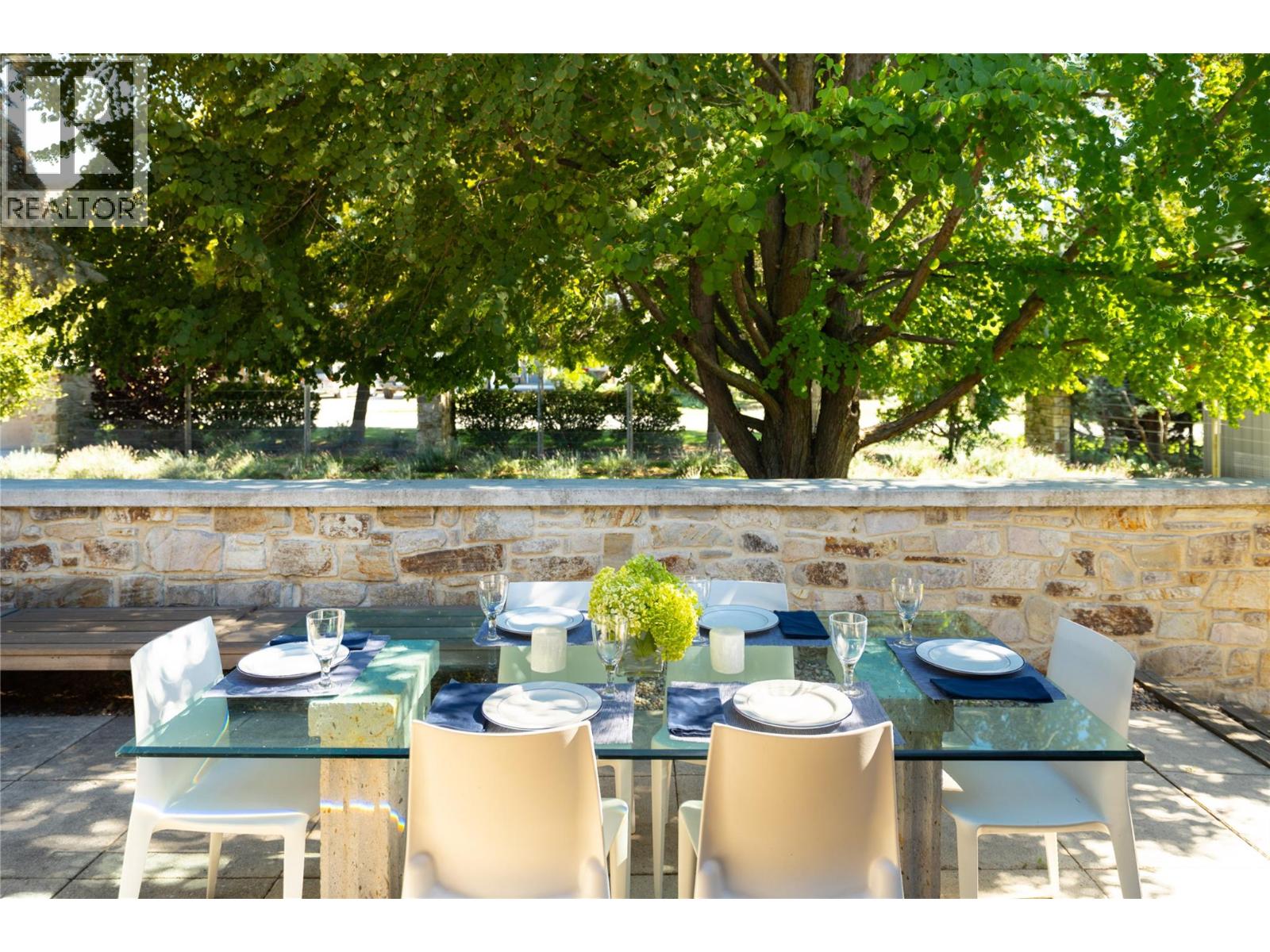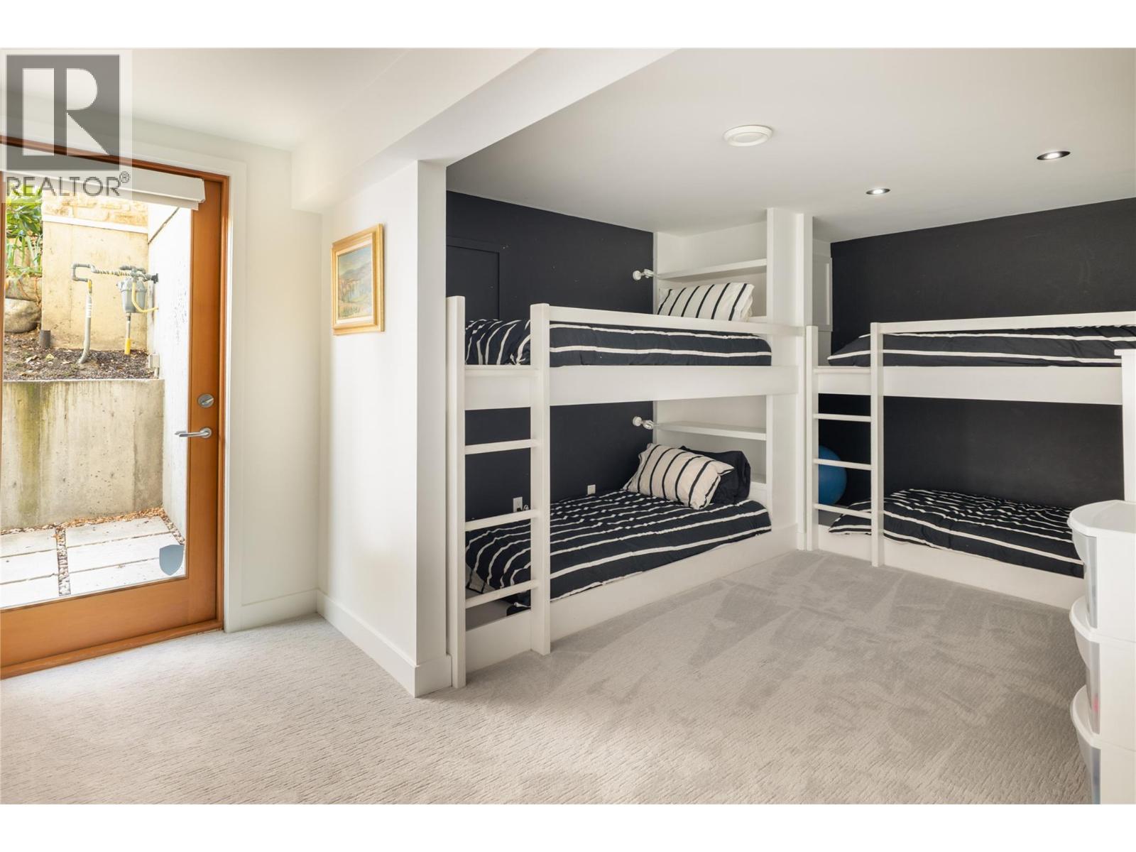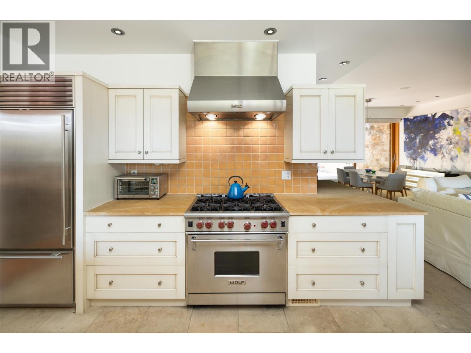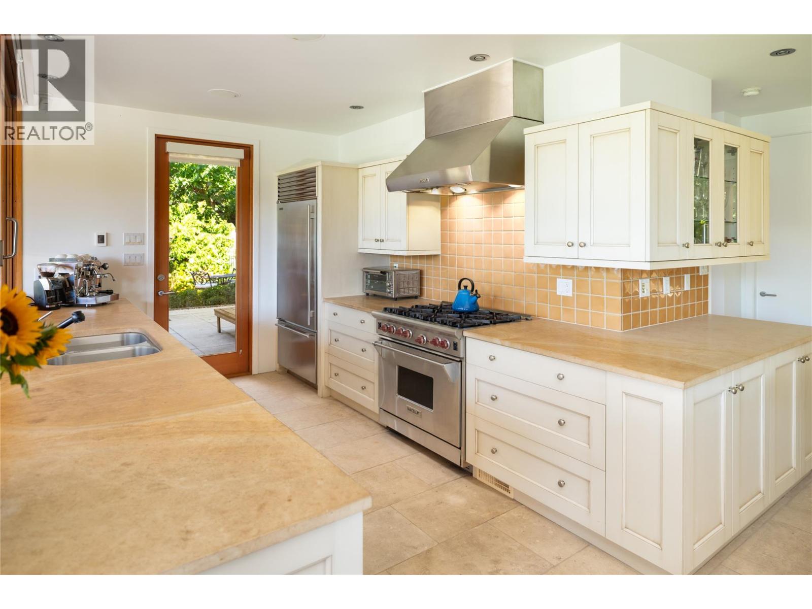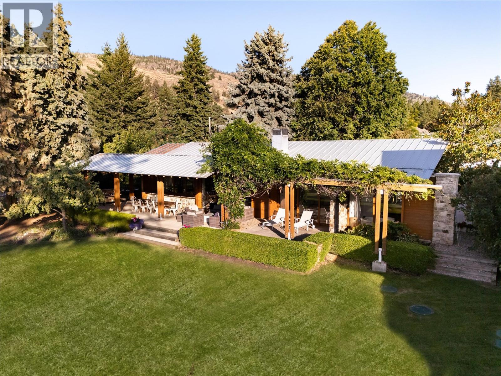 Beautiful unique waterfront home on the shores of Skaha Lake, offering 0.56 acres with a sandy beach and private dock. This contemporary residence captures timeless elegance in a premier lakefront setting. Award winning architect Cedric Burgers has designed a stunning residence which perfectly complements its surroundings, with extensive use of natural wood and stone. Architecturally designed with gorgeous and innovative features, the main level boasts fully pocketing doors which create a sensational blend of indoor & outdoor living, perfectly blending structure and nature including private dining areas on each side of the home. The kitchen features Wolf appliances, and further pocketing windows opening onto the exterior dining area. Open concept living and dining, with cozy stone gas fireplace. The primary bedroom features sensational lake views and a beautiful ensuite bathroom. Two more bedrooms and a full bath complete the main level. Downstairs is the family retreat, with games/media room, two more bedrooms, and full bathroom. Exceptional quality together with an impeccable choice of materials define this lakefront home. Many features include extensive natural stone detail, heated tile floors throughout, hot tub, and endless outdoor living spaces. The expansive backyard features lush landscaping for all the summer activities, blending perfectly with the architecture of the home. Secure gated entrance and oversized double garage, with workshop/storage & EV charger. Newly built dock with boat lift and storage for paddle boards and more. (id:47466)