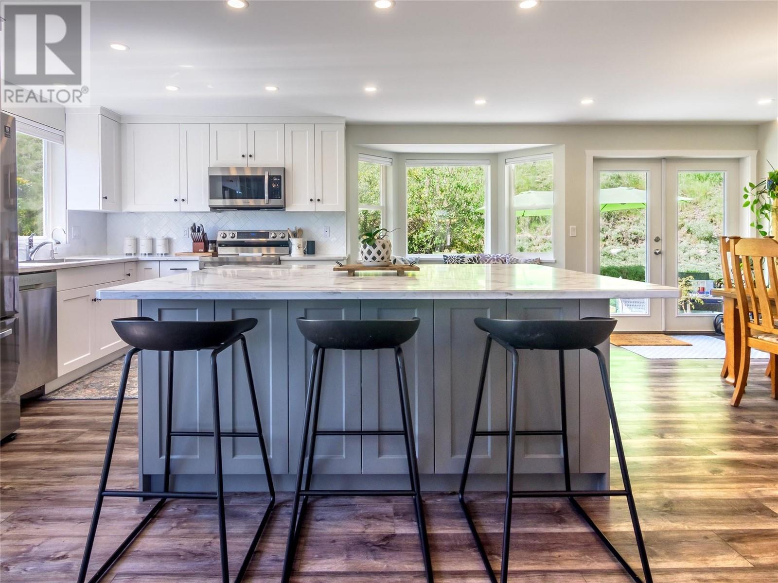 Welcome to St Andrews golf course! This turnkey family home is updated throughout & sits perched above the golf course with stunning views & pristine nature & complete privacy surrounding. As you enter the spacious foyer you’ll find the perfect home office or 5th bedrm to your left. Ahead is the spacious rec room with easy care laminate floors, a large & very bright 4th bedrm, 3-piece bathrm, + laundry & mechanical & direct access from your double car garage. Upstairs on the main floor is a family friendly layout with 3 bedrms together & the dream open concept plan. In the spacious fully renovated great room youll find the stunning new dream kitchen with white cabinets & a huge feature island, gorgeous custom built-ins around the fireplace, vinyl plank floors, new window blinds, natural light filling the space & unbelievable views to enjoy. From the front of the home entertain on the large deck with unobstructed valley views down the golf greens. From the back enjoy the walkout to the large patio with hot tub, bbq area, lounging space, & complete privacy in pristine nature that is all part of the St Andrews grounds. Top it off with a beautiful primary bedrm with vaulted ceilings, vinyl plank floors, & updated ensuite bathrm, + 2 kids bedrms with brand new carpet. The home has a brand new roof, poly b removed, & updates in & out throughout. Enjoy the perks of golf course ownership, free unlimited golf + the ownership/use of the club house/pool/tennis/trails/RV parking & more! (id:47466)