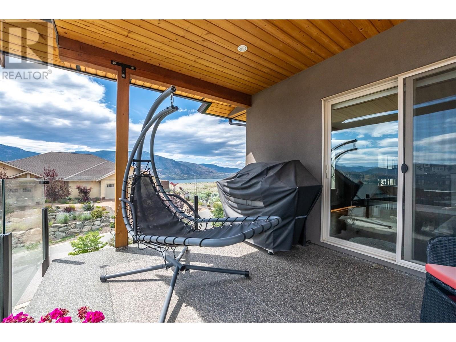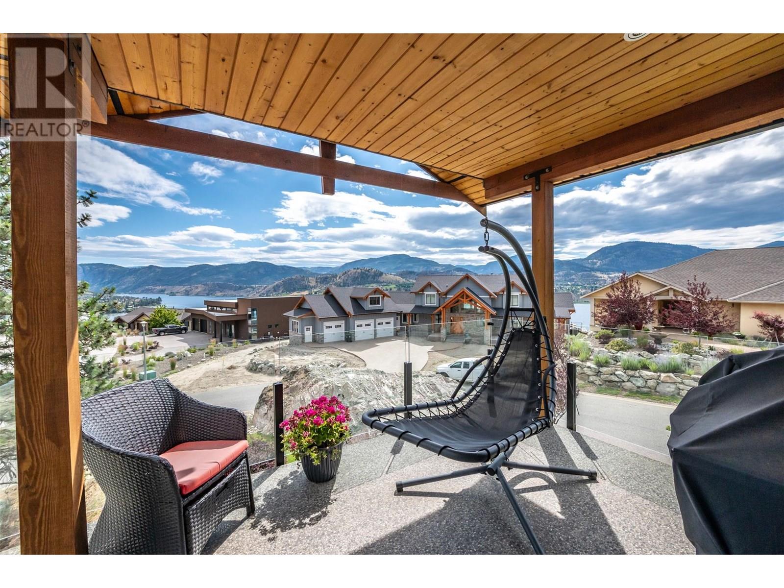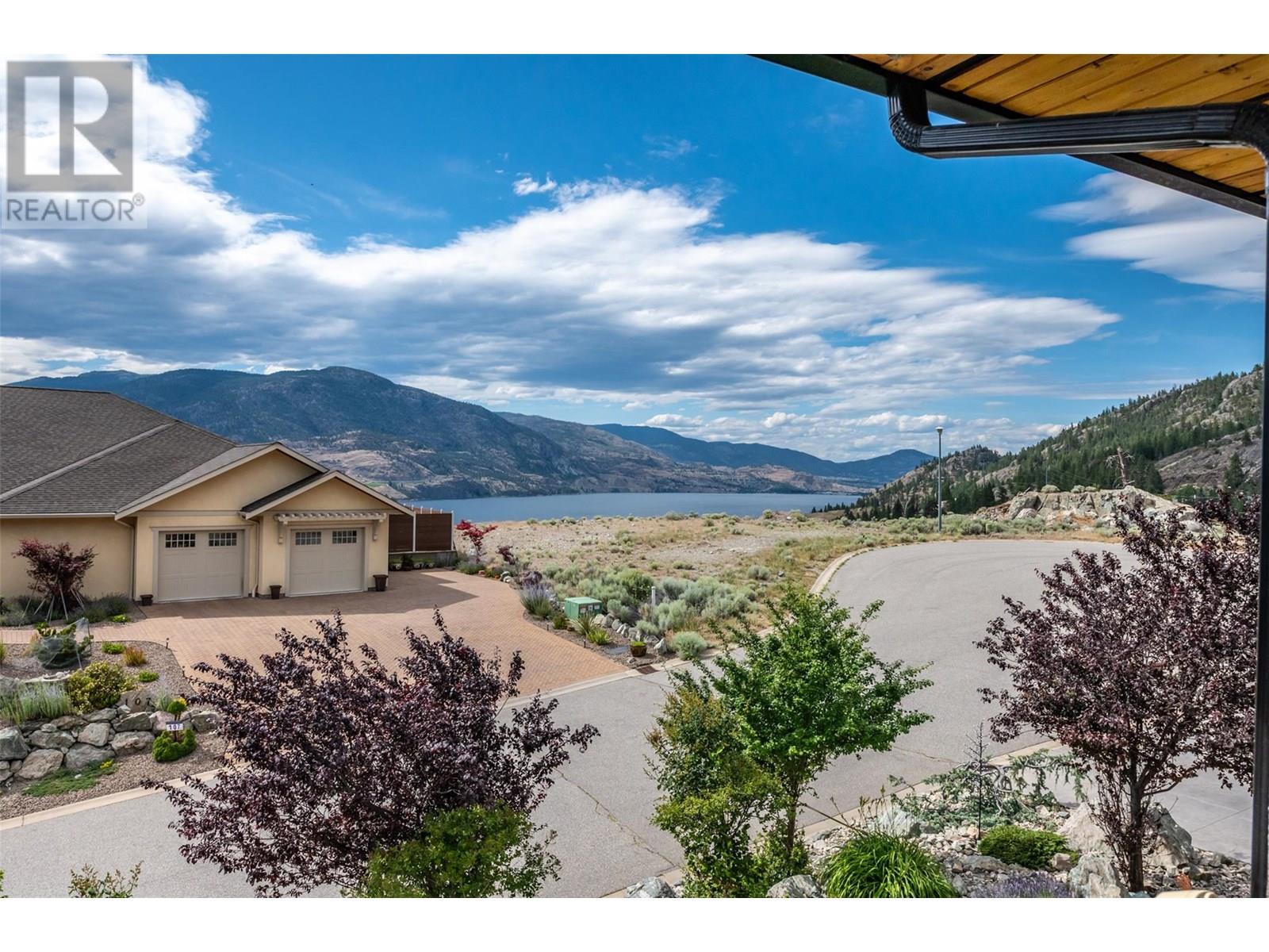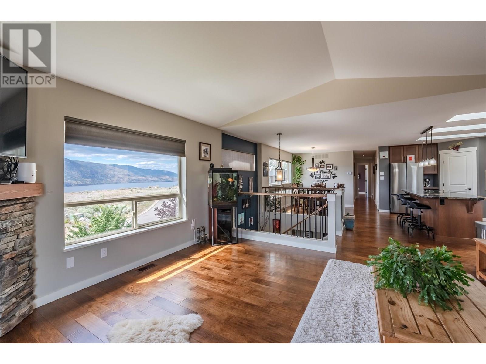 Beautiful family home in the prestigious Vintage Views! Just a 10 minute drive to Penticton. Here is your opportunity to own this 4 bedroom, 3 bath home with absolute stunning South and West facing views of Skaha lake, mountain and valley. This well appointed home features an open concept main floor with a large living room, kitchen with stainless appliances and a large island with granite counter that opens to the spacious dining area. The living room offers a gas fireplace, plenty of windows and a spacious South facing deck to take in the views, bedrooms, bathroom & a large master suite plus gorgeous engineered hardwood floors complete the upper main floor. Below you will find an inviting front foyer, a substantial media / family room with a south facing patio & hot tub, another good size bedroom, full bath, laundry room and access to the large double car garage. There is plenty of parking for your toys and RV. This home is located on a quiet cul de sac with plenty of space between you & your neighbors. (id:47466)