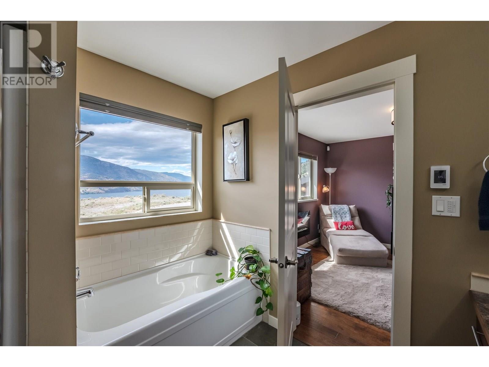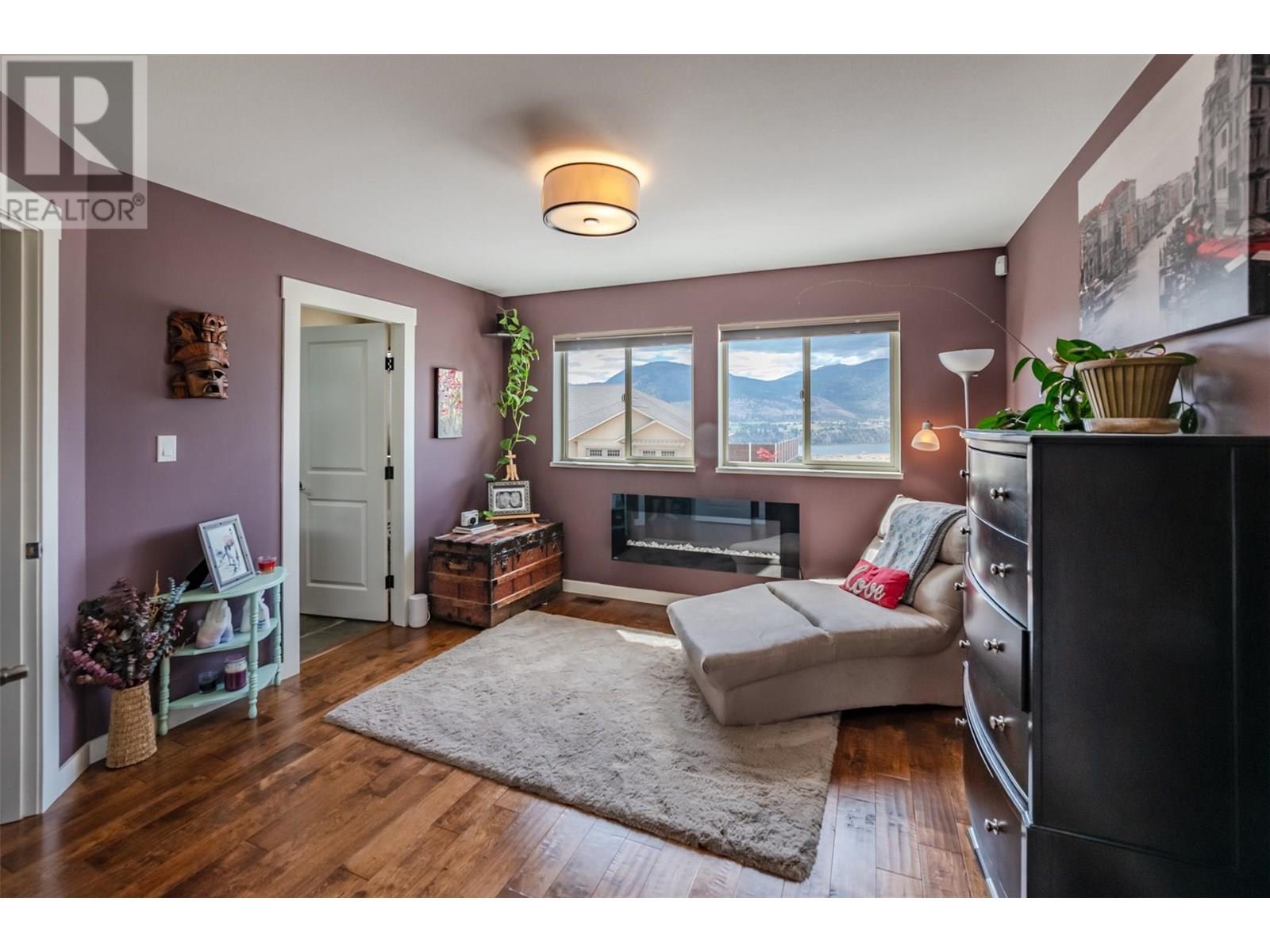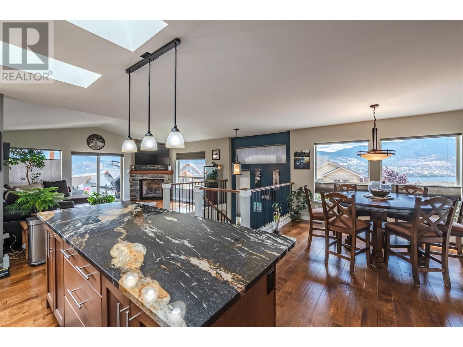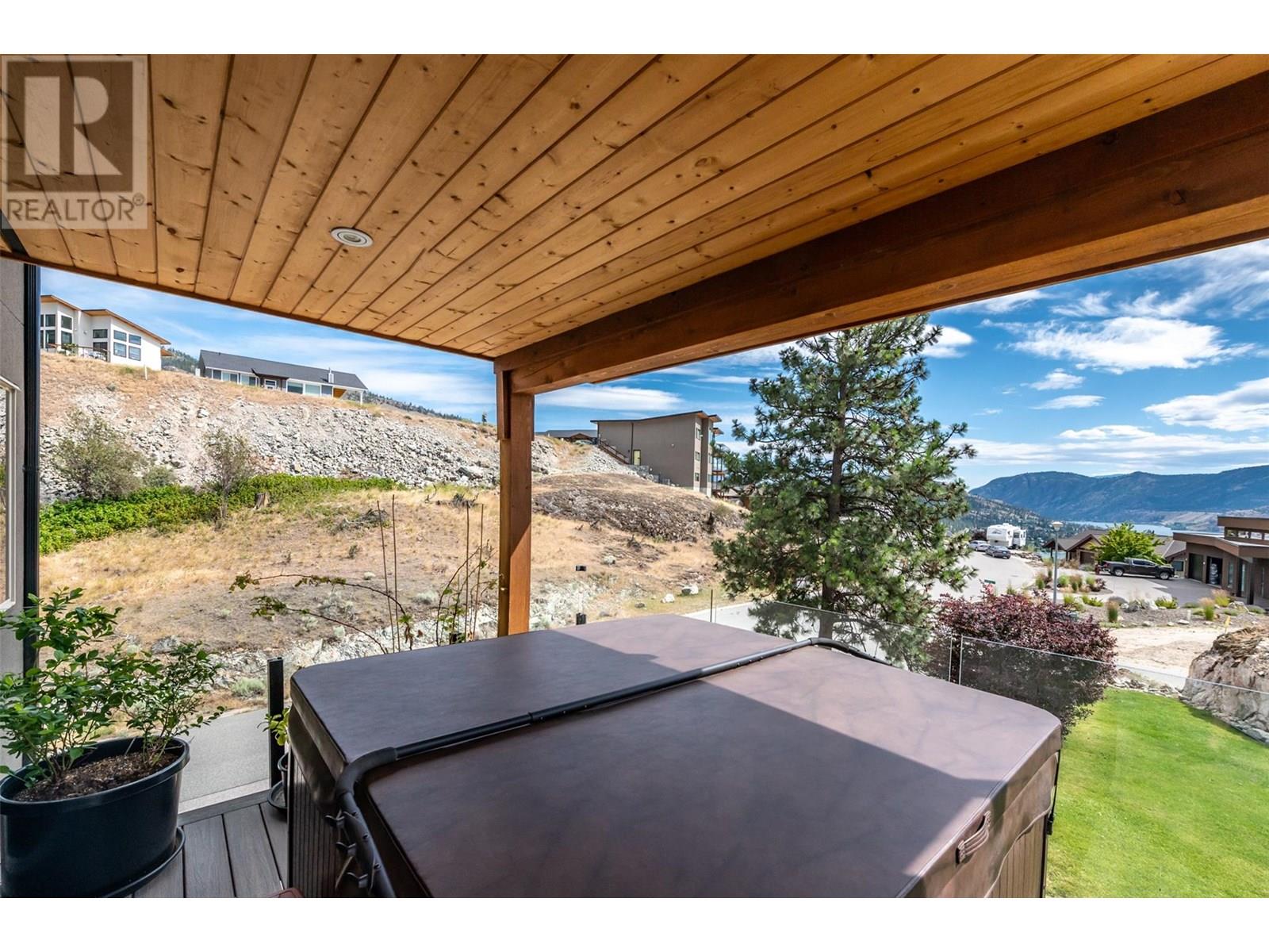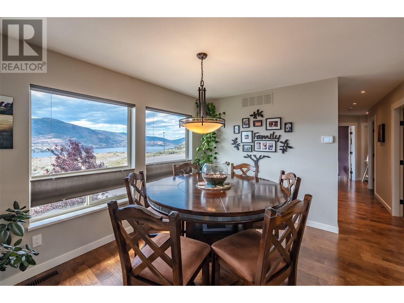 Beautiful family home in the prestigious Vintage Views! Just a 10 minute drive to Penticton. Here is your opportunity to own this 4 bedroom, 3 bath home with absolute stunning South and West facing views of Skaha lake, mountain and valley. This well appointed home features an open concept main floor with a large living room, kitchen with stainless appliances and a large island with granite counter that opens to the spacious dining area. The living room offers a gas fireplace, plenty of windows and a spacious South facing deck to take in the views, bedrooms, bathroom & a large master suite plus gorgeous engineered hardwood floors complete the upper main floor. Below you will find an inviting front foyer, a substantial media / family room with a south facing patio & hot tub, another good size bedroom, full bath, laundry room and access to the large double car garage. There is plenty of parking for your toys and RV. This home is located on a quiet cul de sac with plenty of space between you & your neighbors. (id:47466)