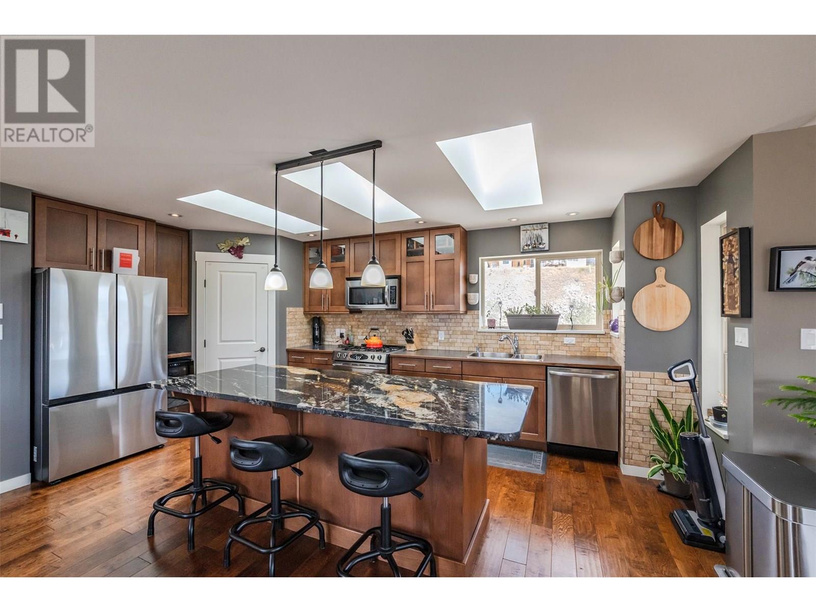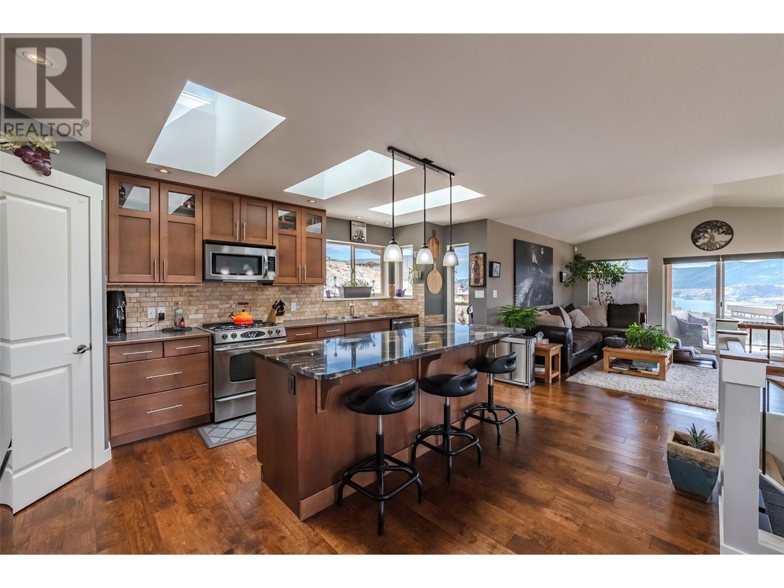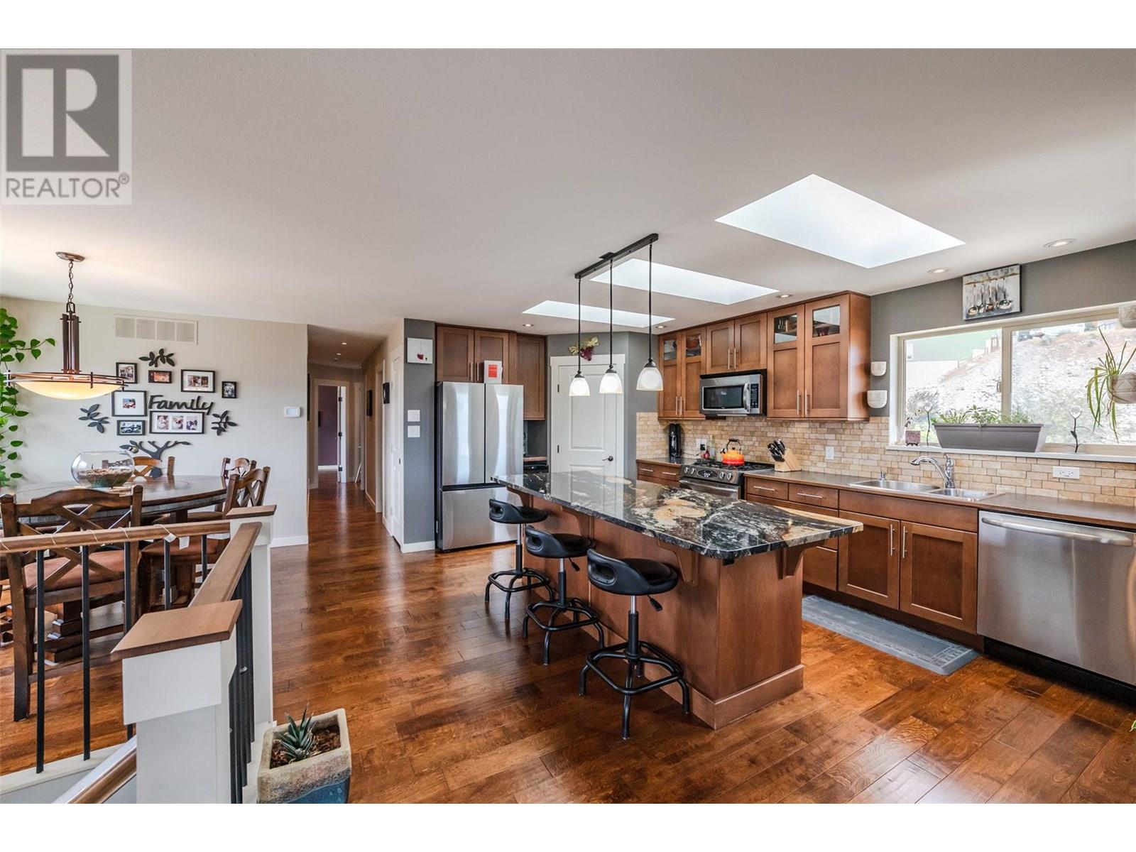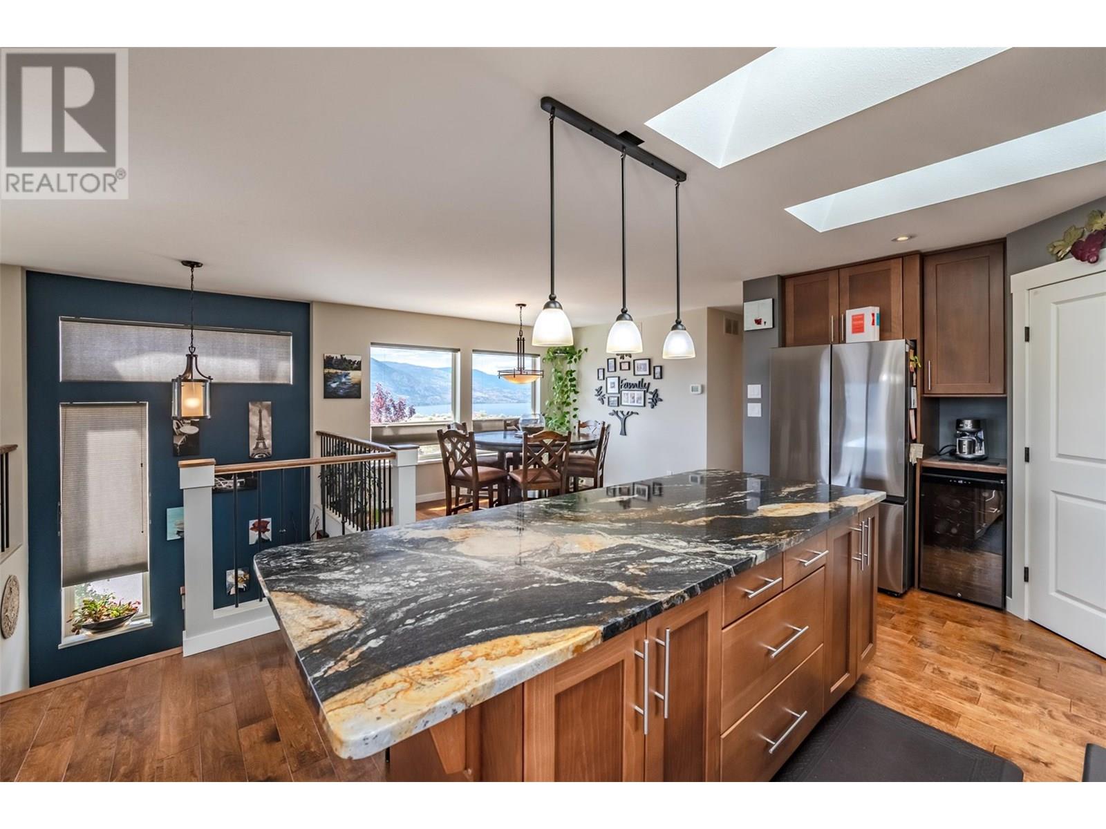 Beautiful family home in the prestigious Vintage Views! Just a 10 minute drive to Penticton. Here is your opportunity to own this 4 bedroom, 3 bath home with absolute stunning South and West facing views of Skaha lake, mountain and valley. This well appointed home features an open concept main floor with a large living room, kitchen with stainless appliances and a large island with granite counter that opens to the spacious dining area. The living room offers a gas fireplace, plenty of windows and a spacious South facing deck to take in the views, bedrooms, bathroom & a large master suite plus gorgeous engineered hardwood floors complete the upper main floor. Below you will find an inviting front foyer, a substantial media / family room with a south facing patio & hot tub, another good size bedroom, full bath, laundry room and access to the large double car garage. There is plenty of parking for your toys and RV. This home is located on a quiet cul de sac with plenty of space between you & your neighbors. (id:47466)