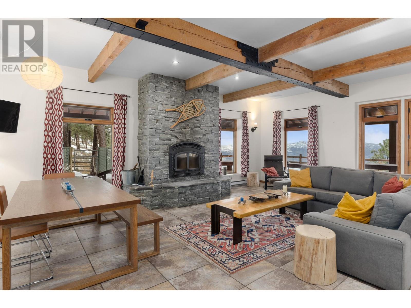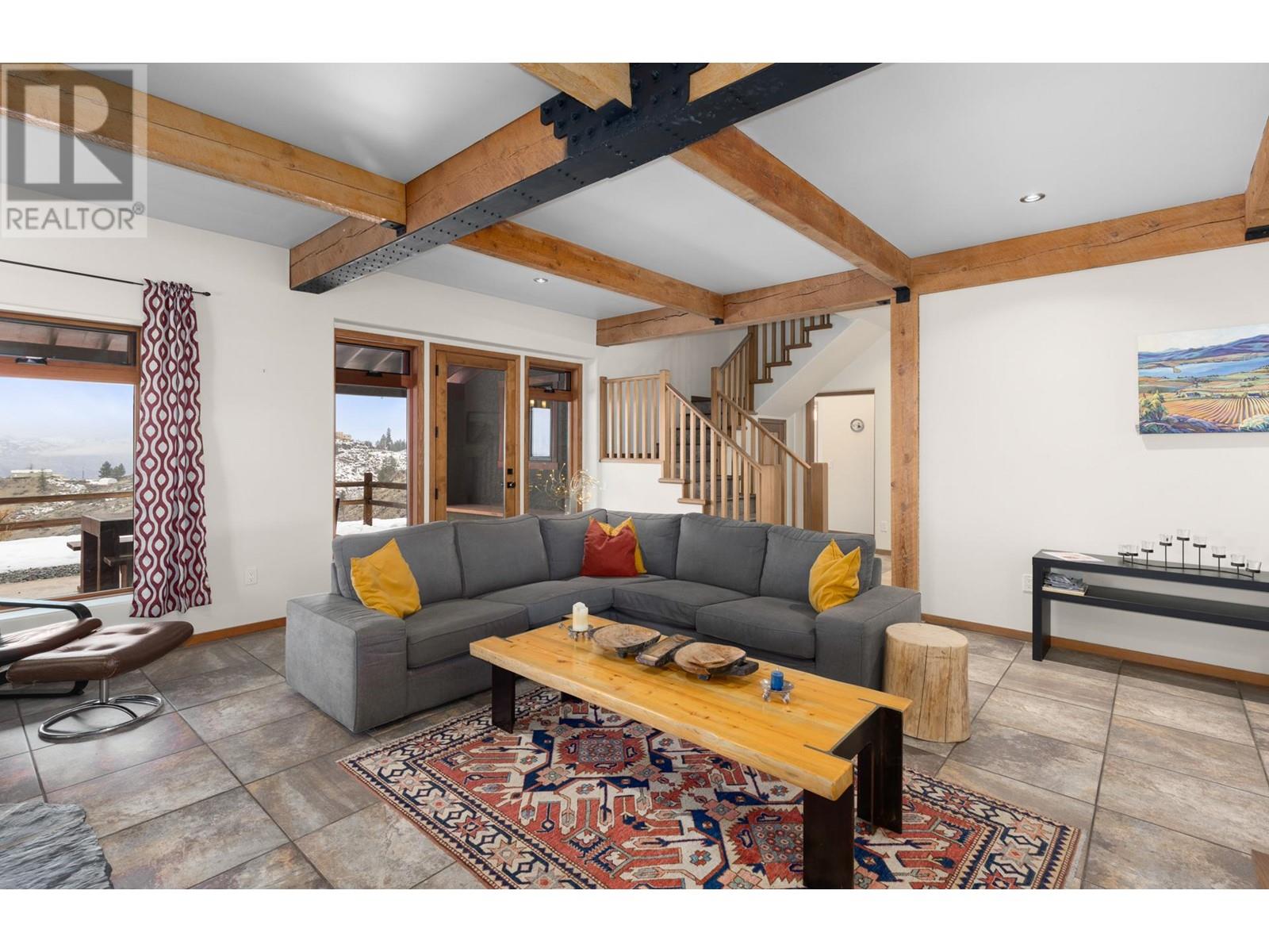 Enjoy the added value of 2 dwellings with sweeping lake and valley views, situated on 9.88 acres and only 10 minutes from Osoyoos. The main house has 2 levels featuring 3 bedrooms, 3 full baths and showcases the primary bedroom with 3pc ensuite bath on the main floor & open living / dining area with a fireplace and windows all round. The kitchen is fully equipped, with gas range, granite countertops, & breakfast bar. There is also another full bathroom as well as a convenient mudroom off the back patio. Upstairs are 2 bedrooms, one with a bonus room for extra sleeping quarters, office space or den. Also a full 4pc bathroom with tub & walk-in shower and a spacious laundry room. An unfinished basement area provides extra storage. The wrap-around covered patio adds a huge outdoor living space to soak in sunny days and unparalleled views. The log cabin has a loft bedroom, compact kitchen, 1 bathroom and the deck is an inviting spot to relax and take in the views. For those with a passion for horses or livestock, this property is well-suited for pasture grazing with a variety of fenced areas and shelters. Additional structures include a few small bunkhouses and sheds, providing flexibility for a variety of uses. The homes are connected to a hybrid solar power system, allowing for a more sustainable & cost-efficient lifestyle. Whether you’re looking for a family estate, an equestrian property, or a private retreat, 110 Chapman Rd offers a rare combination of space & natural beauty. (id:47466)