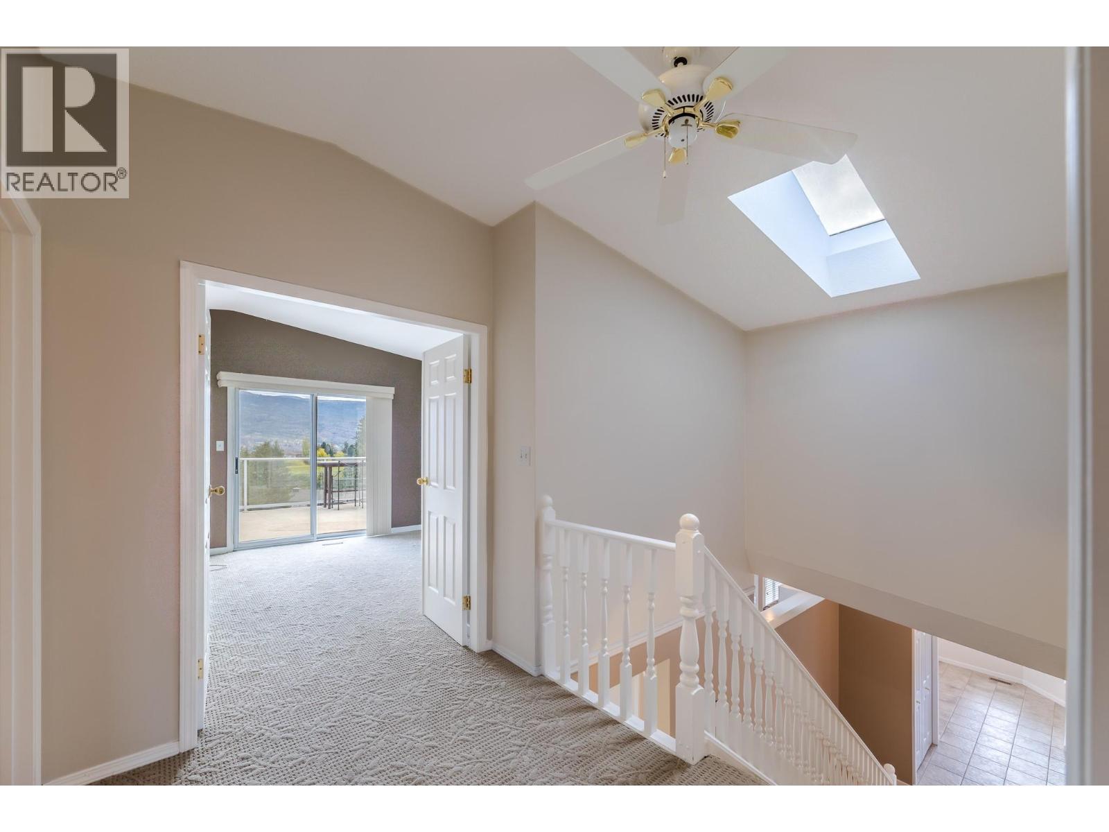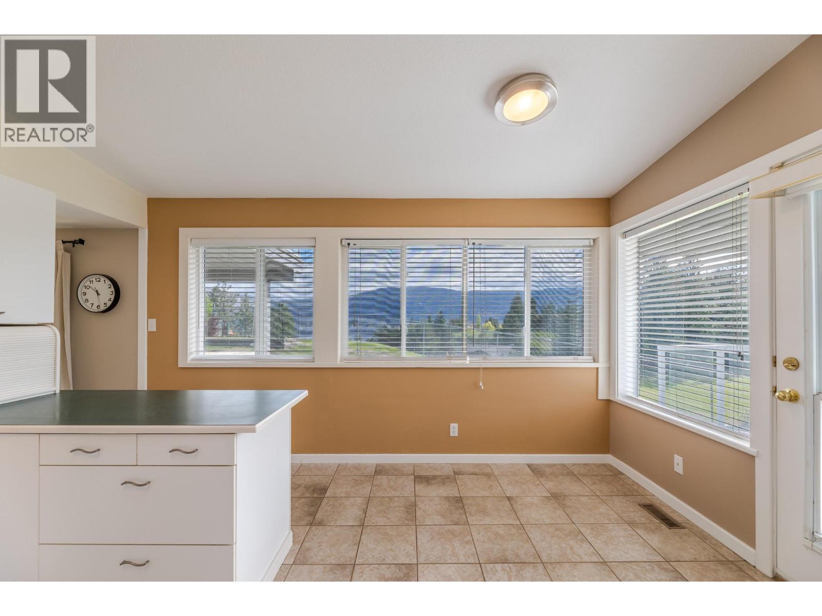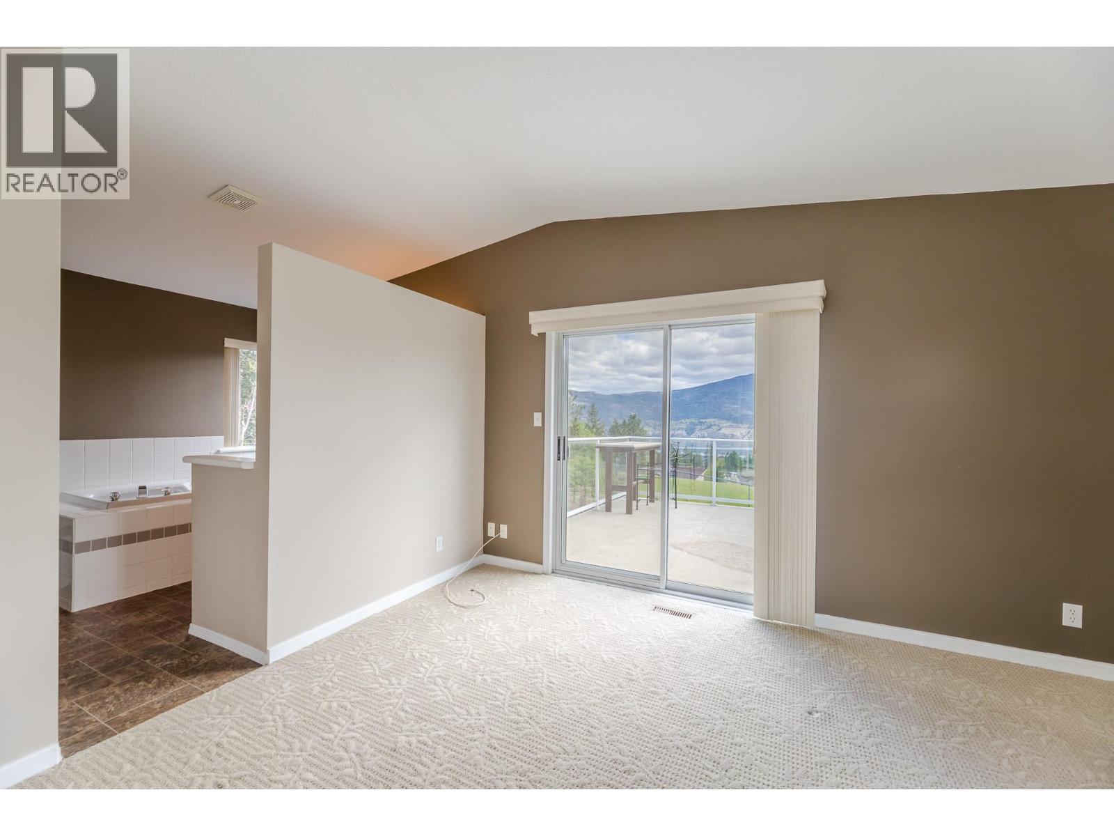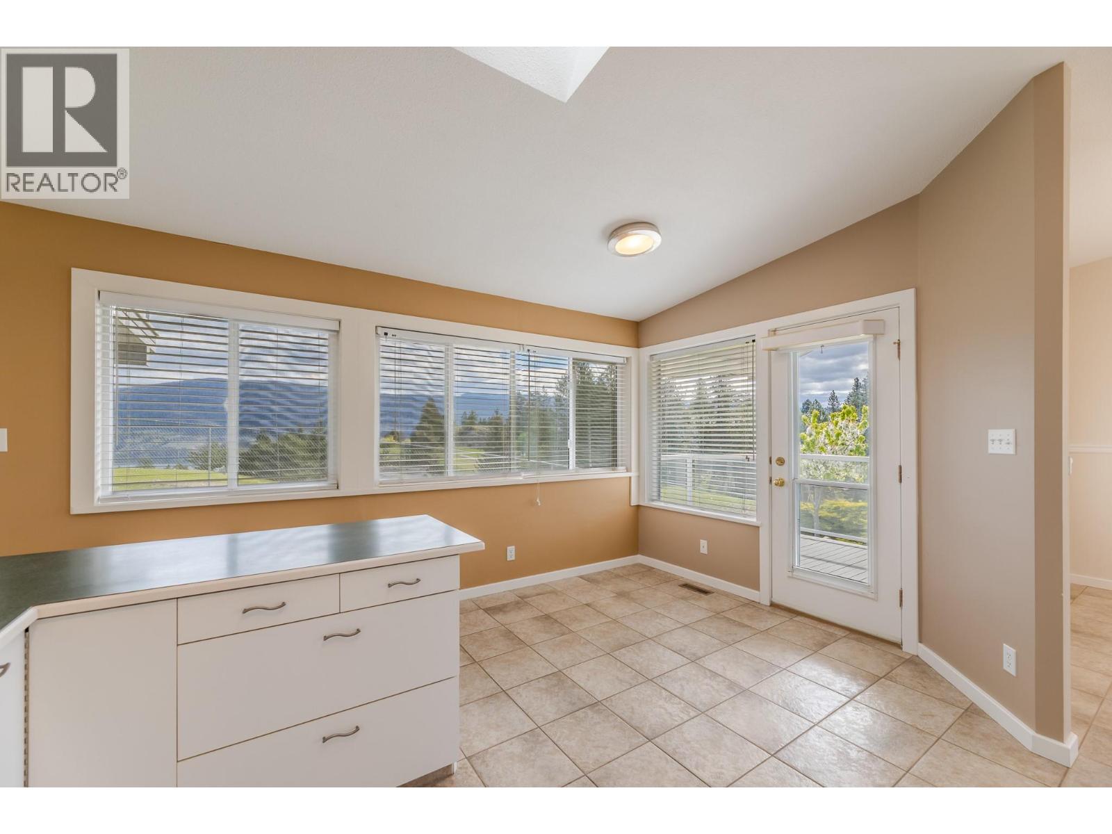 Lovely views of Okanagan Lake from this two-storey home, nestled in the quiet subdivision of Sumac Ridge Lakeview Estates, just north of town. The spacious 3 bedroom and den, 2.5 bathroom home offers the perfect blend of comfort, character, and privacy. Inside, you'll find vaulted ceilings that enhance the open, airy feel of the main living area. A cozy family room off the kitchen, complete with a gas fireplace, creates the perfect space for relaxing or entertaining. The versatile den makes a great home office or hobby space. Upstairs, the large primary suite features a full ensuite bathroom and opens onto a private deck—perfect for enjoying peaceful mornings with views of the 8th tee box and Okanagan Lake. Outdoors, enjoy your tranquil yard with mature landscaping, raised garden boxes and underground irrigation. The double car garage and extended driveway provide ample parking and added privacy from the road. This unique property combines a desirable location, thoughtful layout, and a classic traditional design—ideal for families, golf enthusiasts, or anyone seeking a serene lifestyle. (id:47466)
