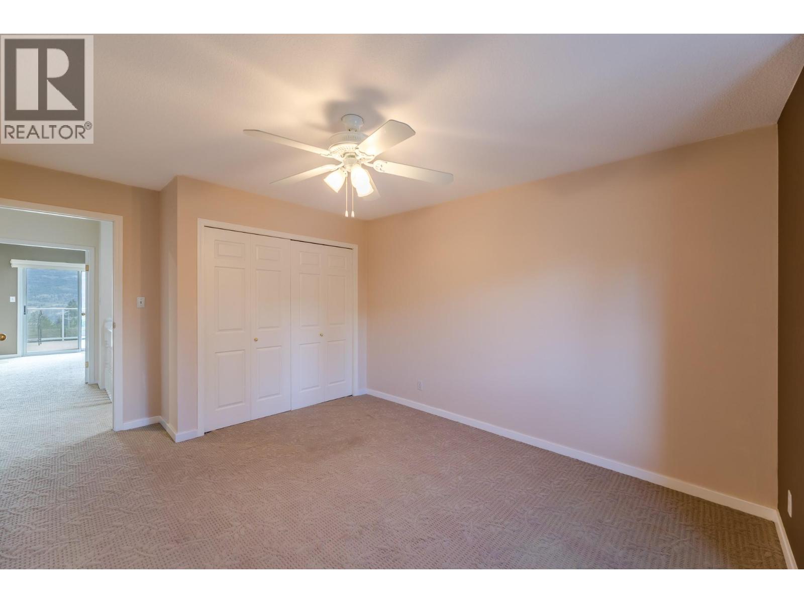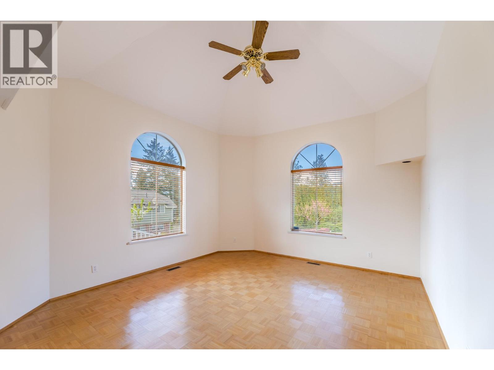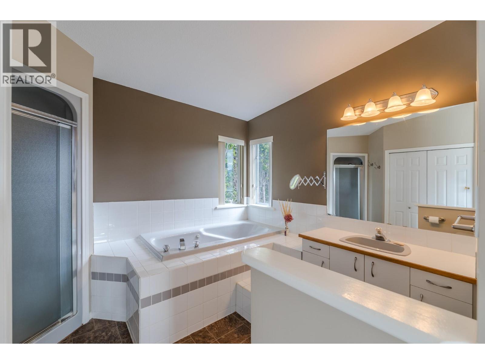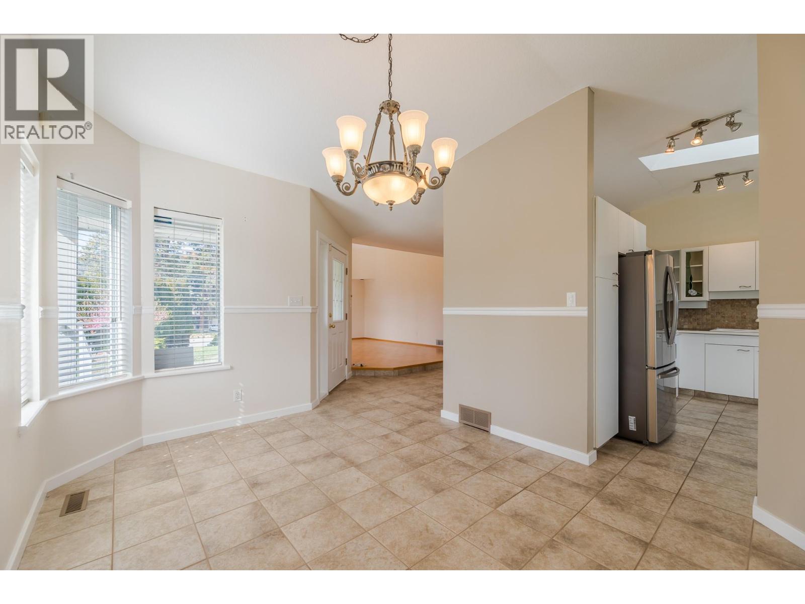 Lovely views of Okanagan Lake from this two-storey home, nestled in the quiet subdivision of Sumac Ridge Lakeview Estates, just north of town. The spacious 3 bedroom and den, 2.5 bathroom home offers the perfect blend of comfort, character, and privacy. Inside, you'll find vaulted ceilings that enhance the open, airy feel of the main living area. A cozy family room off the kitchen, complete with a gas fireplace, creates the perfect space for relaxing or entertaining. The versatile den makes a great home office or hobby space. Upstairs, the large primary suite features a full ensuite bathroom and opens onto a private deck—perfect for enjoying peaceful mornings with views of the 8th tee box and Okanagan Lake. Outdoors, enjoy your tranquil yard with mature landscaping, raised garden boxes and underground irrigation. The double car garage and extended driveway provide ample parking and added privacy from the road. This unique property combines a desirable location, thoughtful layout, and a classic traditional design—ideal for families, golf enthusiasts, or anyone seeking a serene lifestyle. (id:47466)