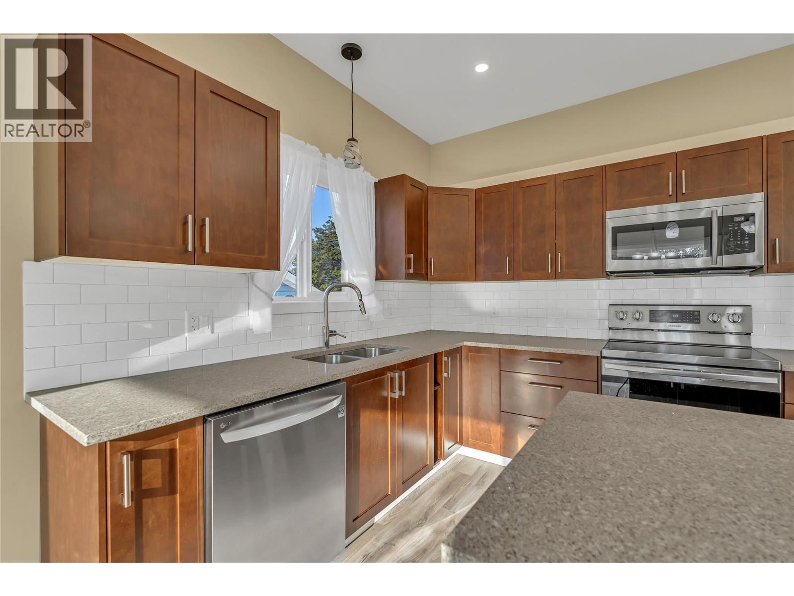 This stylish rancher offers the perfect blend of comfort and convenience, featuring three bedrooms and a bright, open-concept layout in a prime location. Enjoy easy walking distance to downtown Summerland, where shops, restaurants, sports fields, and schools are just minutes away. The home is beautifully appointed with quartz countertops, a stainless steel appliance package, on-demand hot water, and central vacuum. The kitchen boasts custom cabinetry, a center island, and direct access to a covered patio—ideal for entertaining. The spacious primary suite includes two walk-in closets, a modern sliding barn door, and a full ensuite. The backyard is safe, secure, low-maintenance, and even includes a hot tub for relaxing evenings. The over height crawlspace with 7' ceilings offers additional flexibility and extra storage. Located on a quiet street - don't miss your chance to own this home! (id:47466)