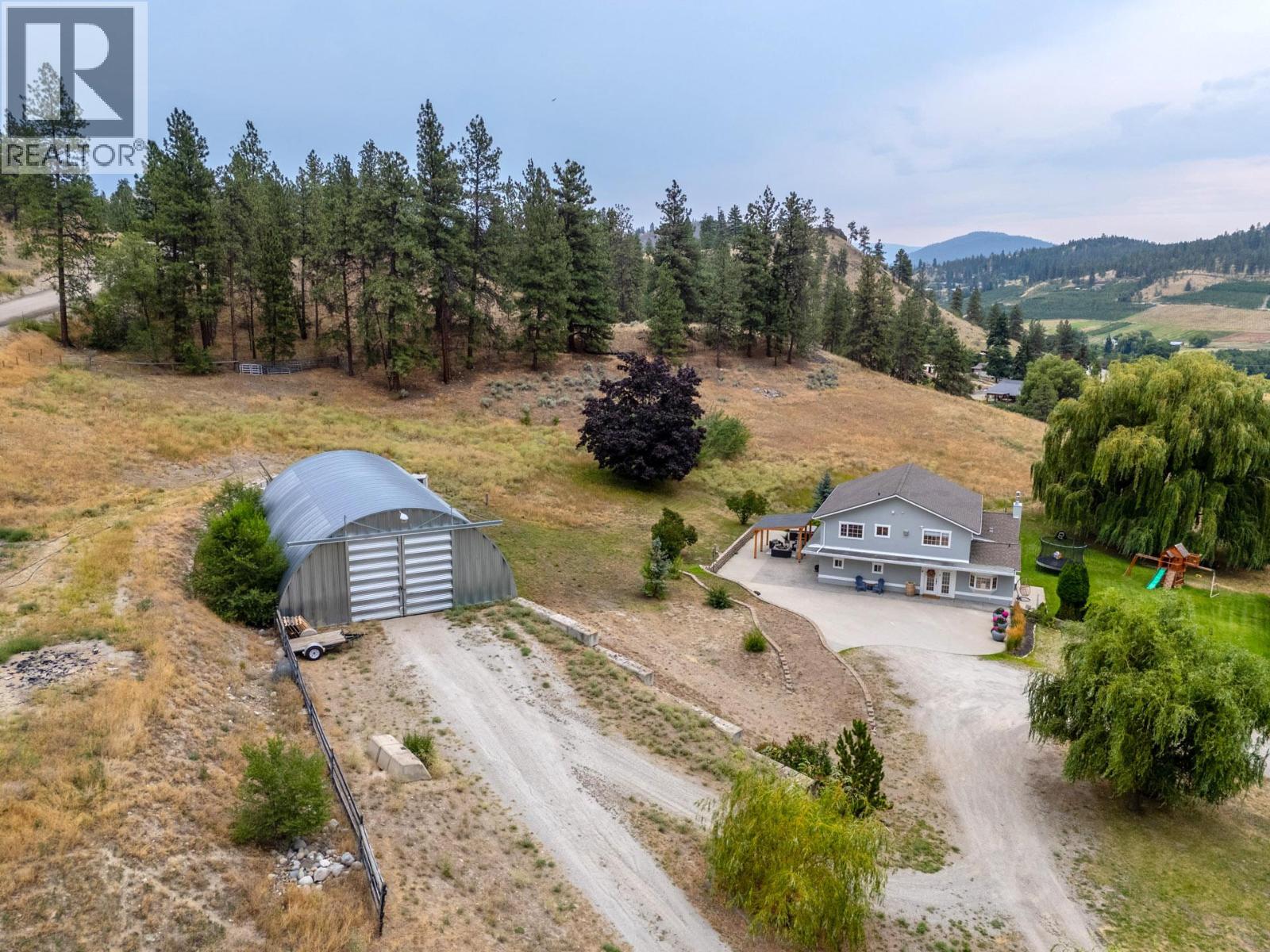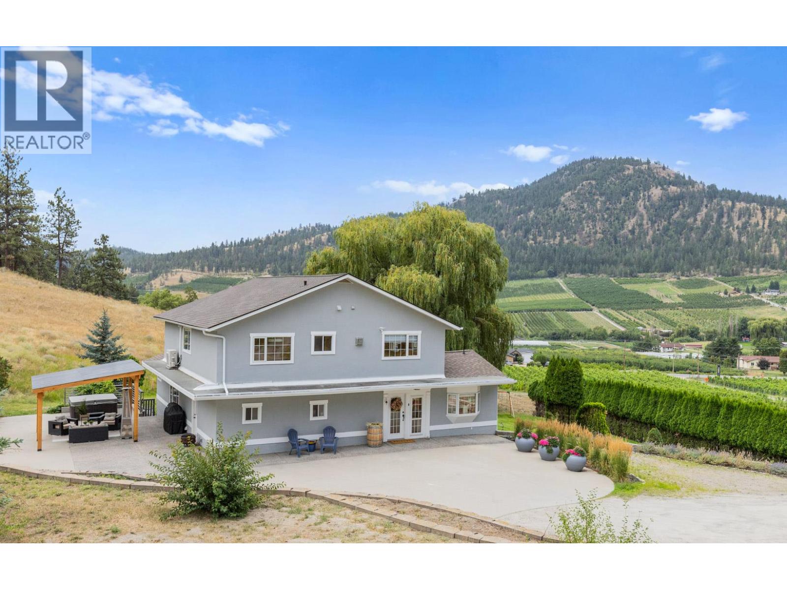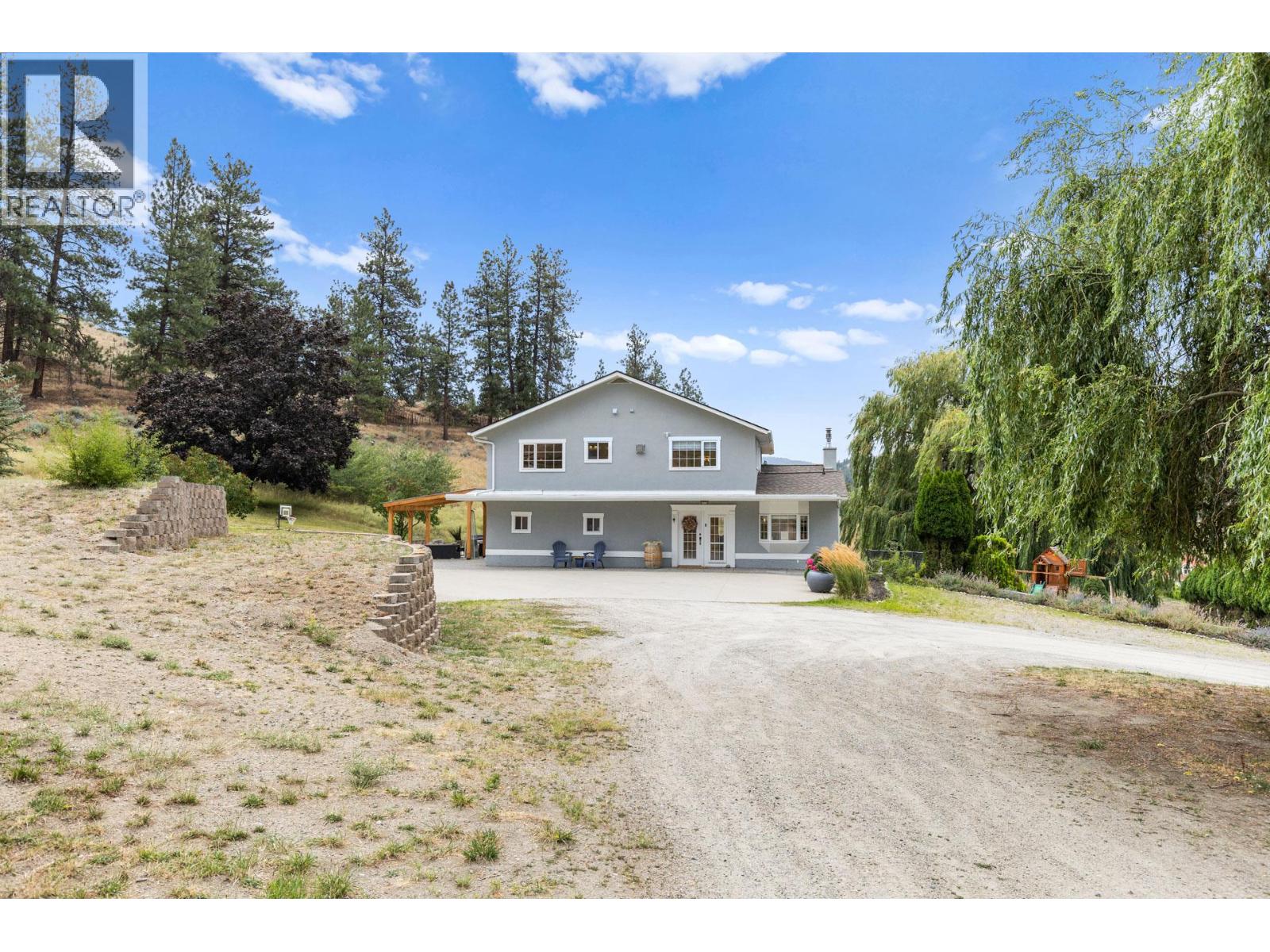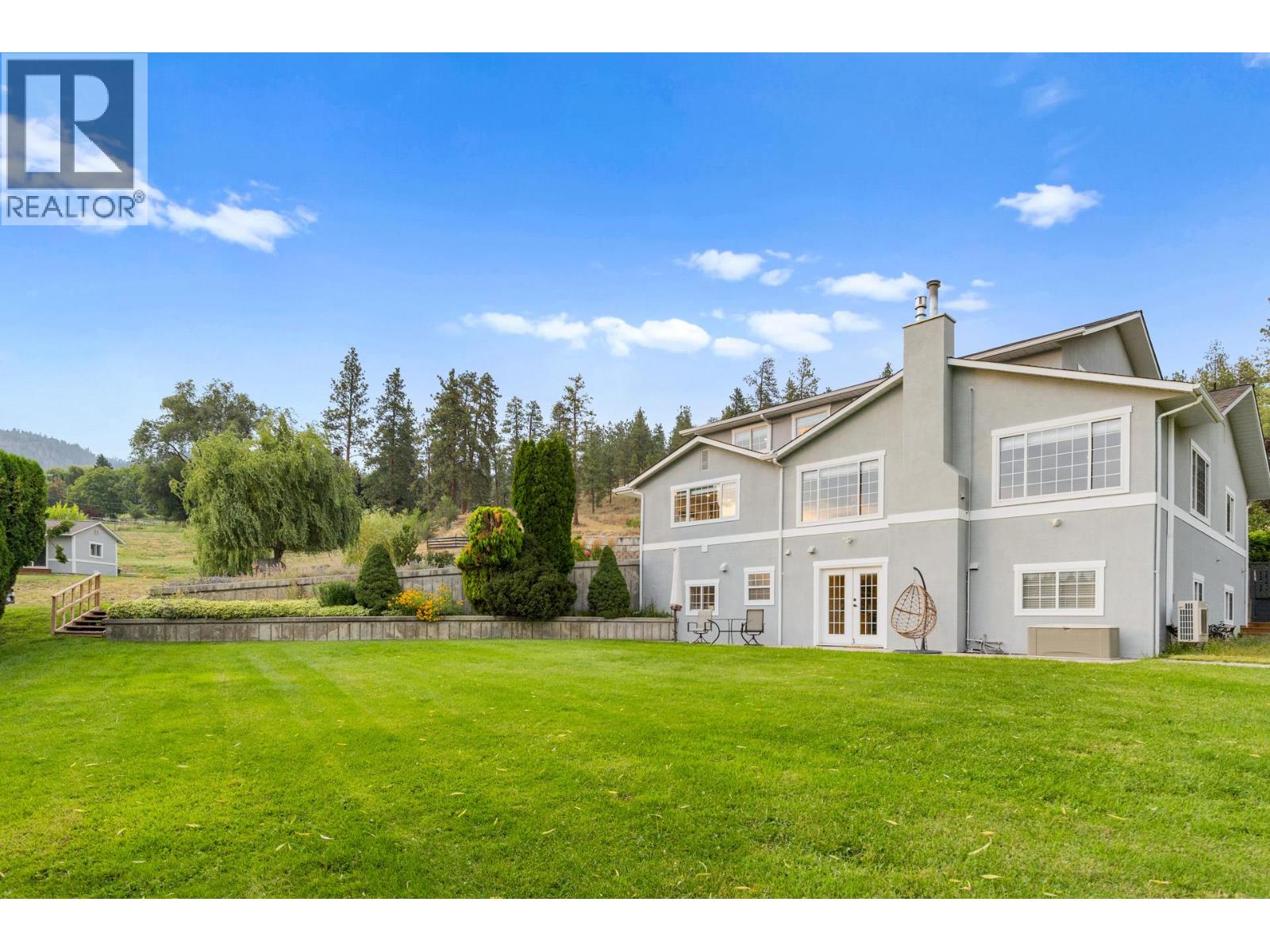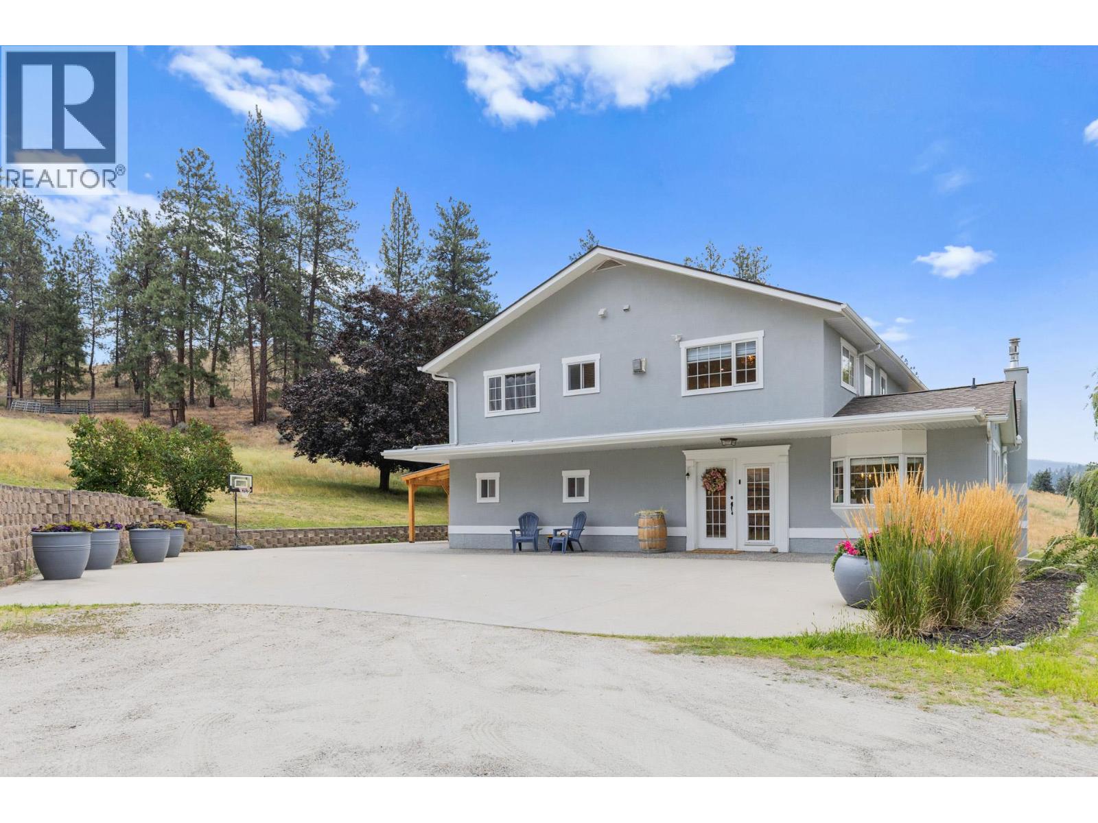 Welcome to one of Summerland’s most extraordinary vineyard estates - a private 10 acre retreat offering unmatched beauty, lifestyle, and versatility. Set at the end of a long, private drive, this stunning 5,686 sq ft residence features 7 spacious bedrooms with every window framing a postcard view, rolling vineyards, lush pastures, and sweeping valley vistas. The chef’s kitchen is a showpiece, boasting granite countertops, 2 farmhouse sinks, oversized island, and premium JennAir stainless steel appliances. The expansive living room is filled with natural light; anchored by a custom gas fireplace. A perfect setting for cozy evenings or vibrant entertaining. Upstairs, four generous bedrooms include a serene primary suite, a spa-style ensuite featuring a jetted soaker tub and a large walk-in shower with dual shower heads. The lower level offers incredible flexibility with a private entrance, second kitchen, and open-concept living- ideal for extended family or guest accommodations. The 3.3 acre vineyard produces sought-after Pinot Noir and Siegerrebe grapes (certified organic), currently cared for by a local winery. Additional features include a 60’ x 40’ Quonset workshop, a charming 345 sq ft studio, private tennis court, oversized parking, and trail access at the property line. Just minutes to town, beaches, and award-winning wineries—this is the Okanagan lifestyle at its absolute finest, where elegance meets opportunity. (id:47466)