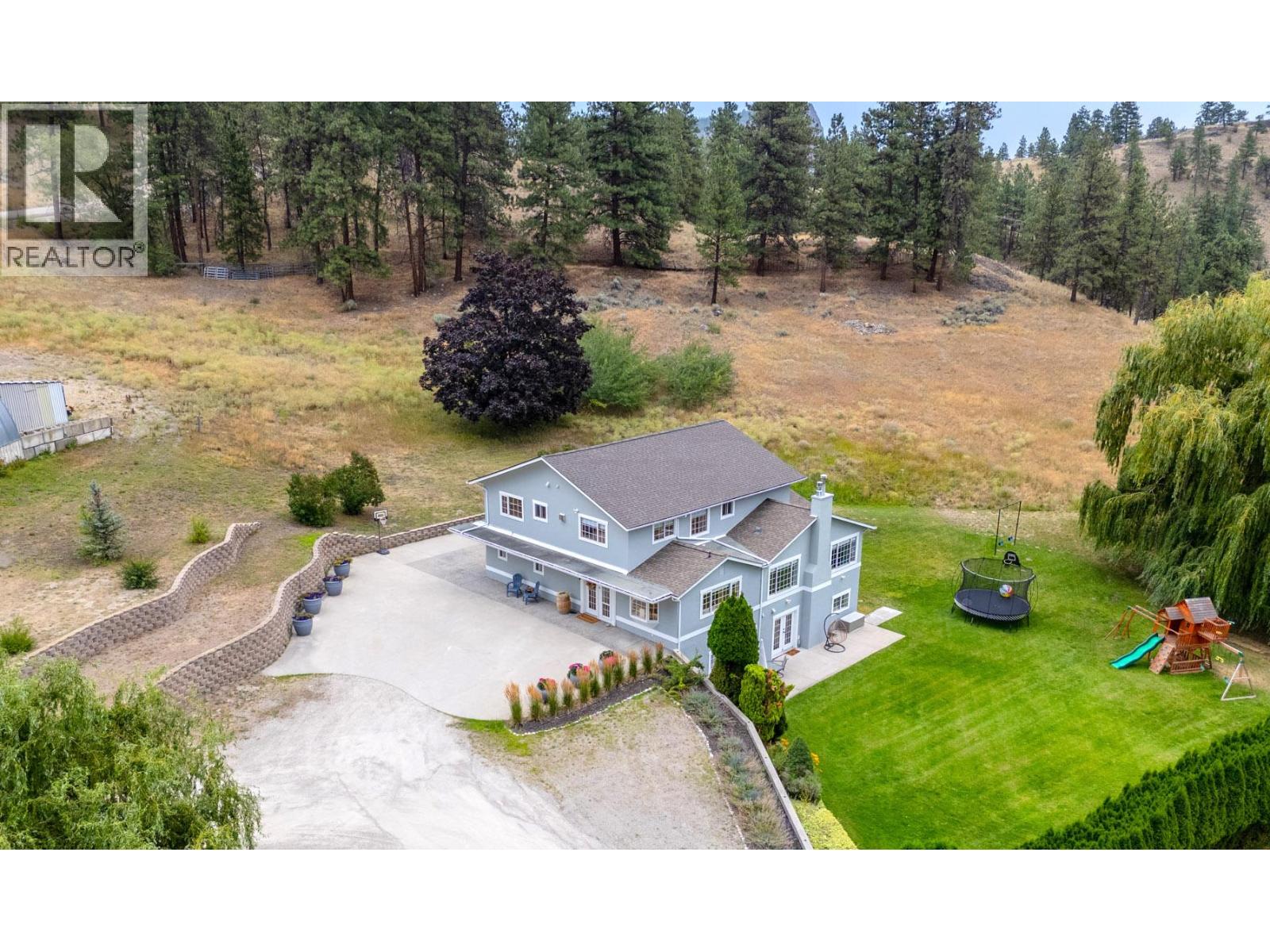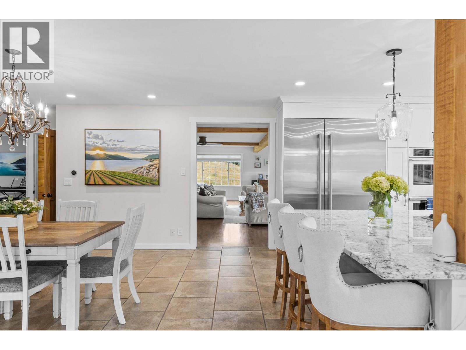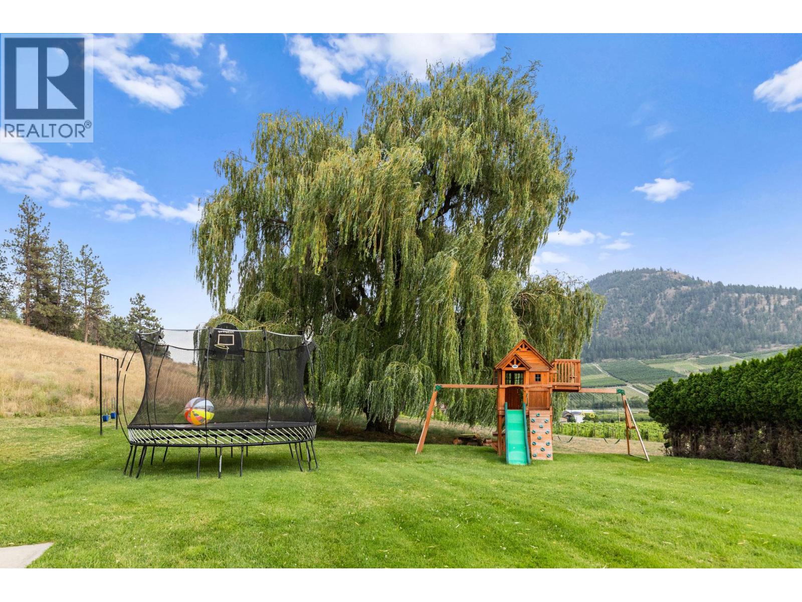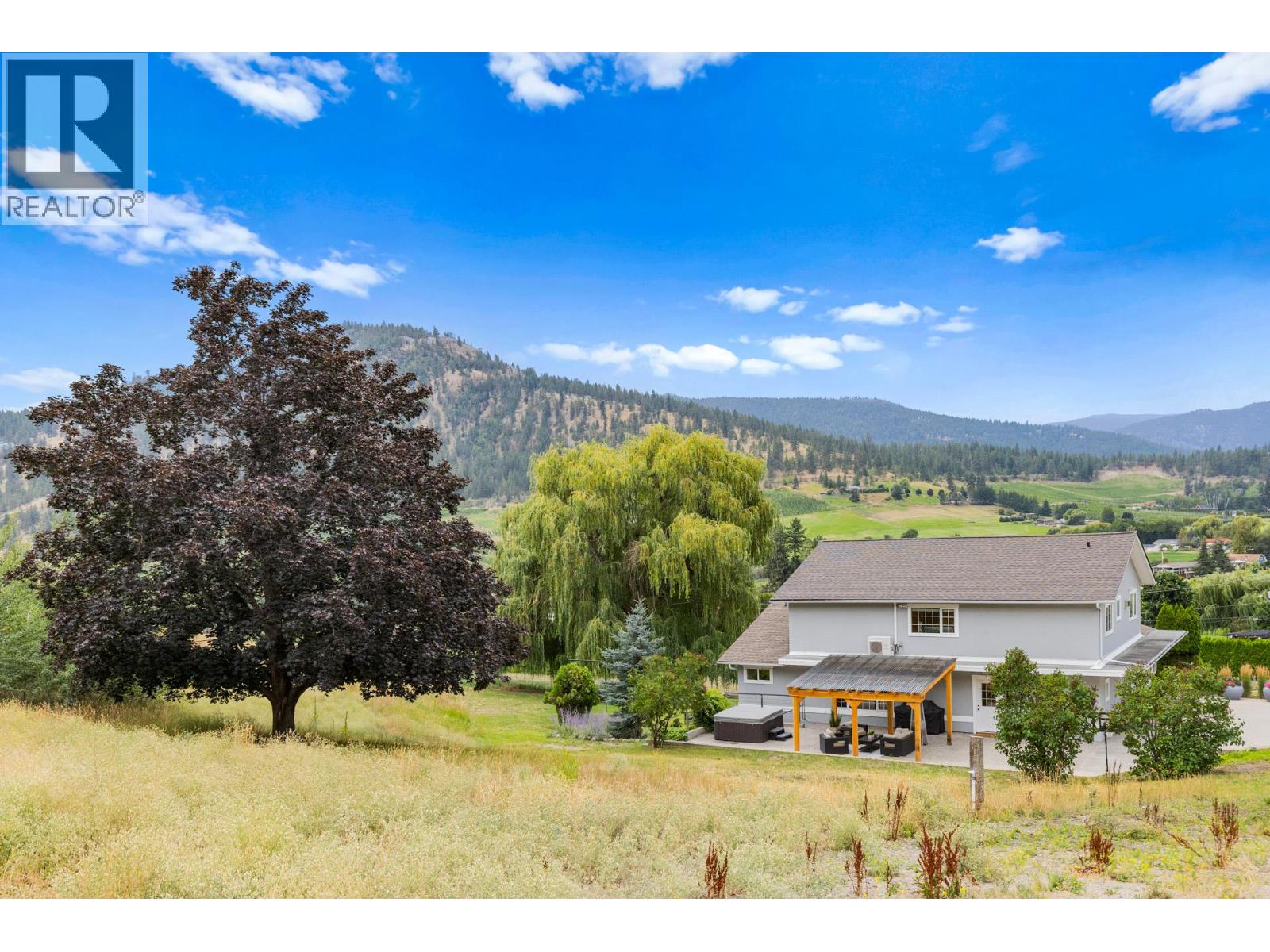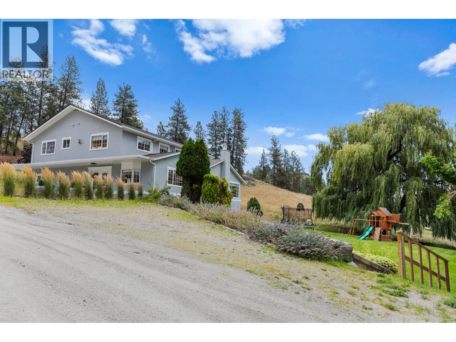 Welcome to one of Summerland’s most extraordinary vineyard estates - a private 10 acre retreat offering unmatched beauty, lifestyle, and versatility. Set at the end of a long, private drive, this stunning 5,686 sq ft residence features 7 spacious bedrooms with every window framing a postcard view, rolling vineyards, lush pastures, and sweeping valley vistas. The chef’s kitchen is a showpiece, boasting granite countertops, 2 farmhouse sinks, oversized island, and premium JennAir stainless steel appliances. The expansive living room is filled with natural light; anchored by a custom gas fireplace. A perfect setting for cozy evenings or vibrant entertaining. Upstairs, four generous bedrooms include a serene primary suite, a spa-style ensuite featuring a jetted soaker tub and a large walk-in shower with dual shower heads. The lower level offers incredible flexibility with a private entrance, second kitchen, and open-concept living- ideal for extended family or guest accommodations. The 3.3 acre vineyard produces sought-after Pinot Noir and Siegerrebe grapes (certified organic), currently cared for by a local winery. Additional features include a 60’ x 40’ Quonset workshop, a charming 345 sq ft studio, private tennis court, oversized parking, and trail access at the property line. Just minutes to town, beaches, and award-winning wineries—this is the Okanagan lifestyle at its absolute finest, where elegance meets opportunity. (id:47466)