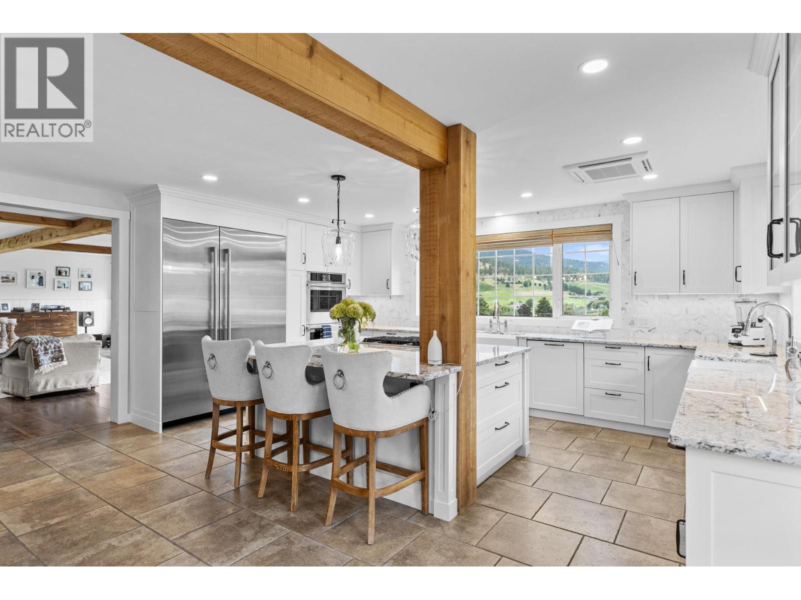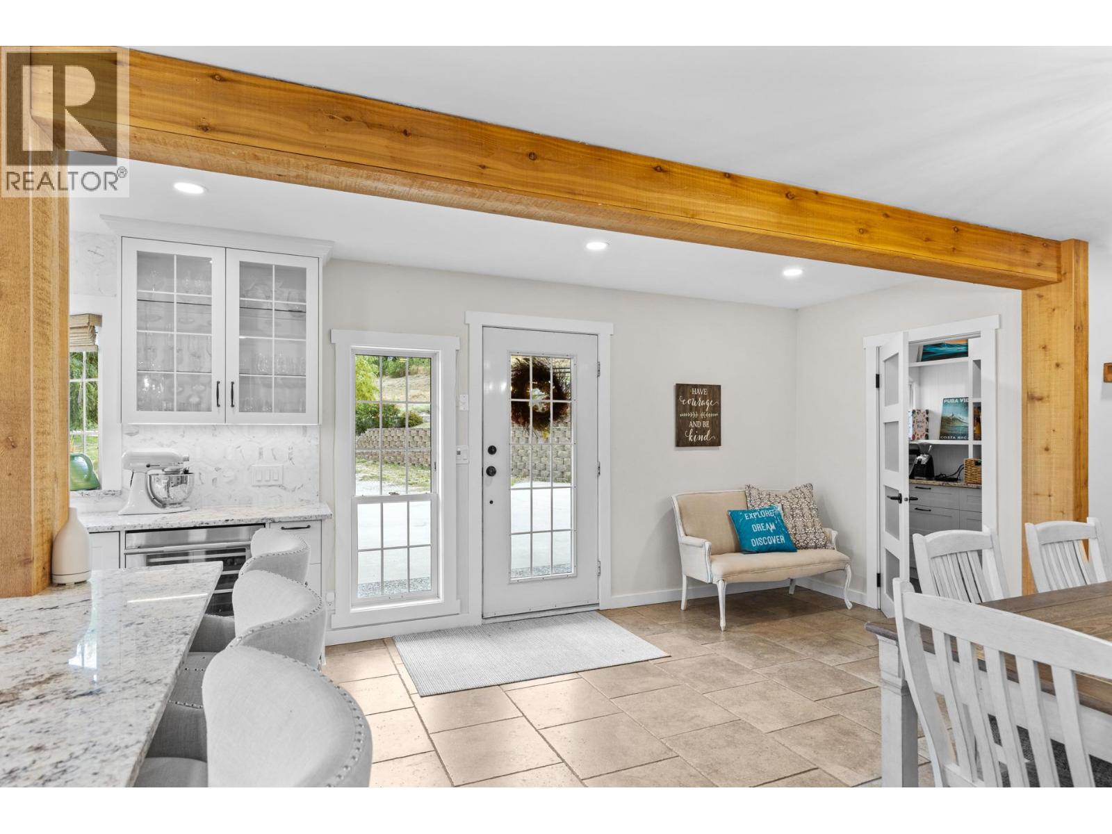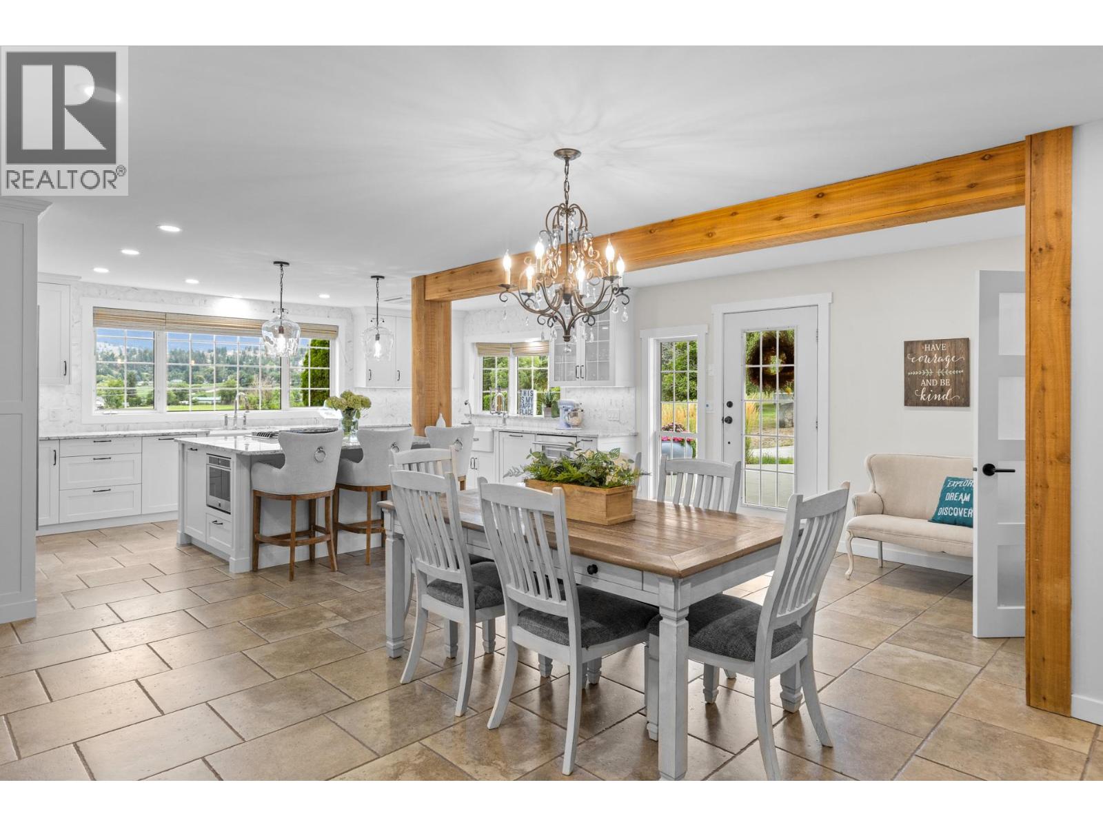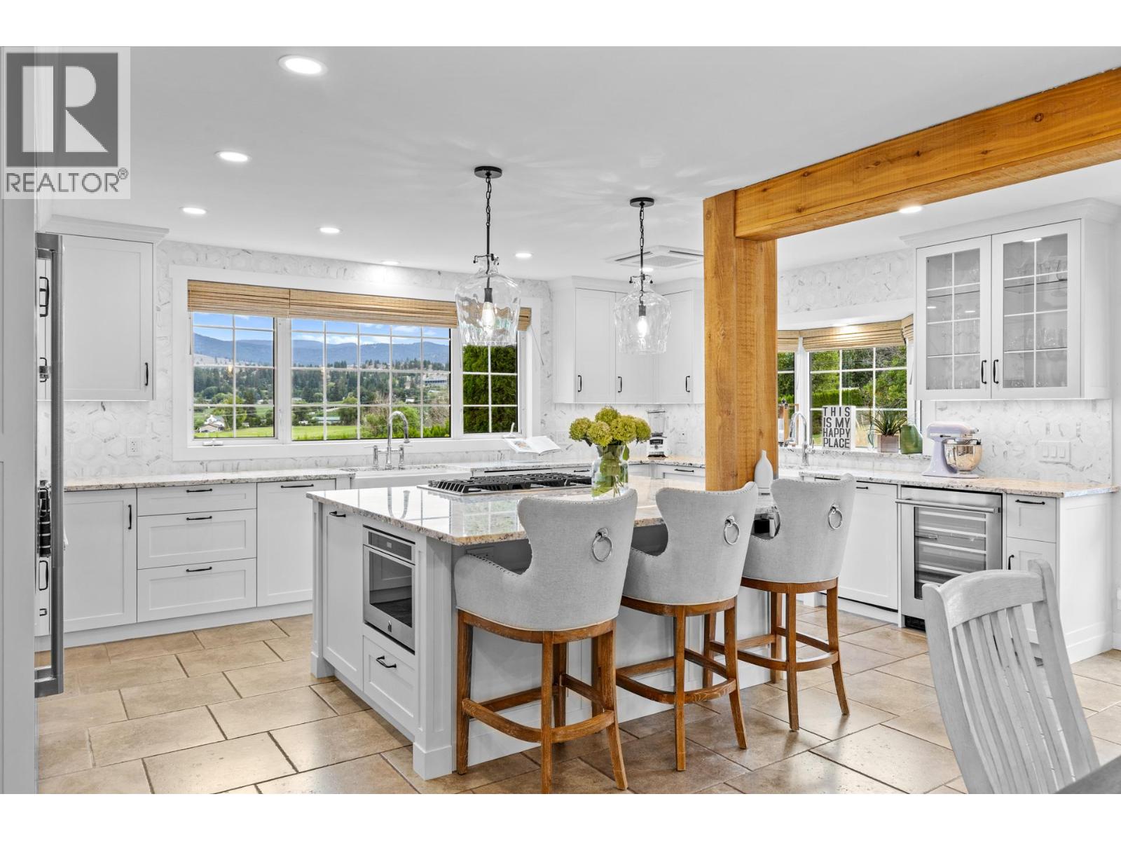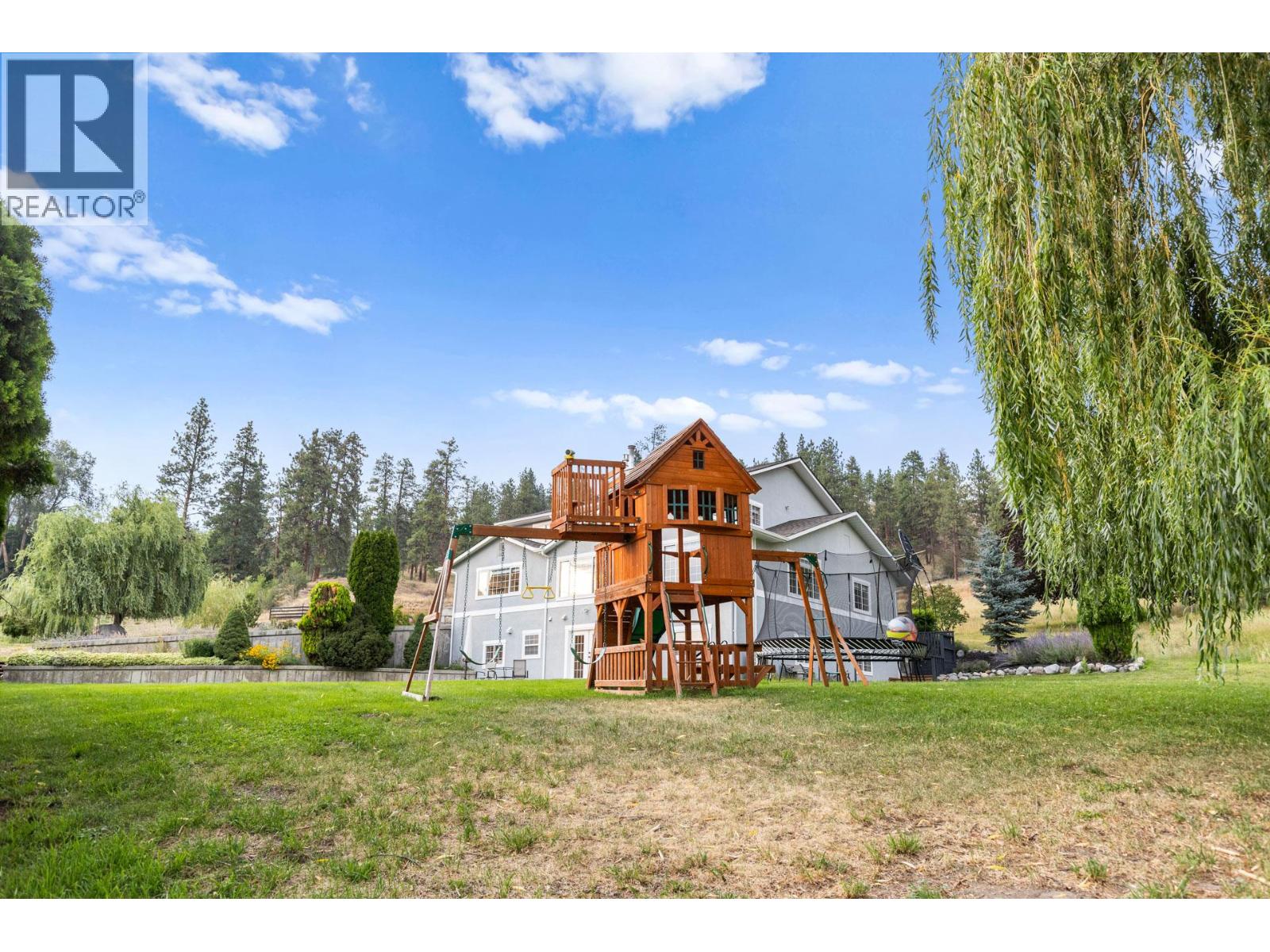 Welcome to one of Summerland’s most extraordinary vineyard estates - a private 10 acre retreat offering unmatched beauty, lifestyle, and versatility. Set at the end of a long, private drive, this stunning 5,686 sq ft residence features 7 spacious bedrooms with every window framing a postcard view, rolling vineyards, lush pastures, and sweeping valley vistas. The chef’s kitchen is a showpiece, boasting granite countertops, 2 farmhouse sinks, oversized island, and premium JennAir stainless steel appliances. The expansive living room is filled with natural light; anchored by a custom gas fireplace. A perfect setting for cozy evenings or vibrant entertaining. Upstairs, four generous bedrooms include a serene primary suite, a spa-style ensuite featuring a jetted soaker tub and a large walk-in shower with dual shower heads. The lower level offers incredible flexibility with a private entrance, second kitchen, and open-concept living- ideal for extended family or guest accommodations. The 3.3 acre vineyard produces sought-after Pinot Noir and Siegerrebe grapes (certified organic), currently cared for by a local winery. Additional features include a 60’ x 40’ Quonset workshop, a charming 345 sq ft studio, private tennis court, oversized parking, and trail access at the property line. Just minutes to town, beaches, and award-winning wineries—this is the Okanagan lifestyle at its absolute finest, where elegance meets opportunity. (id:47466)