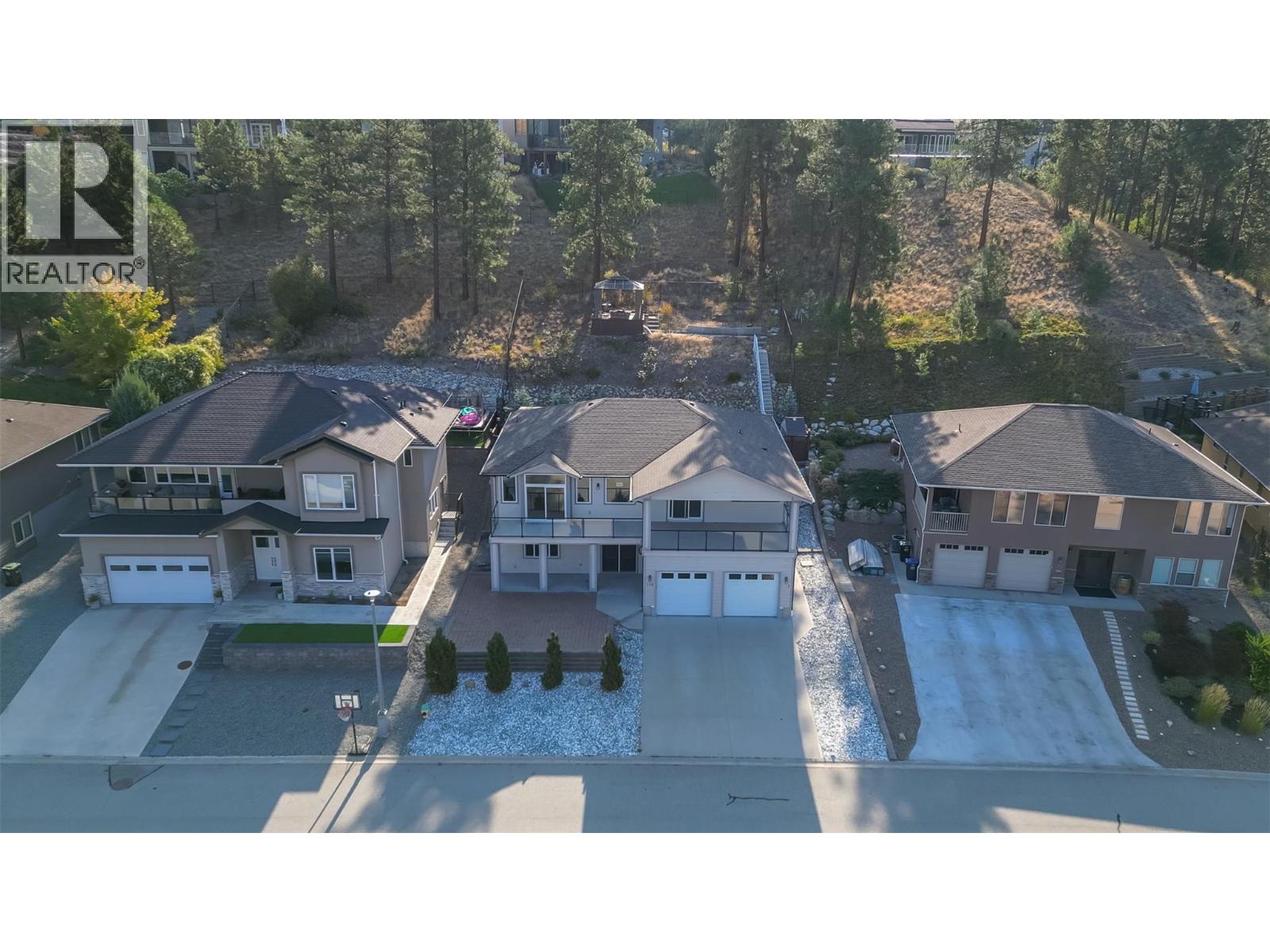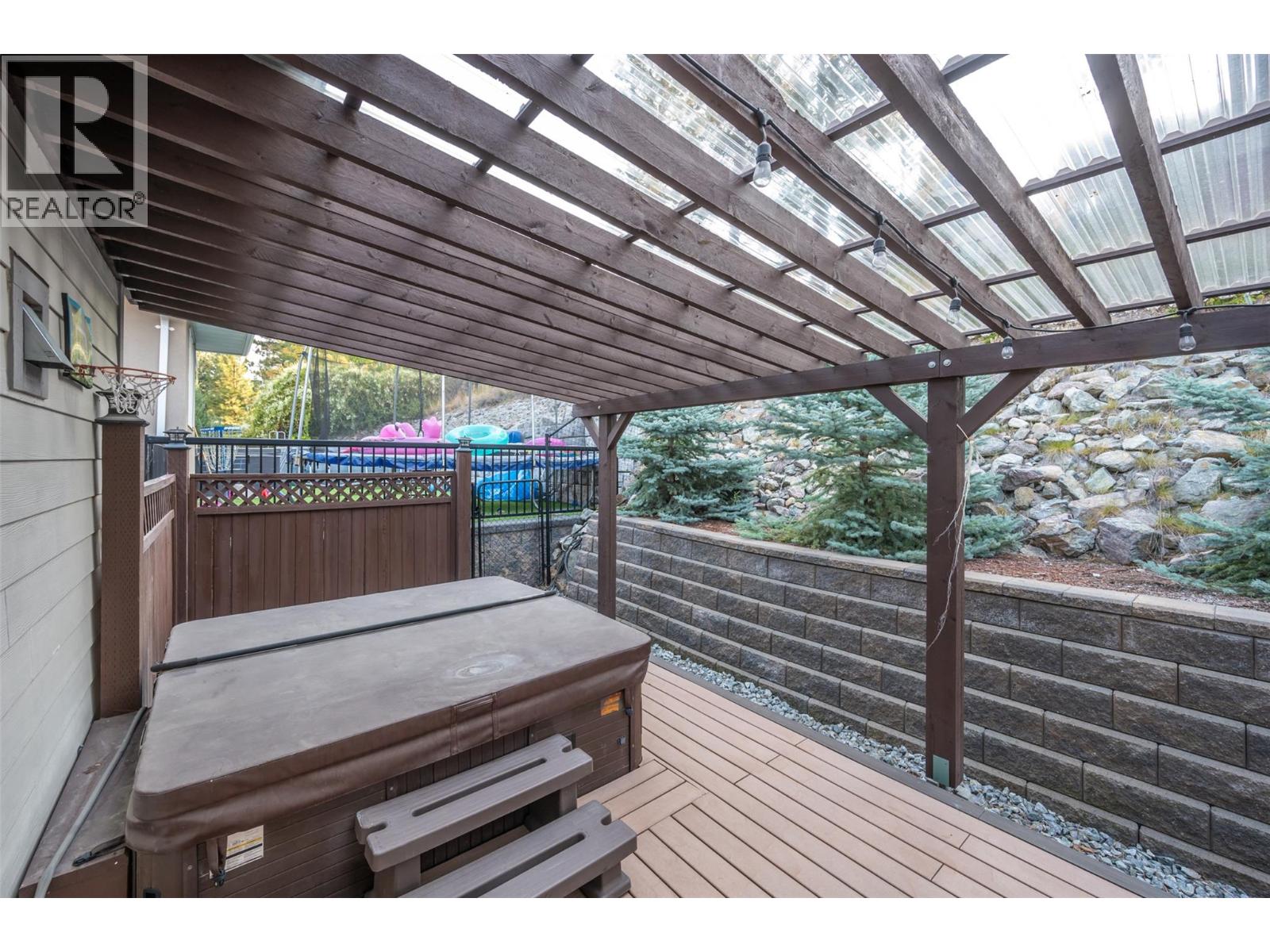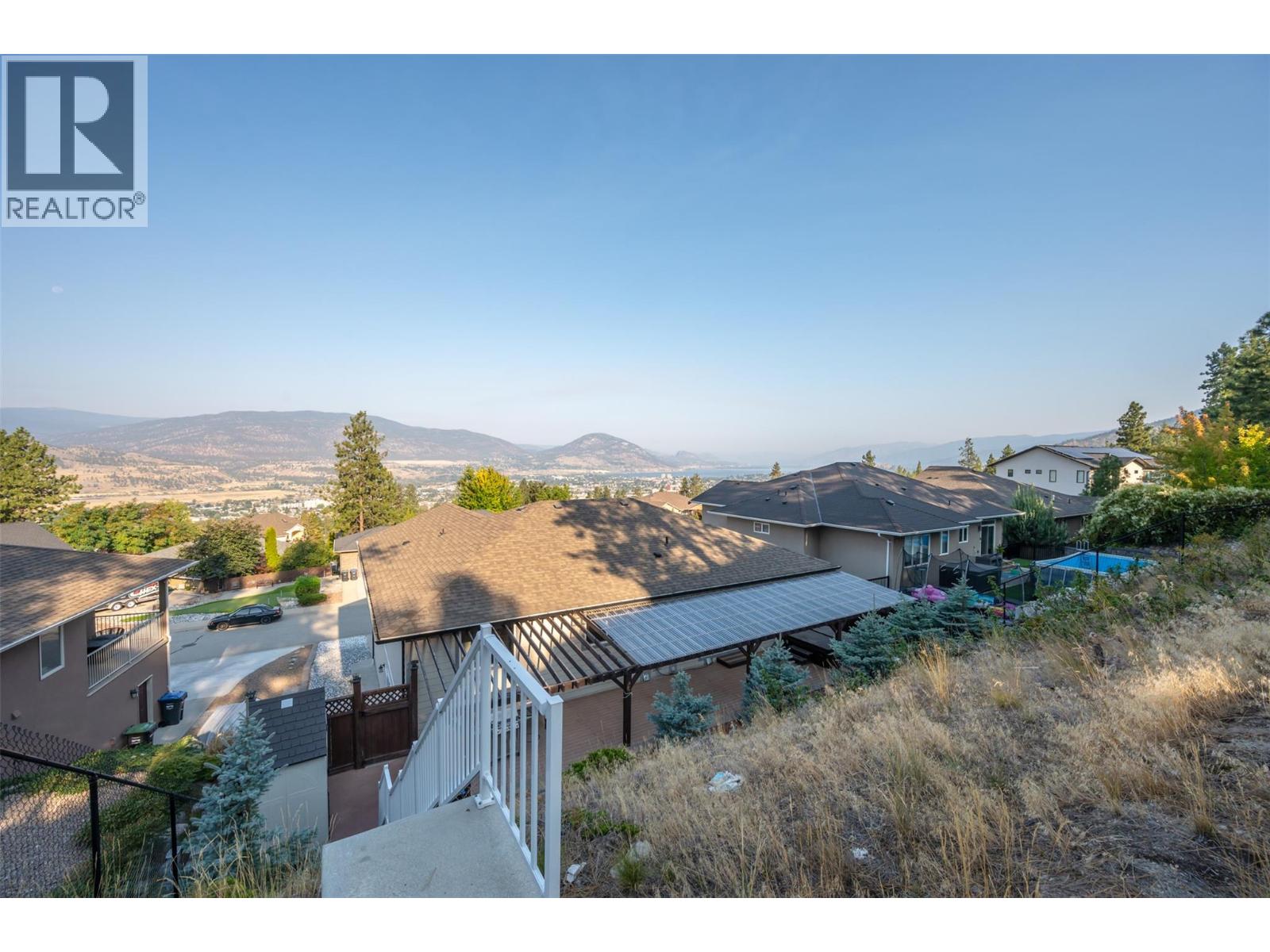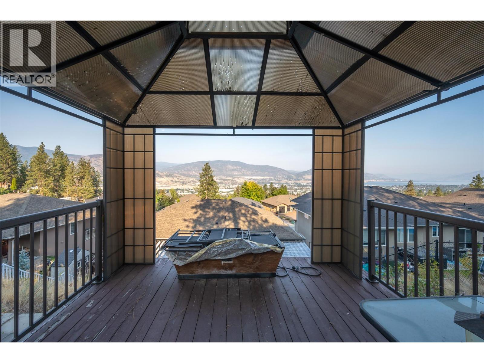 This beautifully renovated home, rebuilt from the studs up with professional craftsmanship, offers modern luxury in a highly desirable, upscale neighborhood on a quiet cul-de-sac with stunning lake and city views. The open-concept main floor showcases a spacious kitchen with an island, quartz countertops, and laminate flooring, while the upper level features three bedrooms including a master retreat with an oversized walk-in closet and spa-like ensuite with soaker tub, separate shower, and double sinks. The lower level provides an additional bedroom, full bathroom, office space, and a legal one-bedroom suite with separate laundry and private entrance, perfect for rental income or extended family. Outdoor living is a dream with two large covered and uncovered front decks, a fenced backyard with an expansive composite deck, hot tub, and private gazebo, plus a covered sitting area at the top of the property with breathtaking views of town and lake. Professionally renovated with new electrical, plumbing, drywall, windows, appliances, and finishes throughout, too many to list here. This move-in ready property is available for quick possession and truly must be seen to be fully appreciated. (id:47466)