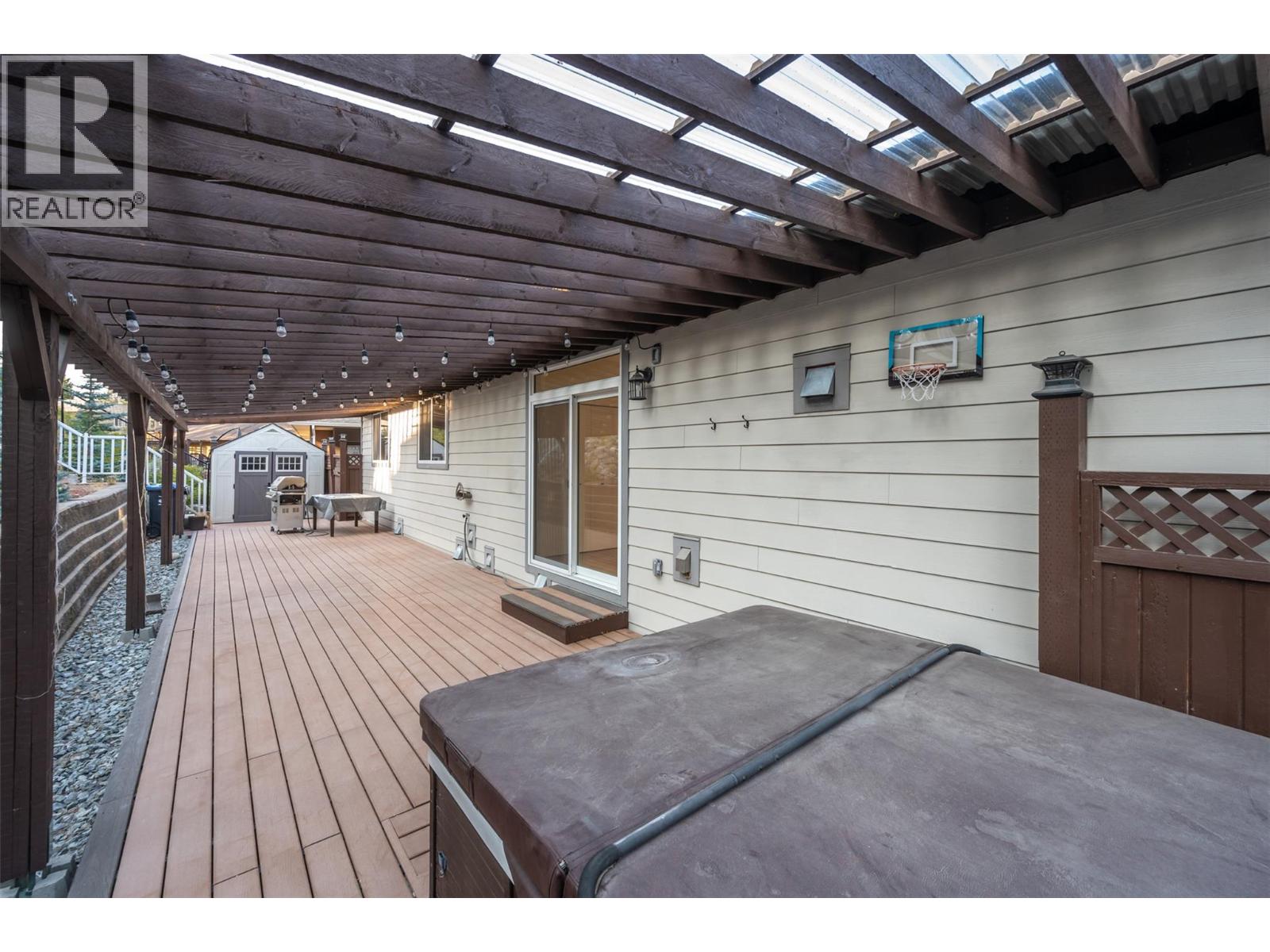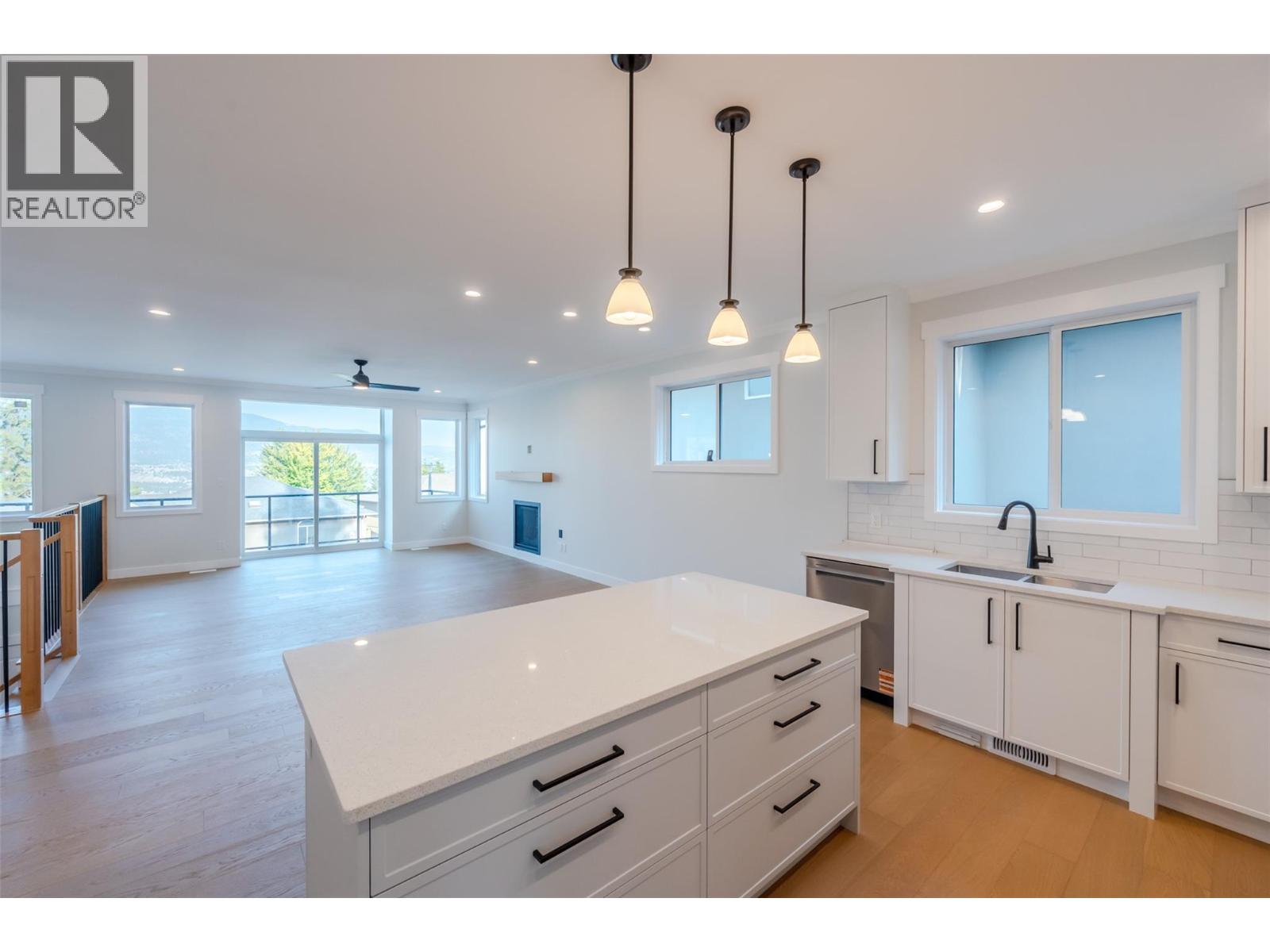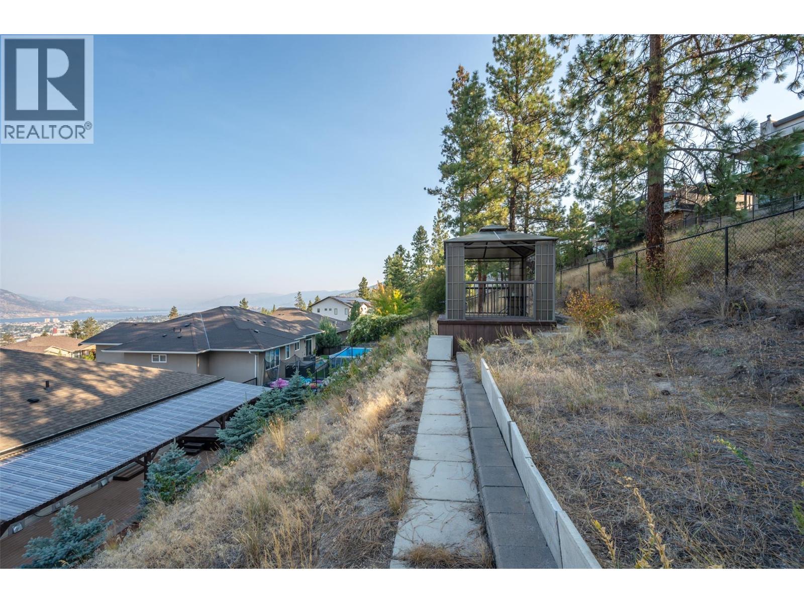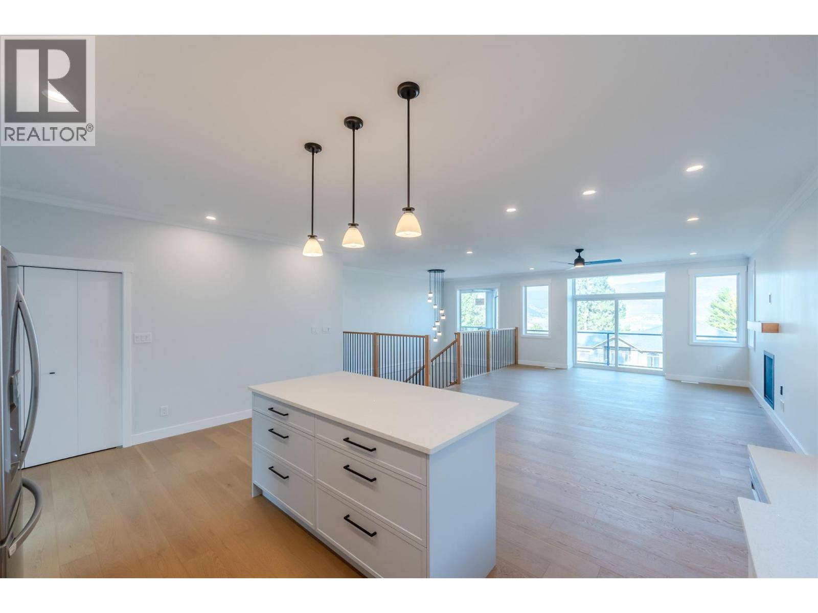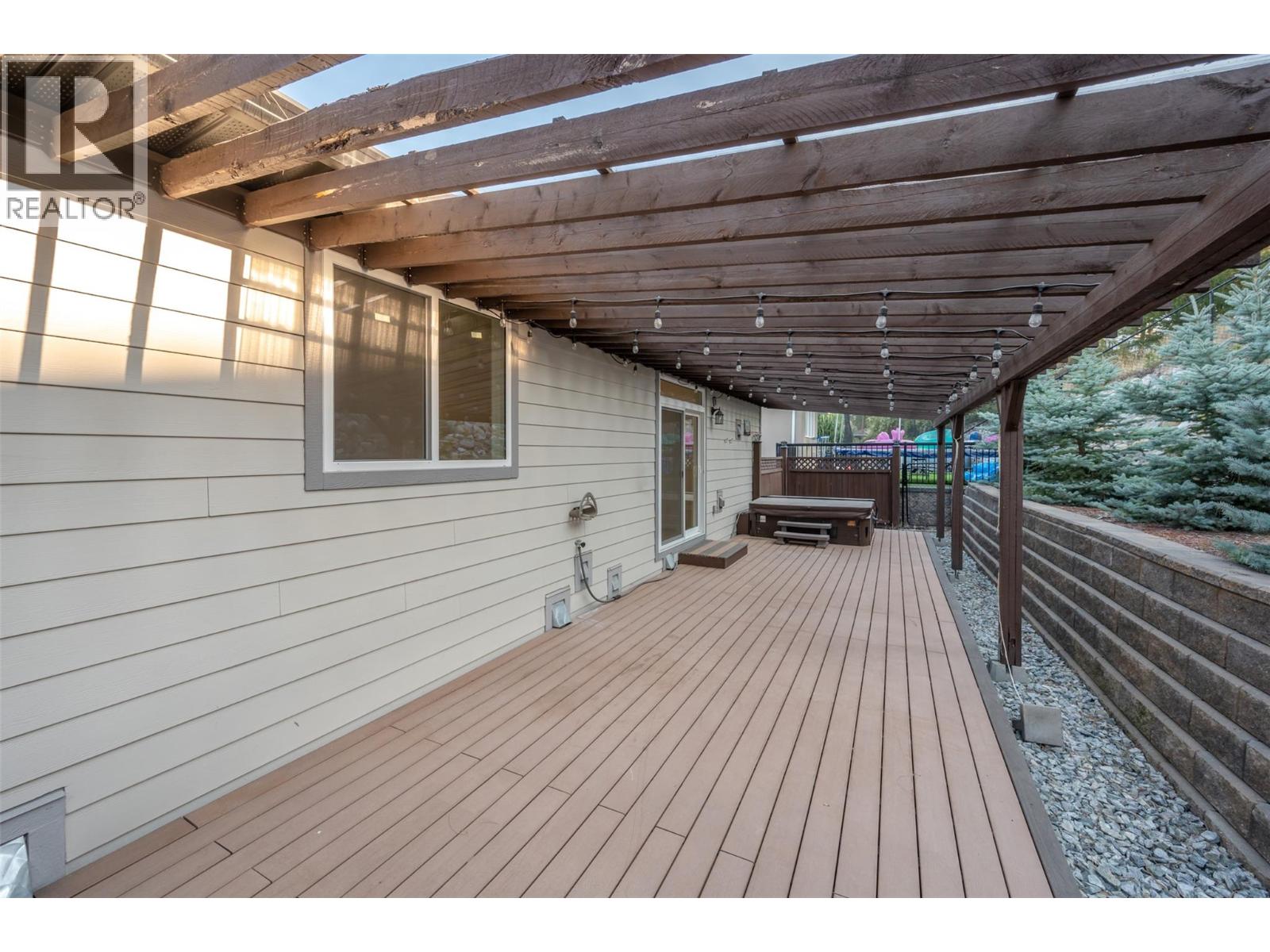 This beautifully renovated home, rebuilt from the studs up with professional craftsmanship, offers modern luxury in a highly desirable, upscale neighborhood on a quiet cul-de-sac with stunning lake and city views. The open-concept main floor showcases a spacious kitchen with an island, quartz countertops, and laminate flooring, while the upper level features three bedrooms including a master retreat with an oversized walk-in closet and spa-like ensuite with soaker tub, separate shower, and double sinks. The lower level provides an additional bedroom, full bathroom, office space, and a legal one-bedroom suite with separate laundry and private entrance, perfect for rental income or extended family. Outdoor living is a dream with two large covered and uncovered front decks, a fenced backyard with an expansive composite deck, hot tub, and private gazebo, plus a covered sitting area at the top of the property with breathtaking views of town and lake. Professionally renovated with new electrical, plumbing, drywall, windows, appliances, and finishes throughout, too many to list here. This move-in ready property is available for quick possession and truly must be seen to be fully appreciated. (id:47466)