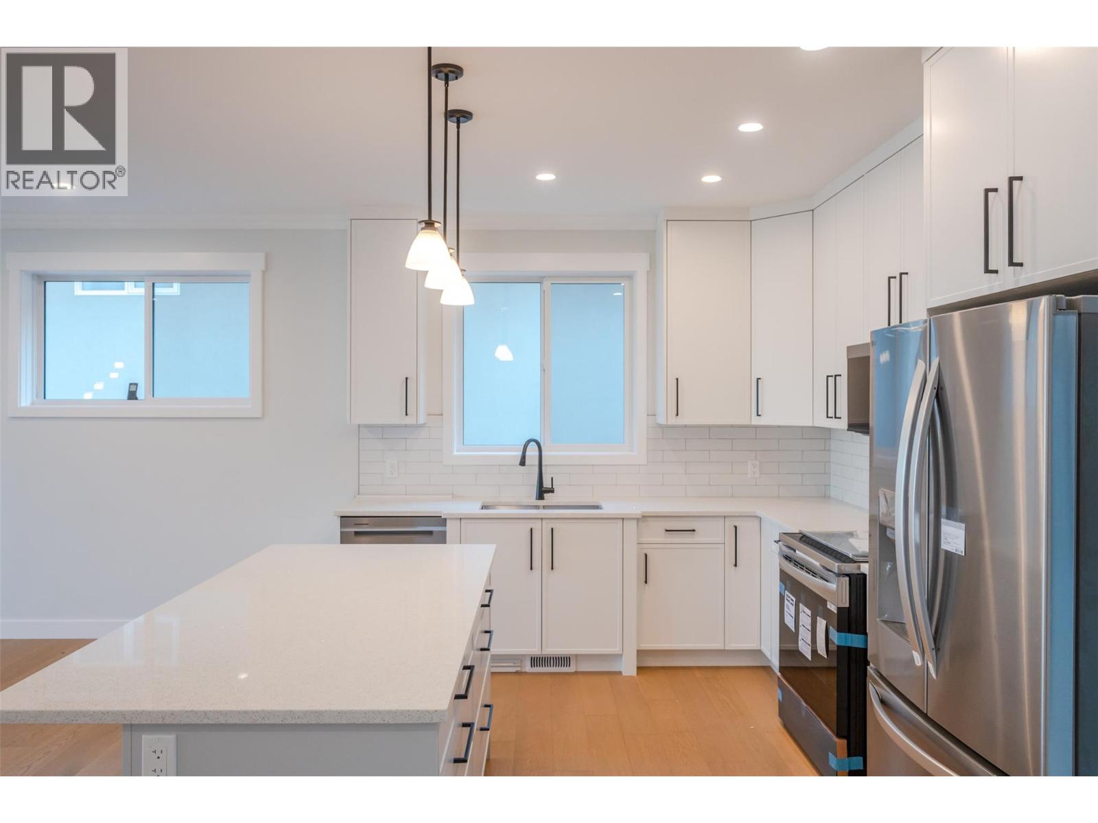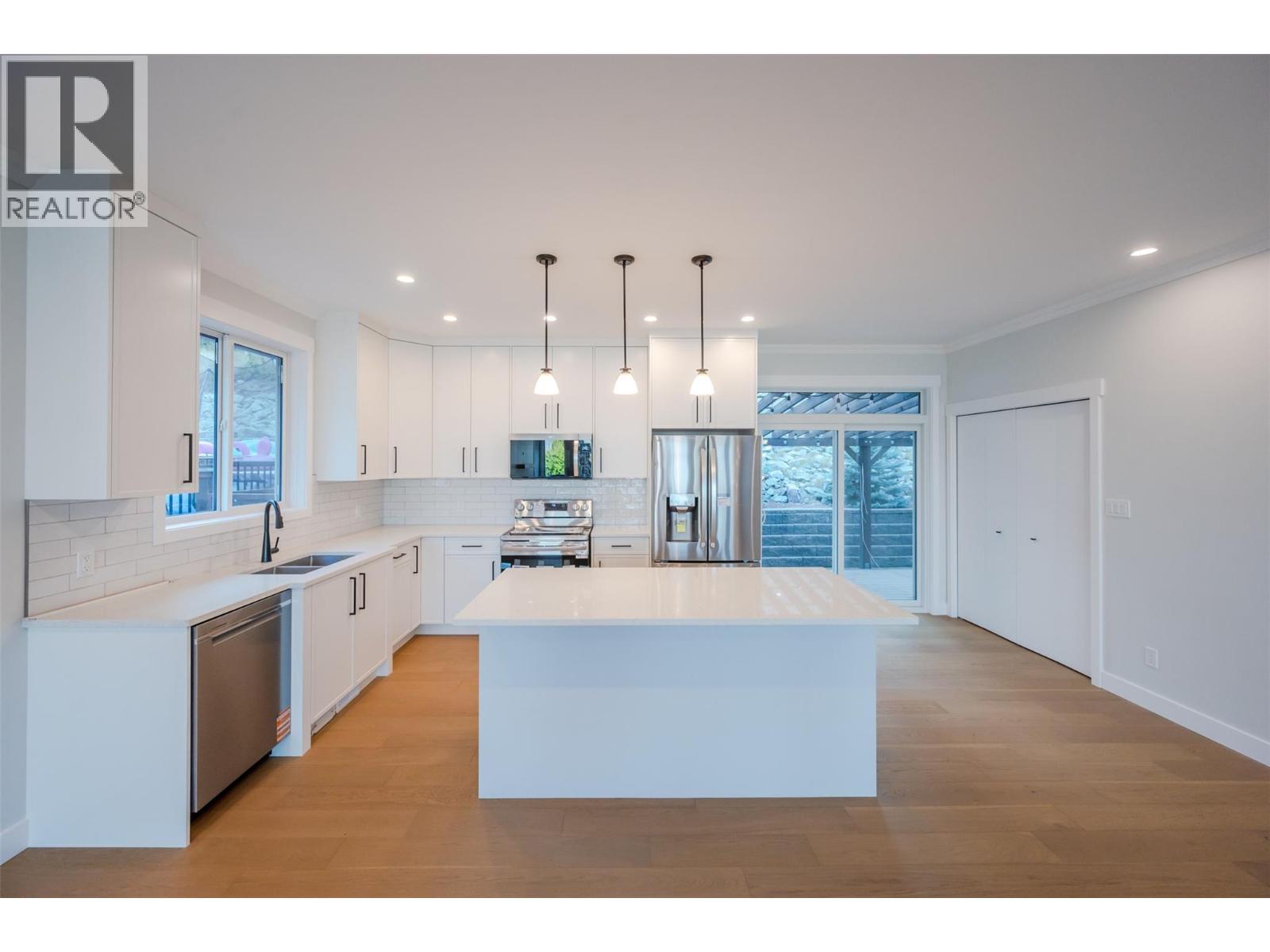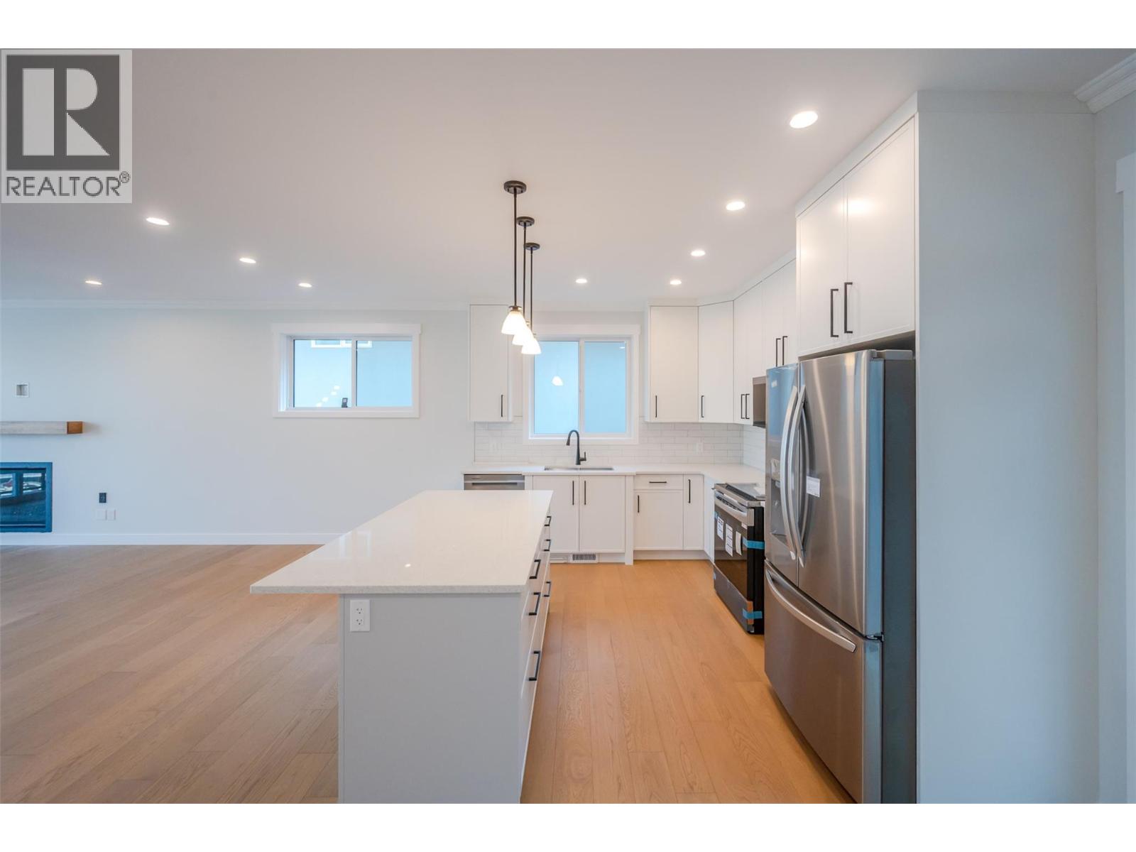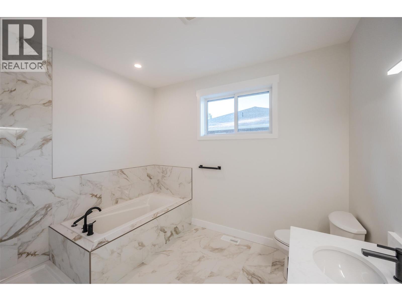 This beautifully renovated home, rebuilt from the studs up with professional craftsmanship, offers modern luxury in a highly desirable, upscale neighborhood on a quiet cul-de-sac with stunning lake and city views. The open-concept main floor showcases a spacious kitchen with an island, quartz countertops, and laminate flooring, while the upper level features three bedrooms including a master retreat with an oversized walk-in closet and spa-like ensuite with soaker tub, separate shower, and double sinks. The lower level provides an additional bedroom, full bathroom, office space, and a legal one-bedroom suite with separate laundry and private entrance, perfect for rental income or extended family. Outdoor living is a dream with two large covered and uncovered front decks, a fenced backyard with an expansive composite deck, hot tub, and private gazebo, plus a covered sitting area at the top of the property with breathtaking views of town and lake. Professionally renovated with new electrical, plumbing, drywall, windows, appliances, and finishes throughout, too many to list here. This move-in ready property is available for quick possession and truly must be seen to be fully appreciated. (id:47466)
