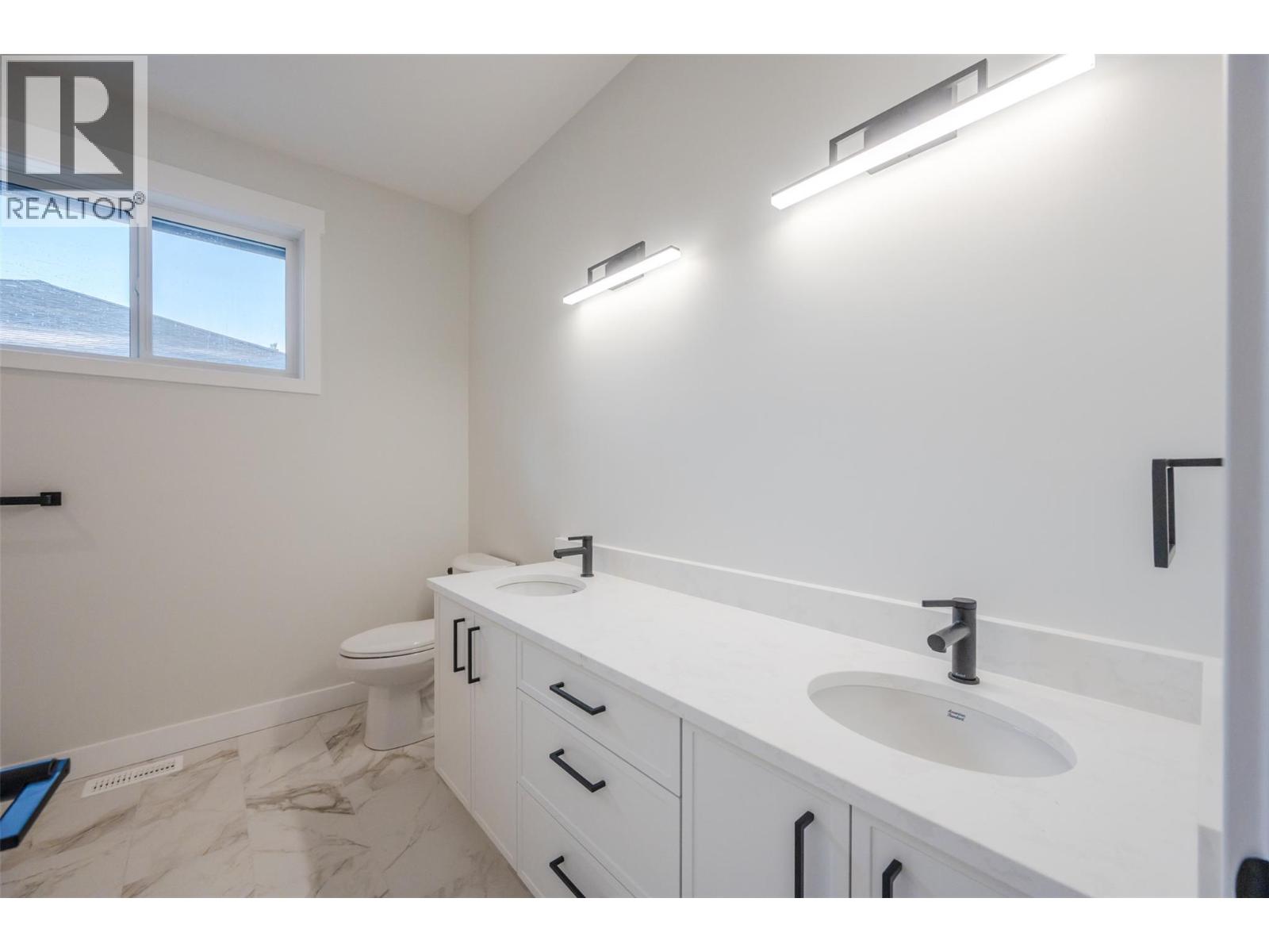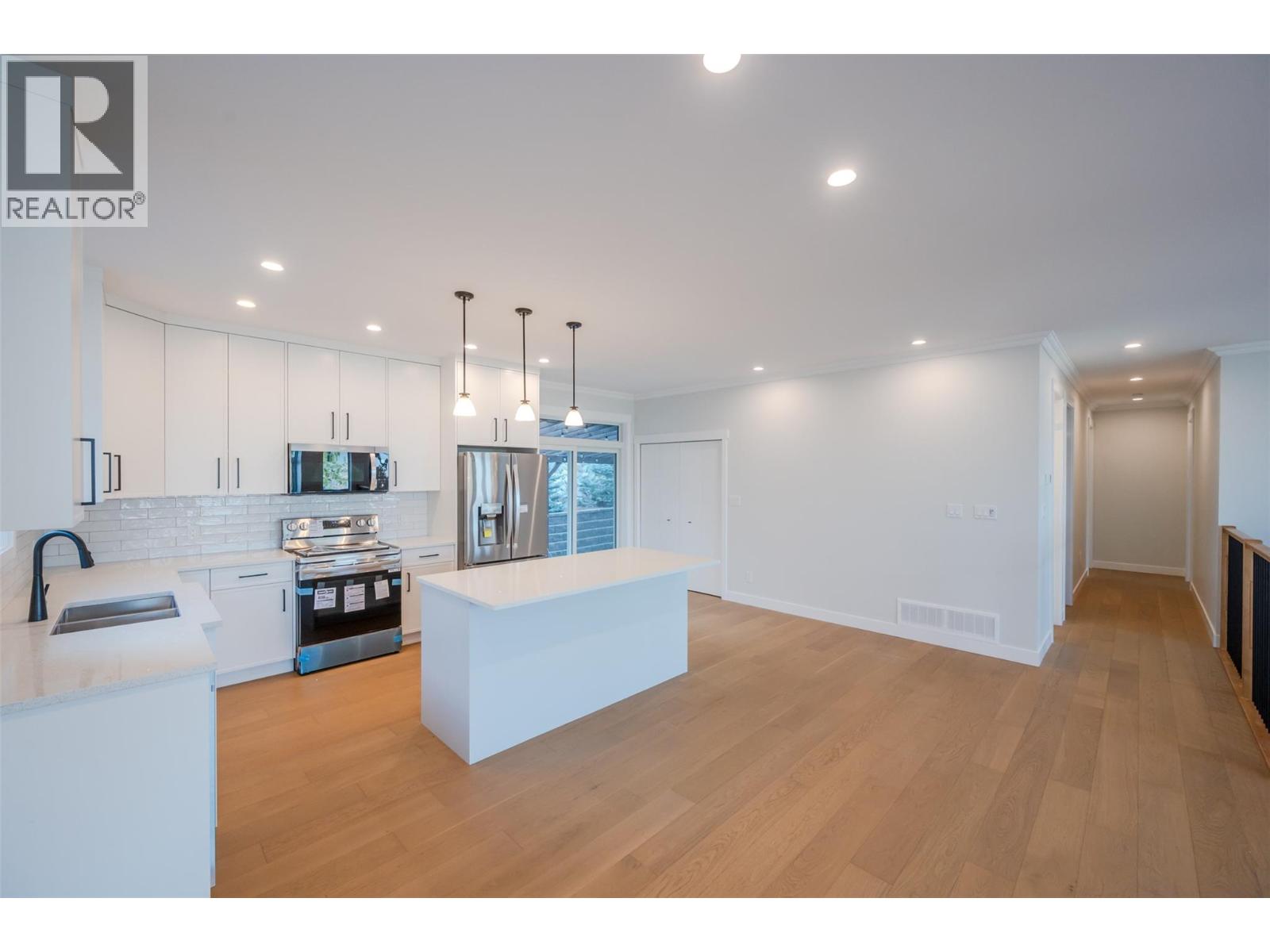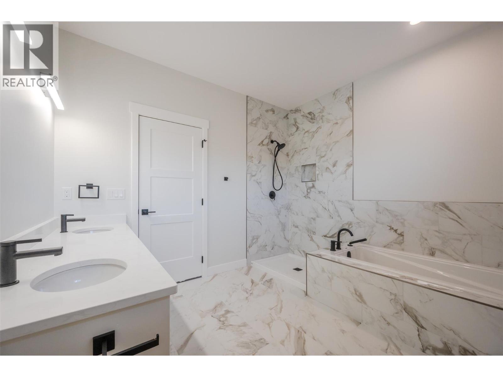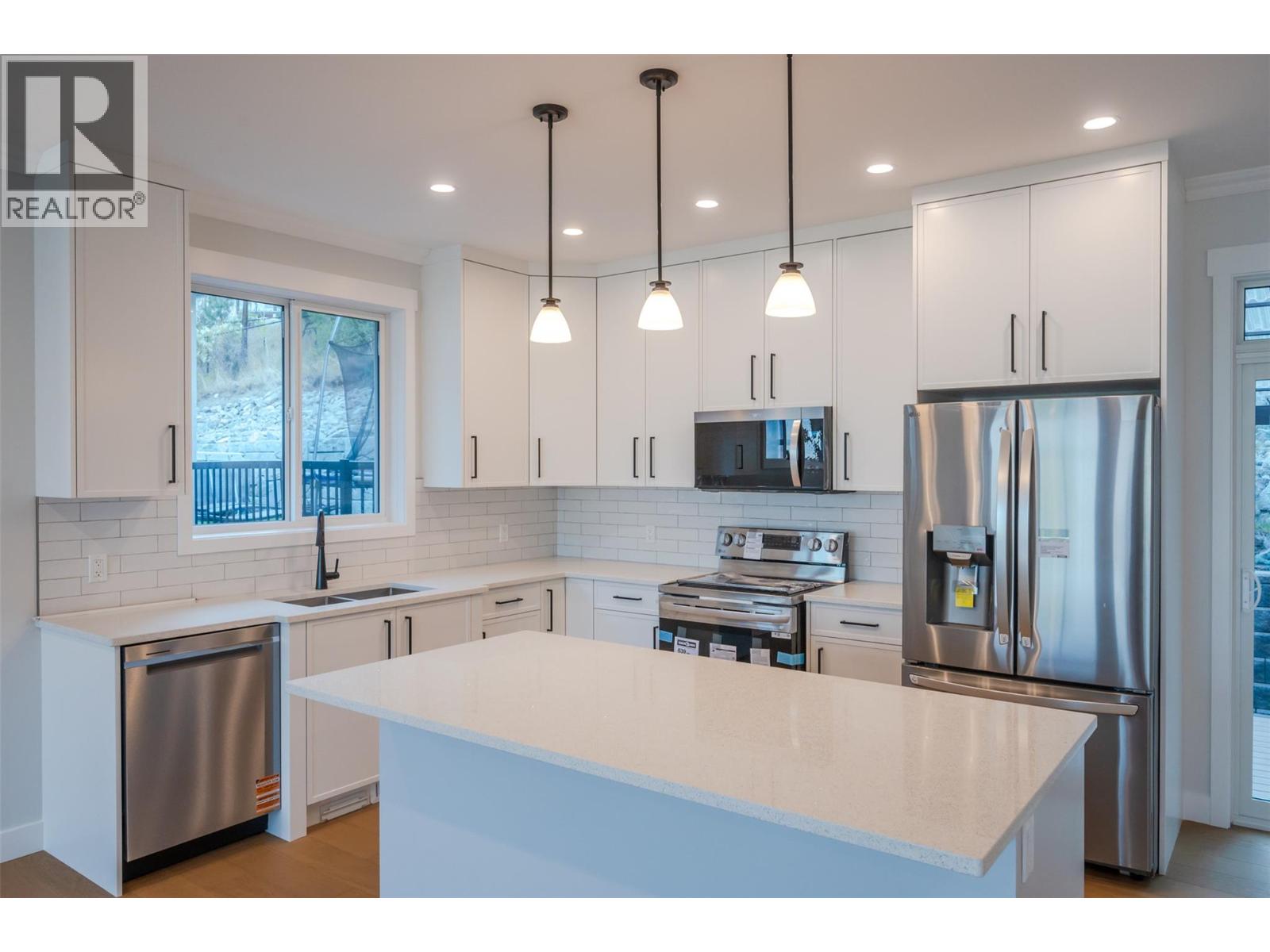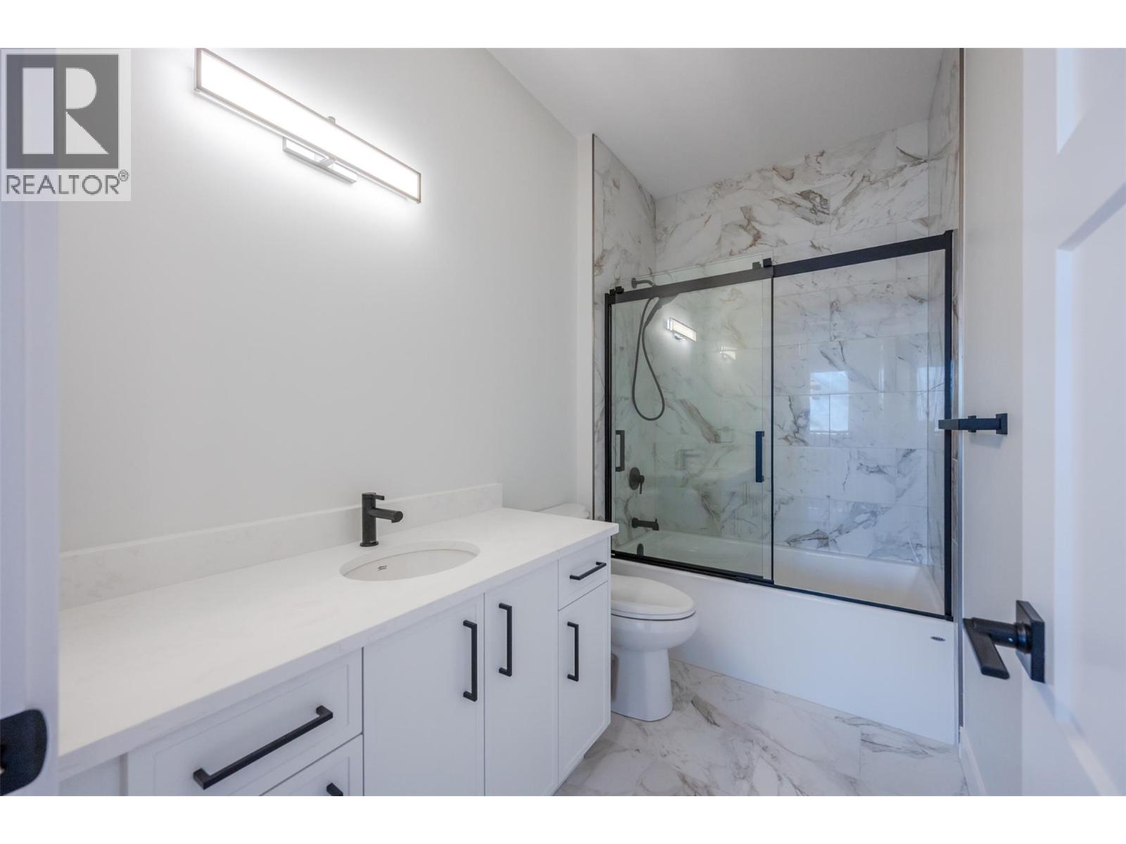 This beautifully renovated home, rebuilt from the studs up with professional craftsmanship, offers modern luxury in a highly desirable, upscale neighborhood on a quiet cul-de-sac with stunning lake and city views. The open-concept main floor showcases a spacious kitchen with an island, quartz countertops, and laminate flooring, while the upper level features three bedrooms including a master retreat with an oversized walk-in closet and spa-like ensuite with soaker tub, separate shower, and double sinks. The lower level provides an additional bedroom, full bathroom, office space, and a legal one-bedroom suite with separate laundry and private entrance, perfect for rental income or extended family. Outdoor living is a dream with two large covered and uncovered front decks, a fenced backyard with an expansive composite deck, hot tub, and private gazebo, plus a covered sitting area at the top of the property with breathtaking views of town and lake. Professionally renovated with new electrical, plumbing, drywall, windows, appliances, and finishes throughout, too many to list here. This move-in ready property is available for quick possession and truly must be seen to be fully appreciated. (id:47466)