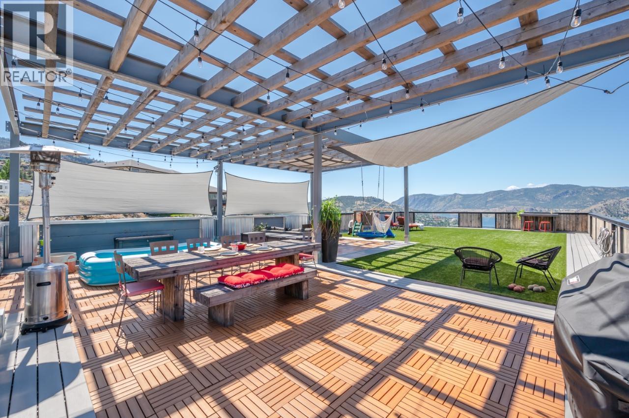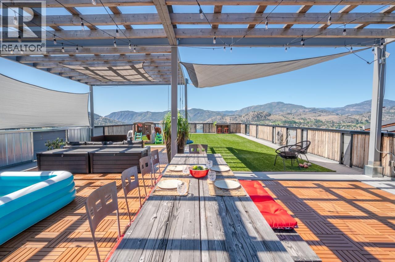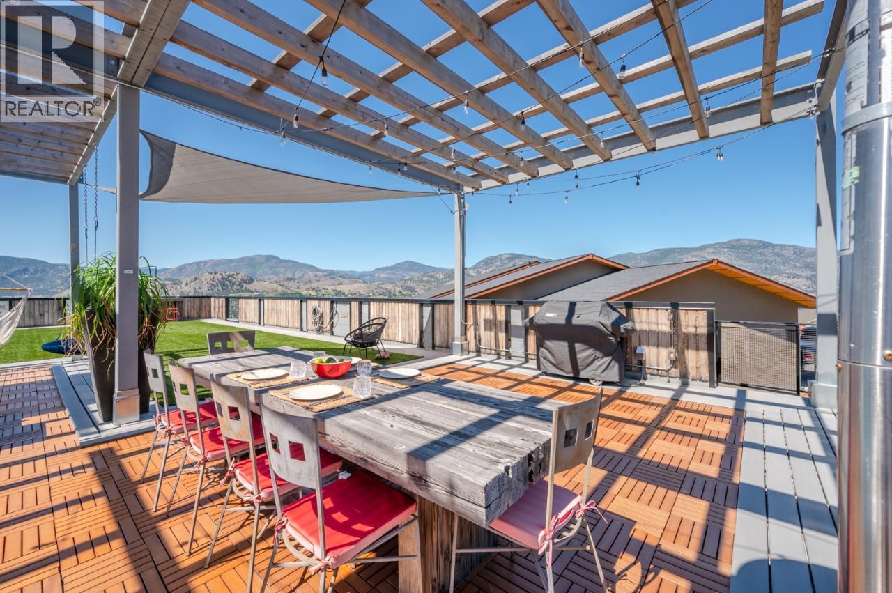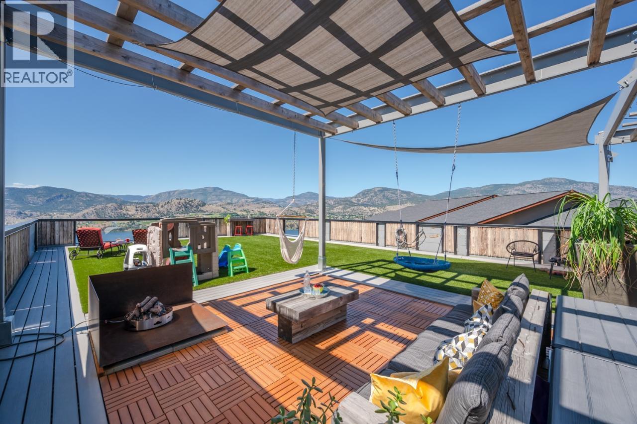 VINTAGE INDUSTRIAL WAREHOUSE. Welcome to THE house on the hill! This Farout design-built home is truly a one of a kind rancher situated 10 minutes south of Penticton. This home is defined by its 1950's recycled, steel skeleton and its exposed mechanical and electrical services. If you are searching for a home that captivates creativity, look no further. The open concept kitchen-dining-living is grounded by the brick wall and fireplace, a perfect space for entertaining friends and family. The home has 4 bedrooms, 2 en-suites and a main bathroom. We love how the mezzanines in the bedrooms utilize the 14' ceiling, great for play or extra storage. Looking for more room? Head up to the 2400sqft rooftop patio and enjoy morning sunrises to evening sunsets, with epic views of Skaha Lake. Situated in a quiet, safe and family friendly neighborhood, you will not find better friends than your neighbors. Bonus, have you ever seen a rock climbing wall in a garage? Disclosure: Seller is a licensed realtor. (id:47466)