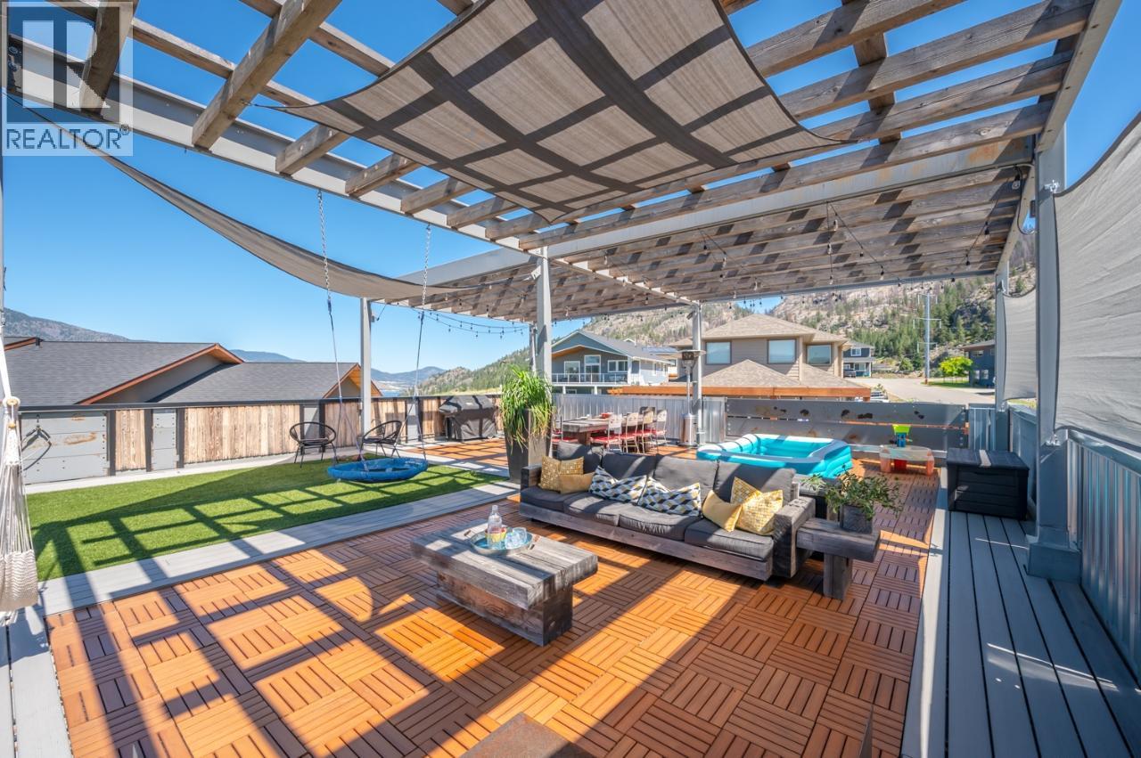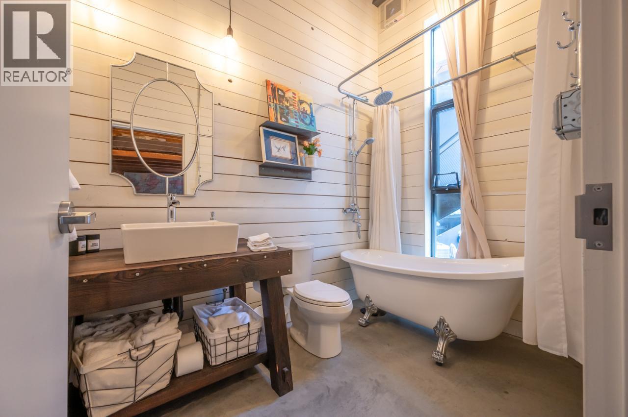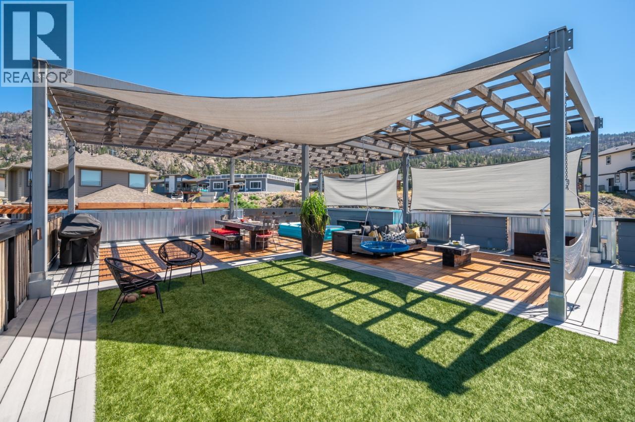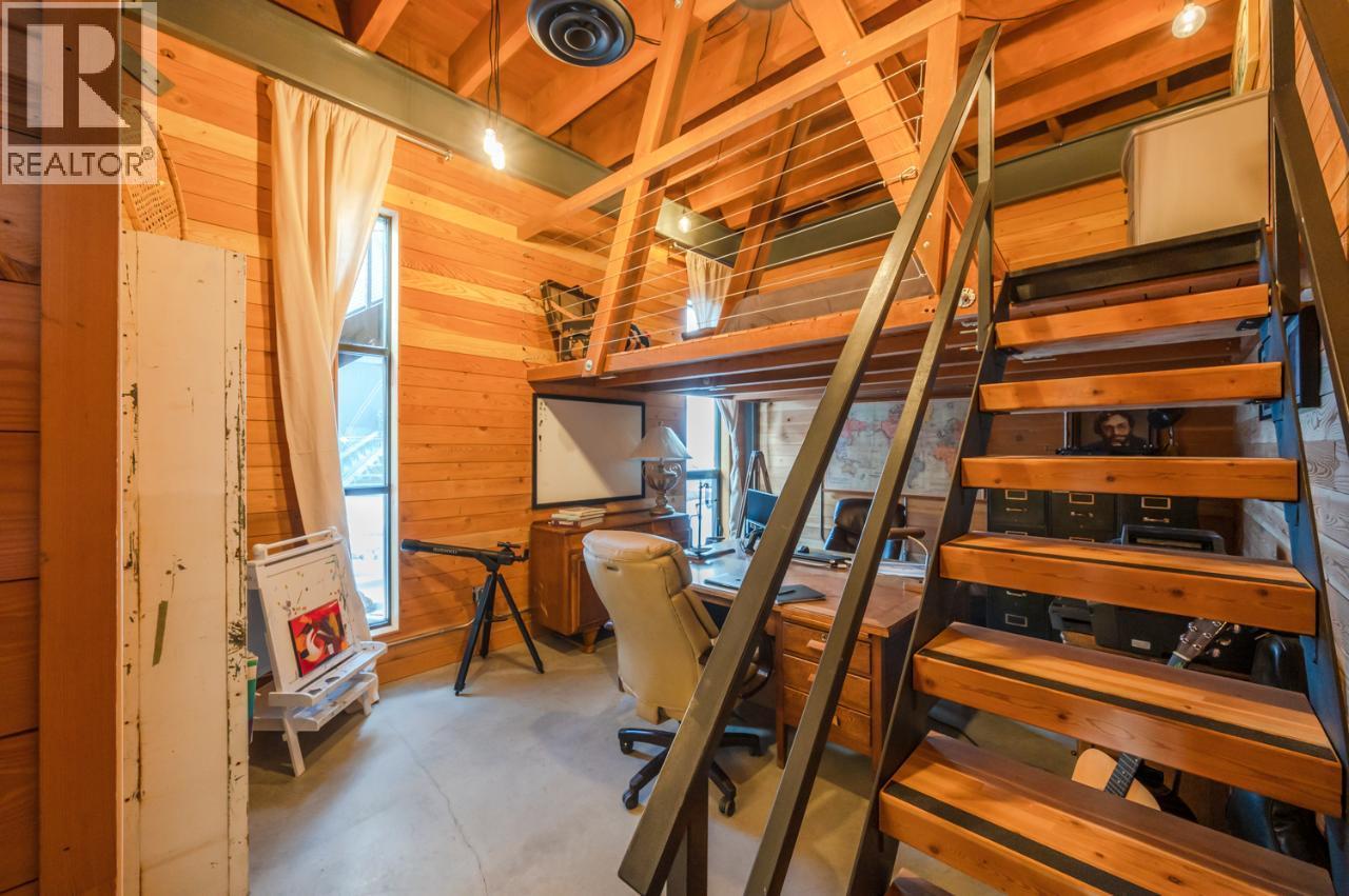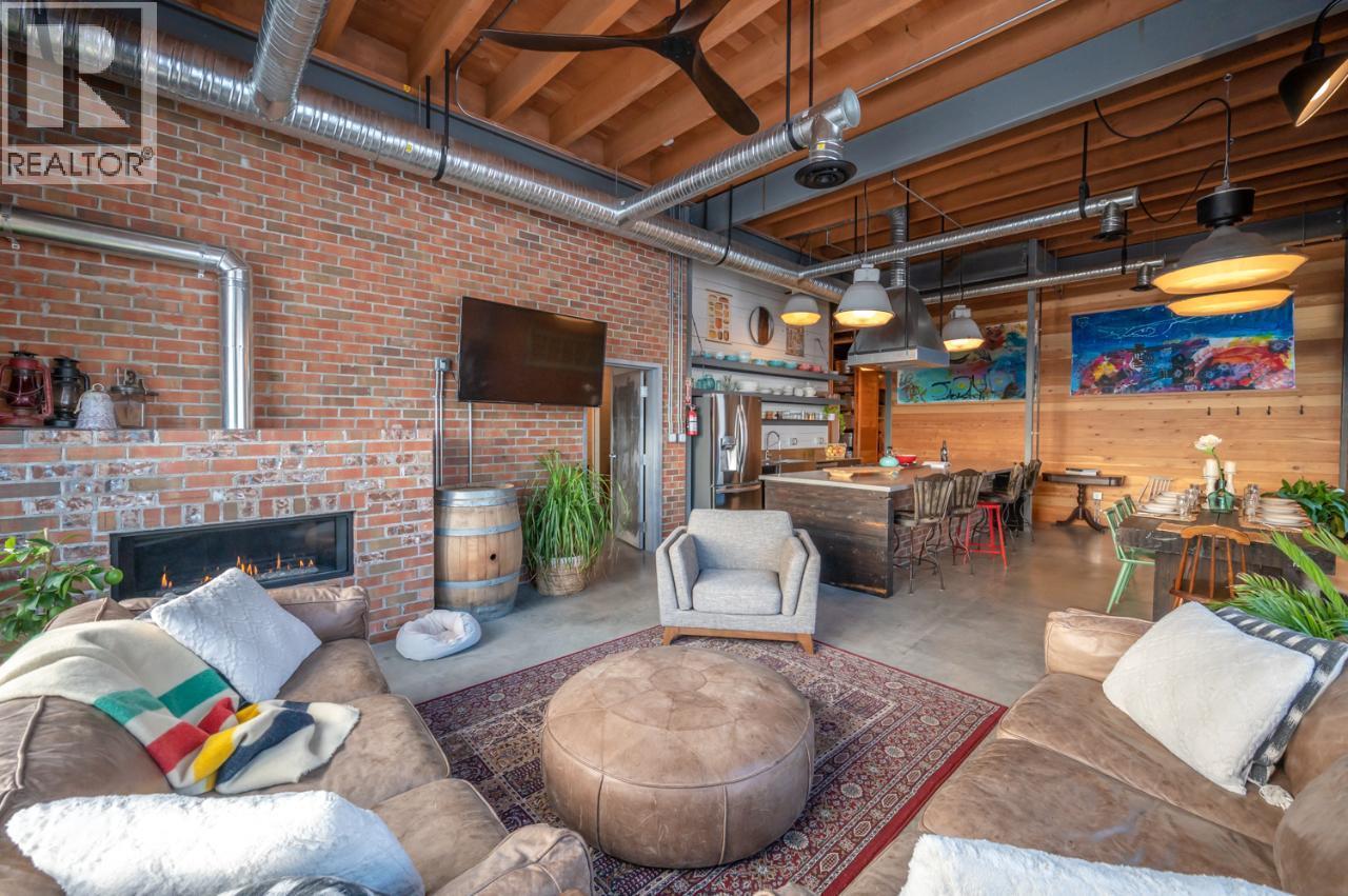 VINTAGE INDUSTRIAL WAREHOUSE. Welcome to THE house on the hill! This Farout design-built home is truly a one of a kind rancher situated 10 minutes south of Penticton. This home is defined by its 1950's recycled, steel skeleton and its exposed mechanical and electrical services. If you are searching for a home that captivates creativity, look no further. The open concept kitchen-dining-living is grounded by the brick wall and fireplace, a perfect space for entertaining friends and family. The home has 4 bedrooms, 2 en-suites and a main bathroom. We love how the mezzanines in the bedrooms utilize the 14' ceiling, great for play or extra storage. Looking for more room? Head up to the 2400sqft rooftop patio and enjoy morning sunrises to evening sunsets, with epic views of Skaha Lake. Situated in a quiet, safe and family friendly neighborhood, you will not find better friends than your neighbors. Bonus, have you ever seen a rock climbing wall in a garage? Disclosure: Seller is a licensed realtor. (id:47466)