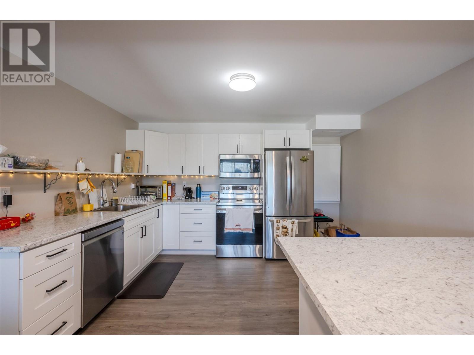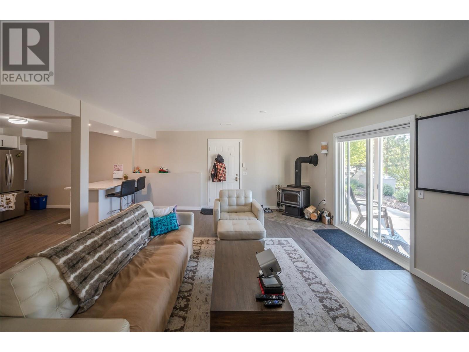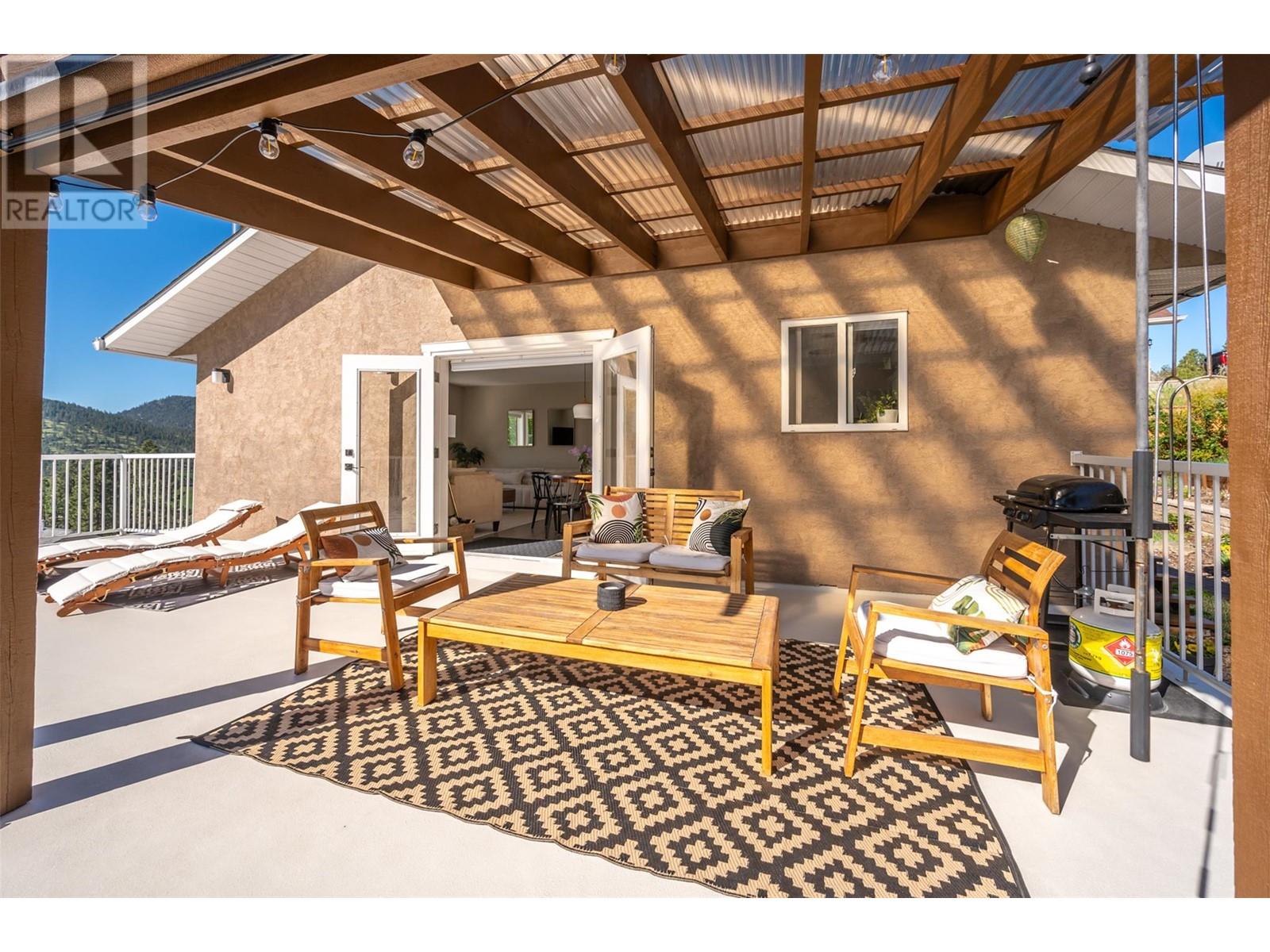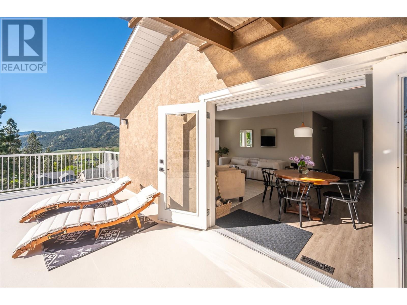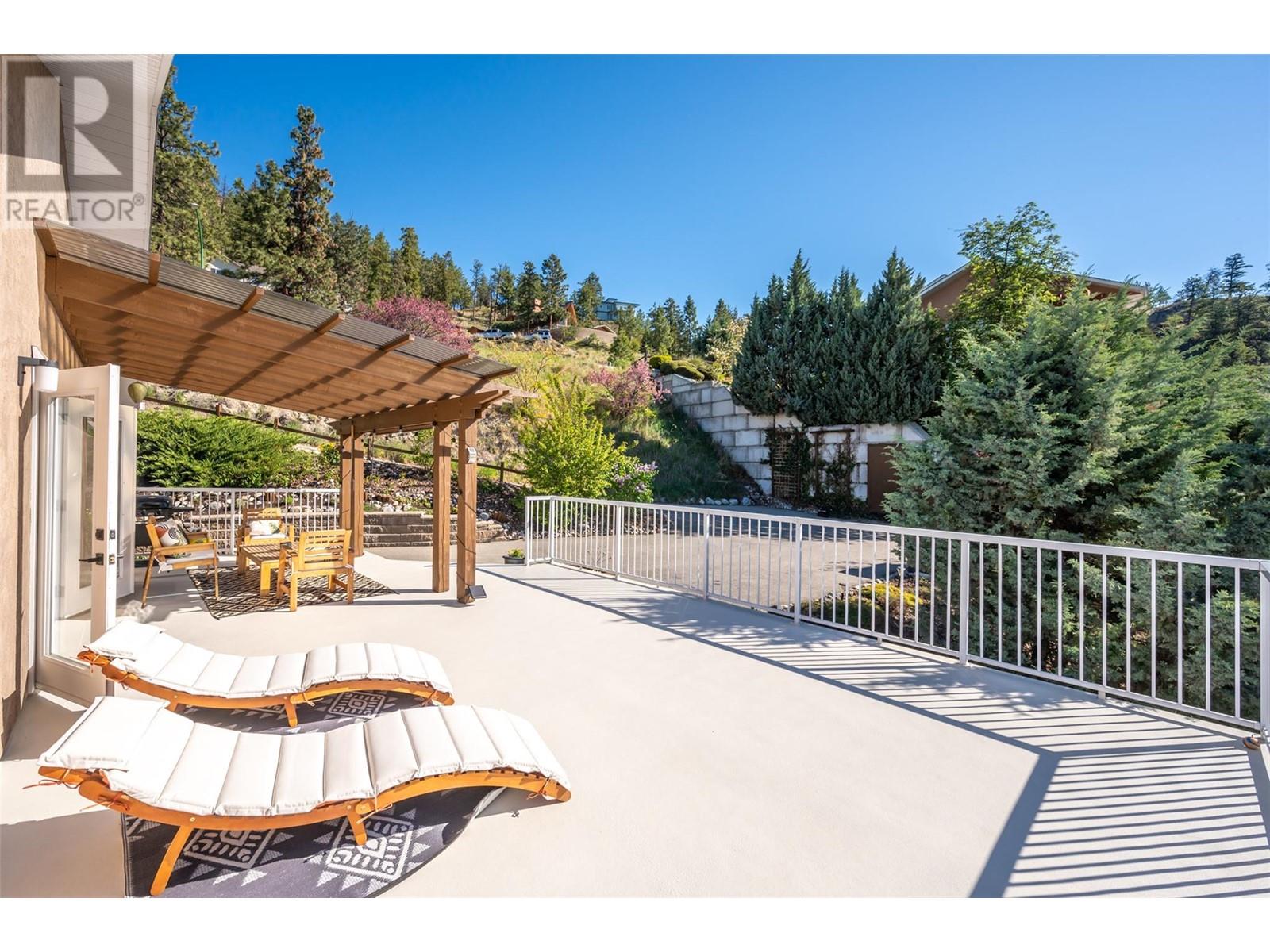 Enjoy the valley and mountain views from this level entry rancher with walk out basement. Located in desirable Deer Ridge Estates this 4 bedroom 3 bath home with completed basement and mortgage helper offers the Okanagan lifestyle. This home is well maintained and shows beautifully with new heat pump, new ensuite in primary and new appliances throughout. Two kitchens, two sets of washer/dryers, large lot for the kids or grandkids to play while you relax taking in the views overlooking vineyards and orchards. Massive deck for family gatherings, barbeques, sunbathing, etc. Back garden designed by Fiddler's Green Landscape Artist. This location offers easy access to the Cartwright Mountain trails for the outdoor enthusiast. Must be seen to appreciate the value of this offering. **Measurements taken from iGuide, Buyer to verify if important. (id:47466)