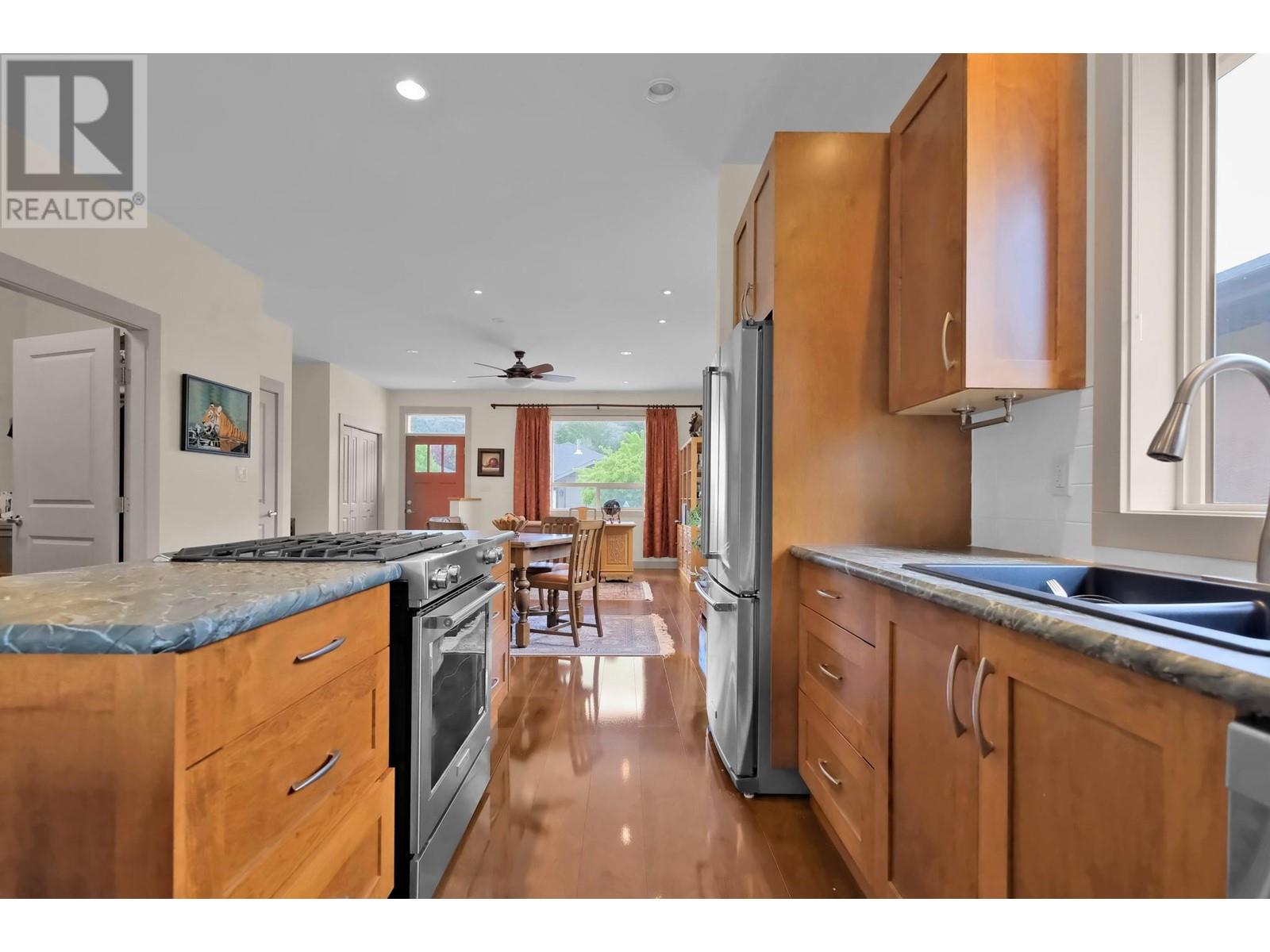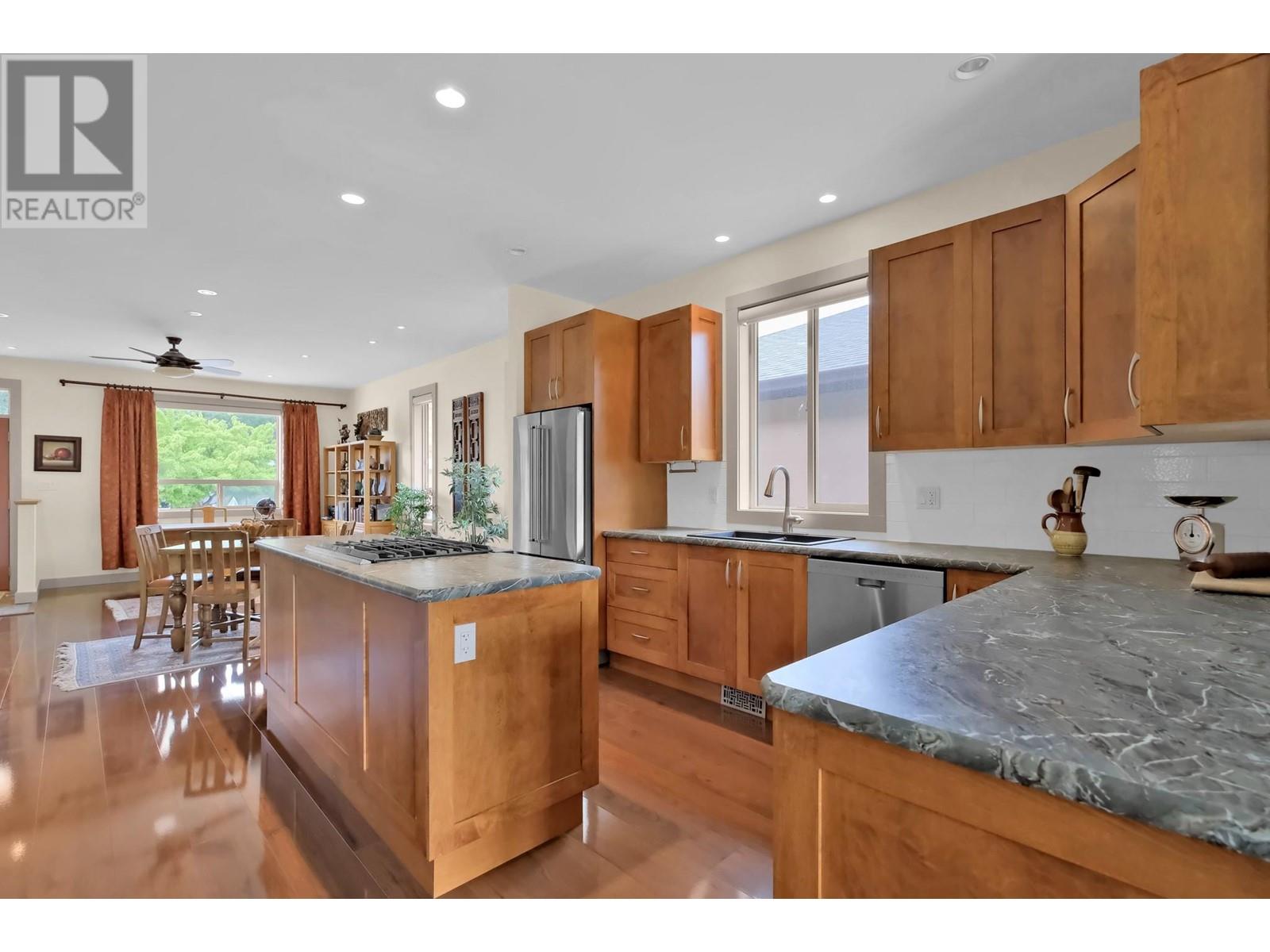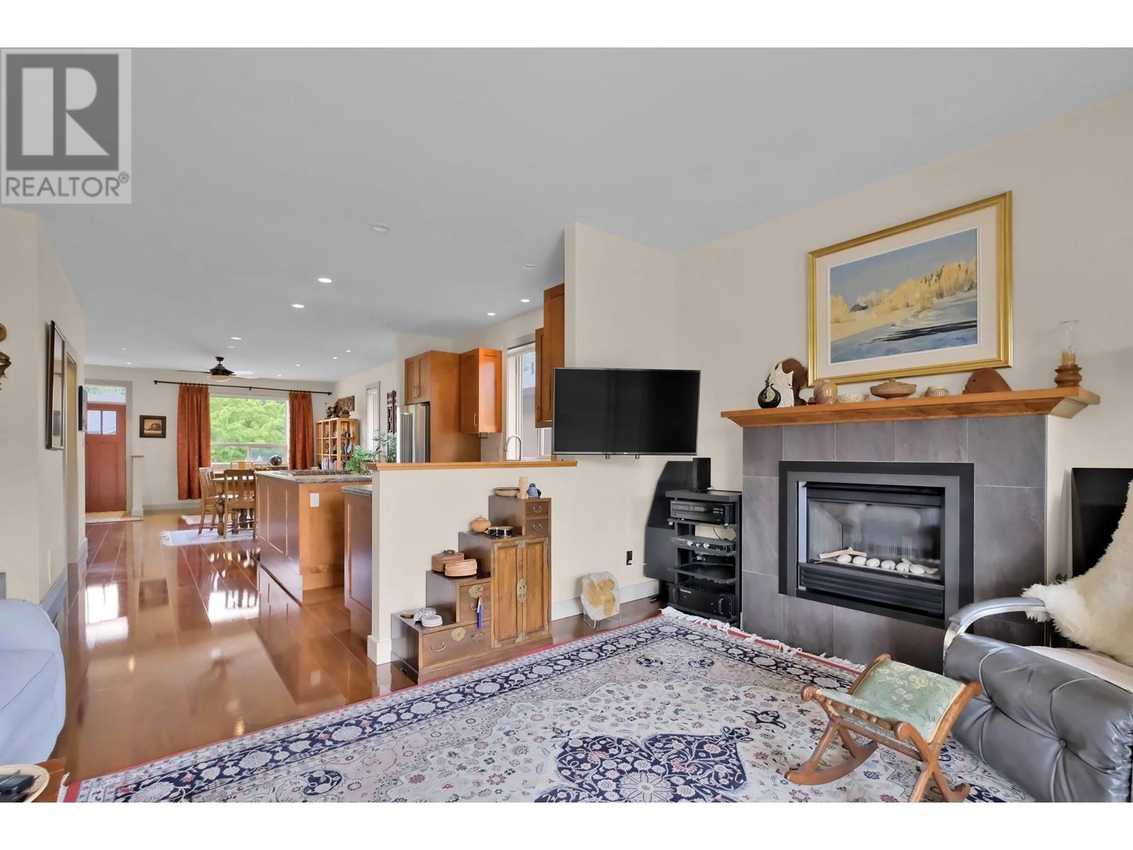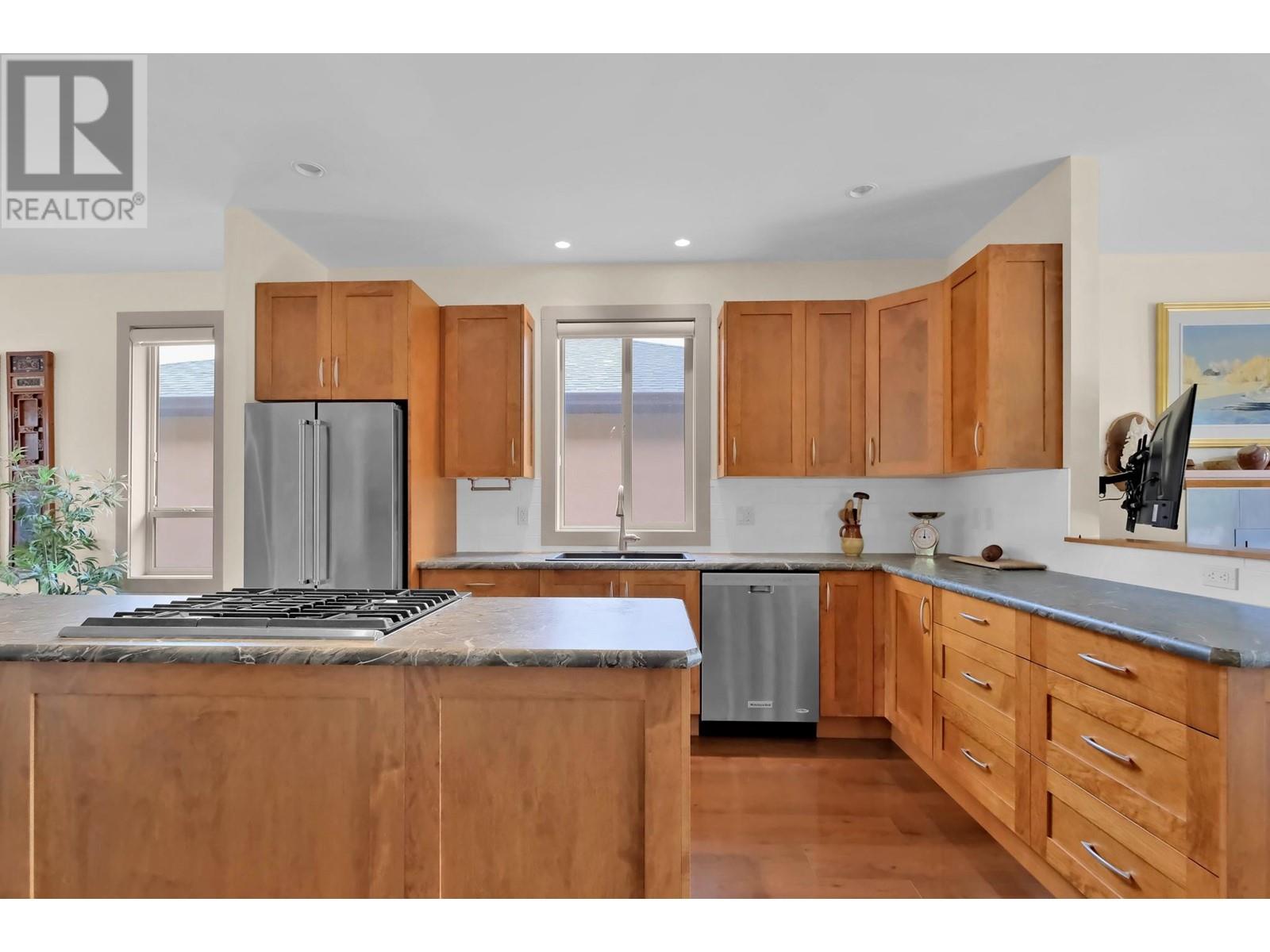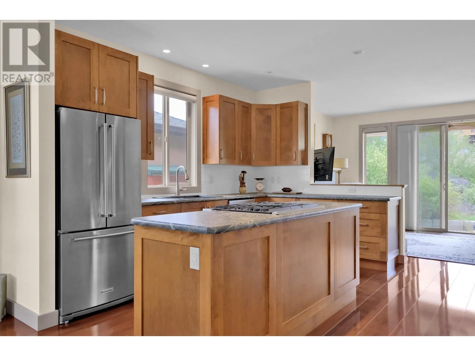 Welcome to this beautifully designed 1,378 sq ft rancher, offering 2 spacious bedrooms and 2 bathrooms in a desirable, tranquil setting. The open-concept layout is perfect for entertaining, featuring stylish flooring throughout and a chef-inspired kitchen with a large island, built-in gas cooktop, stainless steel appliances, and generous cupboard and drawer space. Relax in the cozy family room with a gas fireplace, or step outside to the expansive covered patio that overlooks the peaceful oxbow—ideal for morning coffee or evening gatherings. The primary bedroom includes a walk-in closet and an accessible 3-piece ensuite. Additional highlights include an oversized attached garage and extra on-site parking, making this home both comfortable and convenient. (id:47466)