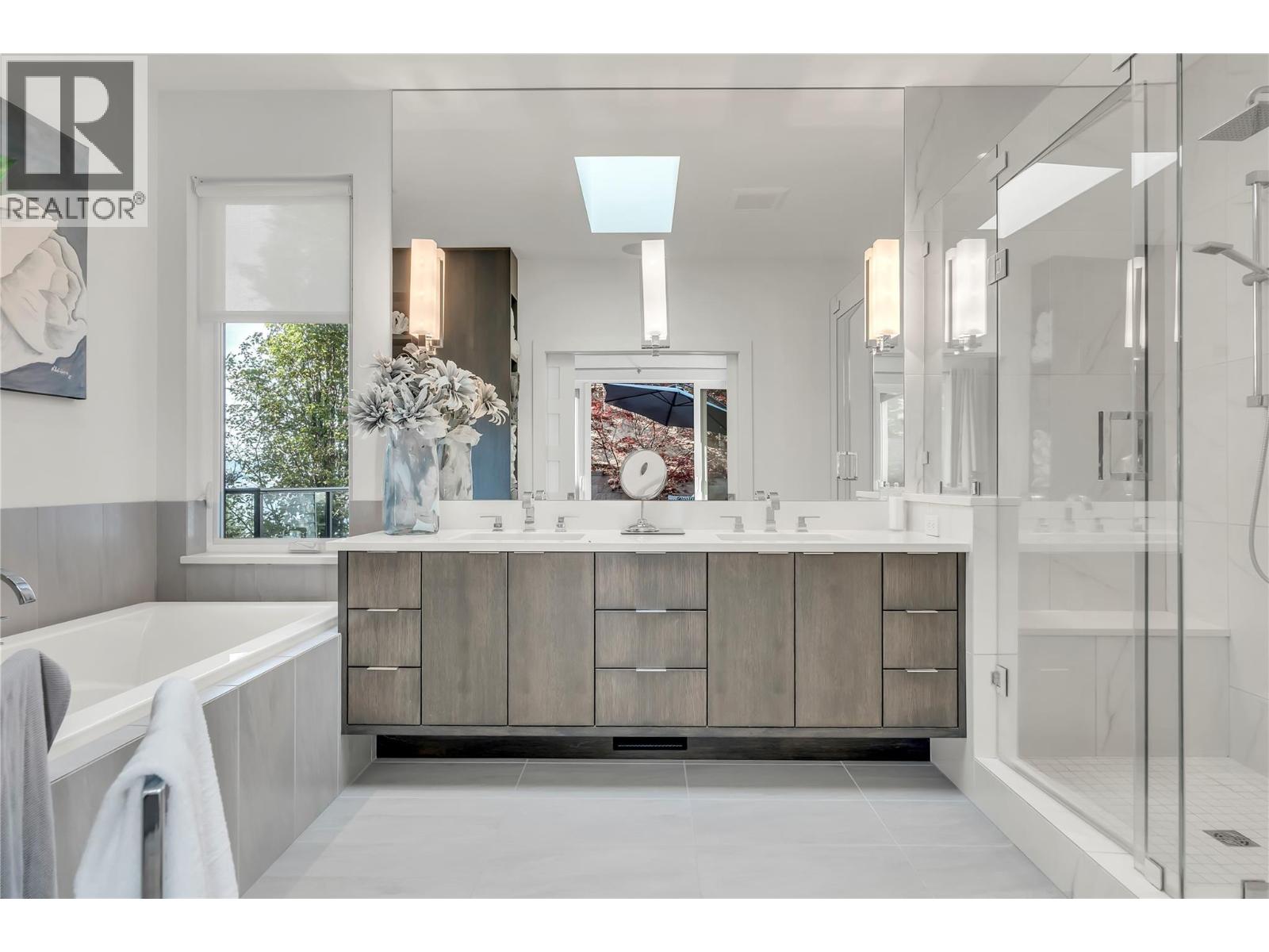 Discover refined luxury in this custom-built masterpiece perfectly positioned in prestigious Sumac Ridge Estates to capture breathtaking lake and mountain views. Enter into soaring living spaces filled with natural light and stunning vistas. The open-concept kitchen and dining areas flow seamlessly into multiple living spaces, ideal for entertaining or quiet retreats. With 3 bedrooms, family room, and legal suite, there's versatility for every lifestyle need. Distinctive architectural design adds character while private outdoor areas showcase panoramic scenery enhanced by professional landscaping. Nestled among vineyards beside a golf course, this exceptional home offers the perfect blend of elegance and tranquility that defines Sumac Ridge living. Experience luxury lifestyle living where every detail has been thoughtfully crafted. (id:47466)