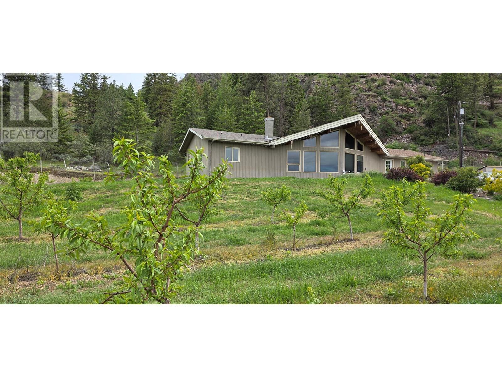 For those seeking a private oasis within a short drive (7 minutes) of downtown Osoyoos, this property offers a unique opportunity. This spacious rancher features 3 bedrooms plus a den and is situated on 5 acres of mostly flat and fenced land, including 3 acres of peaches. There is ample storage available for farm equipment or recreational vehicles. The property boasts a substantial workshop divided into two sections, measuring 30'x40' and 14'x40', both with durable metal siding and a metal roof. Additionally, there is a covered space on concrete, measuring 22'x33'. Pet owners will appreciate the 10'x10' insulated dog house. To arrange a showing, please contact your realtor today! (Also see Home MLS 10346631) (id:47466)