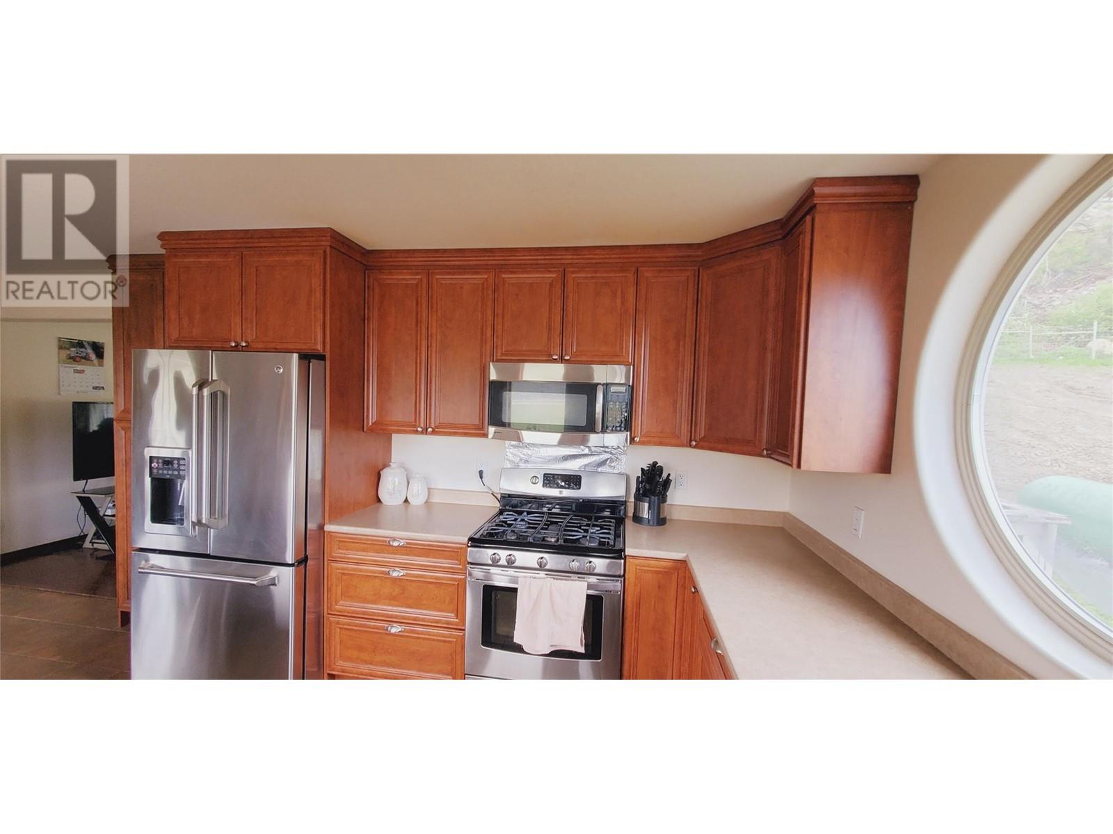 For those seeking a private oasis within a short drive (7 minutes) of downtown Osoyoos, this property offers a unique opportunity. This spacious rancher features 3 bedrooms plus a den and is situated on 5 acres of mostly flat and fenced land, including 3 acres of peaches. There is ample storage available for farm equipment or recreational vehicles. The property boasts a substantial workshop divided into two sections, measuring 30'x40' and 14'x40', both with durable metal siding and a metal roof. Additionally, there is a covered space on concrete, measuring 22'x33'. Pet owners will appreciate the 10'x10' insulated dog house. To arrange a showing, please contact your realtor today! (Also see Farm MLS 10346627) (id:47466)