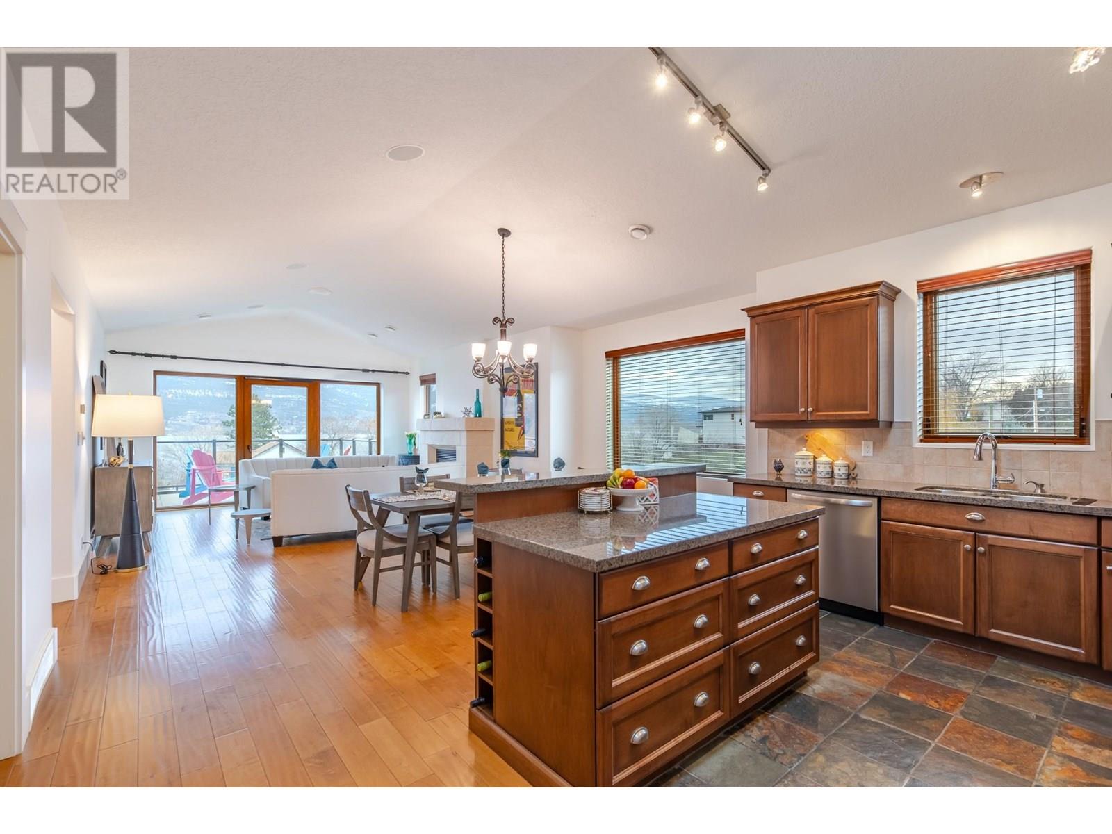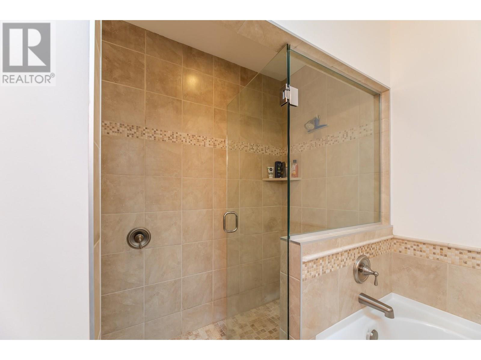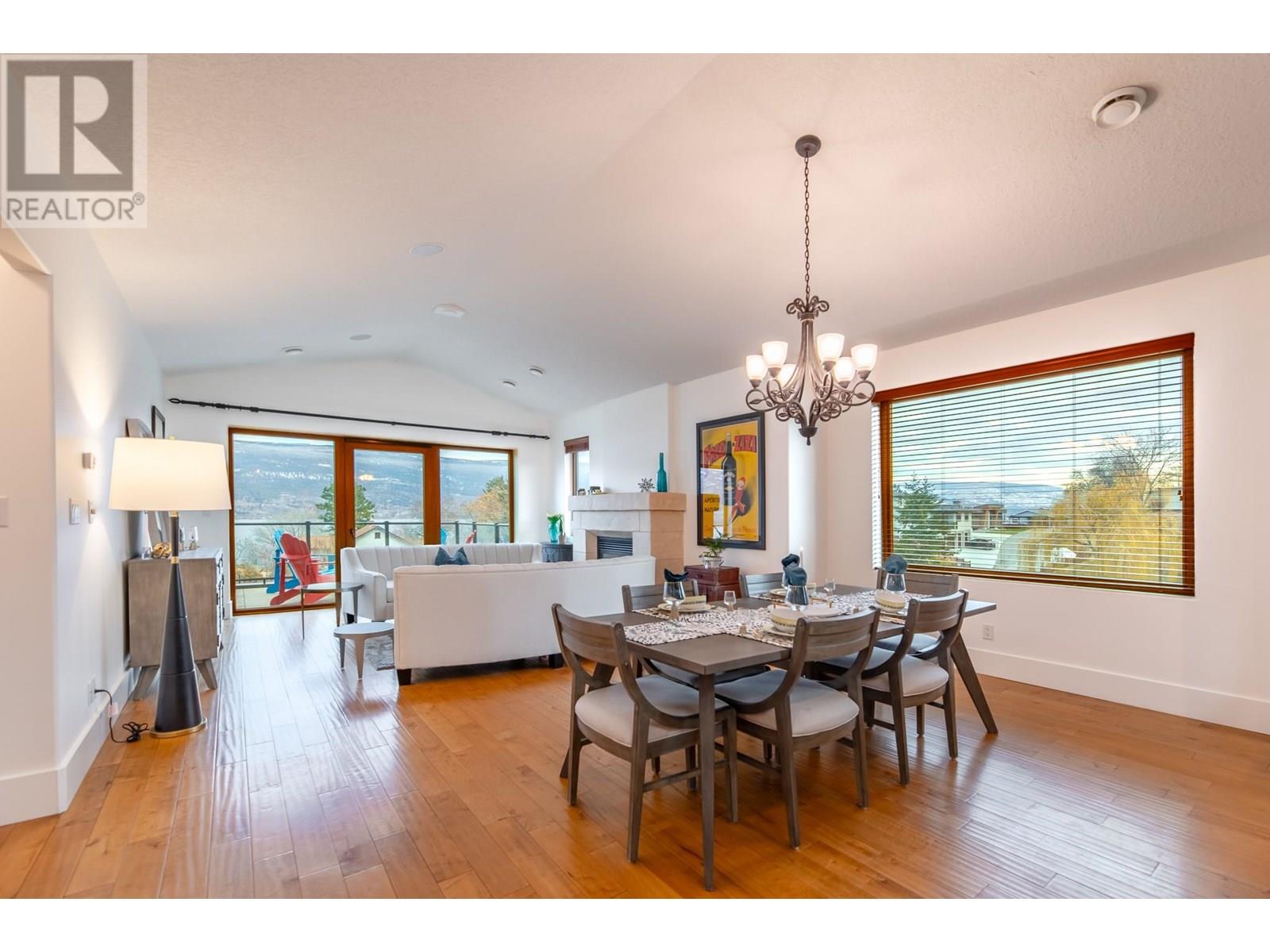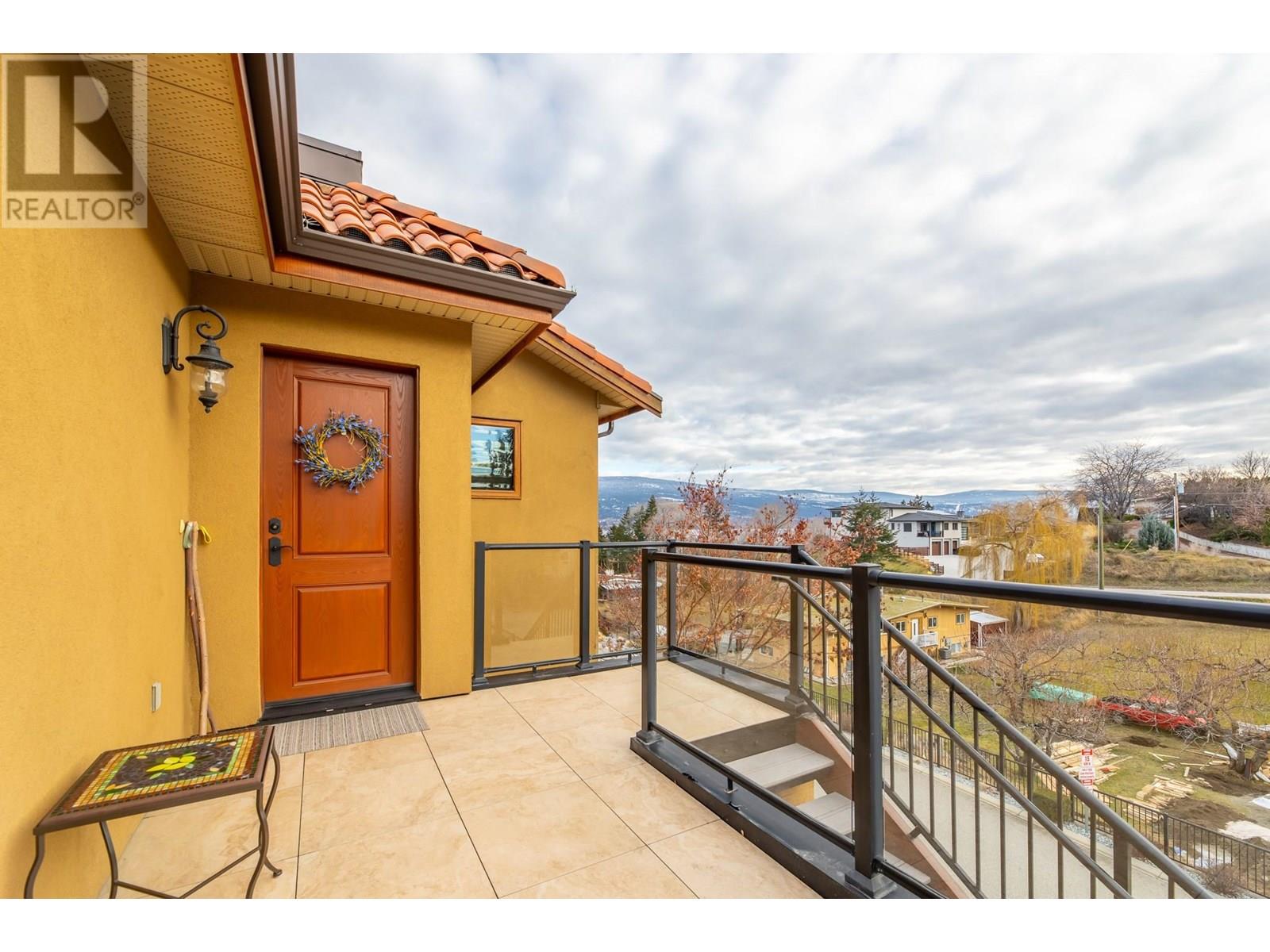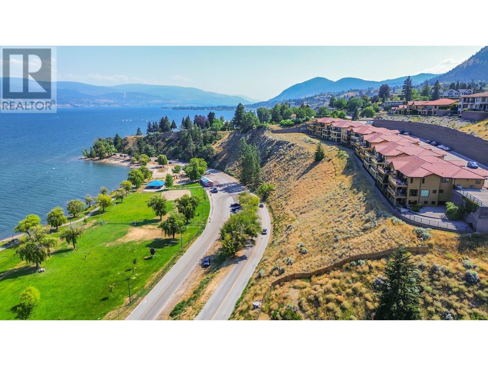 Experience the pinnacle of luxury living at the prestigious Tuscan Terrace, where breathtaking lake and mountain views await. This sophisticated 2-bedroom, 2-bathroom plus den condo offers an unparalleled combination of elegance, comfort, and convenience. The expansive floor plan features high-end finishes throughout, with soaring 9 & 11 ft ceilings, designer colors, and luxurious engineered hardwood and tile flooring. The spacious living room, complete with a gas fireplace, flows seamlessly to a private lake-view deck, creating an ideal space for both relaxation and entertaining. The gorgeous kitchen is a chef’s dream, outfitted with gleaming granite countertops, a large island with bar seating, and new stainless-steel appliances. Enjoy stunning lake views from both the dining room and the outdoor decks, offering a perfect setting for al fresco dining or simply soaking in the serene surroundings. The master suite is a true retreat, boasting a tranquil lake view, a walk-in closet with custom shelving, and a lavish 5-piece ensuite with double sinks, and an oversized shower. The den, featuring a built-in media center and surround sound system, provides the ideal space for a home office or entertainment room. Individually controlled stereo speakers are thoughtfully integrated throughout the home, including one deck. Additional highlights include a single garage, extra parking, and a prime location above the beach. (id:47466)