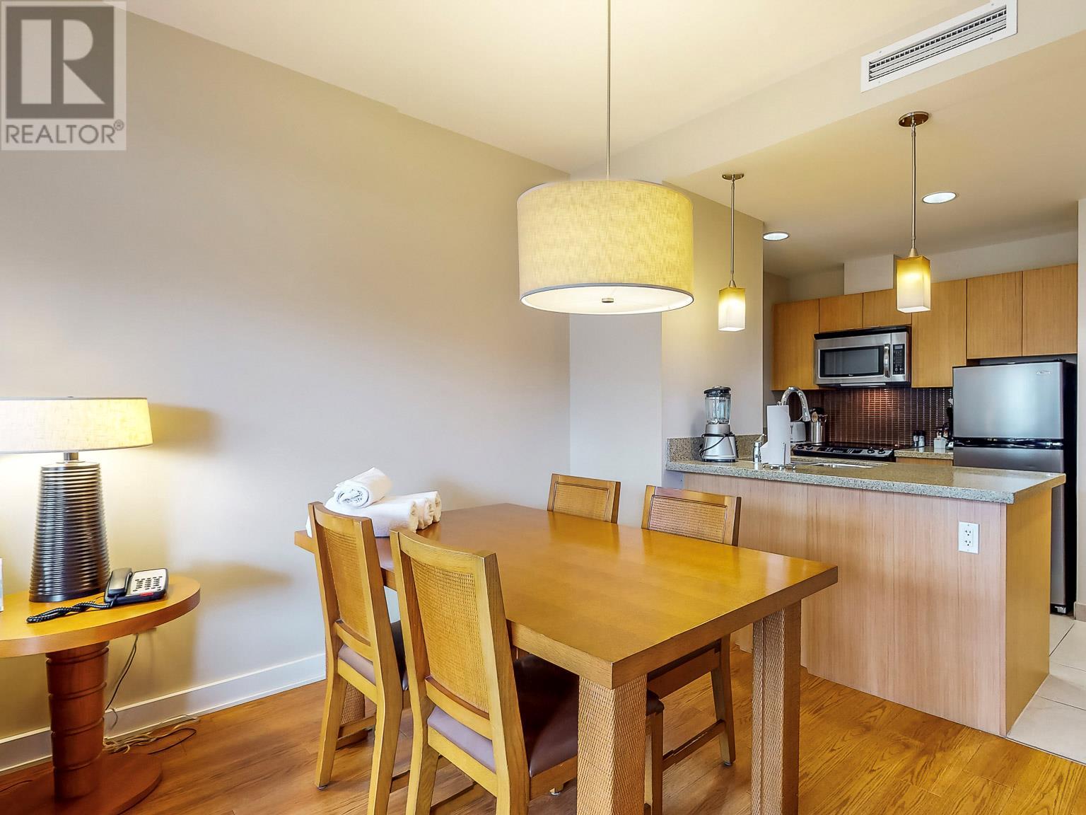 Lakeside Luxury at Watermark Beach Resort Welcome to Watermark Beach Resort, a beautifully appointed top-floor, fully furnished one bedroom suite in the heart of Osoyoos, BC. This immaculate 597 square foot condo offers a stylish open-concept layout with high-end finishes, including stainless steel appliances, stone countertops, and designer furnishings. Enjoy breathtaking views of the city and surrounding mountains from your private balcony, creating the perfect space to relax and unwind. As an owner at Watermark, you’ll have access to an exceptional range of resort amenities. These include a heated outdoor pool and hot tubs, a fully equipped fitness centre, steam rooms, a luxurious wellness spa, on-site dining at 15 Park Bistro, concierge and housekeeping services, and direct access to Osoyoos Lake with beautifully landscaped walking paths. Whether you're soaking up the sun or exploring the vibrant local wine and food scene, everything is right at your doorstep. Zoned for short-term rentals, this property is not just a vacation getaway—it’s a smart investment. In 2024, it generated a top net payout of $17,700 through the resort's professionally managed rental pool. With its prime location, proven rental income, and full-service amenities, this unit is ideal for personal enjoyment, passive income, or both. This is your opportunity to own a piece of paradise on Canada’s warmest lake. (id:47466)
