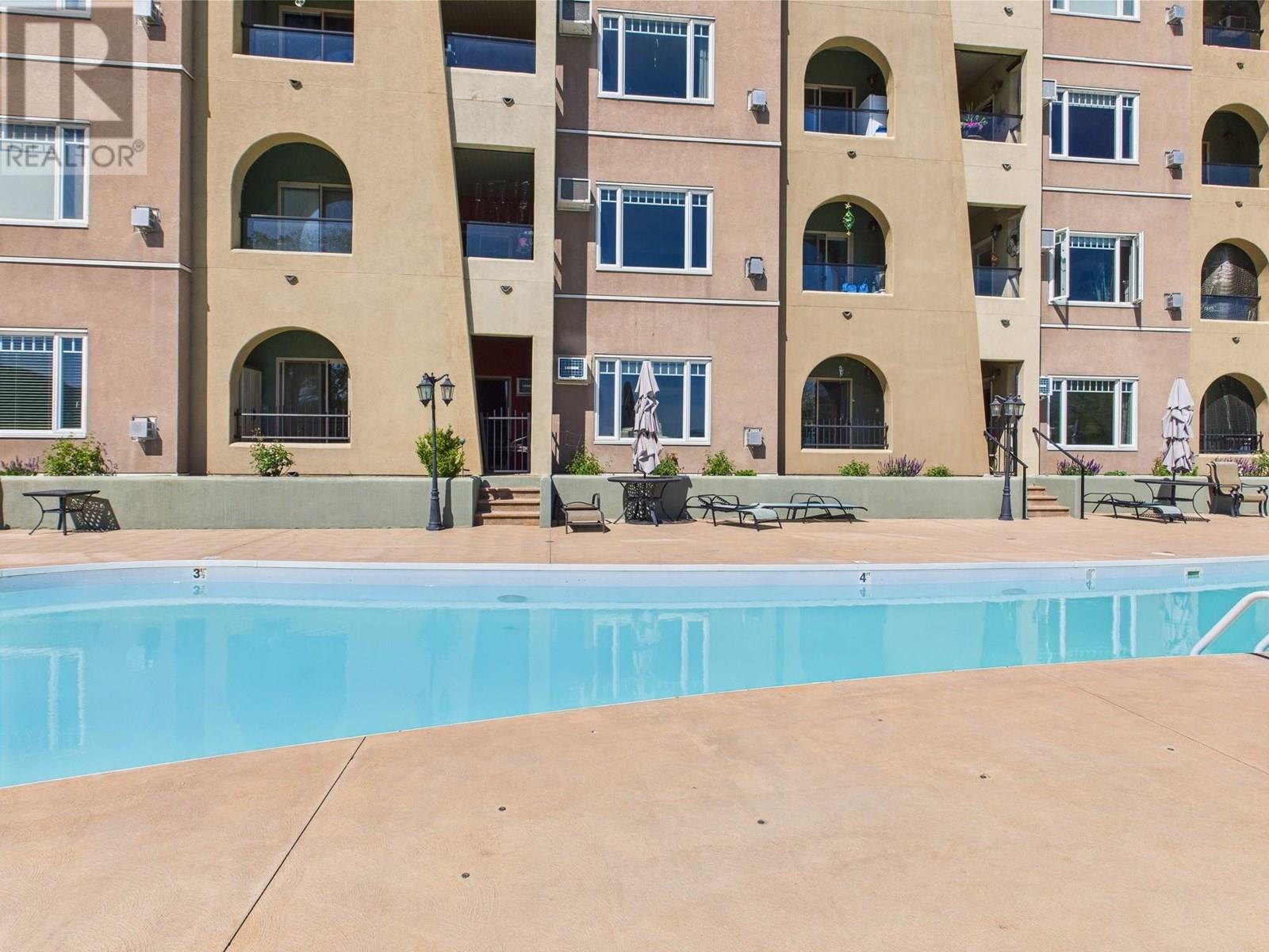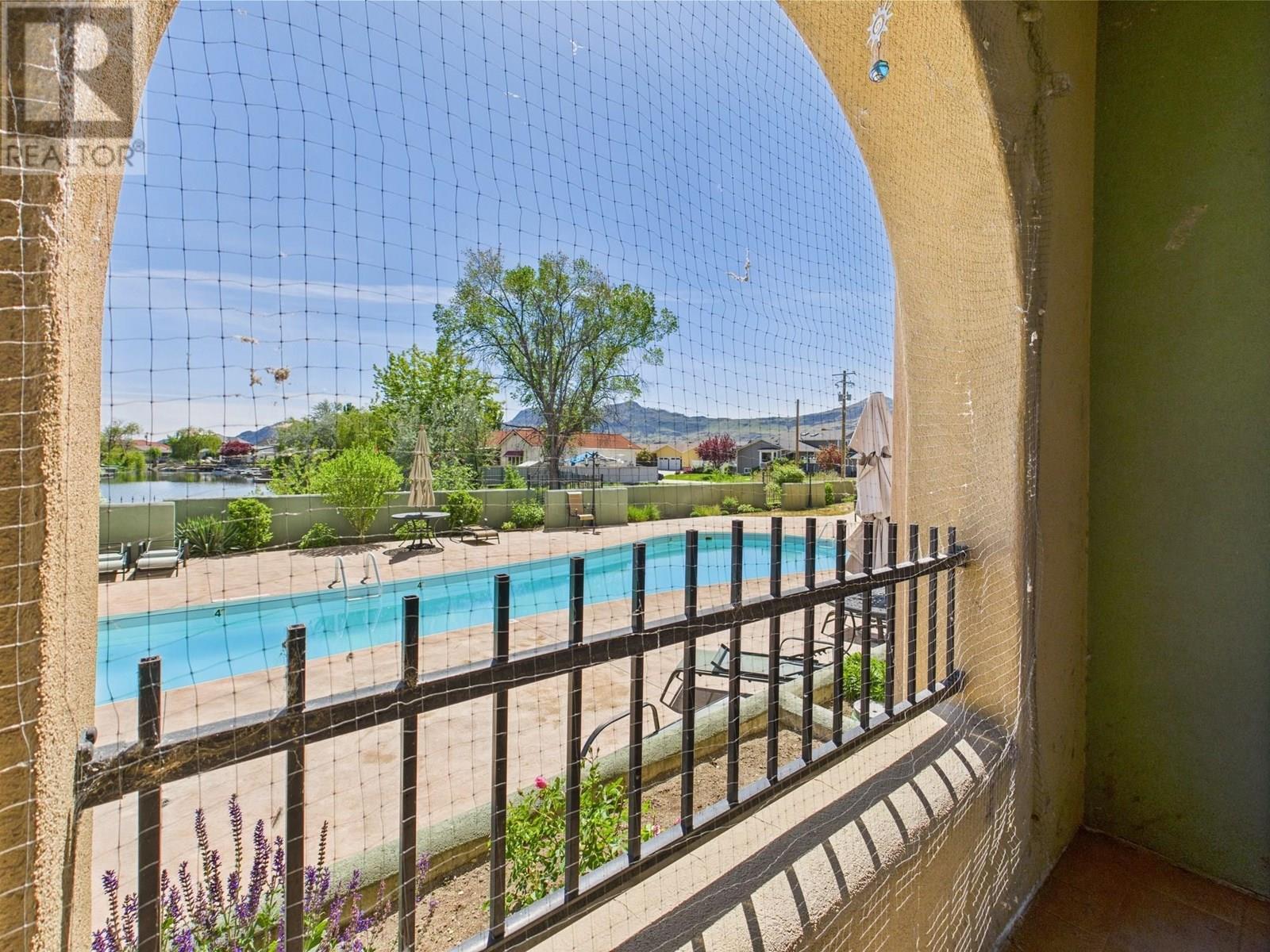 Live your best life at Desert Mirage. Nothing to do here but move in and start enjoying all this unit has to offer. Bright kitchen with newer stainless appliances opens onto spacious eating area where there's lots of room to gather with friends. Floors are tile and laminate in this bright unit, easy care for a lakeside home. There are 2 spacious bedrooms at opposite ends, Primary with spacious ensuite & 2nd bedroom with private access to a full bathroom. Each room has it's own a/c. Best of all each of these rooms have an amazing lakeview. If you need extra sleeping room the den can house your overflow guests. There's a corner gas fireplace for chilly days, 2 covered decks to extend outdoor year round outdoor enjoyment. It's hard to beat the location of this condo. Ground floor means you can park right outside your door and make unloading groceries easy! On the lake side your deck has easy access to the pool making heading in for a snack simple. Desert Mirage is a gated complex & offers 2 heated pools, hot tub; a great walking neighbourhood near restaurants, park & lakefront walkways. Located a short drive to 2 golf courses, town center & many award winning wineries. This home is perfect for retirement, a family holiday home or an investments. Call today to book a viewing. All measurements approximate and should be verified if important. (id:47466)