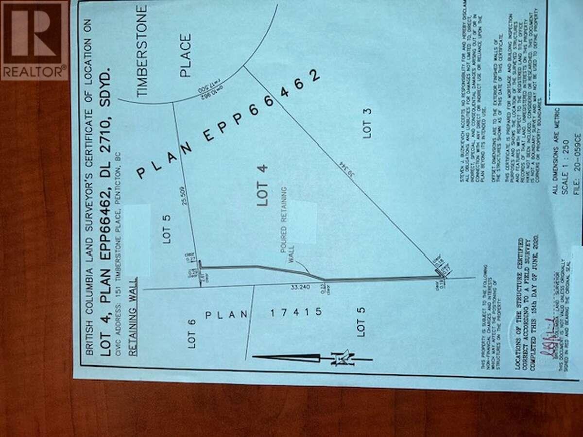 For more information click the brochures button. Build your dream home on this fully serviced, city-view lot located in the prestigious and family-friendly Wiltse neighbourhood of Penticton. Nestled in a quiet cul-de-sac within a recently developed area, this property offers the perfect combination of privacy, natural beauty, and convenience. The lot has been professionally prepared with engineered concrete retaining walls and comes with a custom-designed home plan specifically tailored for this site, which can be used if desired. All major utilities are available at the lot line, including sewer, water, electricity, and natural gas - making it truly ready for development. Enjoy breathtaking panoramic views of the city and surrounding landscape from your future home, while being just minutes away from all essential amenities. Cherry Lane Shopping Centre, Penticton Regional Hospital, schools, parks, and other local conveniences are all within a five-minute drive. This is a rare opportunity to build a custom home in one of Penticton’s most desirable and well-serviced neighbourhoods. Don’t miss out! (id:47466)