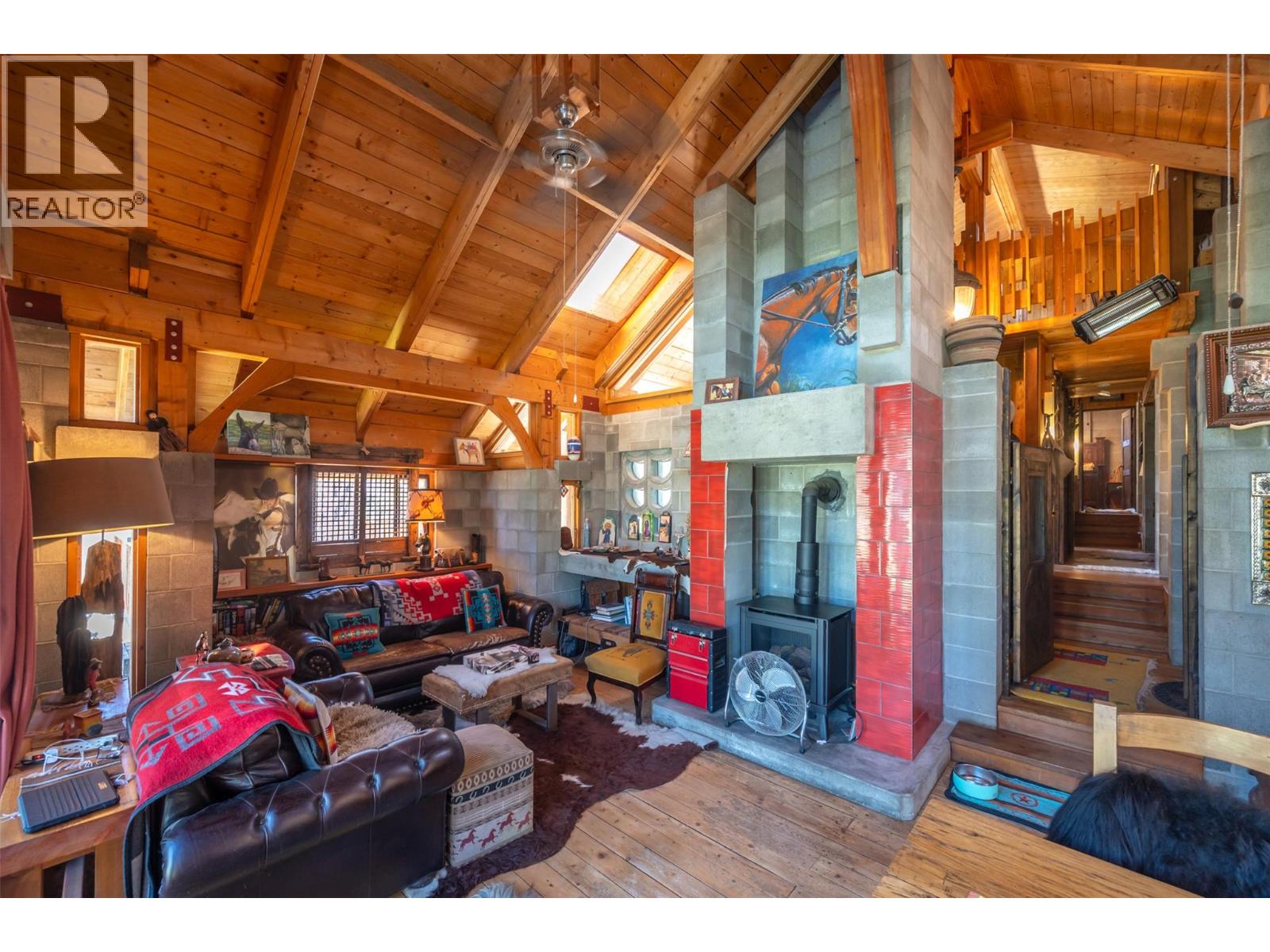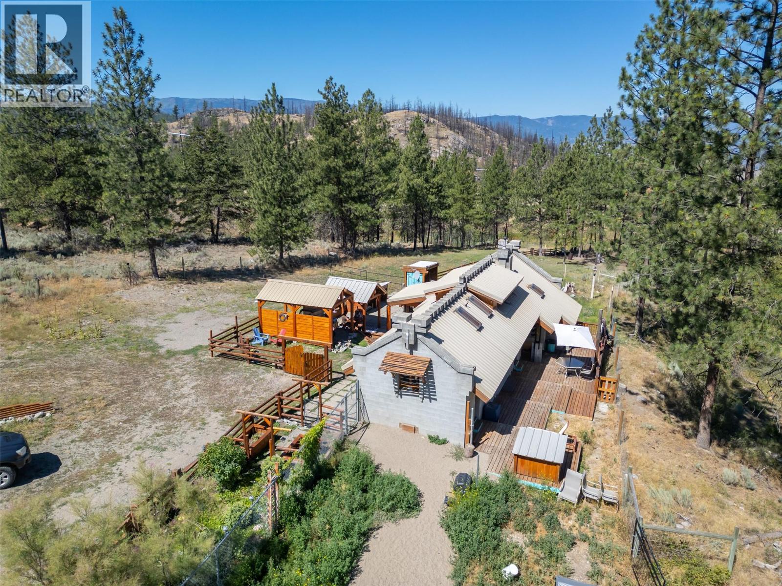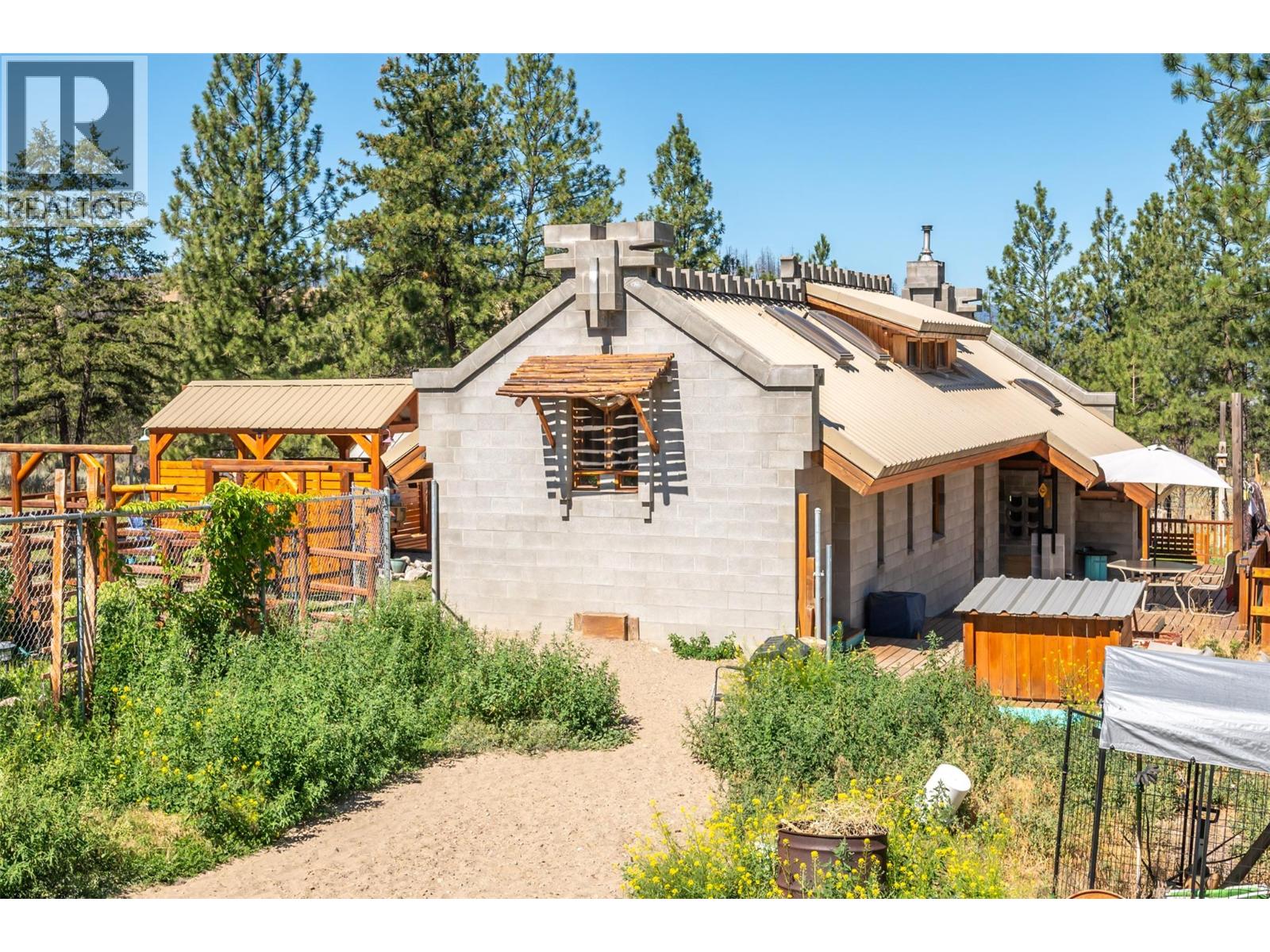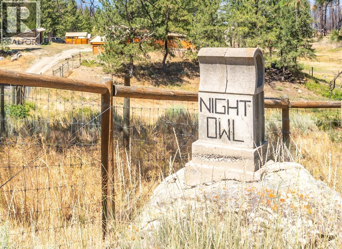 Welcome to Night Owl! This bespoke residence designed by renowned architect Henry Yorke Mann is nestled amidst 10+ acres of pristine, rolling ranchland, 15 minutes from Oliver. An architectural marvel, this home embodies HYM's ethos, maximizing the use of natural materials, while creating buildings respectful of, and in harmony with their environment. Designed specifically for it's site, and fashioned from insulated concrete block, with a metal-clad roof, this home is heating and cooling efficient by-design, and offers heightened peace of mind regarding fire safety. Unassuming from a distance, but awe-inspiring up close, visitors will marvel at the interplay of materials, custom windows and doorways, intricacy of the wood joinery, and the masterfully artistic approach to the concrete block detailing evident throughout. Features include soaring, vaulted wood-clad ceilings, HYM's signature fireplace focal point, thoughtful separation of public and private spaces, abundant storage, and access from 5 doorways to various outdoor decks and patios providing 270 degree views of rolling hills and meadows, and the beautiful mountain vistas beyond. Numerous thoughtful improvements by the current owner include 3 barns, a large fully-serviced kennel with adjacent holding pen, tractor shelter, hay storage, and gated entry to the primary entrance, with an adjacent log gazebo and expansive patio. The property has also been fully fenced. Dimensions approximate. Buyer to verify if important. (id:47466)