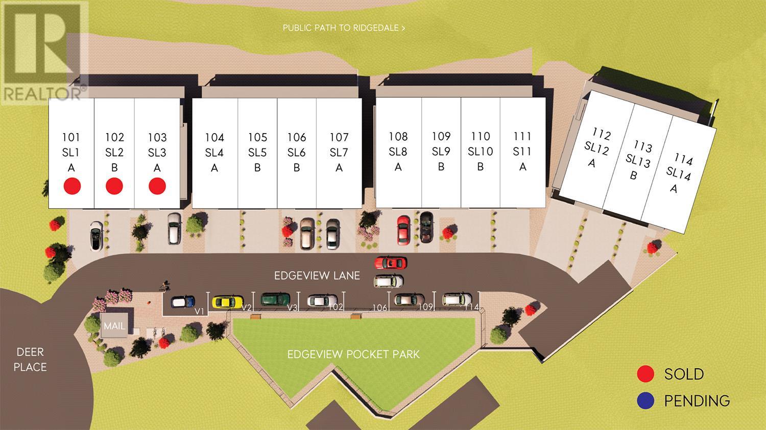 Introducing Edgeview at the Ridge, a boutique townhome development featuring an exclusive collection of 14 thoughtfully designed homes. Each residence offers over 2,200 SF of well-crafted living space, built with high-quality construction by a trusted local build and design company. This unique community is enhanced by unobstructed views, direct access to walking paths, and a private pocket park. Designed for comfort and versatility, these homes feature 4 bedrooms, 4 bathrooms, a flexible family room, a single-car garage, and two additional parking spaces. Insulated concrete walls between units provide superior soundproofing and privacy, delivering the feel of a single-family home with the convenience of a townhome. The main floor showcases a beautifully designed kitchen with quartz countertops, a spacious dining area, and access to one of two private, covered decks. Upstairs, 3 bedrooms include a primary suite with a large walk-in closet and a well-appointed 4-pc ensuite. A conveniently located laundry room completes this level. The daylight basement adds extra versatility with a bedroom, family room, ample storage, and exterior access to the second covered deck. Building 1 is sold and occupied, while 4 homes in Building 2 are under construction and expected to be move-in ready by August 2025. Prices do not include GST. Photos are from the previous show home and reflect the standard of construction and finishes. (id:47466)