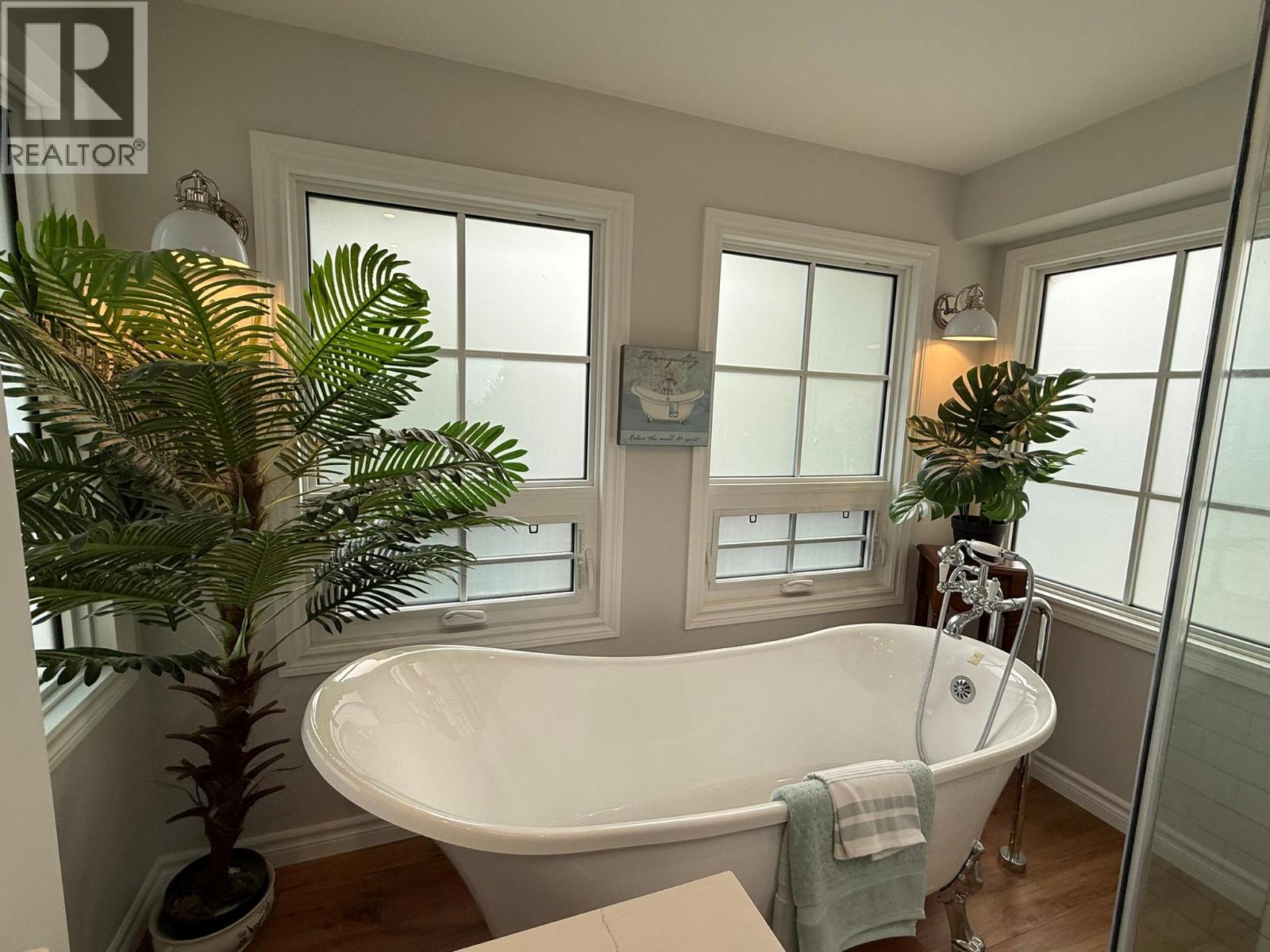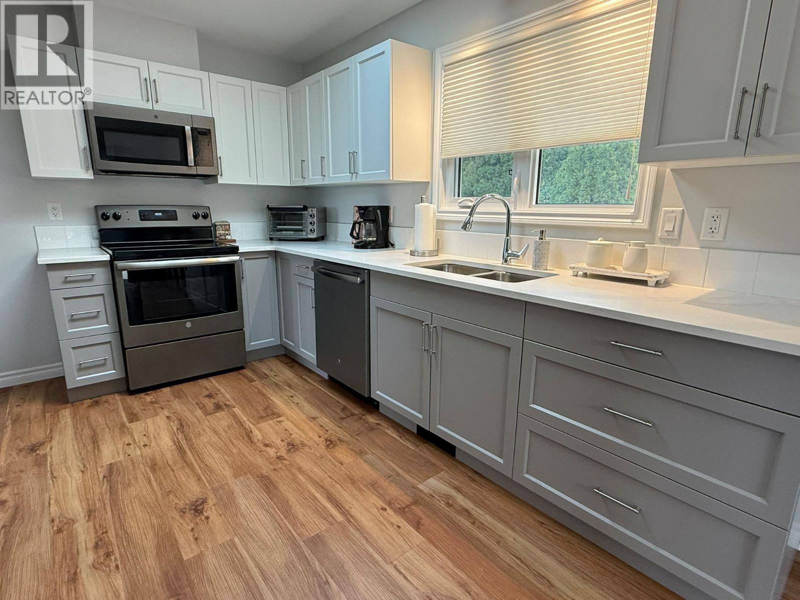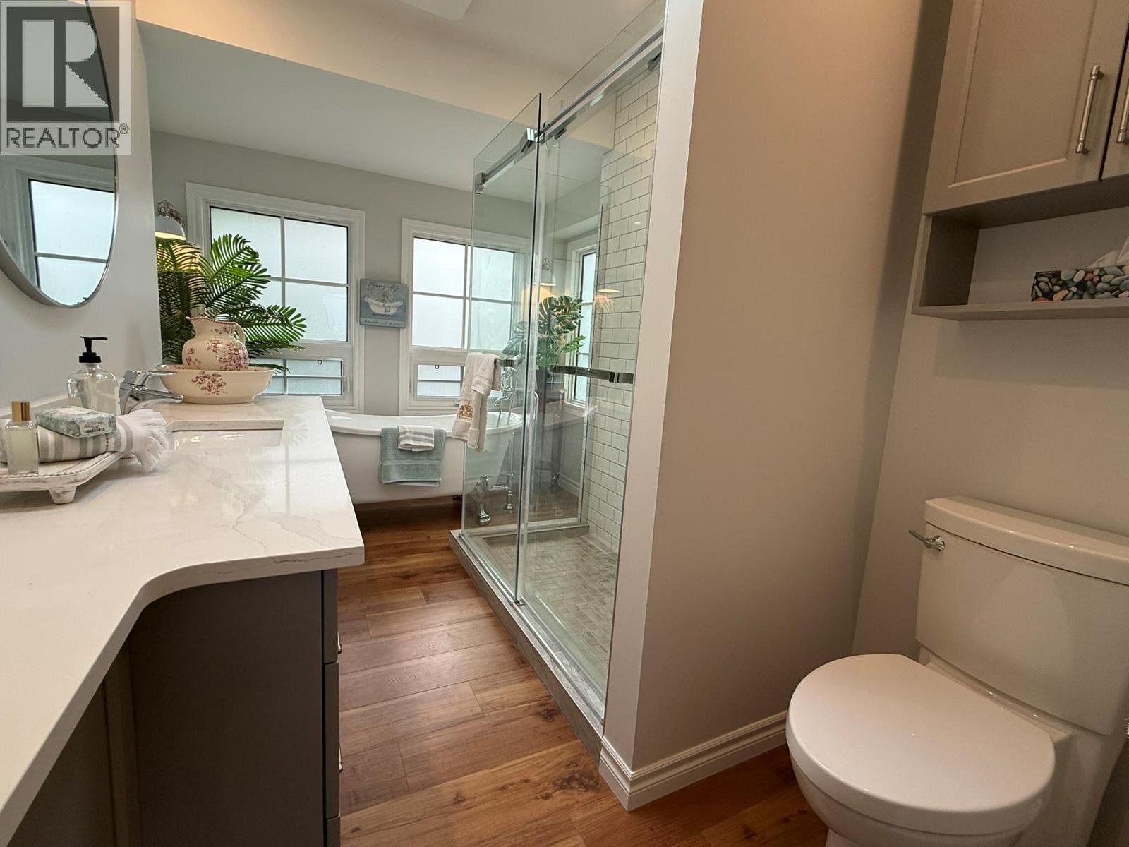 Stylish 3-Bedroom, 3-Bath Home with Stunning City & Valley Views. Tucked away on a quiet cul-de-sac, this beautifully updated home offers breathtaking city and valley views from both the main living space and upper deck. The upper level has been fully renovated and features a modern kitchen with quartz countertops, a beautifully designed bathroom with a claw-foot tub and a large tiled walk-in shower, and durable vinyl plank flooring throughout. Step out from the dining area onto a spacious deck—perfect for morning coffee or evening entertaining—all while enjoying the panoramic views. The private, fully fenced yard is surrounded by mature trees and includes multiple decks and three storage sheds for all your needs. The lower level includes a generously sized bedroom with ensuite, a large rec room, a powder room, and a spacious laundry/storage area. The single carport has been enclosed for added functionality. A rare combination of style, space, and scenery—this home is move-in ready! (id:47466)