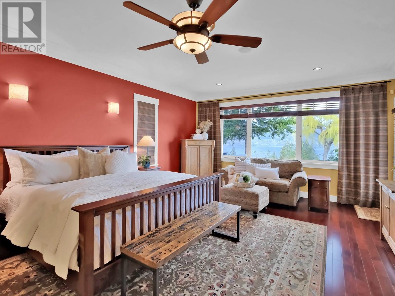 A rare gem nestled in one of Penticton’s most coveted neighborhoods, this dream property offers an unbeatable location and exceptional setting. This sprawling level-entry rancher sits on a beautifully landscaped half-acre lot, perfectly perched to capture sweeping views of Okanagan Lake. With the scenic KVR walking trail right at your doorstep, nature and convenience blend seamlessly in this one-of-a-kind offering. Completely rebuilt in 2006, the home features 4 bedrooms and 3.5 baths, with a thoughtfully designed layout that prioritizes both comfort and privacy. The primary suite is located in its own exclusive wing, separated from the two additional main-floor bedrooms by a spacious and inviting living area. The lower level provides even more space, ideal for guests, a media room, home gym—or all three! Enjoy a large attached double garage, plenty of additional parking, and park-like grounds that feel like your own private retreat. Whether you’re entertaining, relaxing, or exploring the outdoors, this property truly has it all and is a must see! (id:47466)