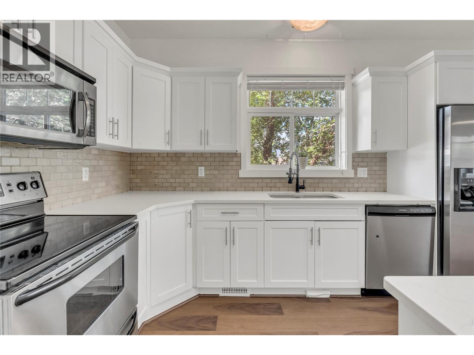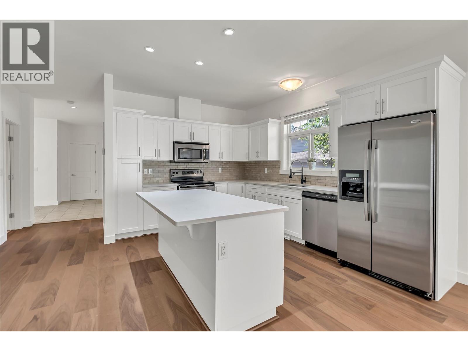 Located in the sought-after community of Bridgewater, this well-maintained three-bedroom rancher with a double garage offers a unique blend of convenience and tranquility. The development is privately nestled in a quiet natural setting, just minutes from everyday amenities, and bordered by the year-round flow of Penticton Creek. This home, which is perfect for seniors and empty nesters, has a well-planned layout featuring a large inviting foyer and an open-concept design with a spacious kitchen, quartz countertops, a sit-up bar, a dedicated dining area, and a bright living room centred around a modern gas fireplace. The generous primary bedroom includes a walk-in closet and a four-piece ensuite. Two additional bedrooms provide flexibility for guests, a home office, or hobbies, while a full laundry room adds functionality. Step outside from the main living space to a private outdoor area ideal for relaxing or light tinkering. Recent upgrades include engineered hardwood flooring, interior and exterior paint, and updated countertops. A crawl space offers useful additional storage. Bridgewater is a flat, walkable development with easy access to city trails along the creek. This is a well-managed bare land strata with a low monthly fee of just $99, no age restrictions, and pet-friendly bylaws. (id:47466)