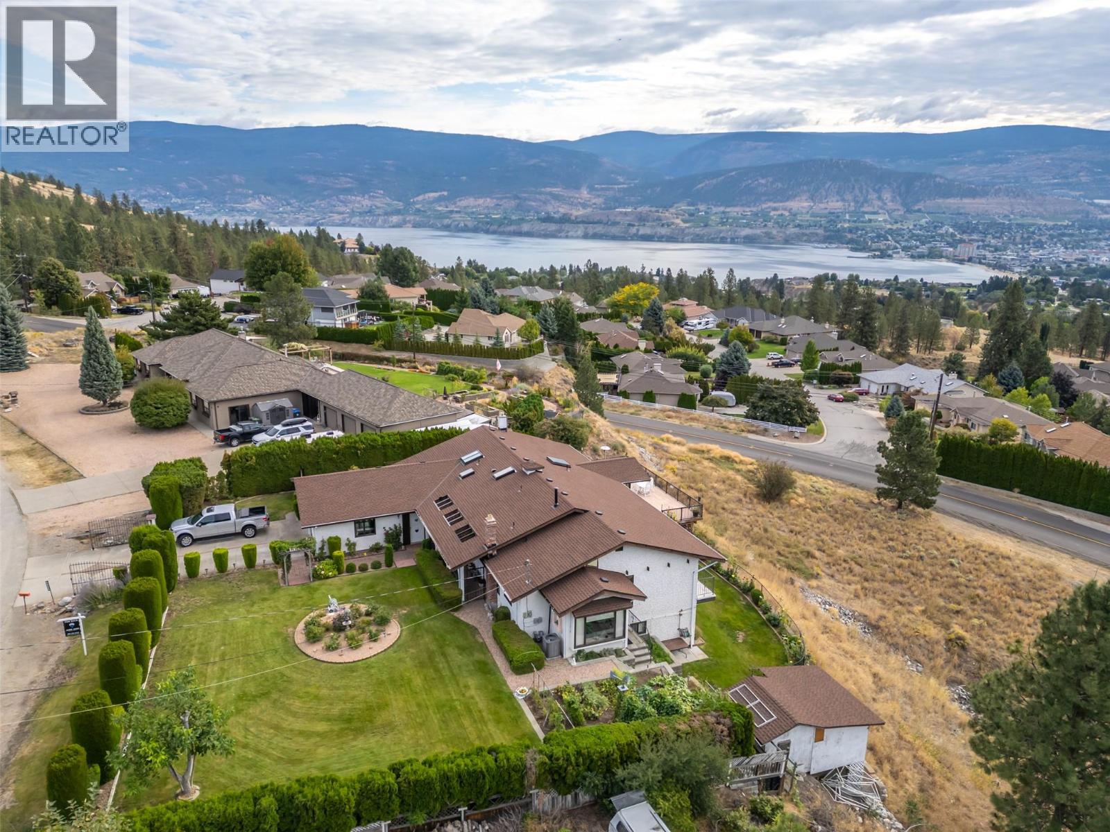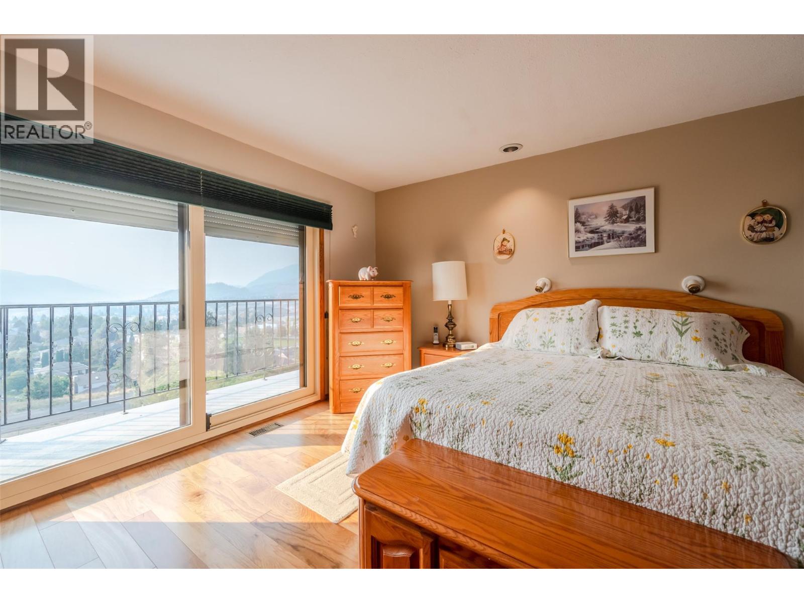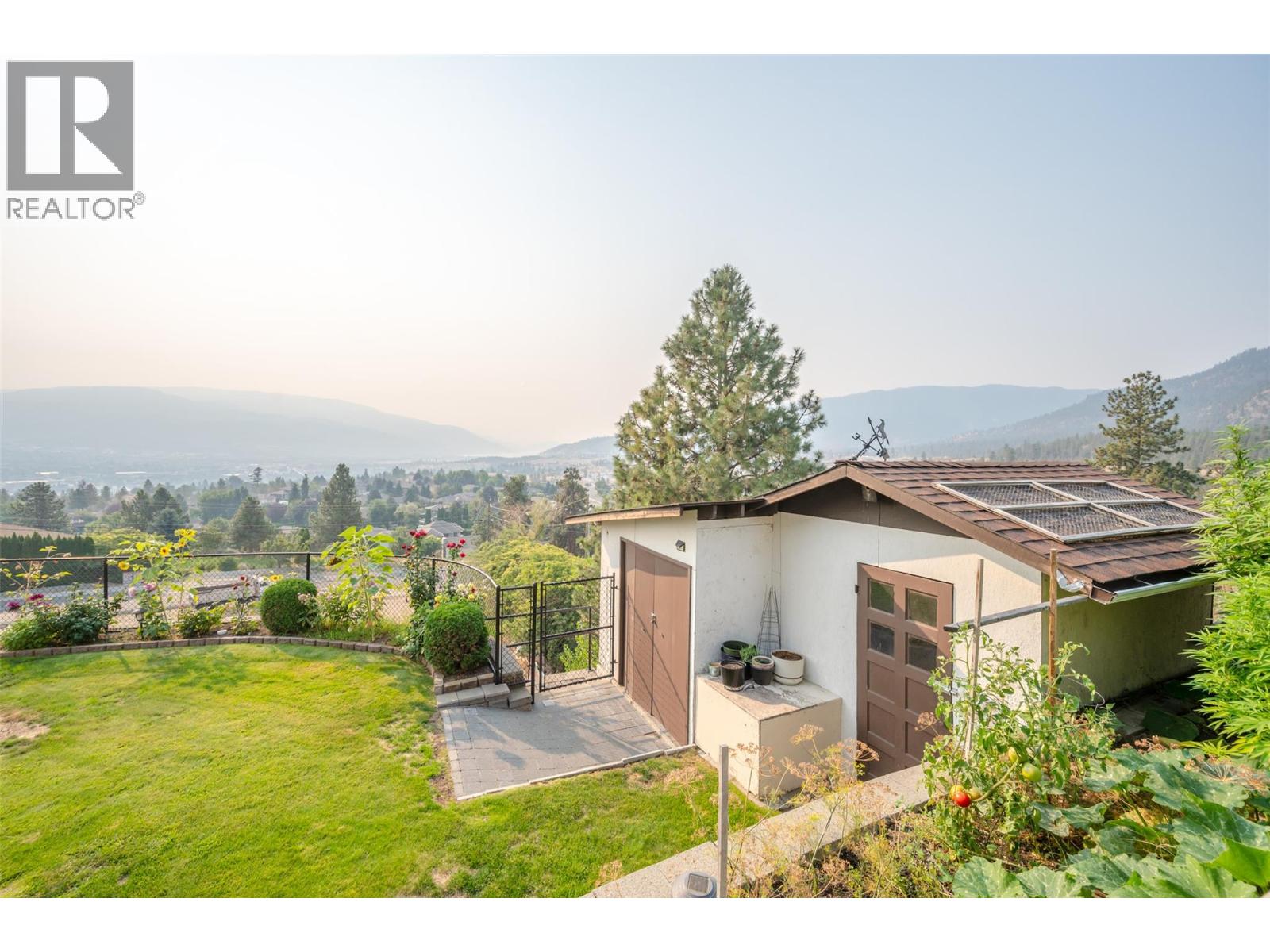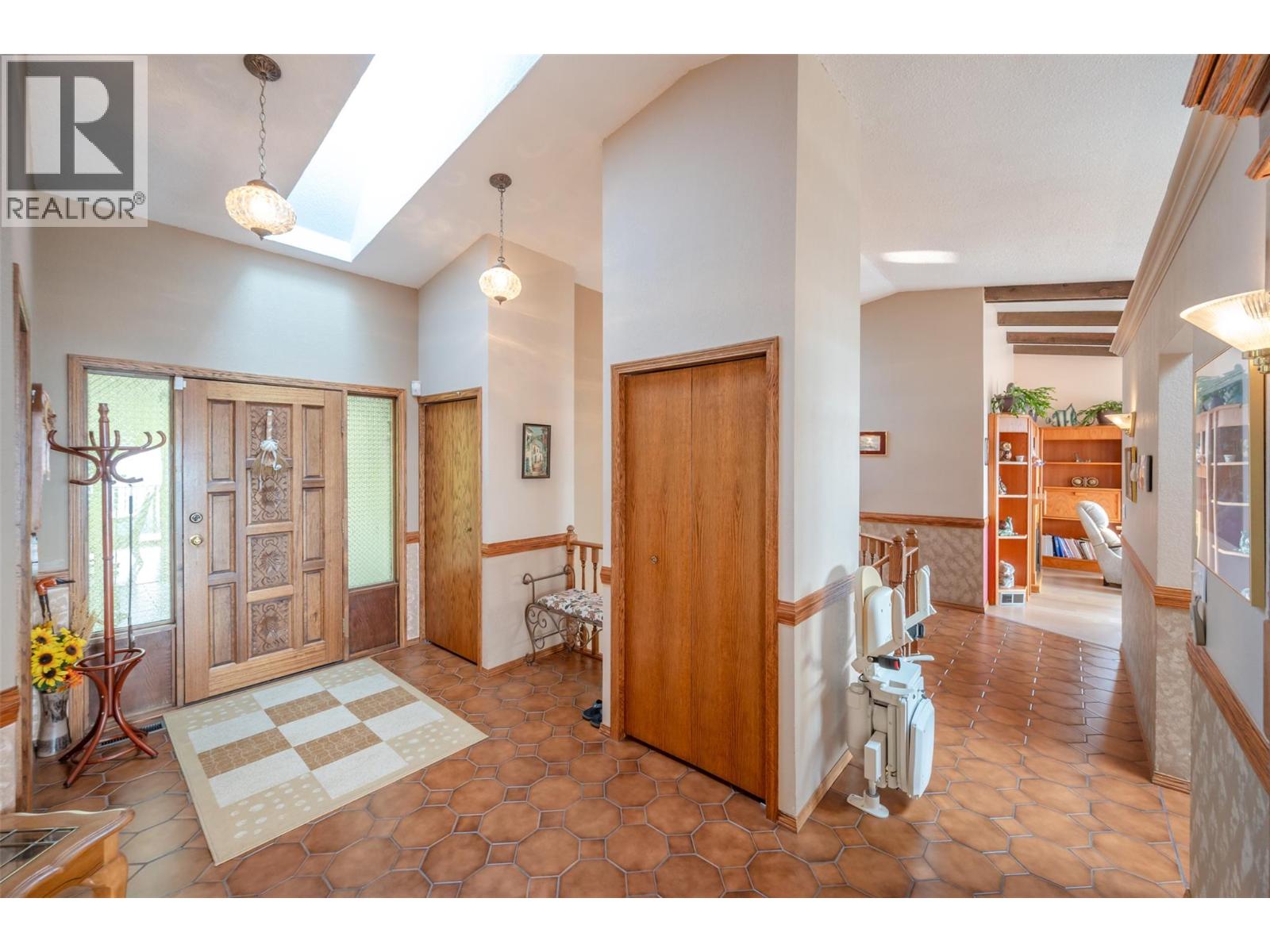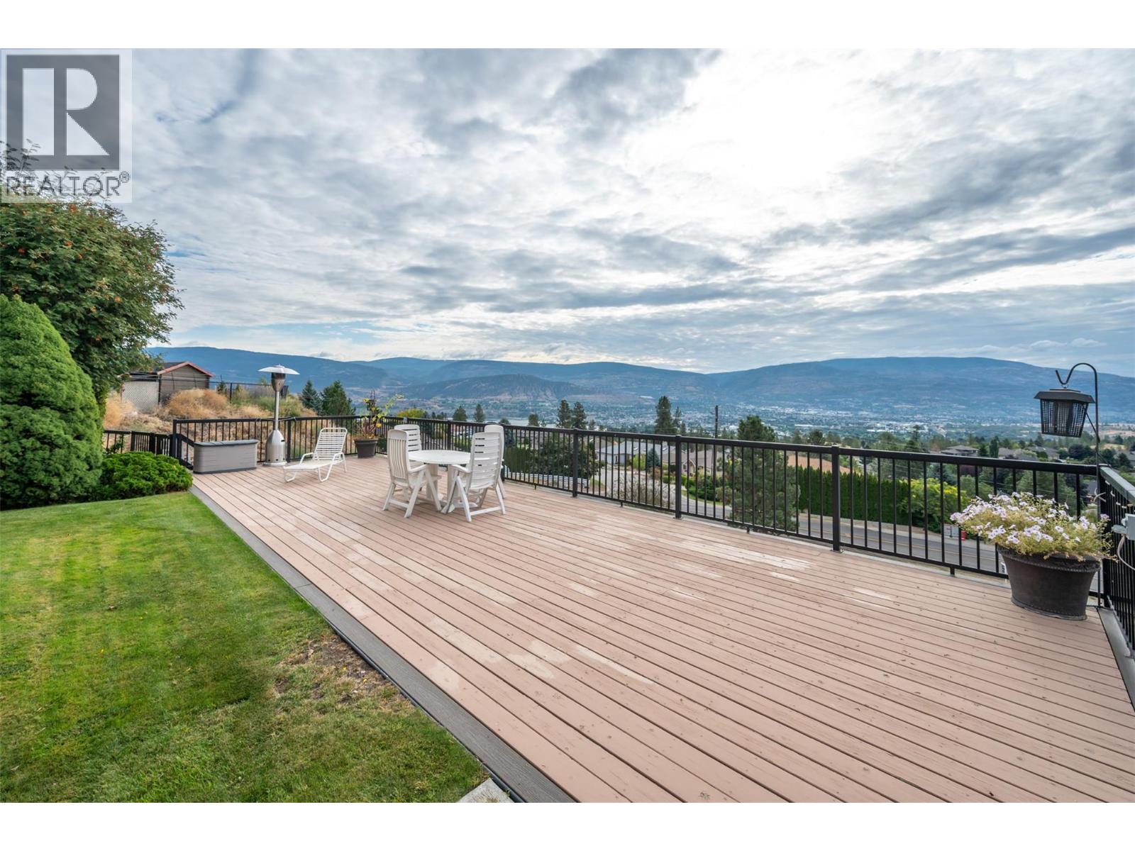 Welcome to your private estate perched high above Penticton, where breathtaking panoramic views of both Skaha and Okanagan Lake create an unforgettable backdrop - all just 3 minutes from town. This executive walk-out rancher sits on a full acre of park-like grounds with manicured hedges, a gated driveway, and endless possibilities on the lower tier of the property. This home has been meticulously maintained over the years with many updates throughout. Inside, soaring vaulted ceilings with exposed beams, engineered hardwood, and custom octagon tile create timeless character. The main floor offers 3 beds, 3 baths, an office, sunroom, and a bright family room with a wall of windows. The expansive kitchen and breakfast nook showcase stunning valley views through bay windows, while the formal dining room is ideal for hosting family gatherings. The primary suite is a true retreat with dual vanities, wic, hot tub, and direct access to the balcony. Downstairs, a summer kitchen opens to a sweeping rec room, the perfect space for the kids to play or to host extravagant parties! Along with 2 more beds, full bath with sauna, wine room, and a large workshop for hobbyists. Multiple balconies and a massive deck ensure you’ll never miss a sunset over the valley. A spacious double-car garage with extra storage adds both convenience and functionality. With its unmatched views, timeless architecture, and extraordinary lot, this is a one-of-a-kind estate! (id:47466)