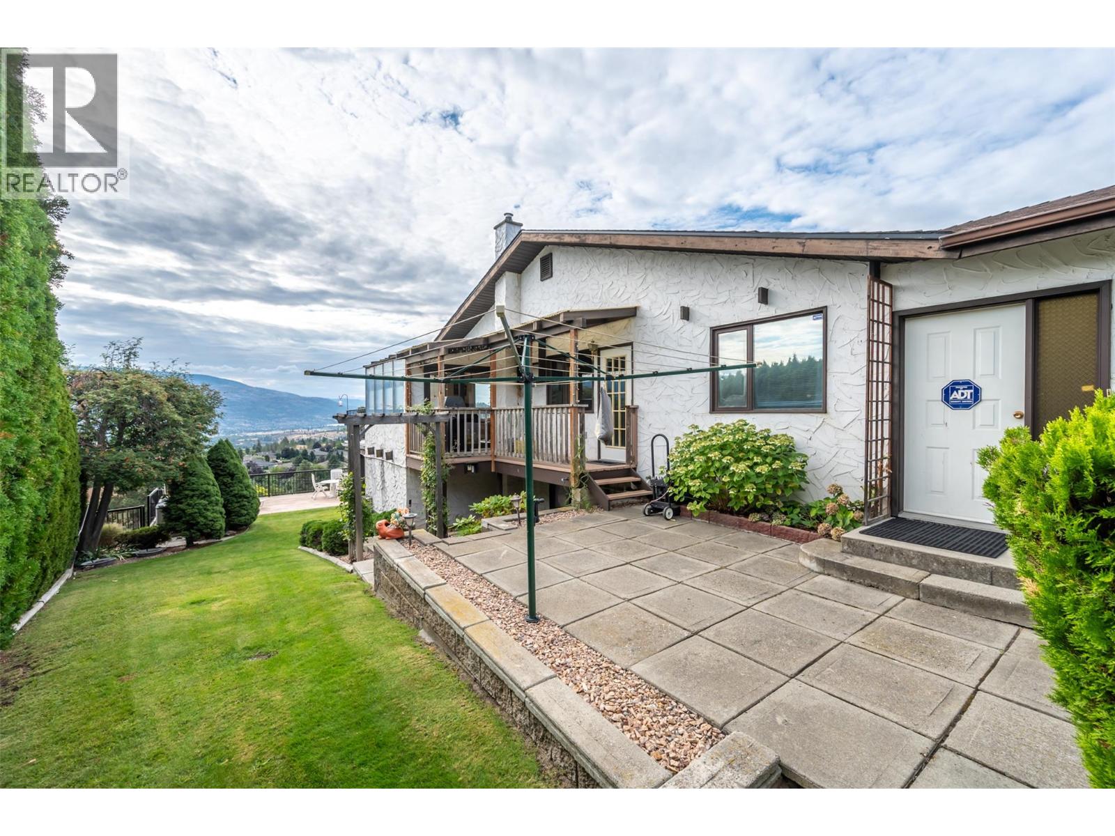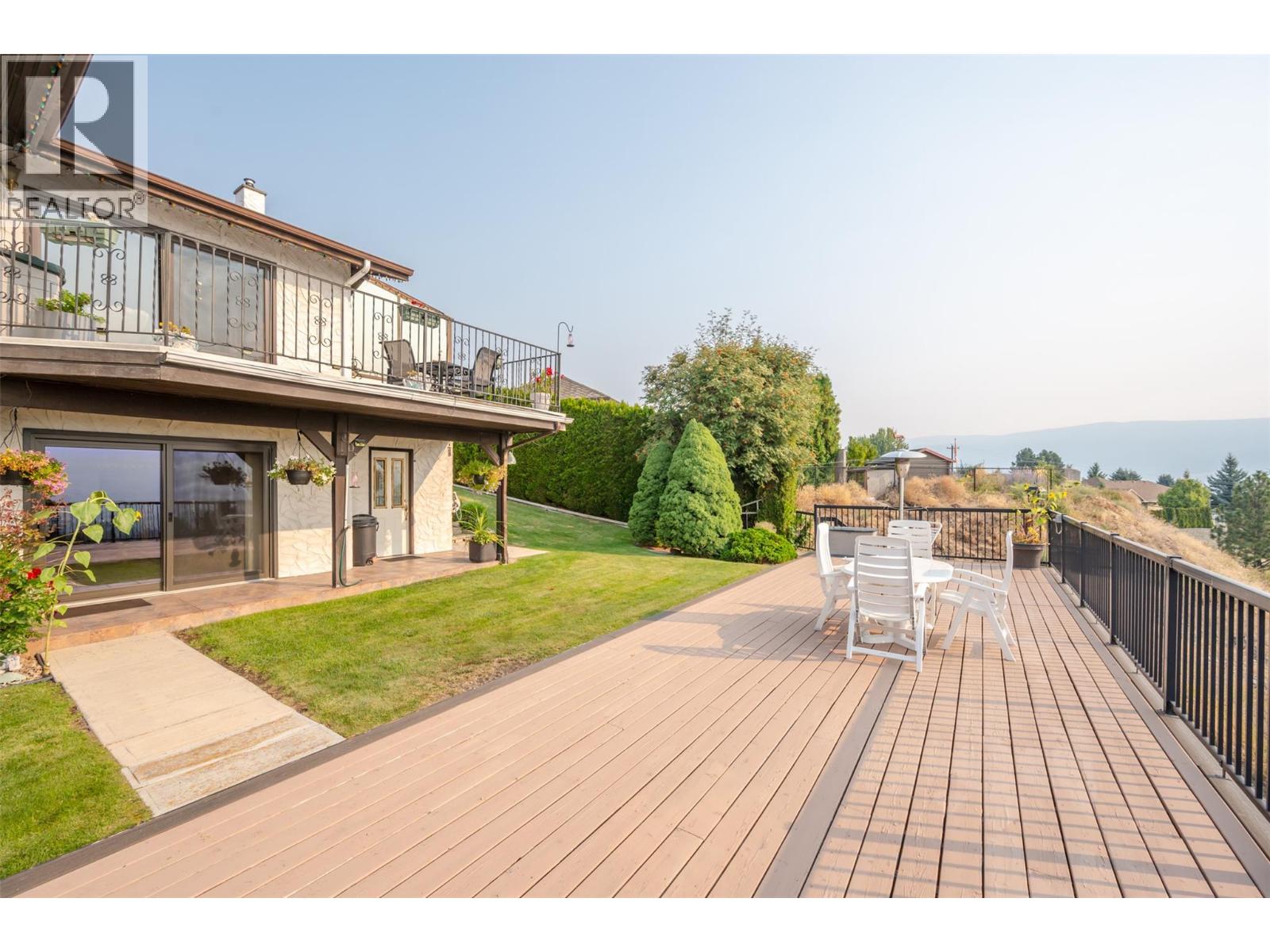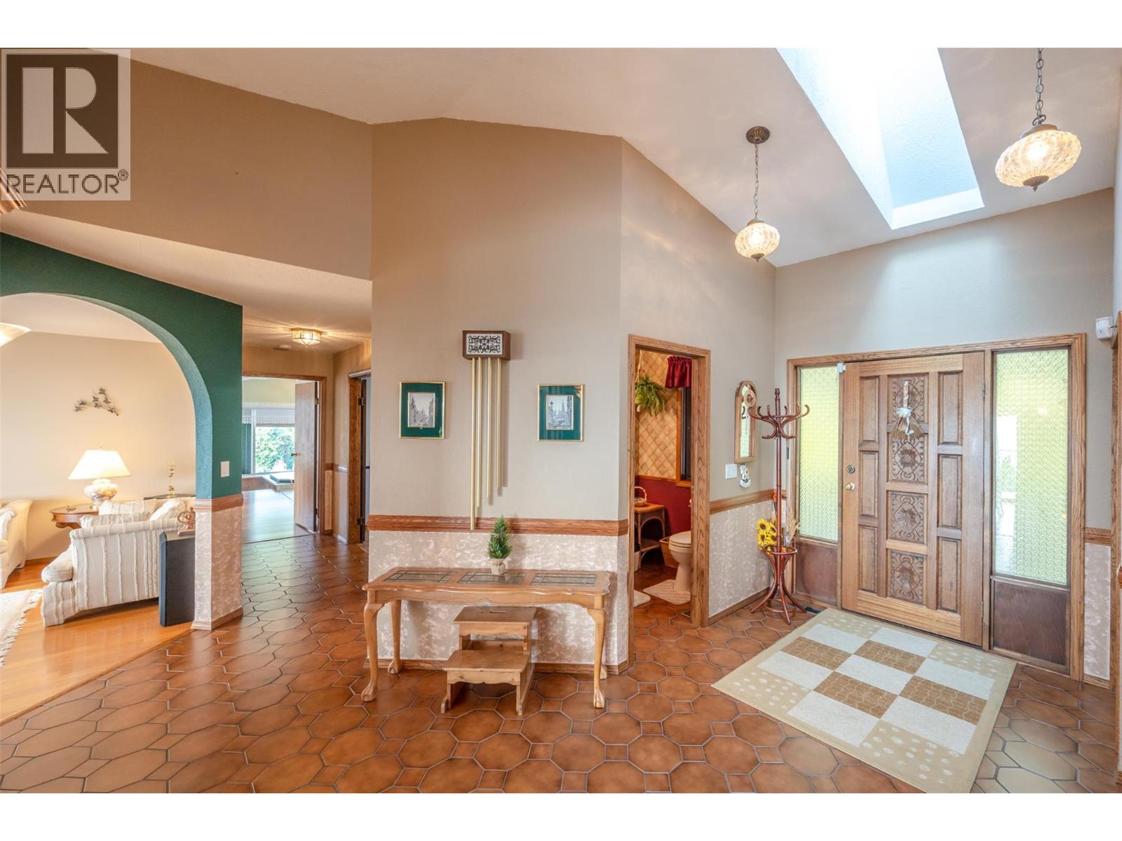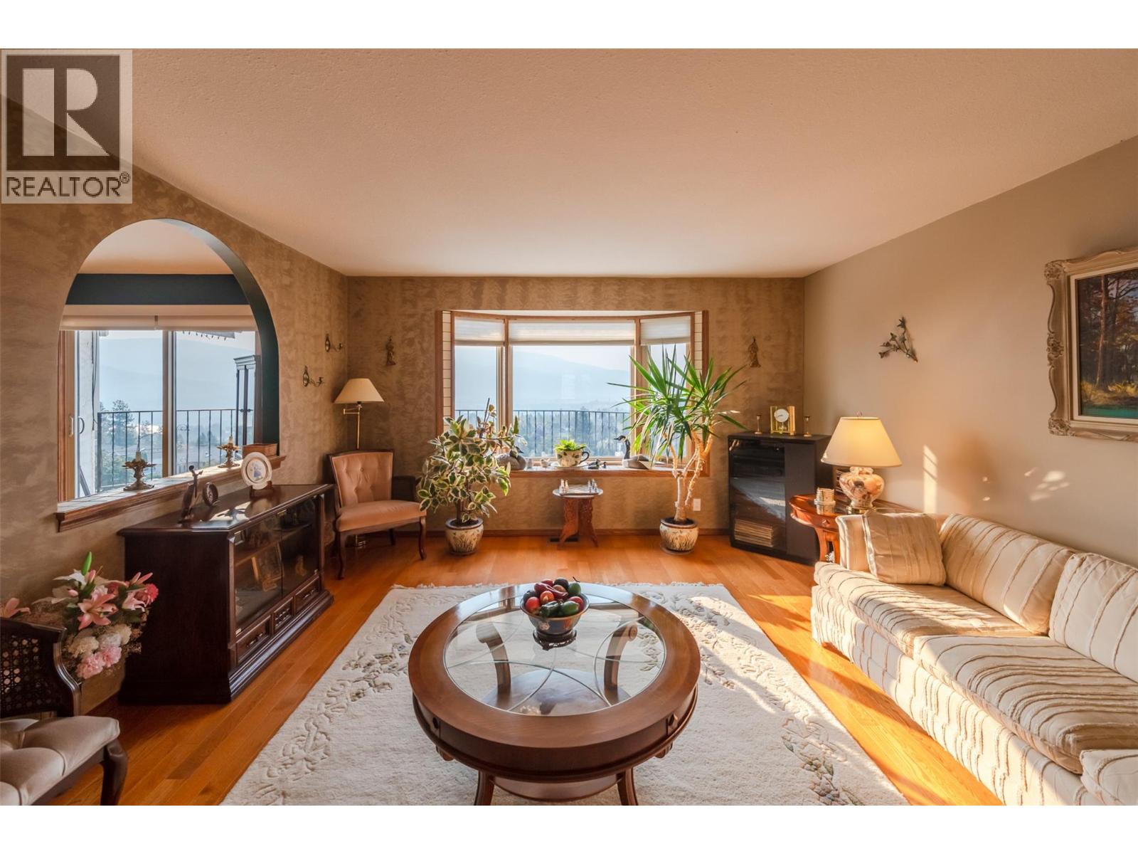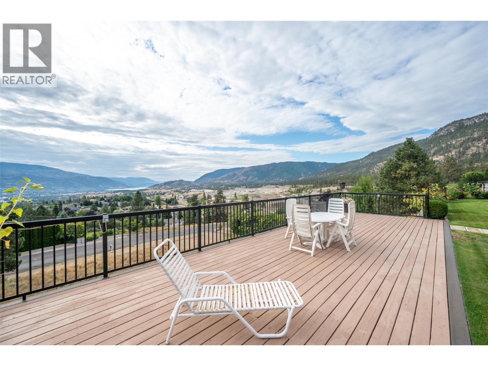 Welcome to your private estate perched high above Penticton, where breathtaking panoramic views of both Skaha and Okanagan Lake create an unforgettable backdrop - all just 3 minutes from town. This executive walk-out rancher sits on a full acre of park-like grounds with manicured hedges, a gated driveway, and endless possibilities on the lower tier of the property. This home has been meticulously maintained over the years with many updates throughout. Inside, soaring vaulted ceilings with exposed beams, engineered hardwood, and custom octagon tile create timeless character. The main floor offers 3 beds, 3 baths, an office, sunroom, and a bright family room with a wall of windows. The expansive kitchen and breakfast nook showcase stunning valley views through bay windows, while the formal dining room is ideal for hosting family gatherings. The primary suite is a true retreat with dual vanities, wic, hot tub, and direct access to the balcony. Downstairs, a summer kitchen opens to a sweeping rec room, the perfect space for the kids to play or to host extravagant parties! Along with 2 more beds, full bath with sauna, wine room, and a large workshop for hobbyists. Multiple balconies and a massive deck ensure you’ll never miss a sunset over the valley. A spacious double-car garage with extra storage adds both convenience and functionality. With its unmatched views, timeless architecture, and extraordinary lot, this is a one-of-a-kind estate! (id:47466)
