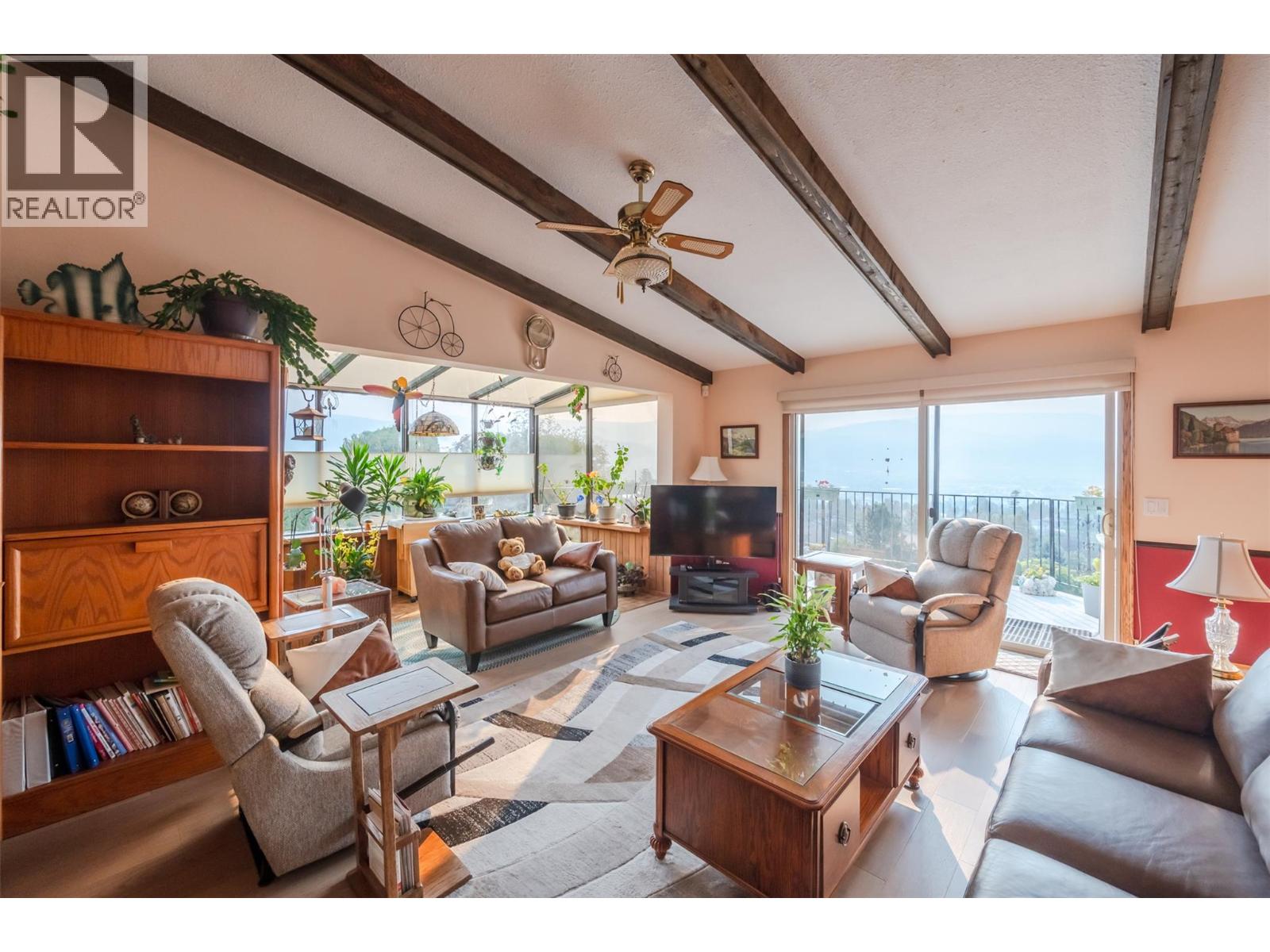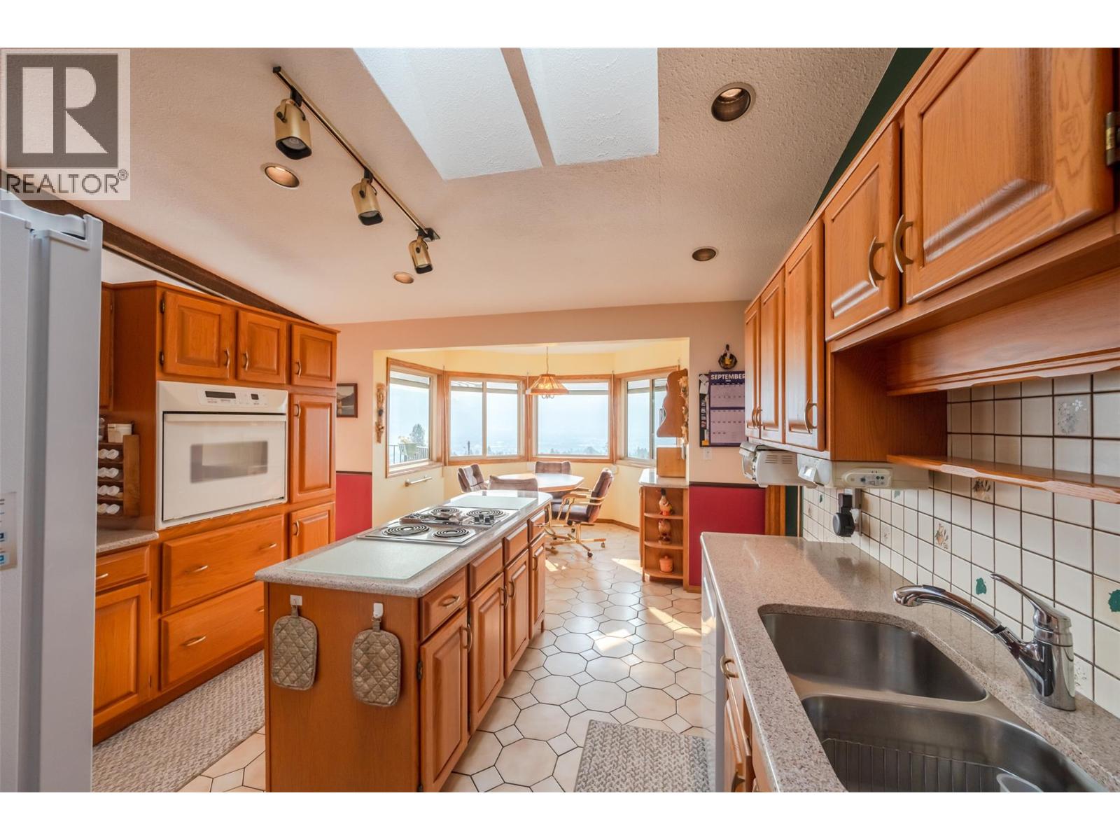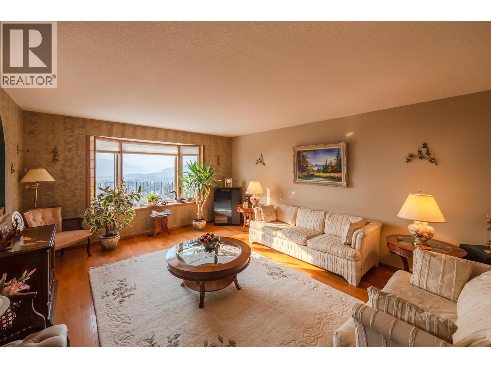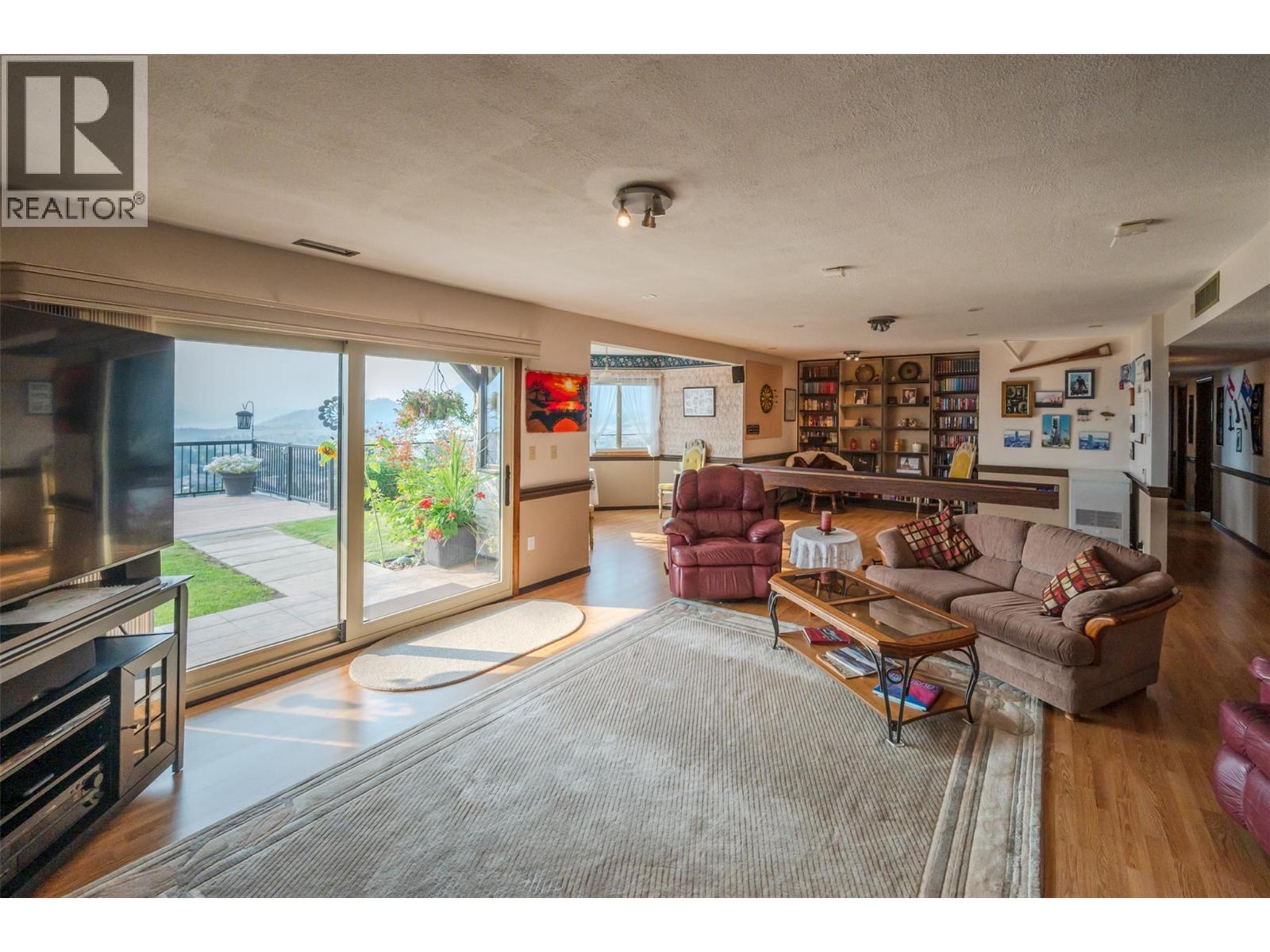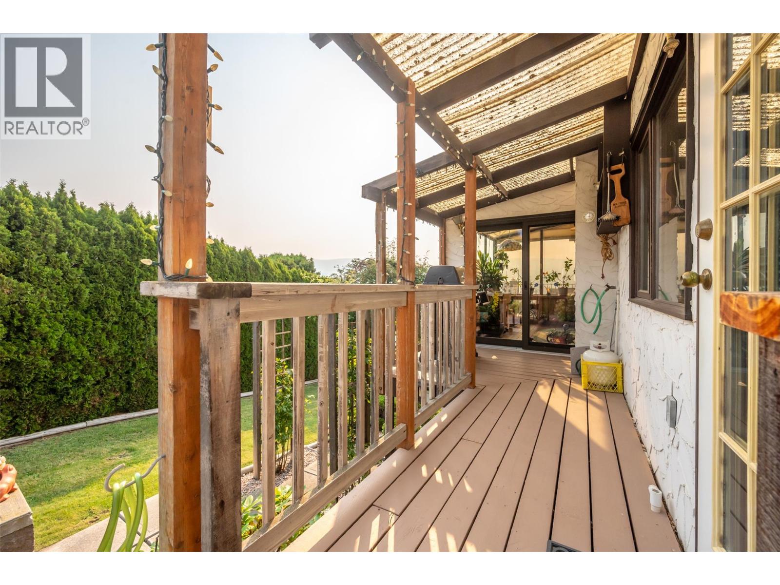 Welcome to your private estate perched high above Penticton, where breathtaking panoramic views of both Skaha and Okanagan Lake create an unforgettable backdrop - all just 3 minutes from town. This executive walk-out rancher sits on a full acre of park-like grounds with manicured hedges, a gated driveway, and endless possibilities on the lower tier of the property. This home has been meticulously maintained over the years with many updates throughout. Inside, soaring vaulted ceilings with exposed beams, engineered hardwood, and custom octagon tile create timeless character. The main floor offers 3 beds, 3 baths, an office, sunroom, and a bright family room with a wall of windows. The expansive kitchen and breakfast nook showcase stunning valley views through bay windows, while the formal dining room is ideal for hosting family gatherings. The primary suite is a true retreat with dual vanities, wic, hot tub, and direct access to the balcony. Downstairs, a summer kitchen opens to a sweeping rec room, the perfect space for the kids to play or to host extravagant parties! Along with 2 more beds, full bath with sauna, wine room, and a large workshop for hobbyists. Multiple balconies and a massive deck ensure you’ll never miss a sunset over the valley. A spacious double-car garage with extra storage adds both convenience and functionality. With its unmatched views, timeless architecture, and extraordinary lot, this is a one-of-a-kind estate! (id:47466)