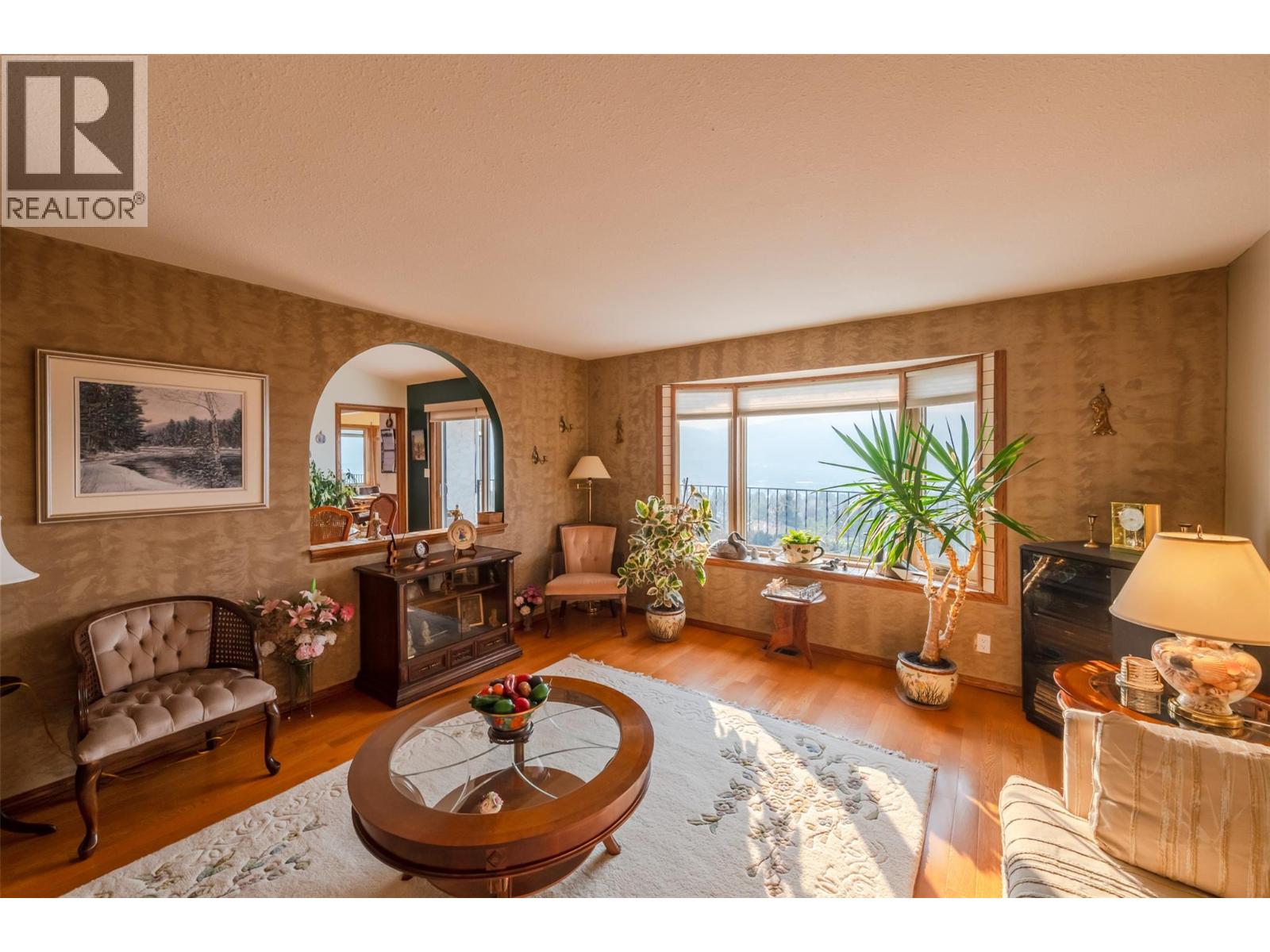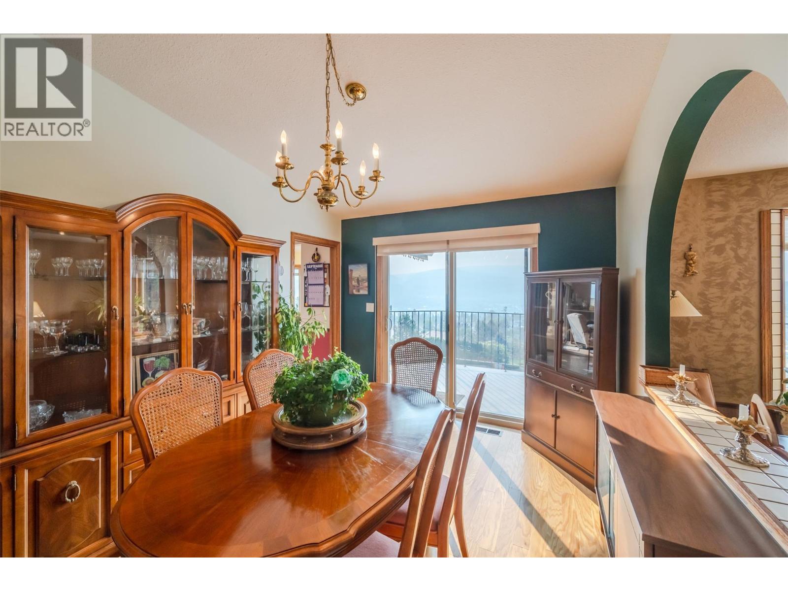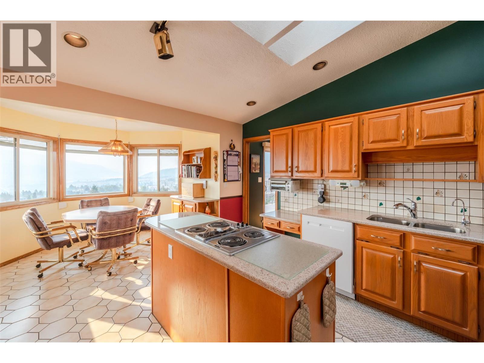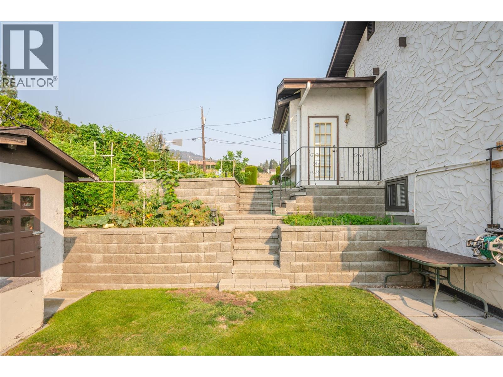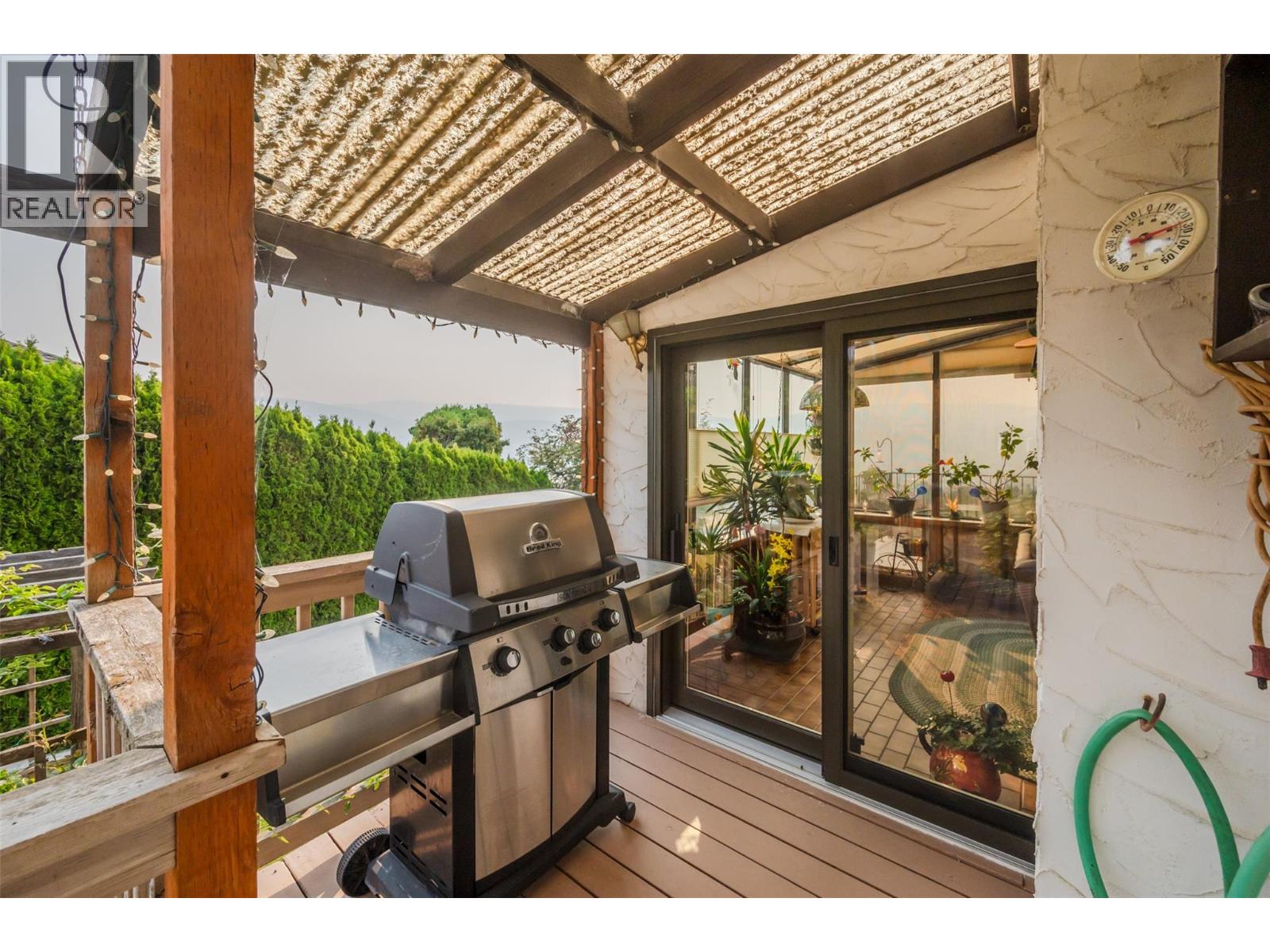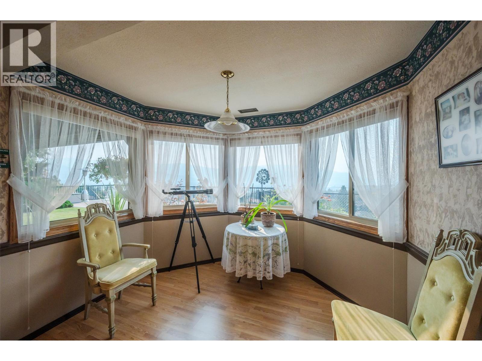 Welcome to your private estate perched high above Penticton, where breathtaking panoramic views of both Skaha and Okanagan Lake create an unforgettable backdrop - all just 3 minutes from town. This executive walk-out rancher sits on a full acre of park-like grounds with manicured hedges, a gated driveway, and endless possibilities on the lower tier of the property. This home has been meticulously maintained over the years with many updates throughout. Inside, soaring vaulted ceilings with exposed beams, engineered hardwood, and custom octagon tile create timeless character. The main floor offers 3 beds, 3 baths, an office, sunroom, and a bright family room with a wall of windows. The expansive kitchen and breakfast nook showcase stunning valley views through bay windows, while the formal dining room is ideal for hosting family gatherings. The primary suite is a true retreat with dual vanities, wic, hot tub, and direct access to the balcony. Downstairs, a summer kitchen opens to a sweeping rec room, the perfect space for the kids to play or to host extravagant parties! Along with 2 more beds, full bath with sauna, wine room, and a large workshop for hobbyists. Multiple balconies and a massive deck ensure you’ll never miss a sunset over the valley. A spacious double-car garage with extra storage adds both convenience and functionality. With its unmatched views, timeless architecture, and extraordinary lot, this is a one-of-a-kind estate! (id:47466)