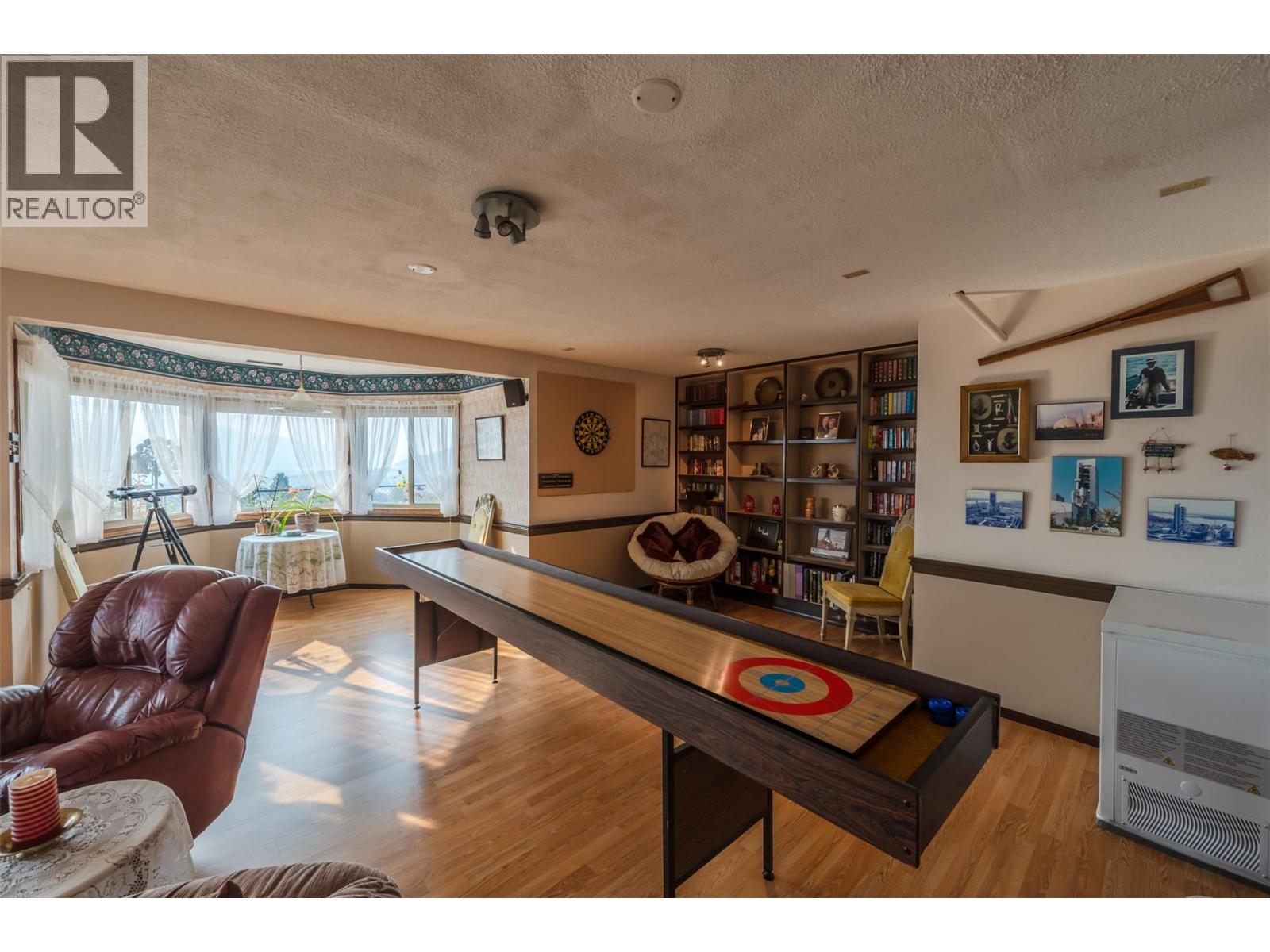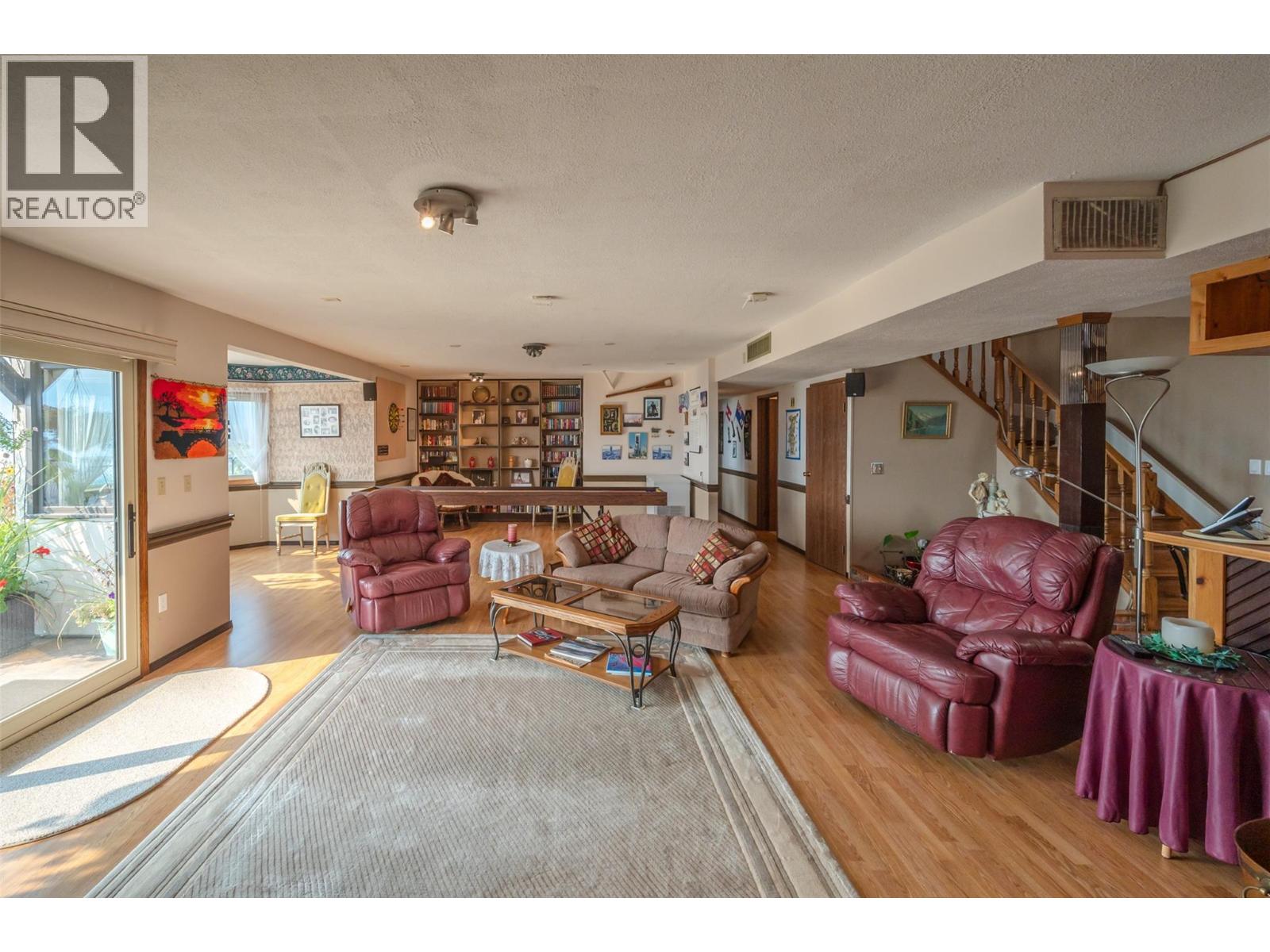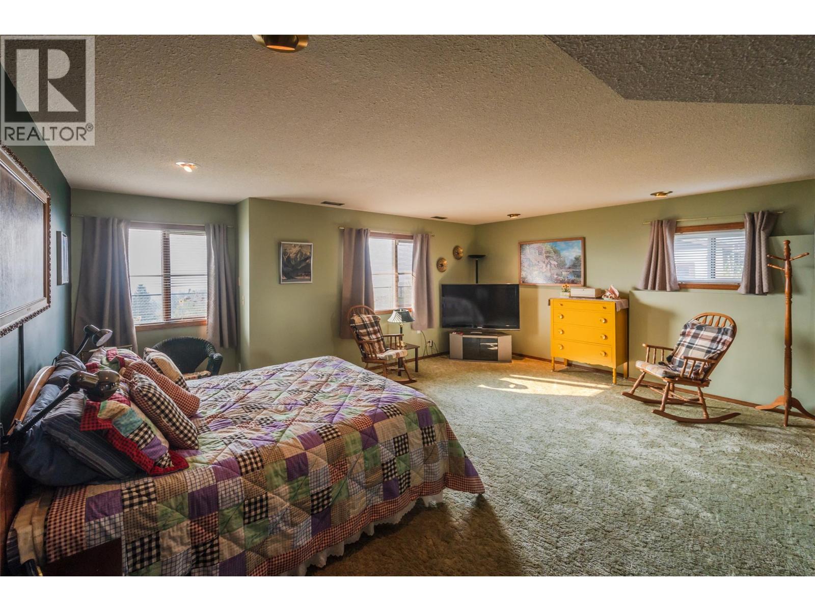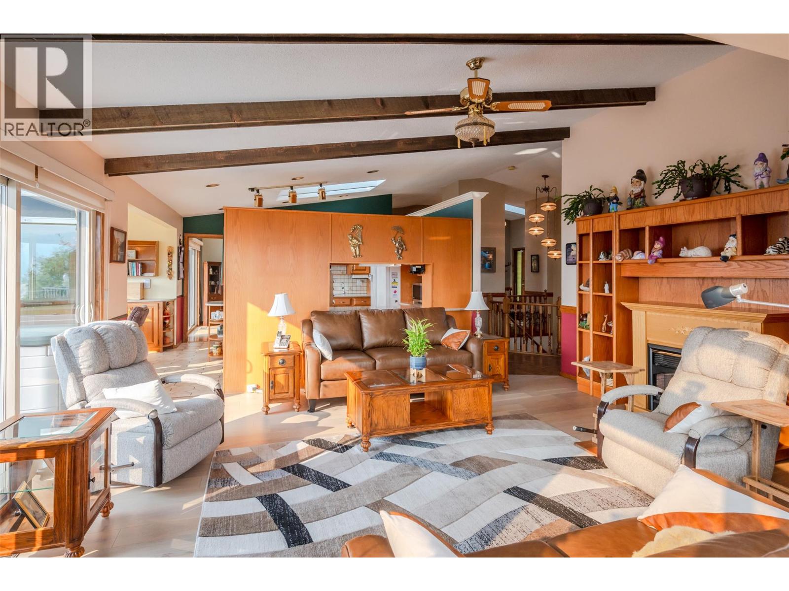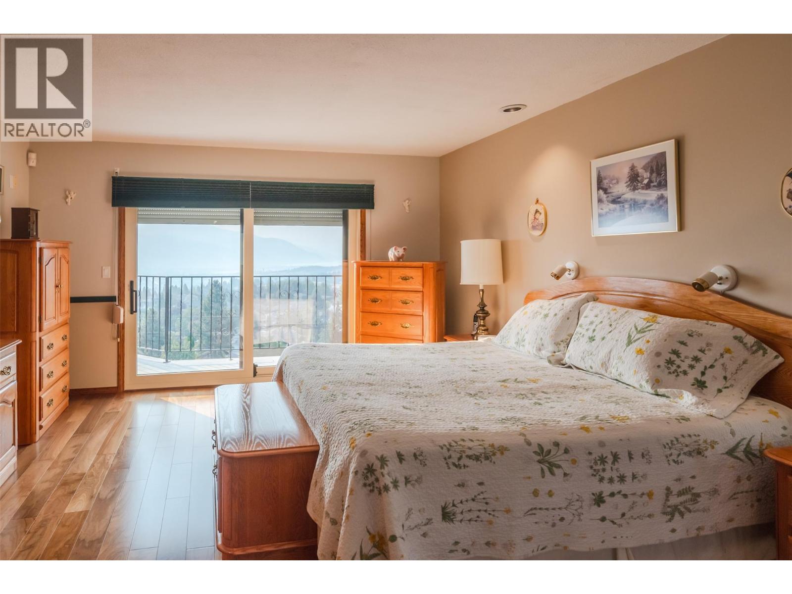 Welcome to your private estate perched high above Penticton, where breathtaking panoramic views of both Skaha and Okanagan Lake create an unforgettable backdrop - all just 3 minutes from town. This executive walk-out rancher sits on a full acre of park-like grounds with manicured hedges, a gated driveway, and endless possibilities on the lower tier of the property. This home has been meticulously maintained over the years with many updates throughout. Inside, soaring vaulted ceilings with exposed beams, engineered hardwood, and custom octagon tile create timeless character. The main floor offers 3 beds, 3 baths, an office, sunroom, and a bright family room with a wall of windows. The expansive kitchen and breakfast nook showcase stunning valley views through bay windows, while the formal dining room is ideal for hosting family gatherings. The primary suite is a true retreat with dual vanities, wic, hot tub, and direct access to the balcony. Downstairs, a summer kitchen opens to a sweeping rec room, the perfect space for the kids to play or to host extravagant parties! Along with 2 more beds, full bath with sauna, wine room, and a large workshop for hobbyists. Multiple balconies and a massive deck ensure you’ll never miss a sunset over the valley. A spacious double-car garage with extra storage adds both convenience and functionality. With its unmatched views, timeless architecture, and extraordinary lot, this is a one-of-a-kind estate! (id:47466)