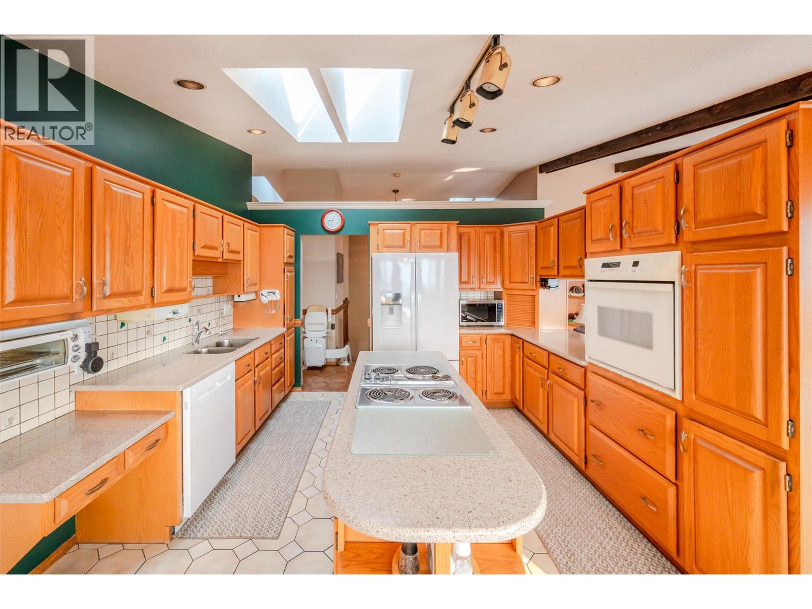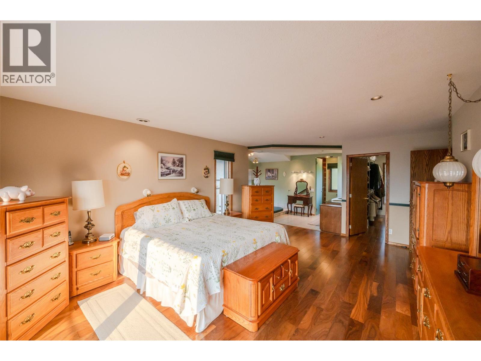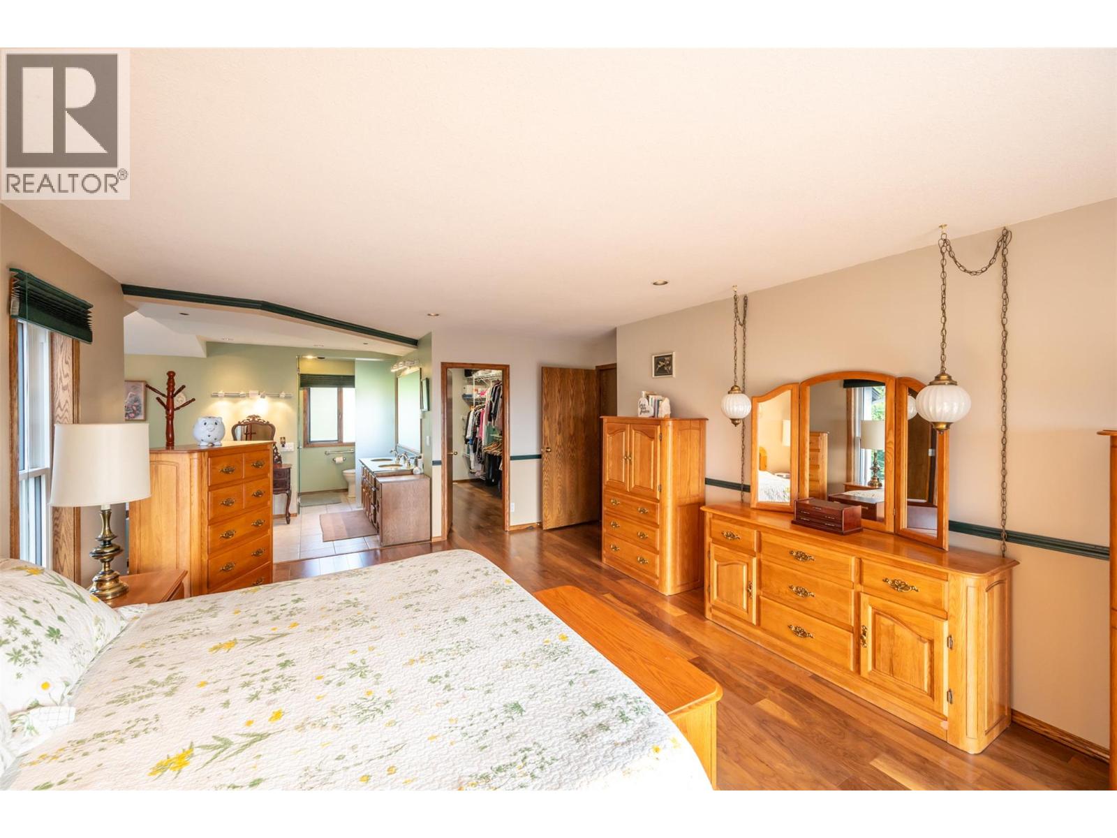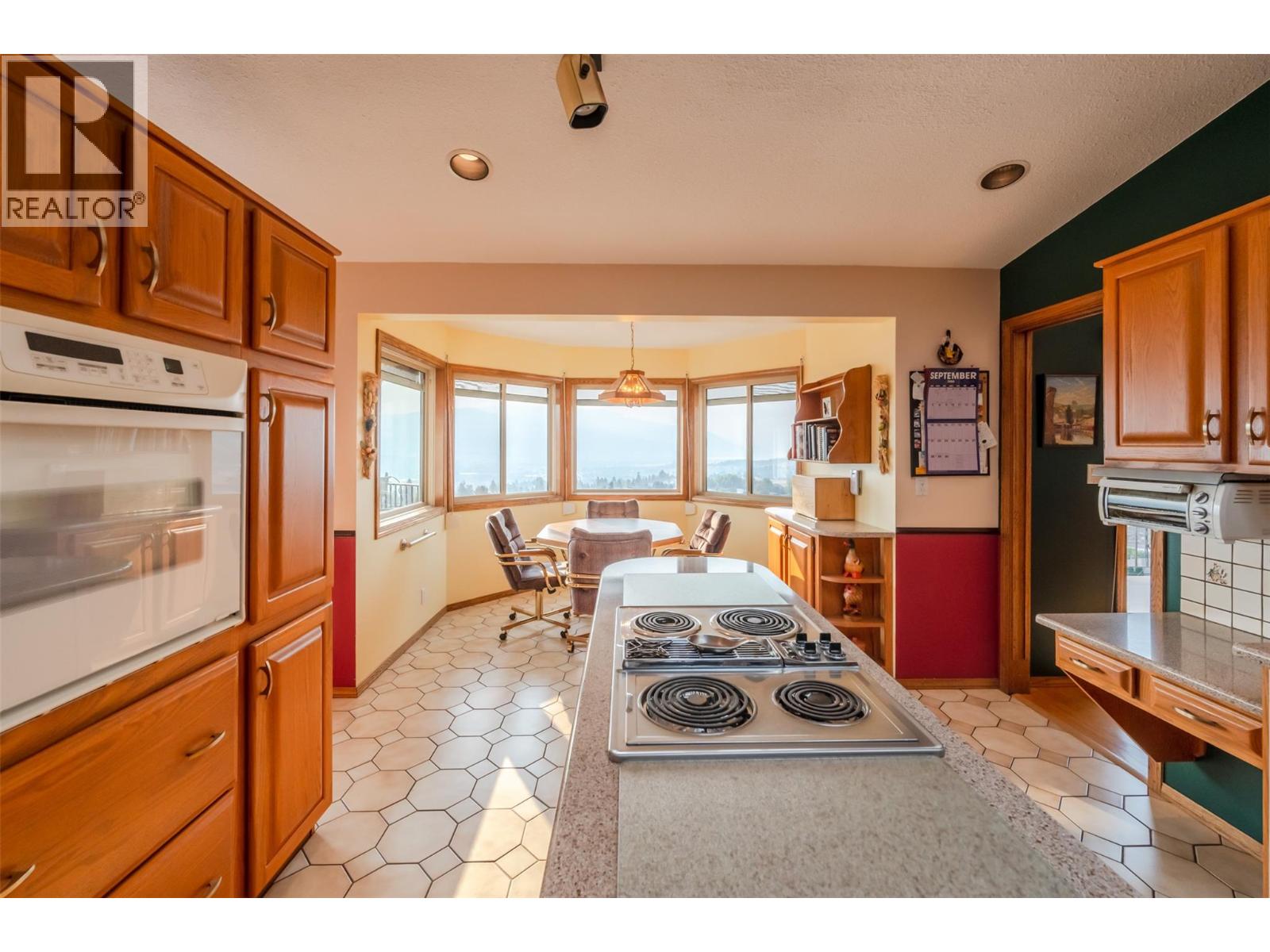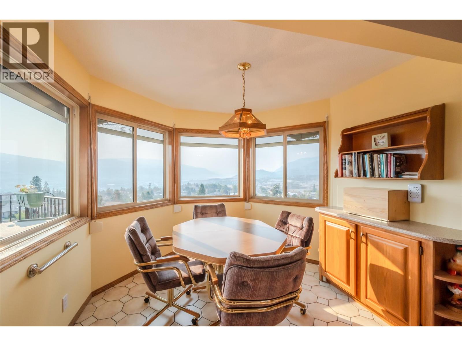 Welcome to your private estate perched high above Penticton, where breathtaking panoramic views of both Skaha and Okanagan Lake create an unforgettable backdrop - all just 3 minutes from town. This executive walk-out rancher sits on a full acre of park-like grounds with manicured hedges, a gated driveway, and endless possibilities on the lower tier of the property. This home has been meticulously maintained over the years with many updates throughout. Inside, soaring vaulted ceilings with exposed beams, engineered hardwood, and custom octagon tile create timeless character. The main floor offers 3 beds, 3 baths, an office, sunroom, and a bright family room with a wall of windows. The expansive kitchen and breakfast nook showcase stunning valley views through bay windows, while the formal dining room is ideal for hosting family gatherings. The primary suite is a true retreat with dual vanities, wic, hot tub, and direct access to the balcony. Downstairs, a summer kitchen opens to a sweeping rec room, the perfect space for the kids to play or to host extravagant parties! Along with 2 more beds, full bath with sauna, wine room, and a large workshop for hobbyists. Multiple balconies and a massive deck ensure you’ll never miss a sunset over the valley. A spacious double-car garage with extra storage adds both convenience and functionality. With its unmatched views, timeless architecture, and extraordinary lot, this is a one-of-a-kind estate! (id:47466)