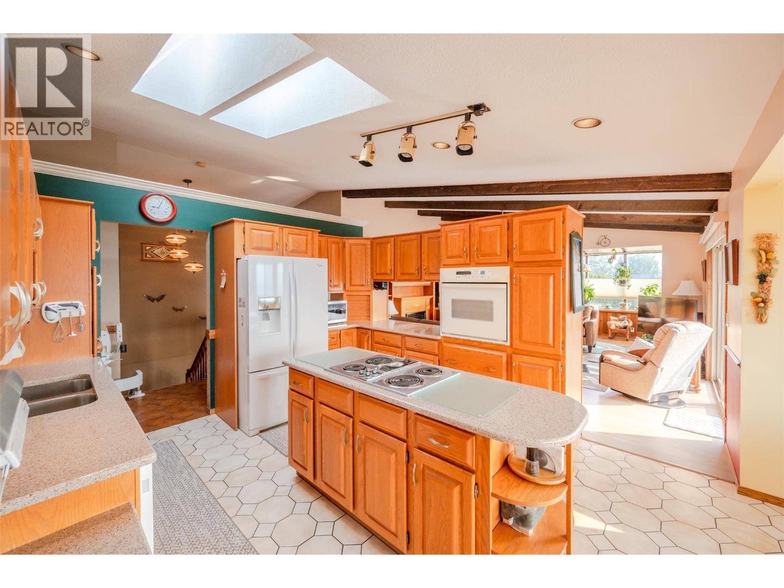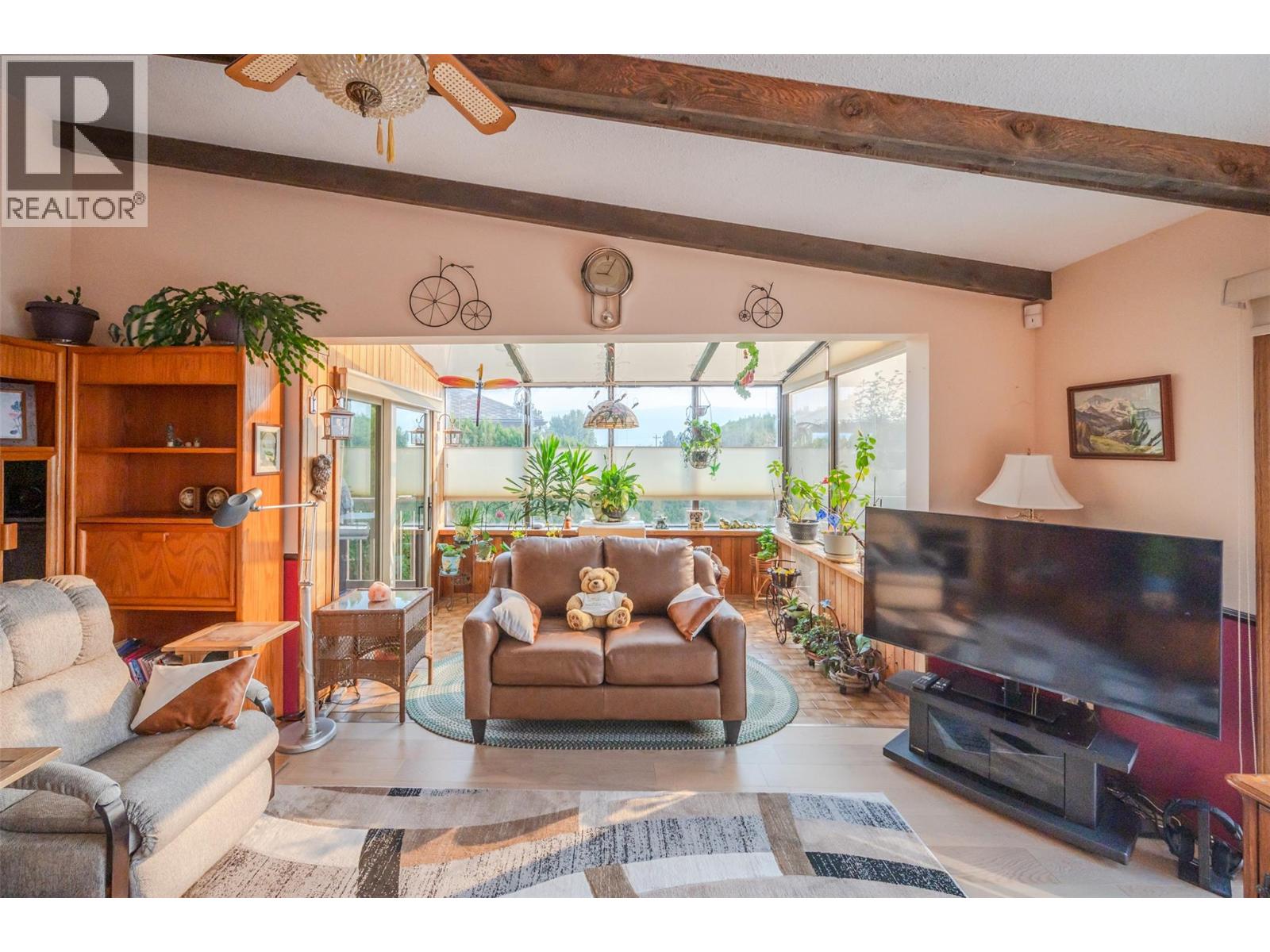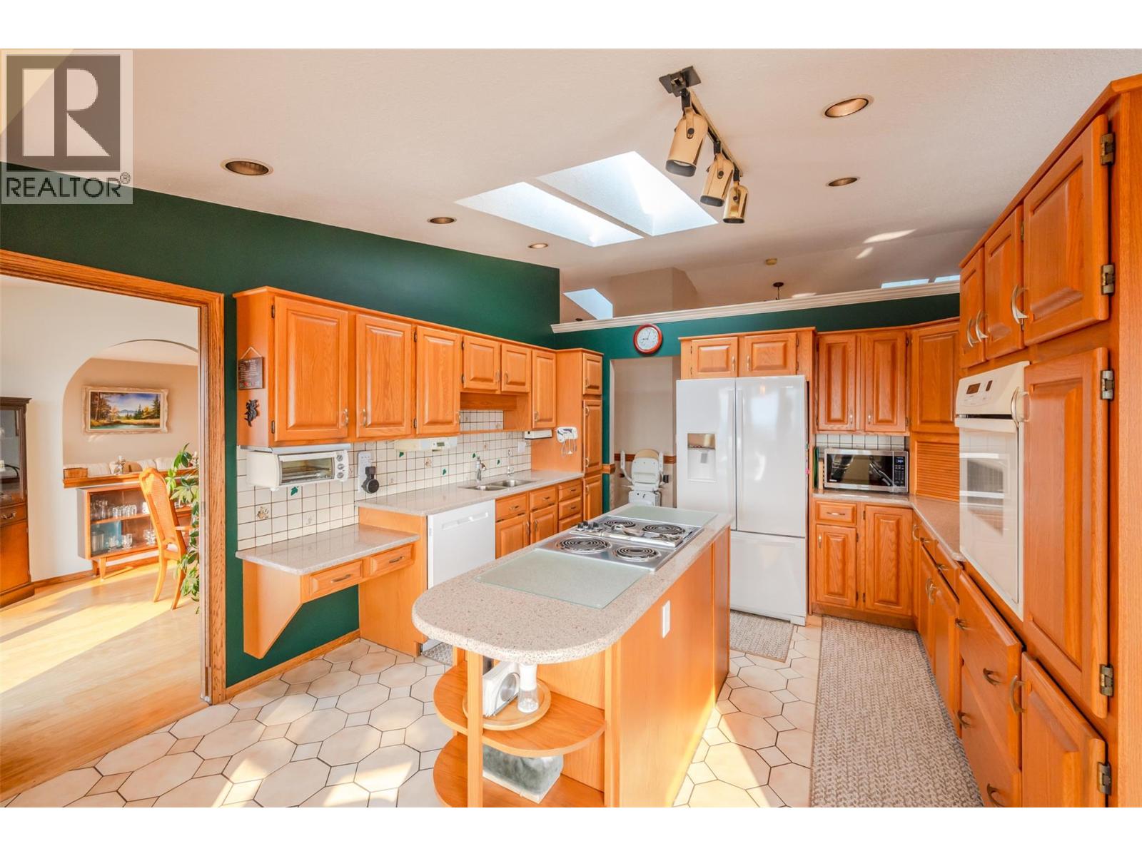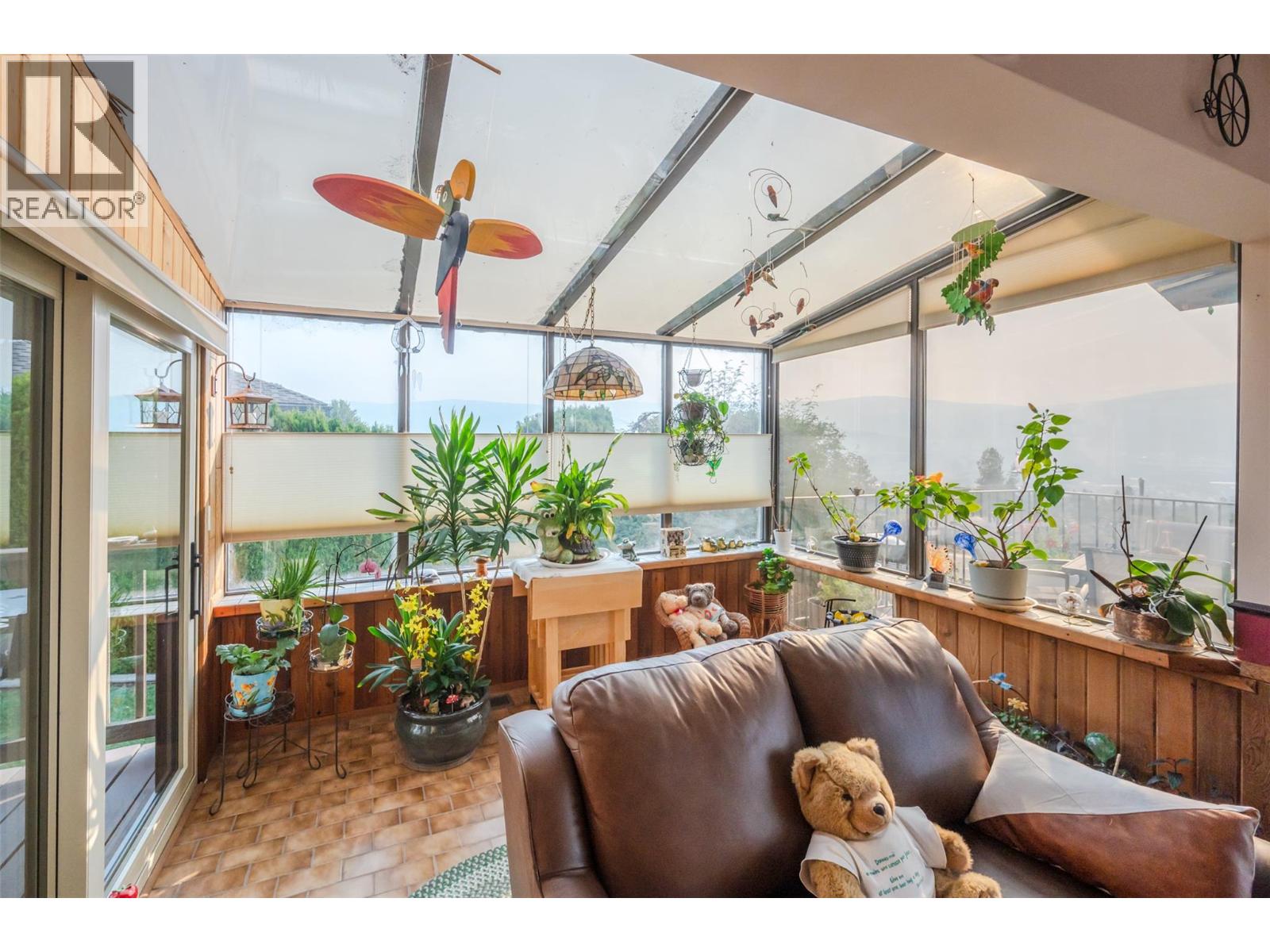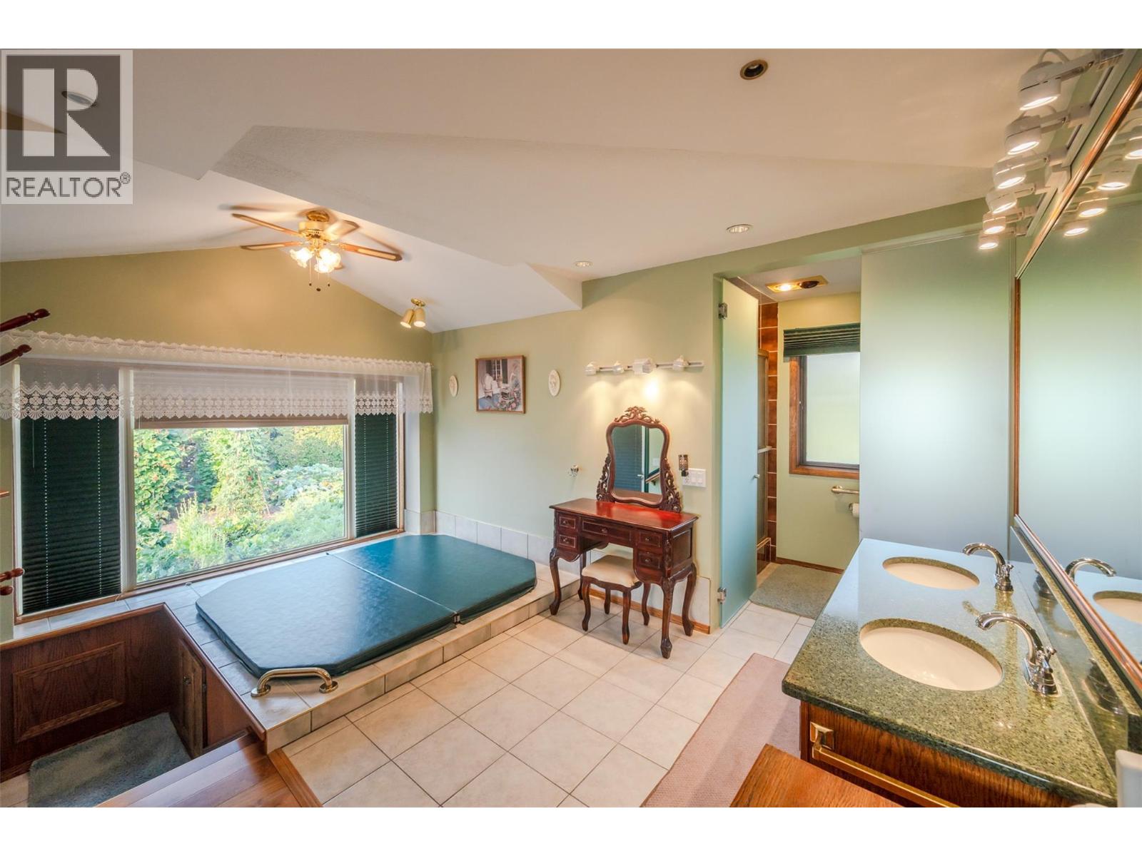 Welcome to your private estate perched high above Penticton, where breathtaking panoramic views of both Skaha and Okanagan Lake create an unforgettable backdrop - all just 3 minutes from town. This executive walk-out rancher sits on a full acre of park-like grounds with manicured hedges, a gated driveway, and endless possibilities on the lower tier of the property. This home has been meticulously maintained over the years with many updates throughout. Inside, soaring vaulted ceilings with exposed beams, engineered hardwood, and custom octagon tile create timeless character. The main floor offers 3 beds, 3 baths, an office, sunroom, and a bright family room with a wall of windows. The expansive kitchen and breakfast nook showcase stunning valley views through bay windows, while the formal dining room is ideal for hosting family gatherings. The primary suite is a true retreat with dual vanities, wic, hot tub, and direct access to the balcony. Downstairs, a summer kitchen opens to a sweeping rec room, the perfect space for the kids to play or to host extravagant parties! Along with 2 more beds, full bath with sauna, wine room, and a large workshop for hobbyists. Multiple balconies and a massive deck ensure you’ll never miss a sunset over the valley. A spacious double-car garage with extra storage adds both convenience and functionality. With its unmatched views, timeless architecture, and extraordinary lot, this is a one-of-a-kind estate! (id:47466)