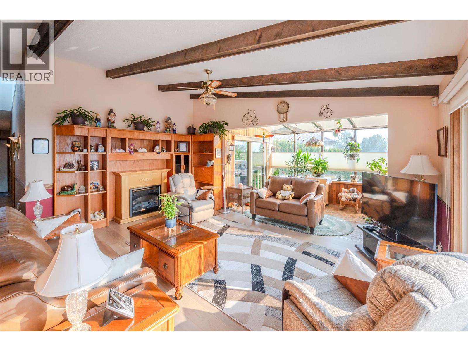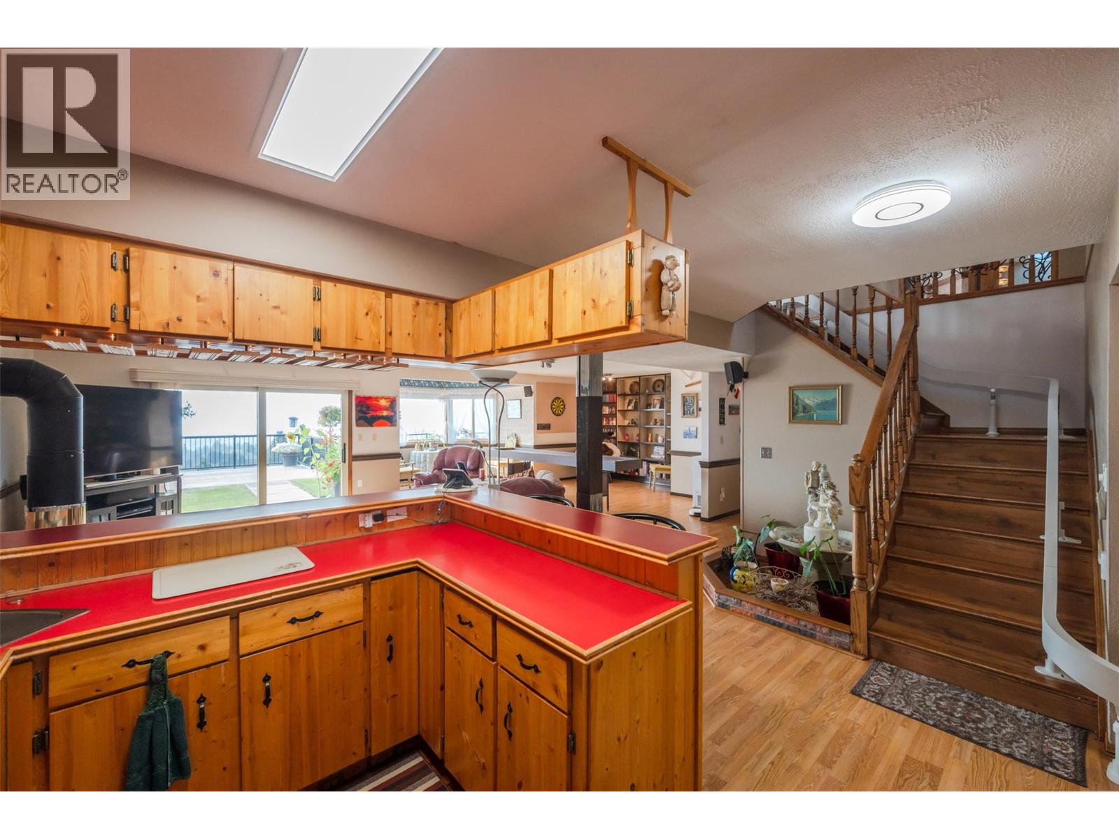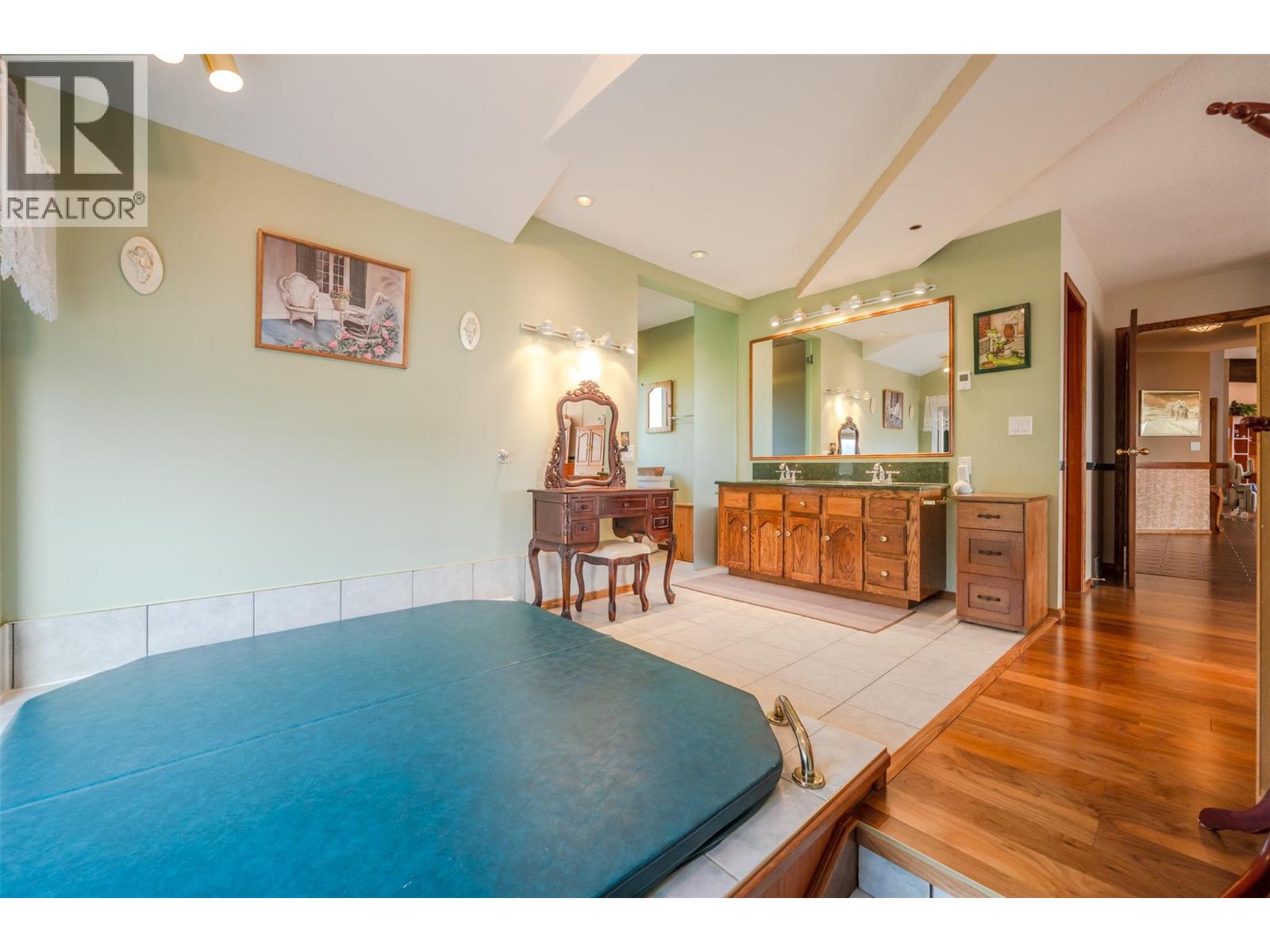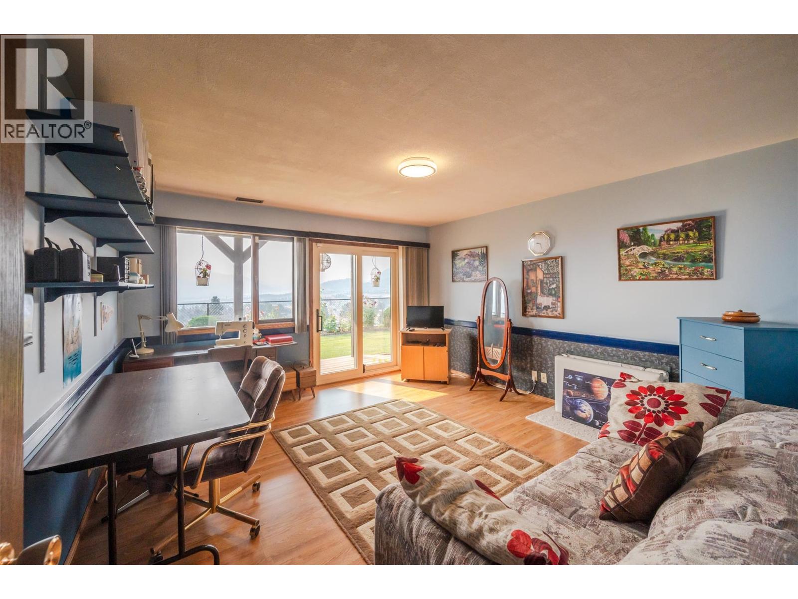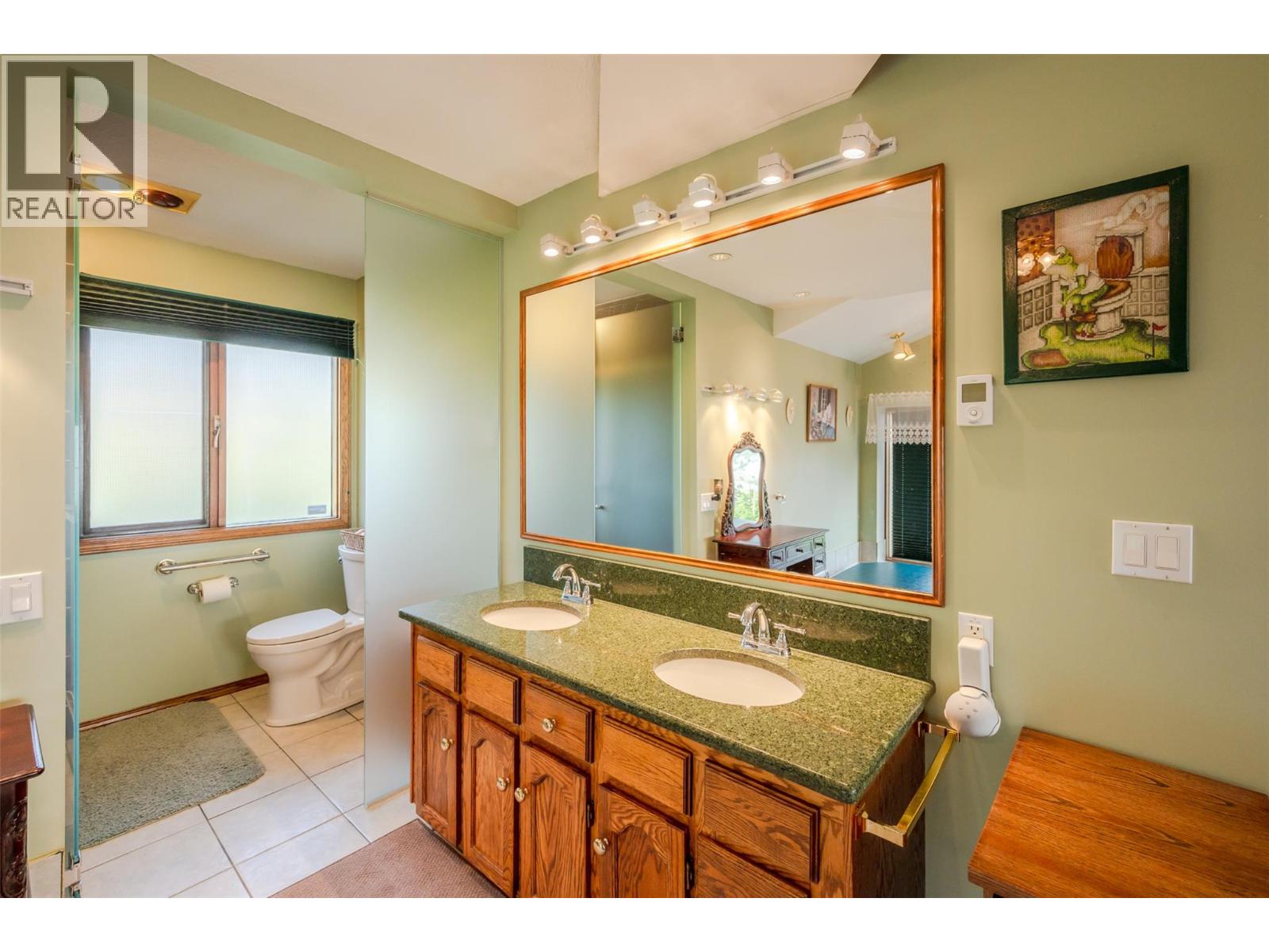 Welcome to your private estate perched high above Penticton, where breathtaking panoramic views of both Skaha and Okanagan Lake create an unforgettable backdrop - all just 3 minutes from town. This executive walk-out rancher sits on a full acre of park-like grounds with manicured hedges, a gated driveway, and endless possibilities on the lower tier of the property. This home has been meticulously maintained over the years with many updates throughout. Inside, soaring vaulted ceilings with exposed beams, engineered hardwood, and custom octagon tile create timeless character. The main floor offers 3 beds, 3 baths, an office, sunroom, and a bright family room with a wall of windows. The expansive kitchen and breakfast nook showcase stunning valley views through bay windows, while the formal dining room is ideal for hosting family gatherings. The primary suite is a true retreat with dual vanities, wic, hot tub, and direct access to the balcony. Downstairs, a summer kitchen opens to a sweeping rec room, the perfect space for the kids to play or to host extravagant parties! Along with 2 more beds, full bath with sauna, wine room, and a large workshop for hobbyists. Multiple balconies and a massive deck ensure you’ll never miss a sunset over the valley. A spacious double-car garage with extra storage adds both convenience and functionality. With its unmatched views, timeless architecture, and extraordinary lot, this is a one-of-a-kind estate! (id:47466)