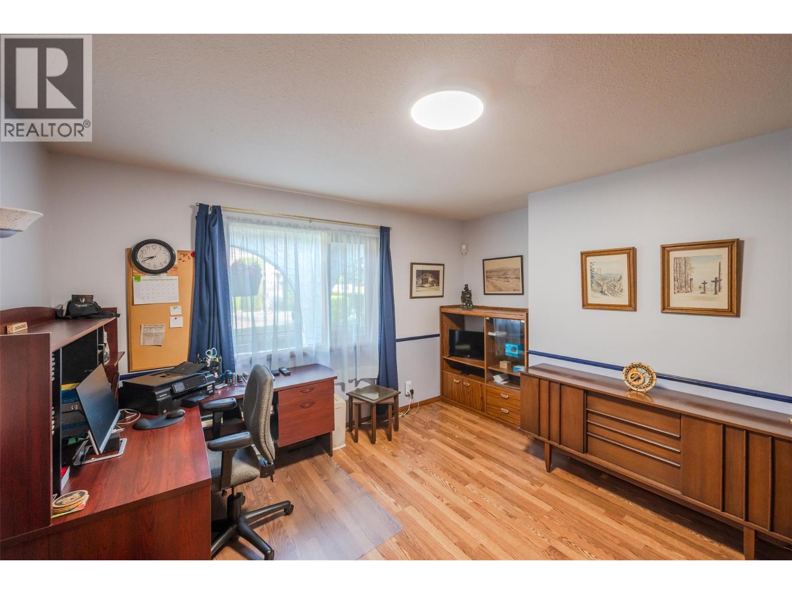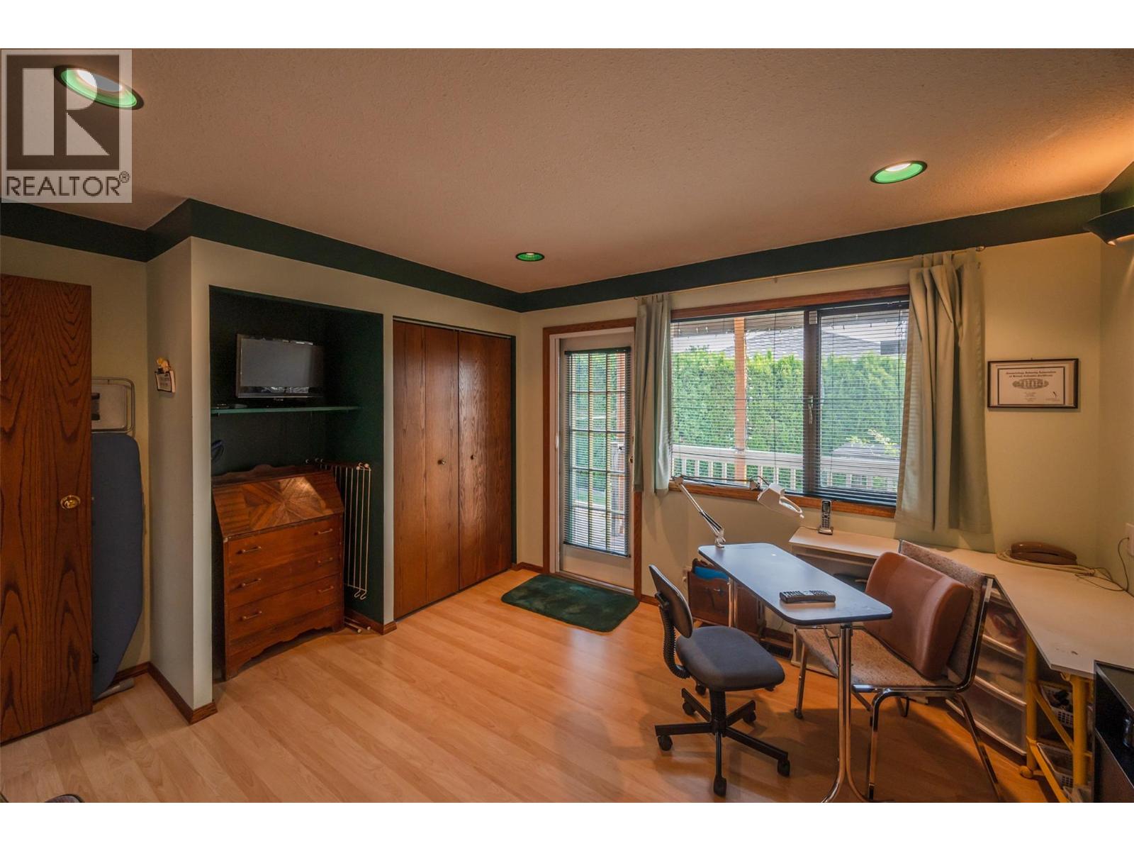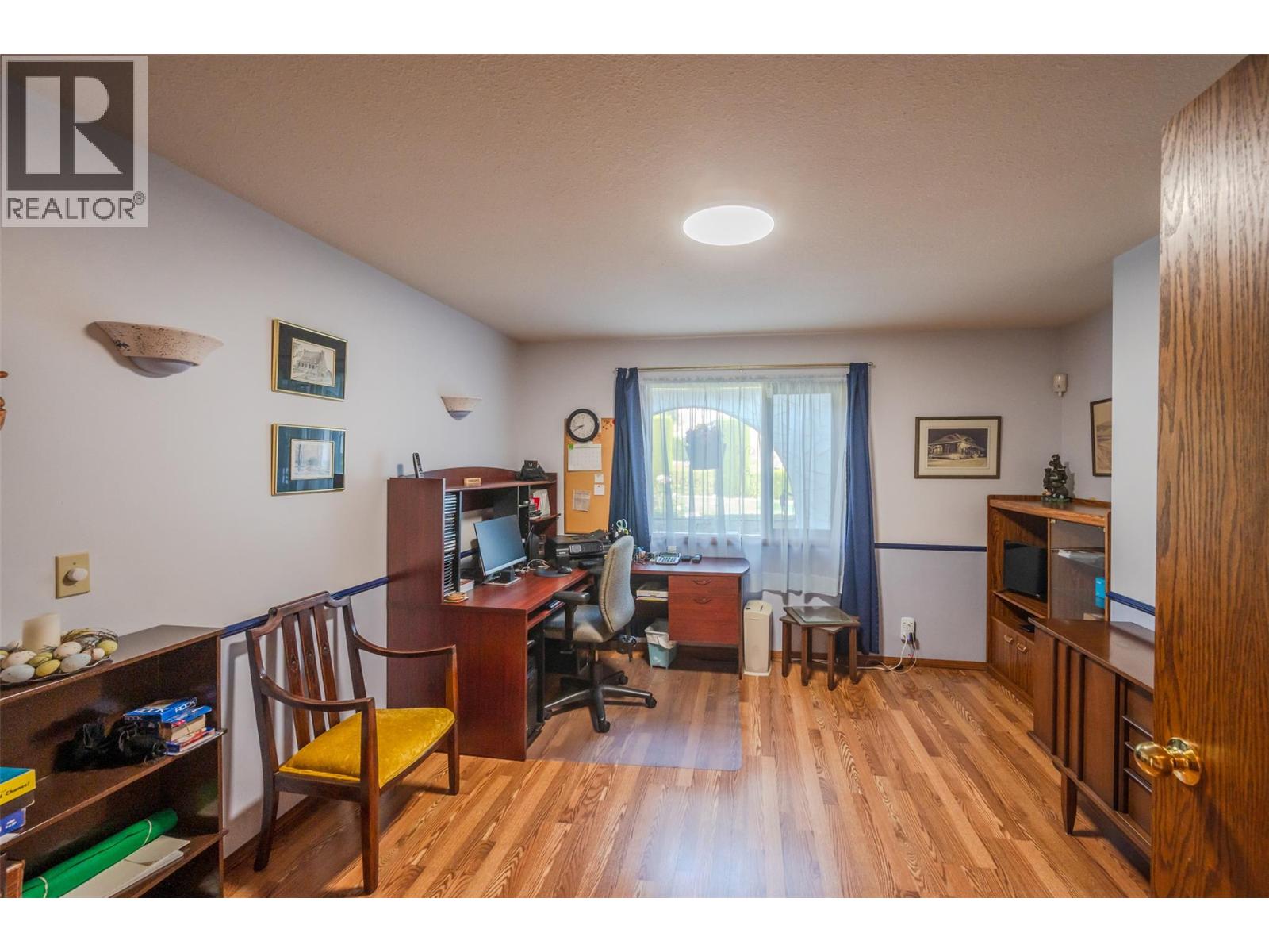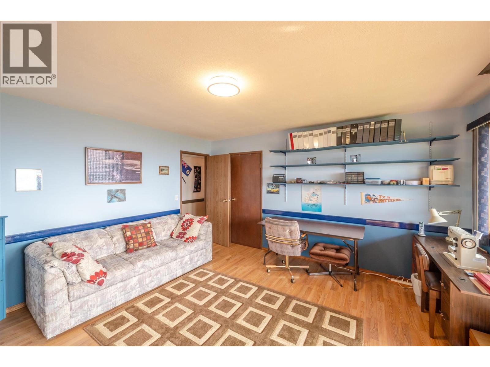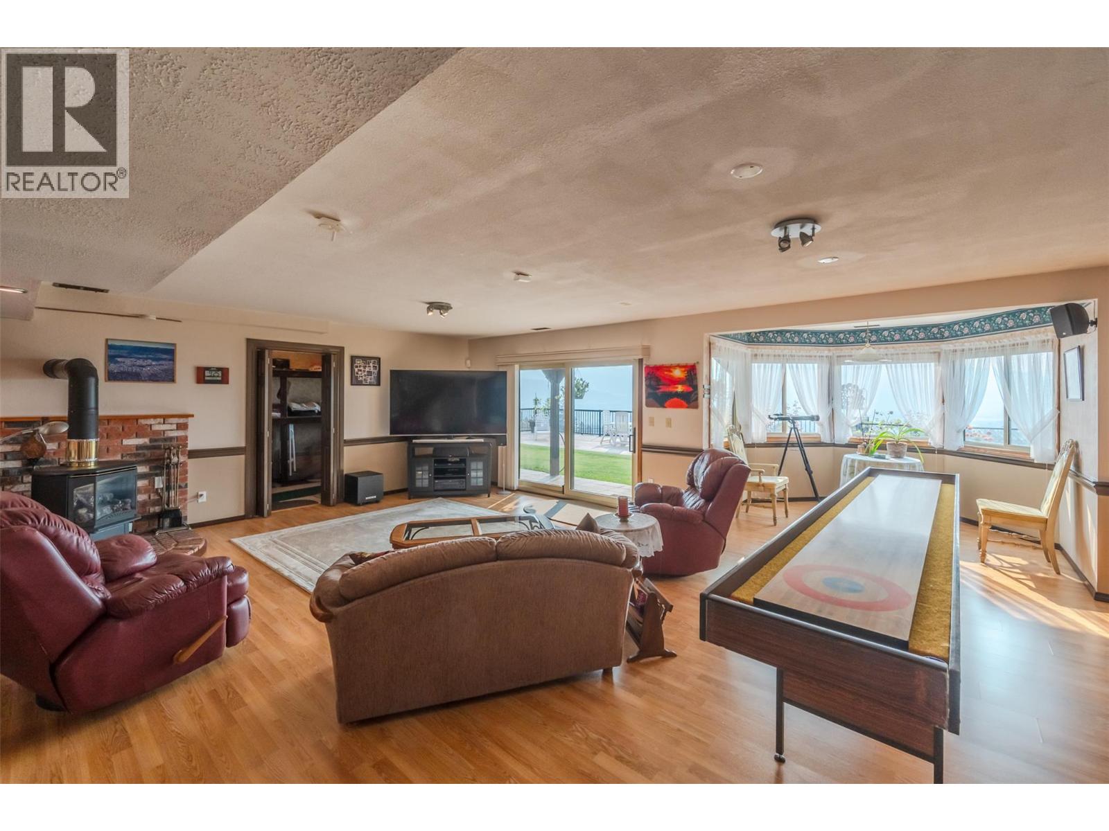 Welcome to your private estate perched high above Penticton, where breathtaking panoramic views of both Skaha and Okanagan Lake create an unforgettable backdrop - all just 3 minutes from town. This executive walk-out rancher sits on a full acre of park-like grounds with manicured hedges, a gated driveway, and endless possibilities on the lower tier of the property. This home has been meticulously maintained over the years with many updates throughout. Inside, soaring vaulted ceilings with exposed beams, engineered hardwood, and custom octagon tile create timeless character. The main floor offers 3 beds, 3 baths, an office, sunroom, and a bright family room with a wall of windows. The expansive kitchen and breakfast nook showcase stunning valley views through bay windows, while the formal dining room is ideal for hosting family gatherings. The primary suite is a true retreat with dual vanities, wic, hot tub, and direct access to the balcony. Downstairs, a summer kitchen opens to a sweeping rec room, the perfect space for the kids to play or to host extravagant parties! Along with 2 more beds, full bath with sauna, wine room, and a large workshop for hobbyists. Multiple balconies and a massive deck ensure you’ll never miss a sunset over the valley. A spacious double-car garage with extra storage adds both convenience and functionality. With its unmatched views, timeless architecture, and extraordinary lot, this is a one-of-a-kind estate! (id:47466)