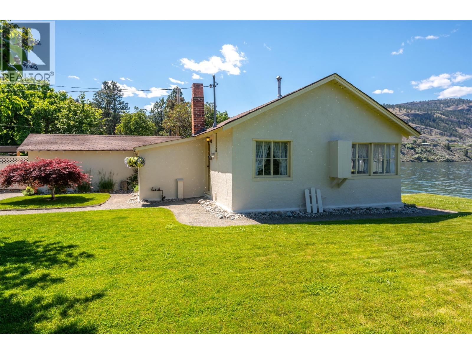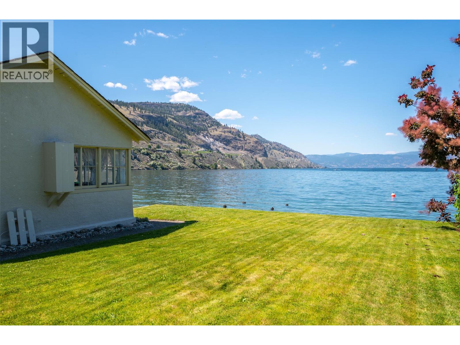 This unique property is a rare find. Located on Crescent Beach, one of the best beaches in the Okanagan, this 75 foot lakefront property offers an exceptional location for a vacation or primary home. The beachfront features crystal-clear water with a gentle, sandy slope perfect for swimming and water activities. The water depth year-round is ideal for docking all types of pleasure crafts. Properties in this beautiful area are situated at the end of a not through road, ensuring a private oasis in a close knit community. The property includes a well maintained, unique cabin style home with 2 bedrooms and a garage/storage area for added convenience. Additionally, this property includes a well constructed, charming secondary building which can service various uses. The manicured landscaping and mature old growth trees add a park-like setting to this longtimefamily property. Just a short distance from downtown Summerland, Crescent Beach is truly a hidden gem along the Lakeshore. This property is perfect for those seeking a quieter, more secluded, and exclusive beach home experience. Included in the pictures are renderings of a 3,000-square-foot home with a double garage. These renderings illustrate the approximate allowable size for a 2 story home. Please note that these concept renderings are a visual aid only and should not be relied upon for accuracy and must be verified with the municipality and professionals. (id:47466)