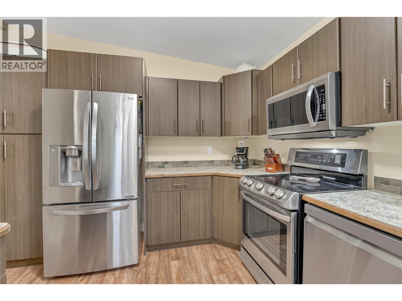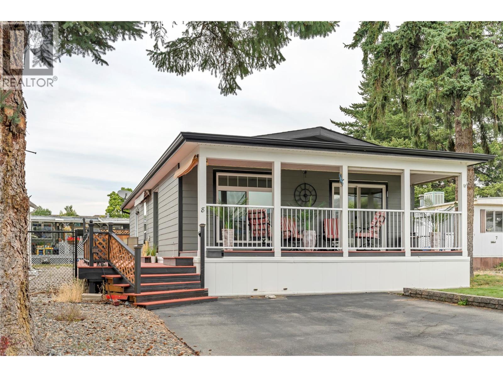 PET-FRIENDLY UPDATE: Dauphin Park now allows 1 small dog or 1 cat (with park approval!) Looking for a modern, move-in-ready home in a quiet 55+ manufactured home community? This is one of the newer models currently in the Penticton market—a spotless 2015 Moduline double-wide, offering 3 bedrooms, 2 bathrooms, and a bright, open layout designed for easy living. Located just outside the gated entrance of Dauphin Park, you get privacy, quick in-and-out access, and the benefits of a well-managed seniors’ community. The open great-room design includes a spacious kitchen with stainless steel appliances, breakfast bar seating, and doors leading out to a freshly painted wrap-around deck—perfect for morning coffee or evening shade. Enjoy tinted windows, retractable screens, and cool, efficient A/C all summer long. The primary suite has a large walk-in shower, and the extra bedrooms are perfect for guests, hobbies, or an office. You’ll appreciate the low-maintenance yard, side-by-side paved parking, and deck areas on three sides. A shed in the back and a small raised garden area to grow your flowers or vegetables. An unbeatable location: a 10-minute walk to the Seniors Drop-in Centre, close to shopping and transit. Enjoy the brand-new South Main bike trails that take you straight to Skaha Lake Park, beaches, hiking, boating, courts, and pathways. A fantastic 55+ option with modern comfort—and now pet-friendly. Motivated seller. (id:47466)
