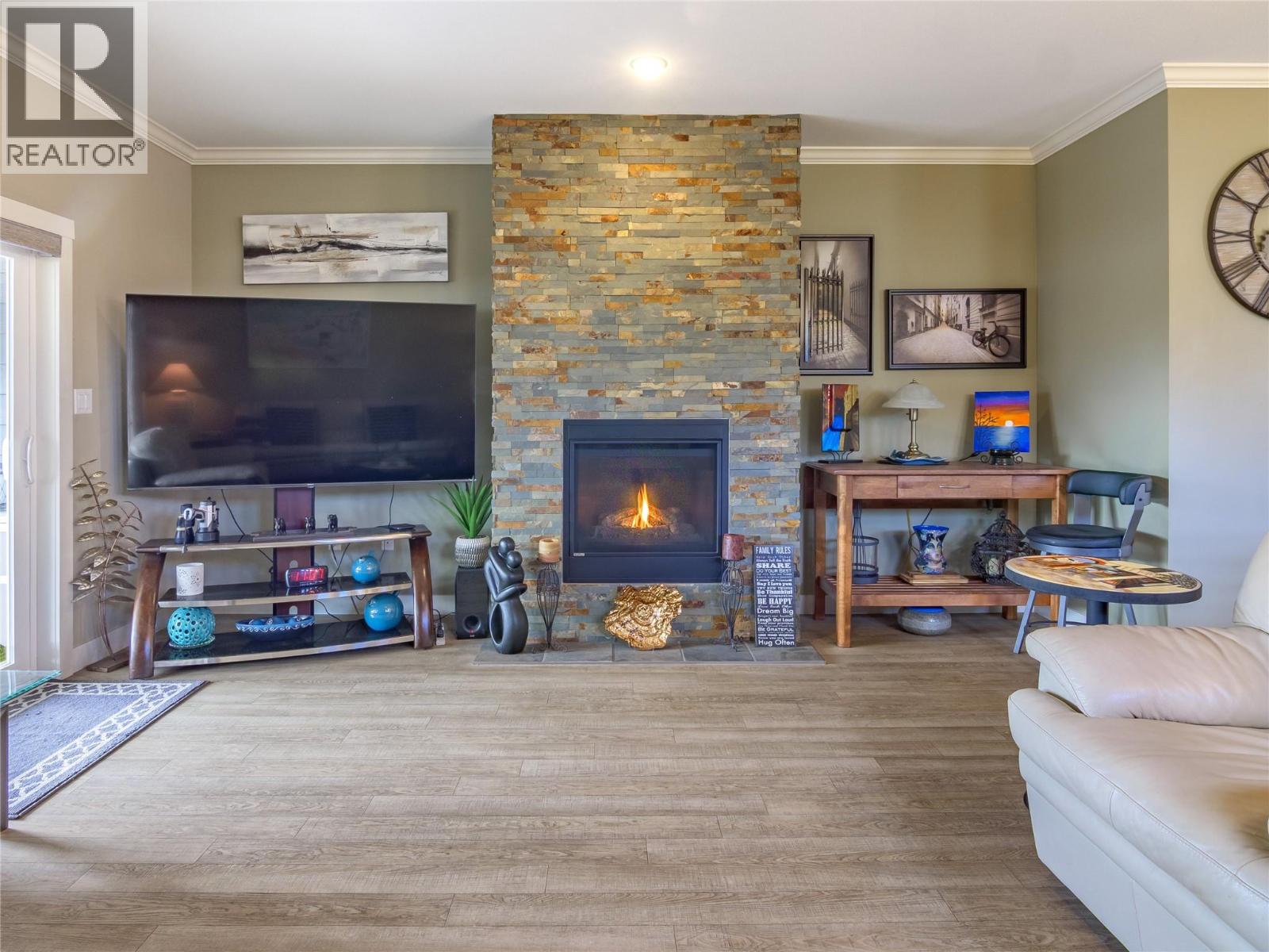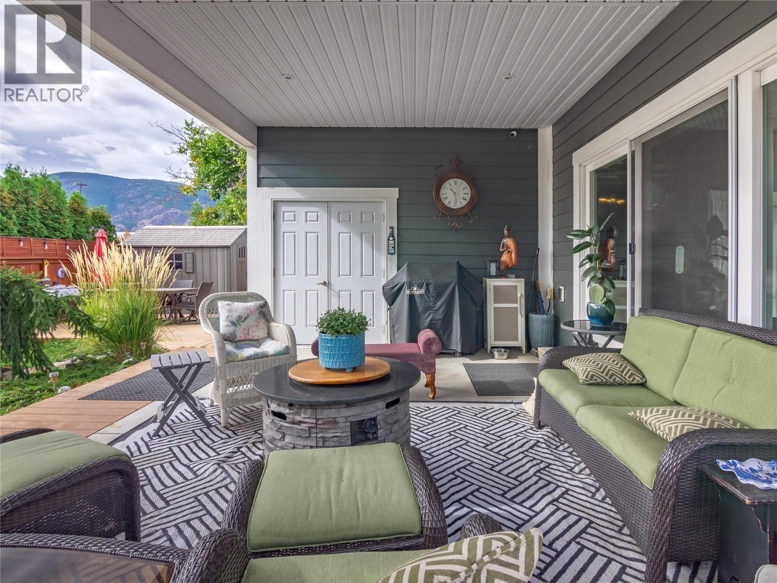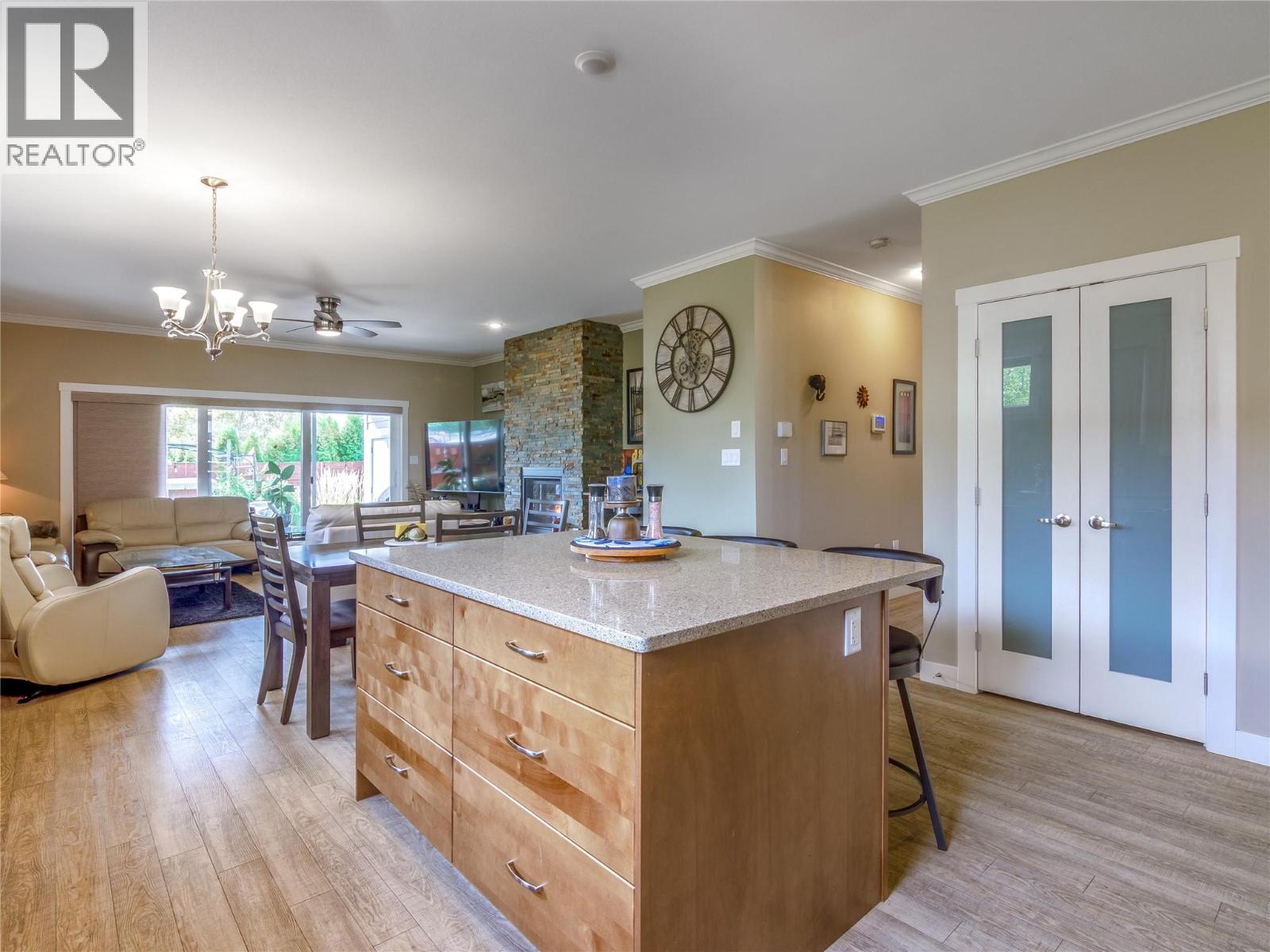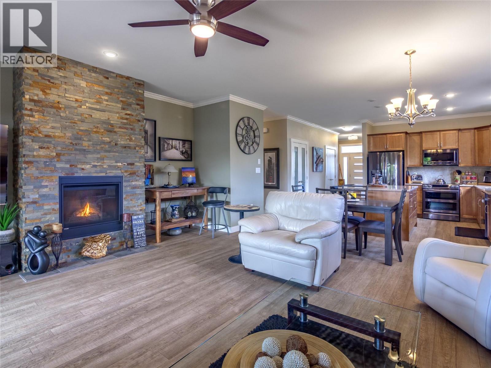 This home features three bedrooms and two bathrooms, meticulously designed to delight your visual senses. The open-concept layout provides an excellent space for entertaining. The gorgeous kitchen boasts granite countertops, a large island, soft-close drawers, and slate appliances. The living room includes a gas fireplace and oversized patio doors, offering easy access to the beautiful, south-facing backyard. The spacious master bedroom features a walk-in closet and a four-piece ensuite. The two additional bedrooms are generously sized, each with large windows. The double garage is fully finished with baseboards and paint, and an 11x7-foot workshop at the back of the home provides space for projects or extra storage. A 3.5-foot crawl space efficiently houses the furnace and hot water tank, ensuring no living space is wasted. The xeriscaped yard includes a small garden area. This home offers an extremely convenient location, close to Walmart, the mall, Skaha Lake, and local schools. With no strata fees and no work required, this home is move-in ready. Please call the listing representative today for more information. (id:47466)