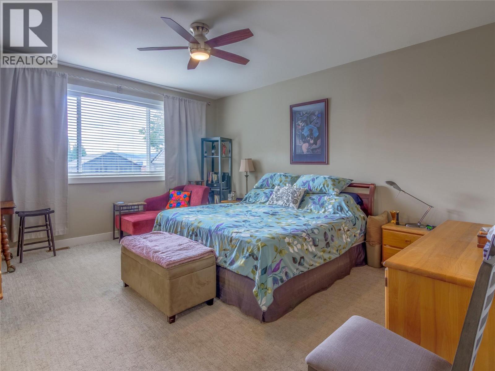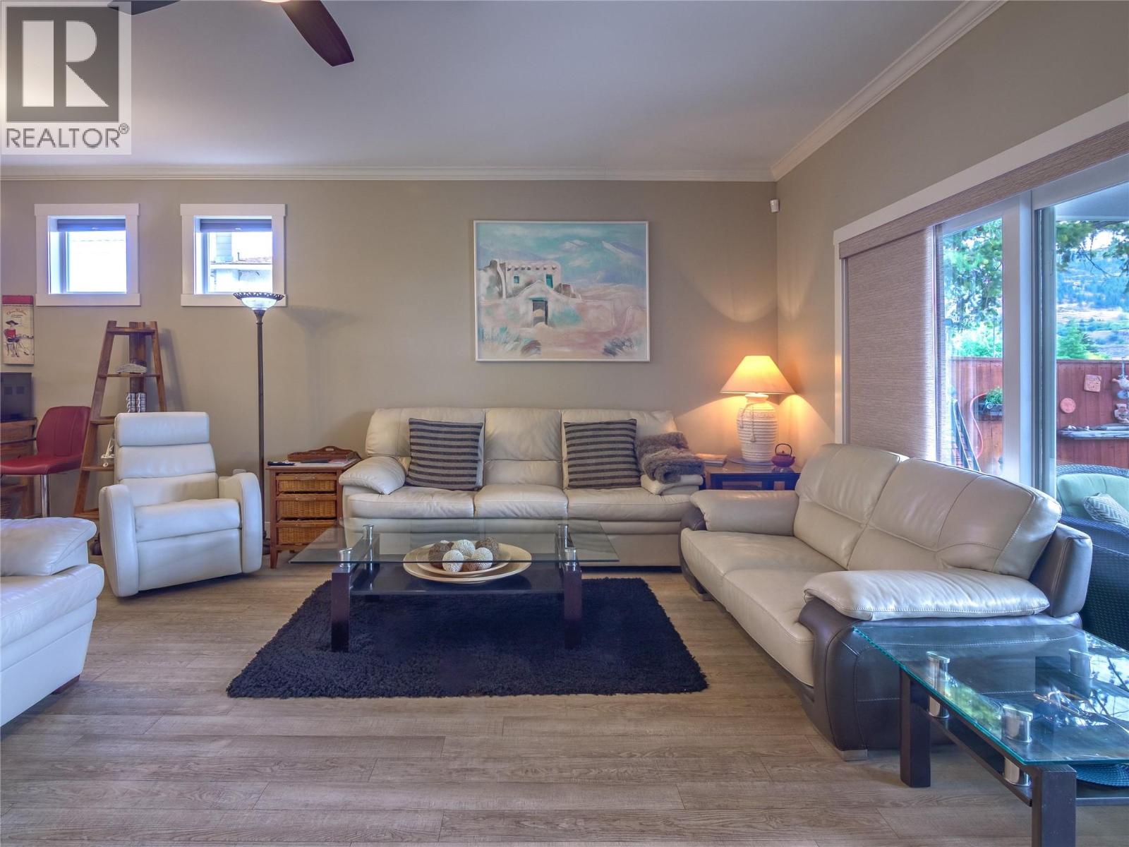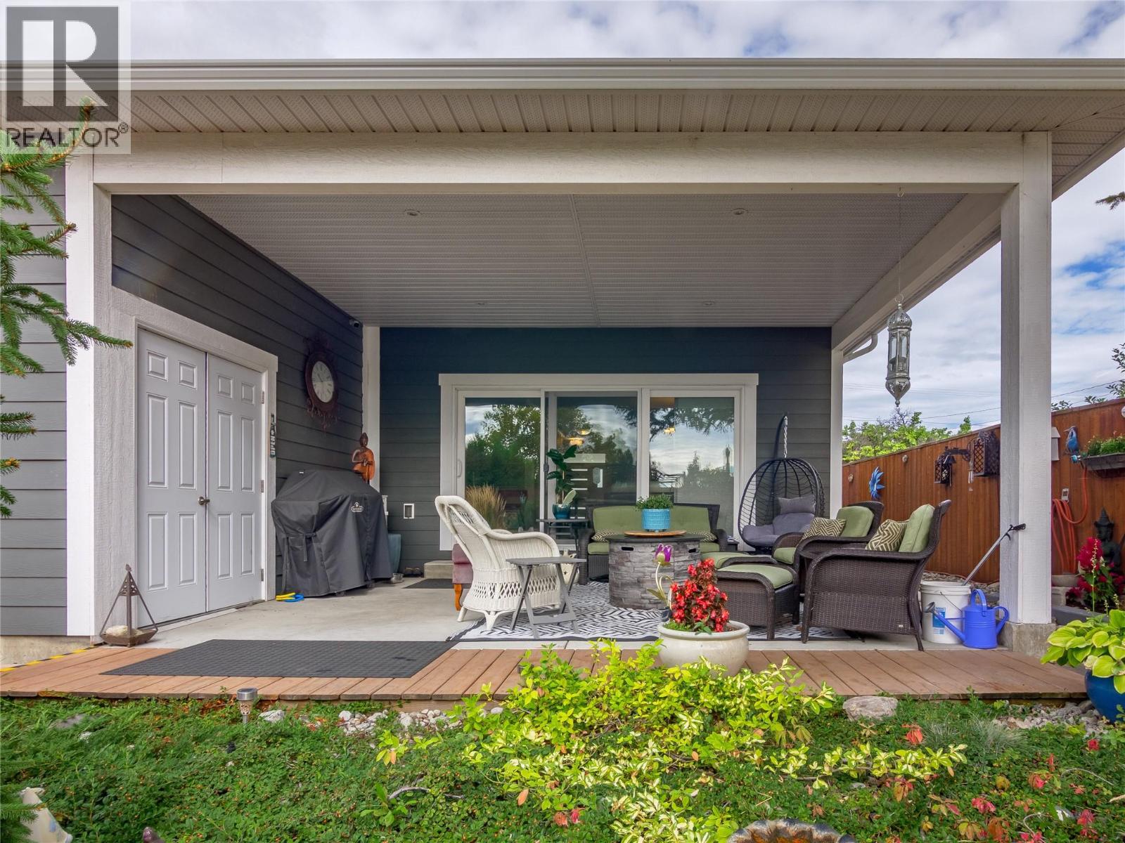 This home features three bedrooms and two bathrooms, meticulously designed to delight your visual senses. The open-concept layout provides an excellent space for entertaining. The gorgeous kitchen boasts granite countertops, a large island, soft-close drawers, and slate appliances. The living room includes a gas fireplace and oversized patio doors, offering easy access to the beautiful, south-facing backyard. The spacious master bedroom features a walk-in closet and a four-piece ensuite. The two additional bedrooms are generously sized, each with large windows. The double garage is fully finished with baseboards and paint, and an 11x7-foot workshop at the back of the home provides space for projects or extra storage. A 3.5-foot crawl space efficiently houses the furnace and hot water tank, ensuring no living space is wasted. The xeriscaped yard includes a small garden area. This home offers an extremely convenient location, close to Walmart, the mall, Skaha Lake, and local schools. With no strata fees and no work required, this home is move-in ready. Please call the listing representative today for more information. (id:47466)