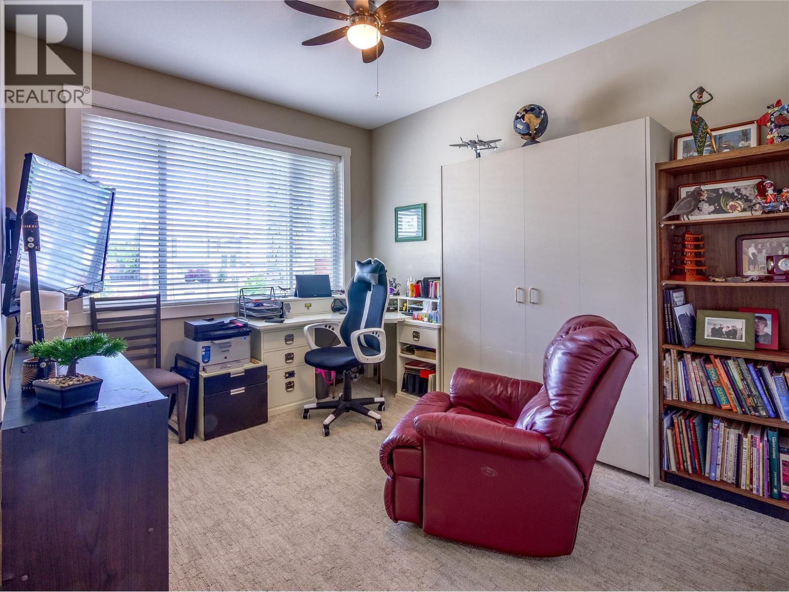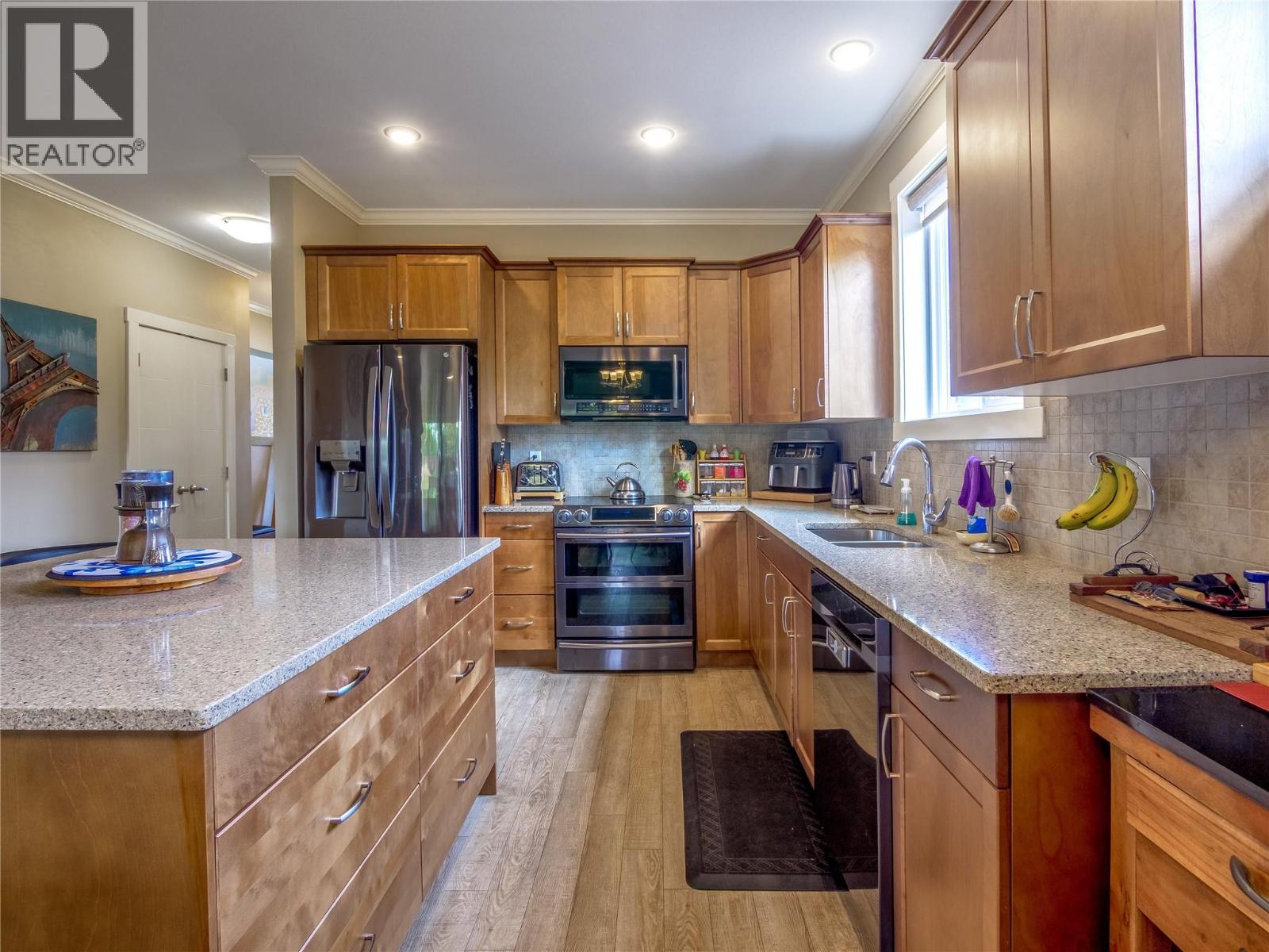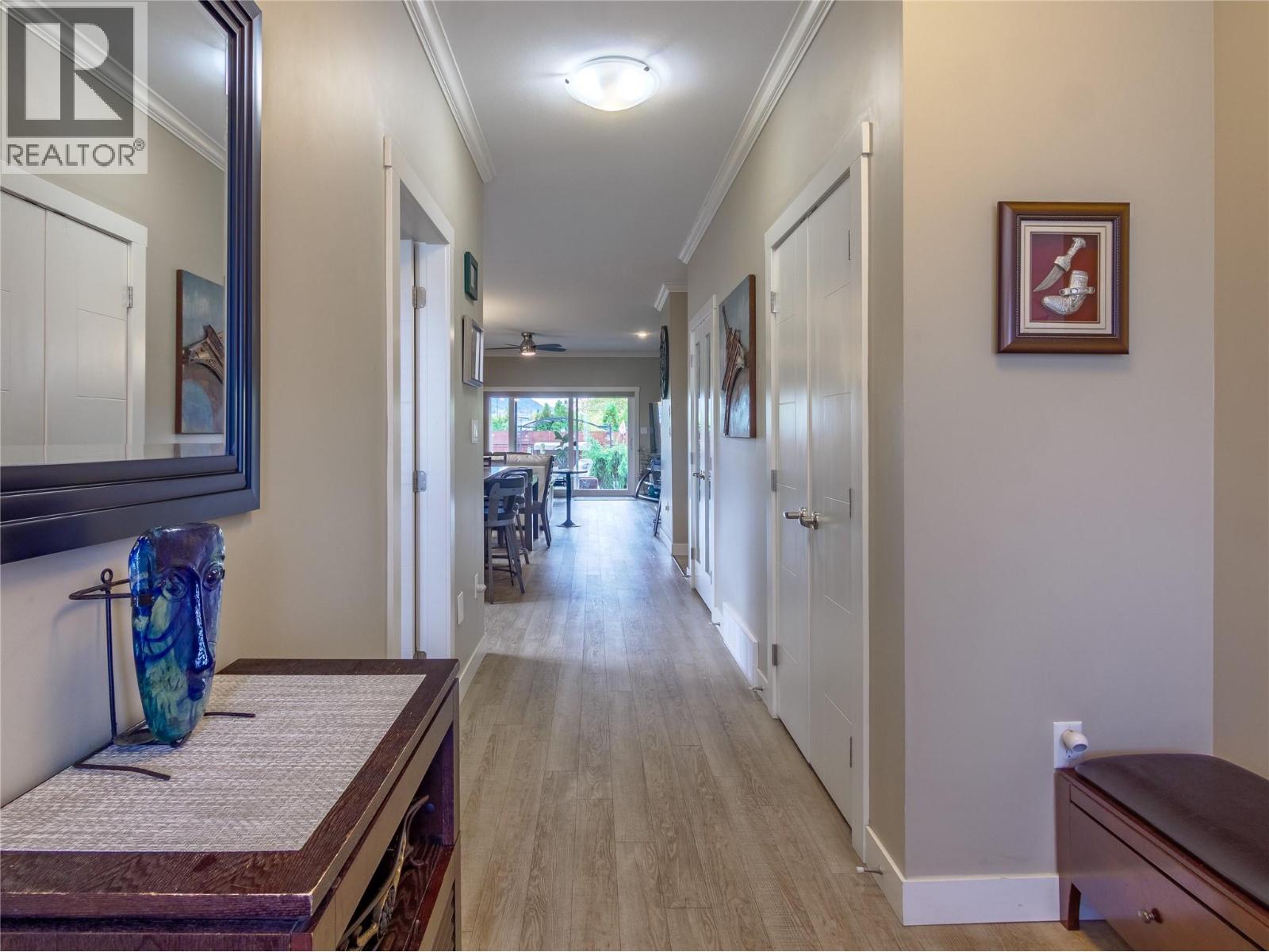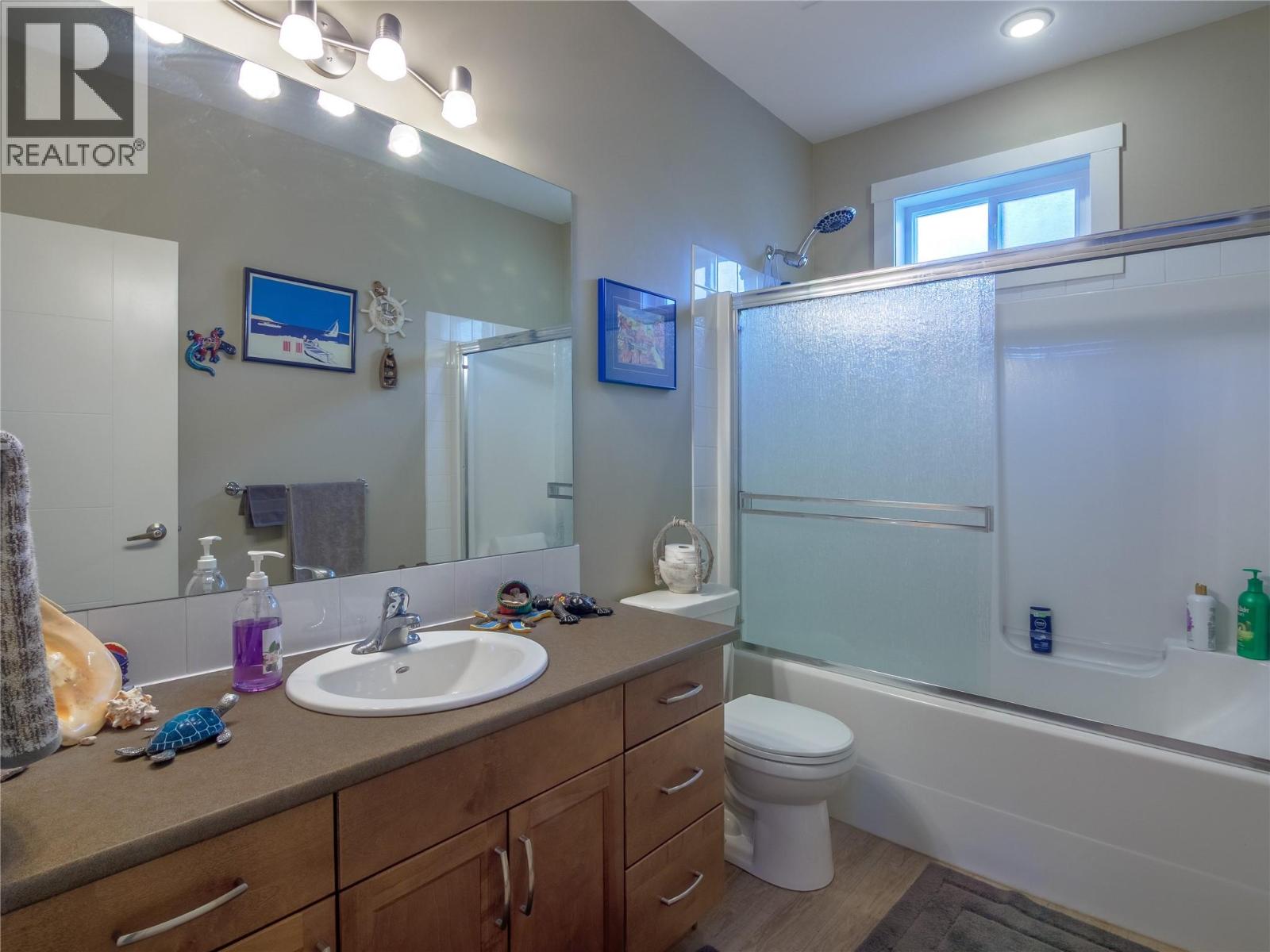This home features three bedrooms and two bathrooms, meticulously designed to delight your visual senses. The open-concept layout provides an excellent space for entertaining. The gorgeous kitchen boasts granite countertops, a large island, soft-close drawers, and slate appliances. The living room includes a gas fireplace and oversized patio doors, offering easy access to the beautiful, south-facing backyard. The spacious master bedroom features a walk-in closet and a four-piece ensuite. The two additional bedrooms are generously sized, each with large windows. The double garage is fully finished with baseboards and paint, and an 11x7-foot workshop at the back of the home provides space for projects or extra storage. A 3.5-foot crawl space efficiently houses the furnace and hot water tank, ensuring no living space is wasted. The xeriscaped yard includes a small garden area. This home offers an extremely convenient location, close to Walmart, the mall, Skaha Lake, and local schools. With no strata fees and no work required, this home is move-in ready. Please call the listing representative today for more information. (id:47466)
