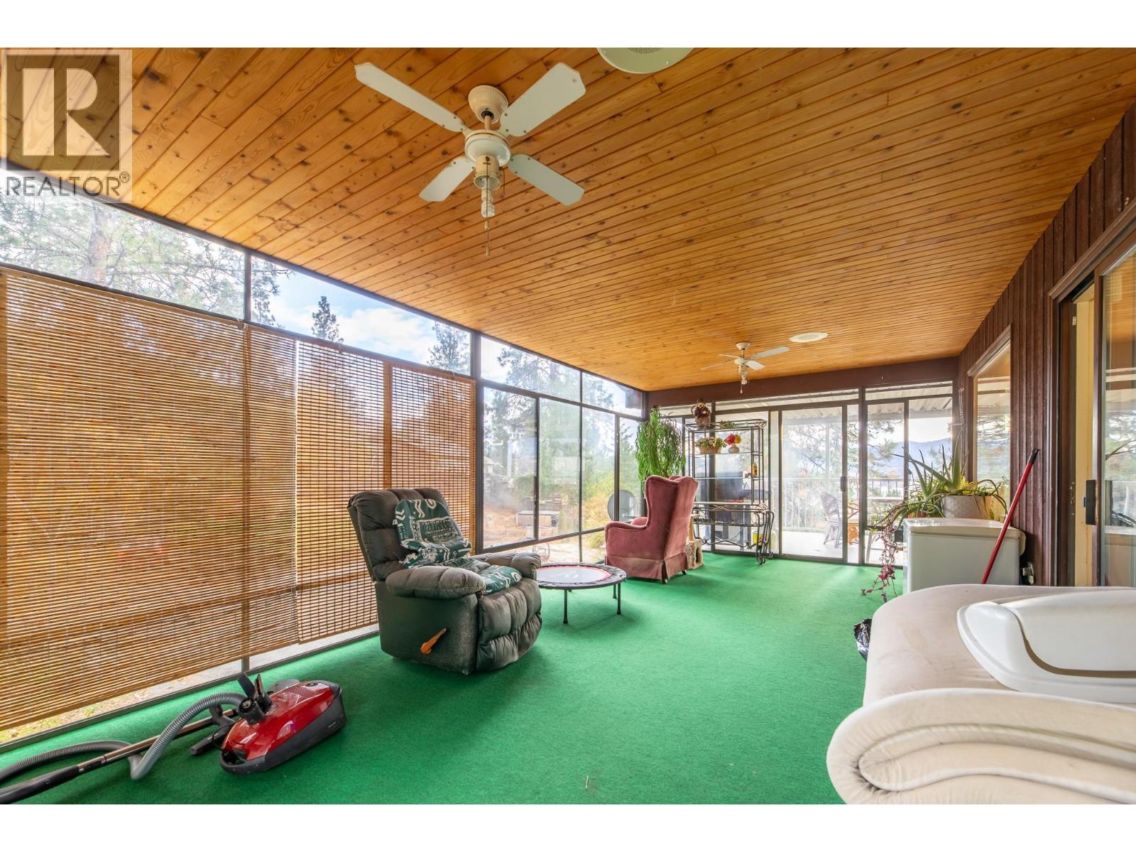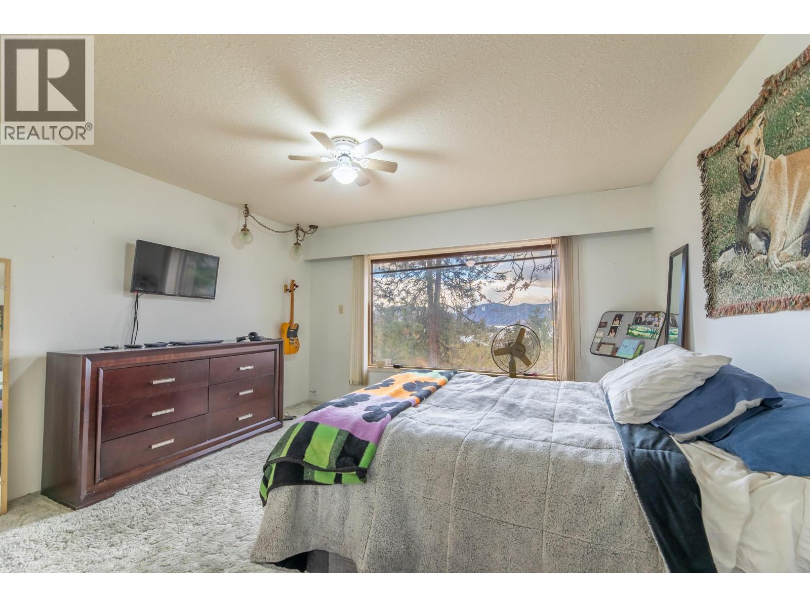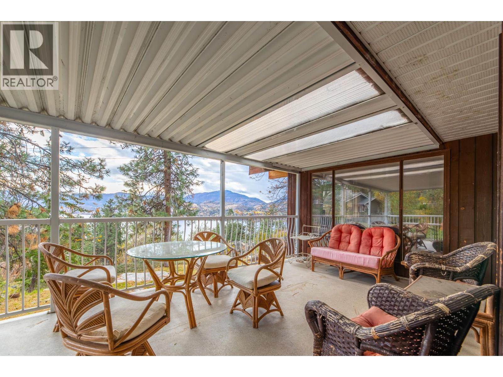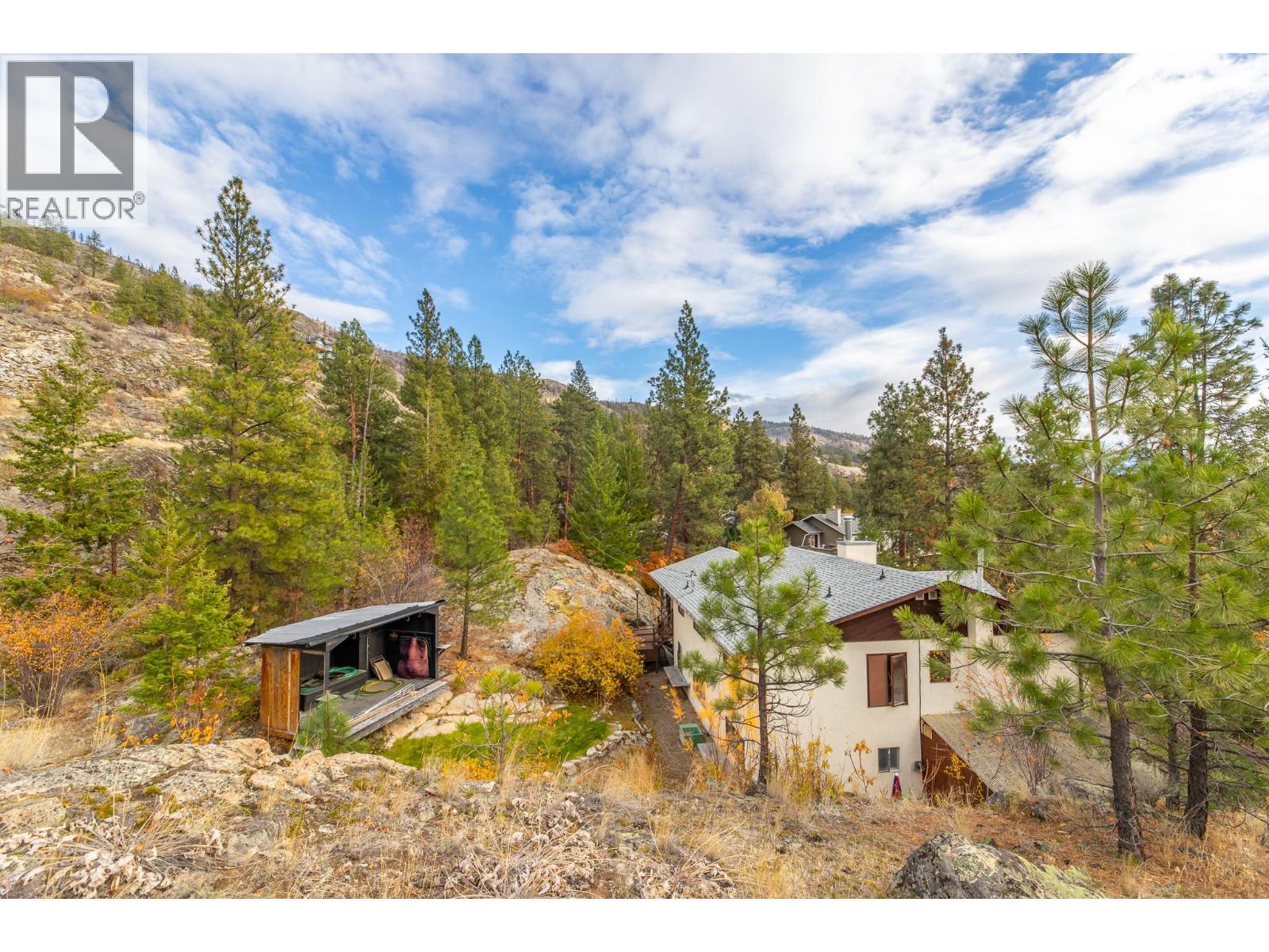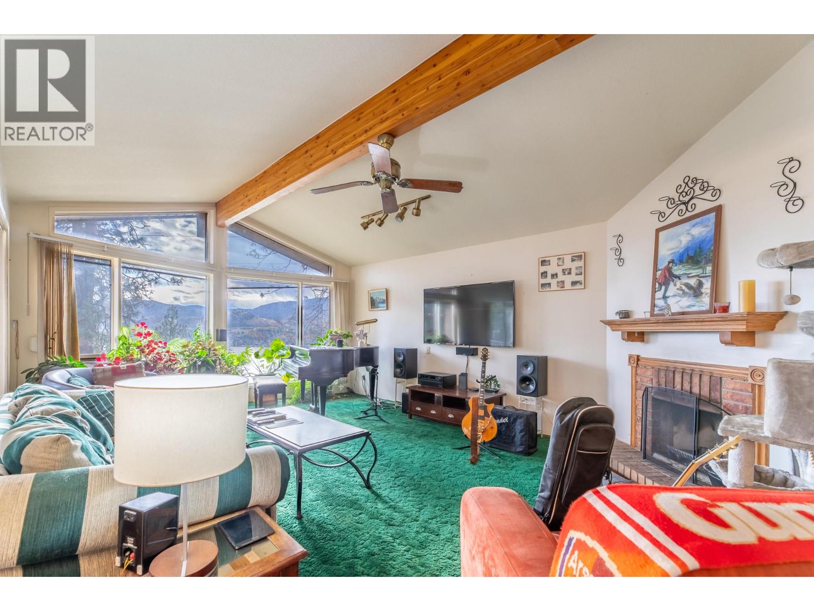 Perched at the end of a quiet cul-de-sac in sought-after Heritage Hills, this private 4-acre property offers breathtaking views of Skaha Lake and a rare natural landscape featuring striking rock outcroppings. A private driveway leads you to the home’s entrance, tucked into a serene and beautifully secluded setting. Originally built in 1982, the spacious home features a well-designed floor plan with vaulted ceilings and a cozy fireplace in the living room. The main level includes three bedrooms, while the lower level offers two additional bedrooms, a large family room with a gas fireplace, and walk-out access. An enclosed entertainment deck provides the perfect space for year-round enjoyment, and a double carport adds to the convenience. Zoned to allow a second dwelling or a legal secondary suite, this property presents an exceptional opportunity for customization or future development. Direct access to over 150+ acres of adjacent Nature Trust land with hiking trails makes this a haven for nature lovers. (id:47466)