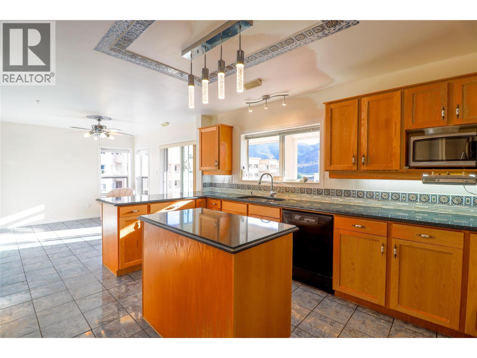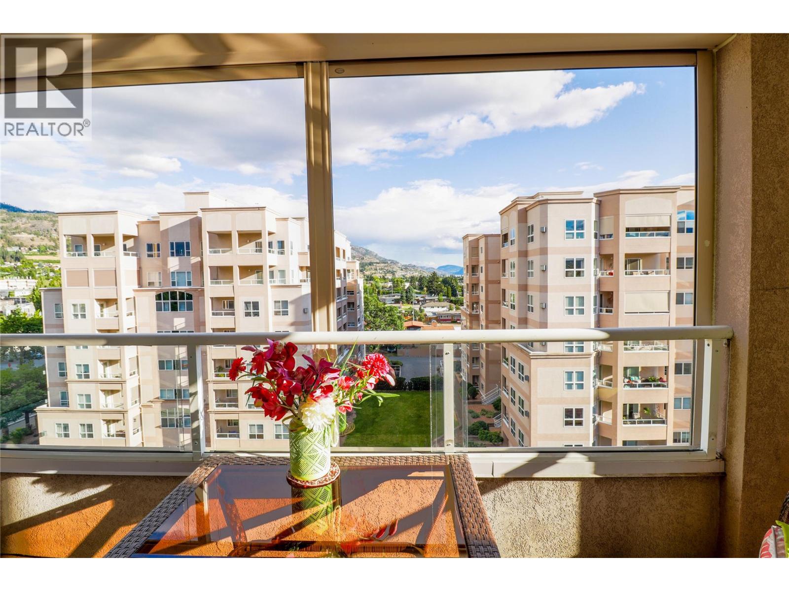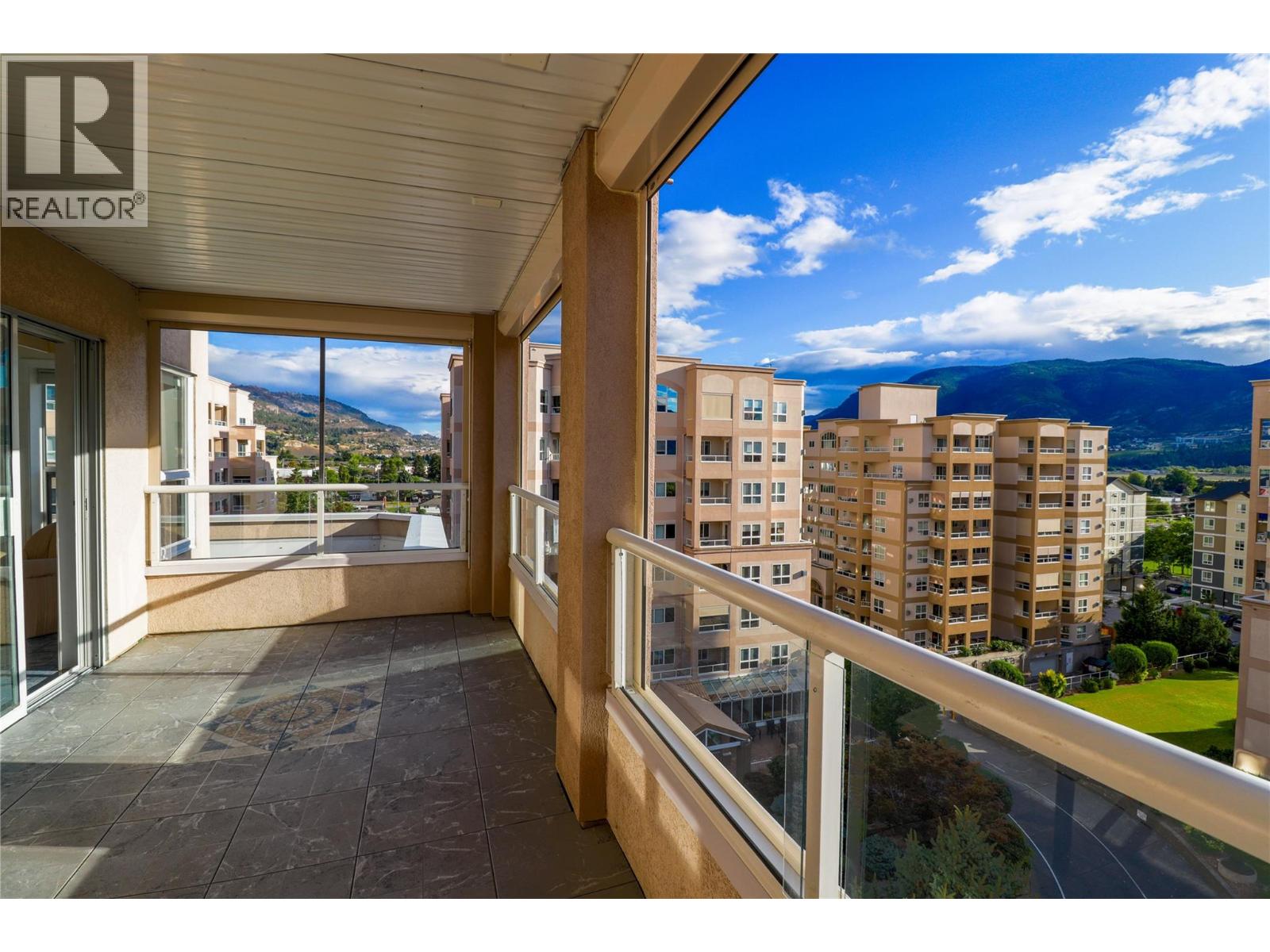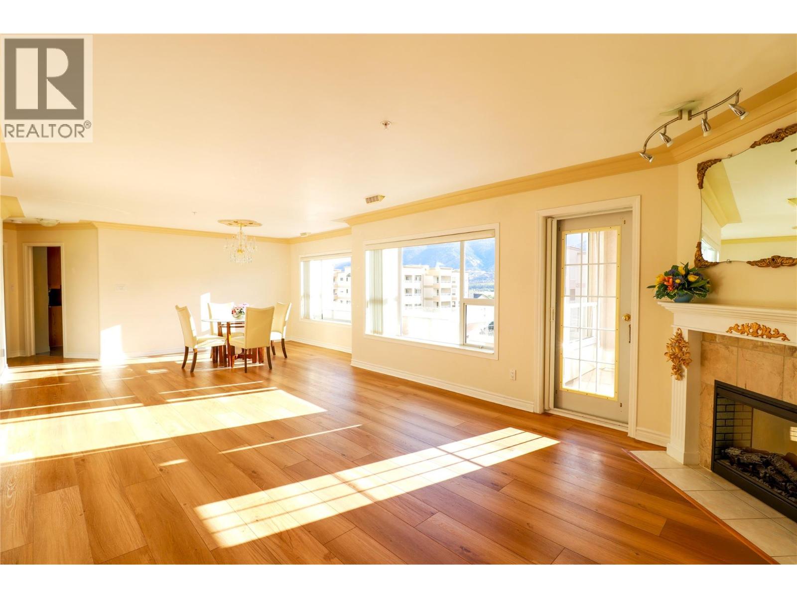 Experience refined living in the heart of Penticton with this exceptional junior penthouse in the sought-after Regency building at Cherry Lane Towers. Offering over 1,900 sqft of well-designed space, this 2-bedroom + den, 3-bathroom home combines the comfort of a detached residence with the ease of condo living. Bright and airy, the open-concept layout is perfect for entertaining, featuring a spacious living area, formal dining room, and a versatile den. The kitchen is a chef’s dream, showcasing solid surface countertops, bright with abundant cabinetry. Each bedroom is a private retreat, complete with walk-in closets and ensuite bathrooms for added luxury. Enjoy breathtaking views in every direction—North, West, and South—from any of the four private balconies, enhanced by custom electric shutters for year-round comfort and privacy. Additional highlights include in-suite laundry, multiple hallway closets, separate storage unit, secure parking, and an electric fireplace. Located just steps from Cherry Lane Mall, this home offers unmatched convenience with shopping, restaurants, transit, and bike routes at your doorstep. If you're seeking a downsizing option that doesn't compromise on space or lifestyle, this rare offering delivers it all—comfort, style, and central location in one beautiful package. Come see why this suite is one of the most desirable in the city. (id:47466)