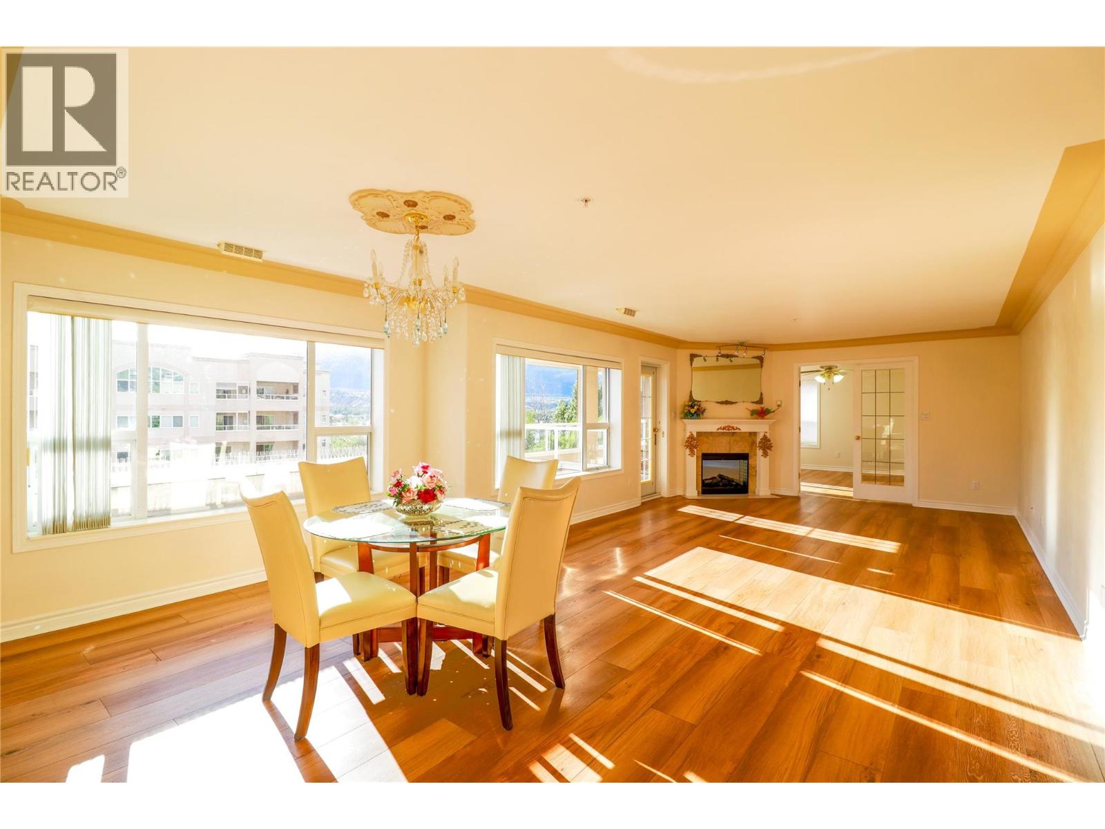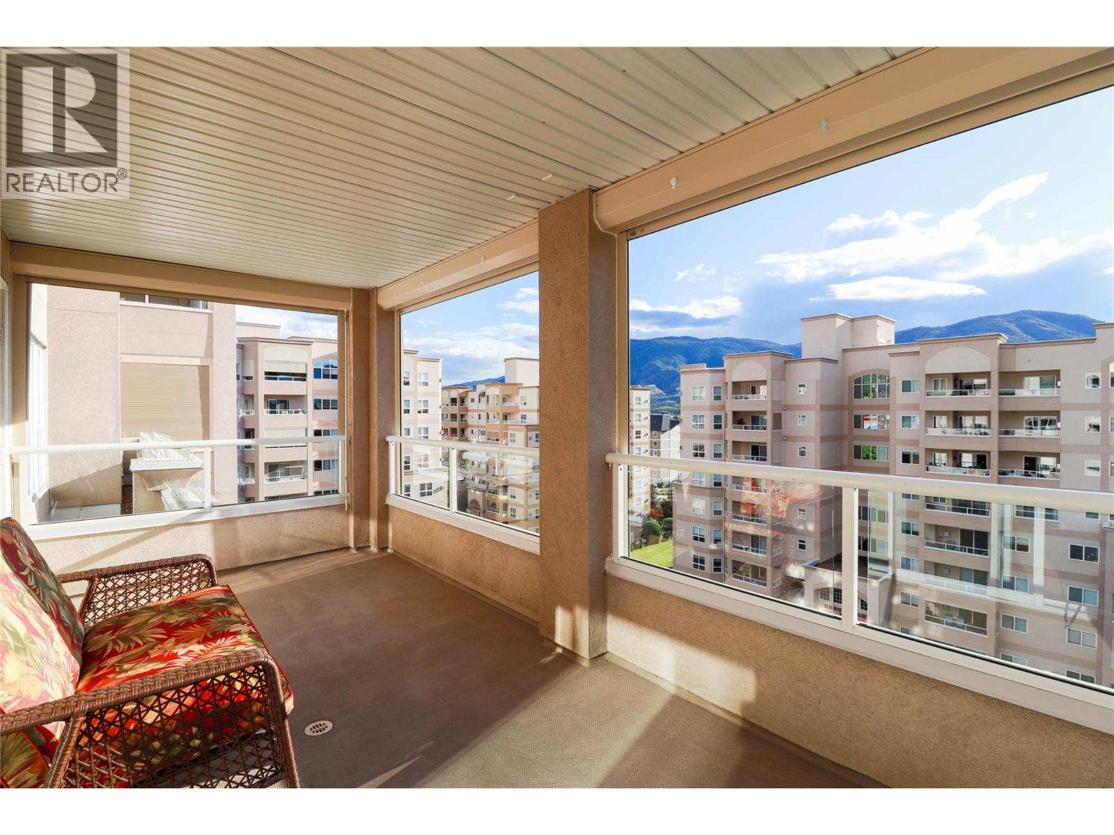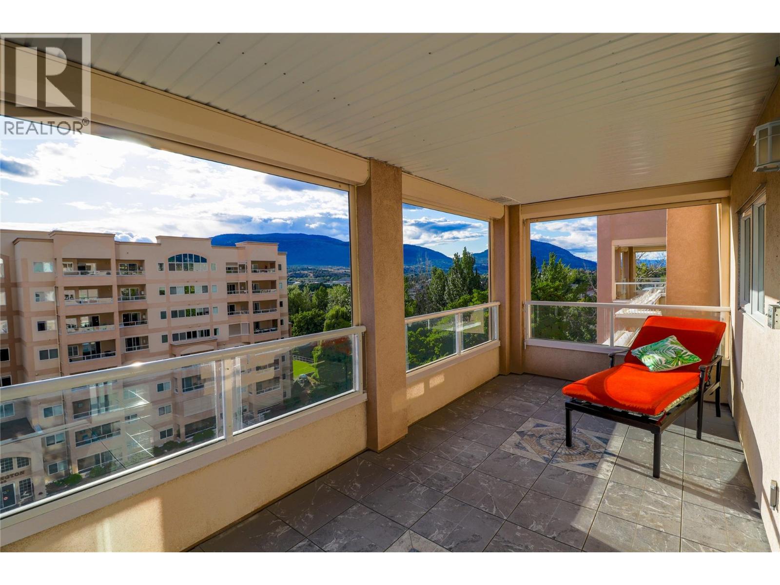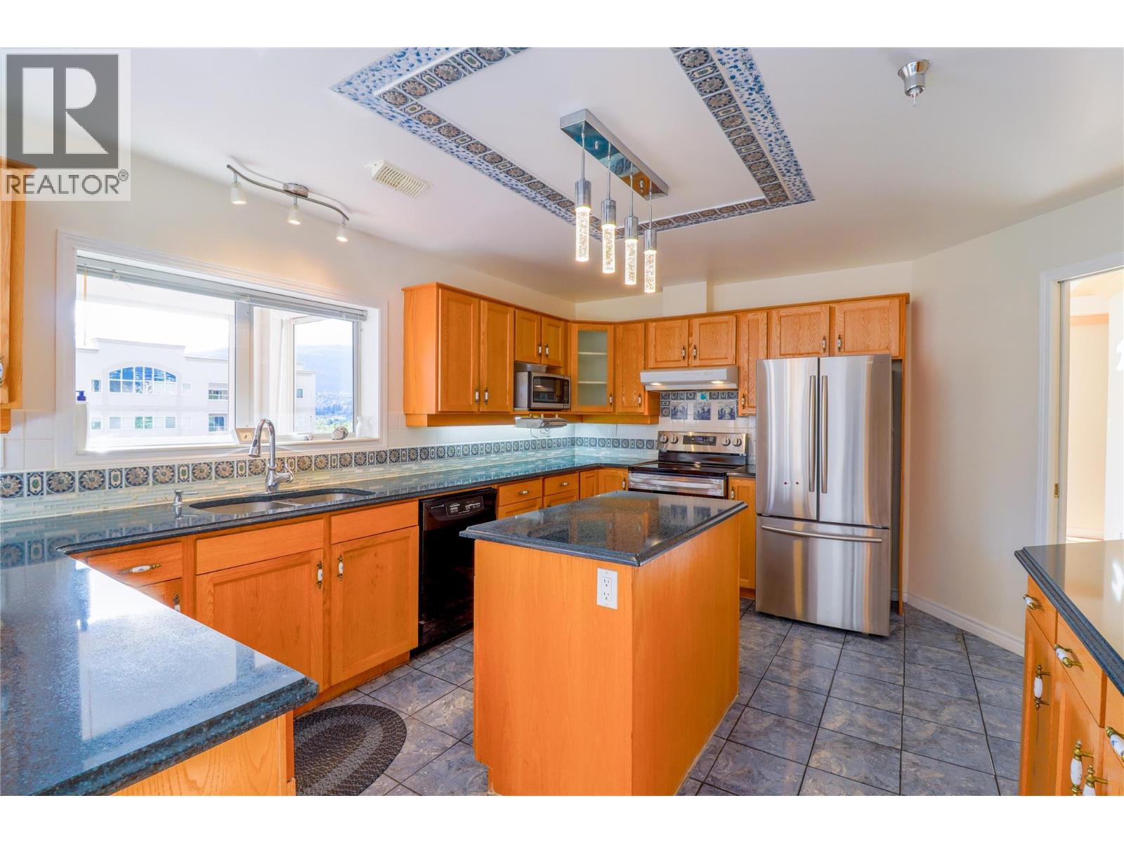 Experience refined living in the heart of Penticton with this exceptional junior penthouse in the sought-after Regency building at Cherry Lane Towers. Offering over 1,900 sqft of well-designed space, this 2-bedroom + den, 3-bathroom home combines the comfort of a detached residence with the ease of condo living. Bright and airy, the open-concept layout is perfect for entertaining, featuring a spacious living area, formal dining room, and a versatile den. The kitchen is a chef’s dream, showcasing solid surface countertops, bright with abundant cabinetry. Each bedroom is a private retreat, complete with walk-in closets and ensuite bathrooms for added luxury. Enjoy breathtaking views in every direction—North, West, and South—from any of the four private balconies, enhanced by custom electric shutters for year-round comfort and privacy. Additional highlights include in-suite laundry, multiple hallway closets, separate storage unit, secure parking, and an electric fireplace. Located just steps from Cherry Lane Mall, this home offers unmatched convenience with shopping, restaurants, transit, and bike routes at your doorstep. If you're seeking a downsizing option that doesn't compromise on space or lifestyle, this rare offering delivers it all—comfort, style, and central location in one beautiful package. Come see why this suite is one of the most desirable in the city. (id:47466)